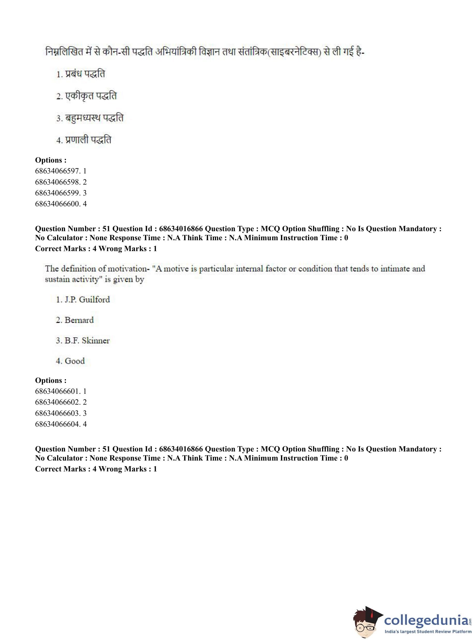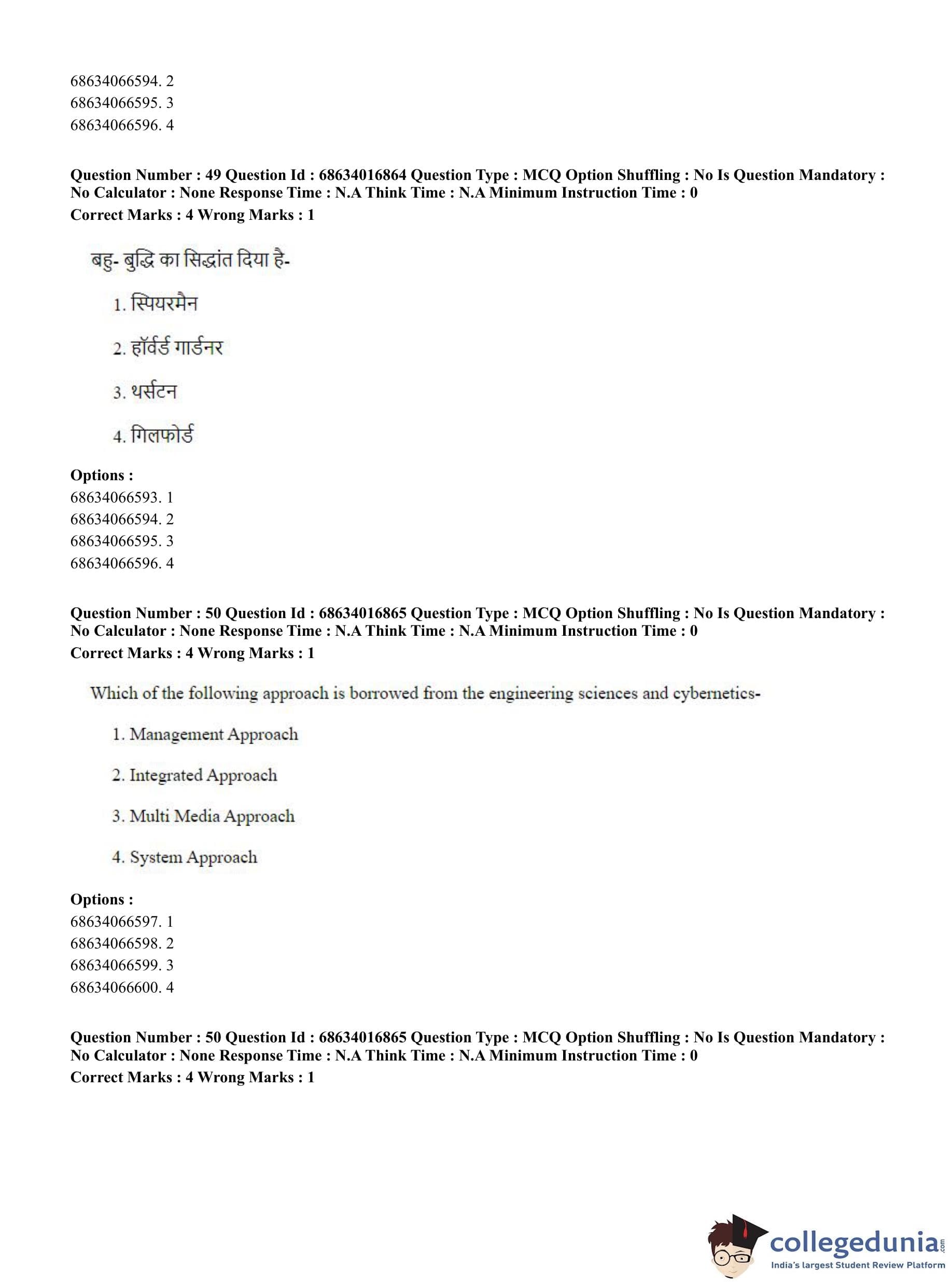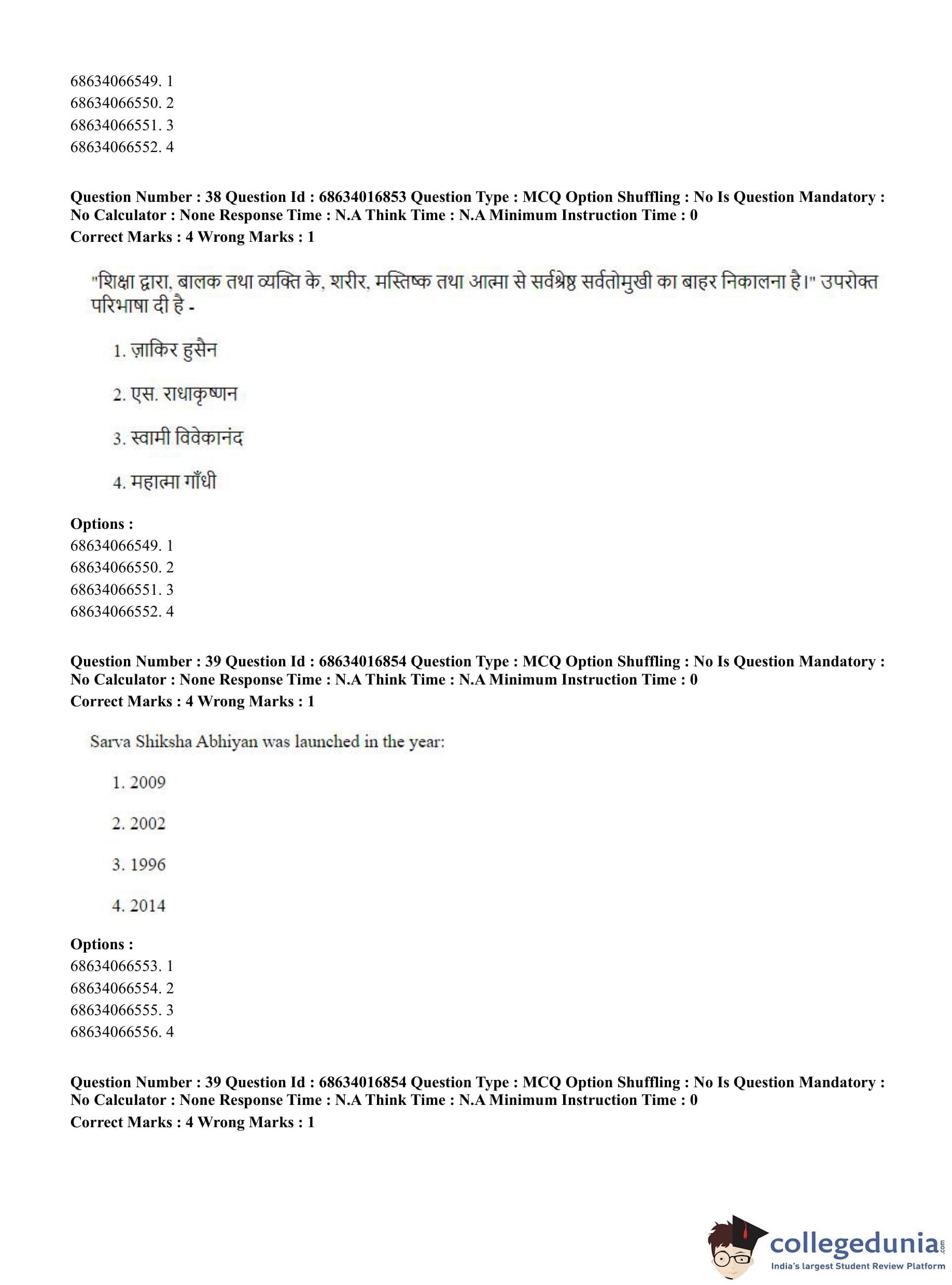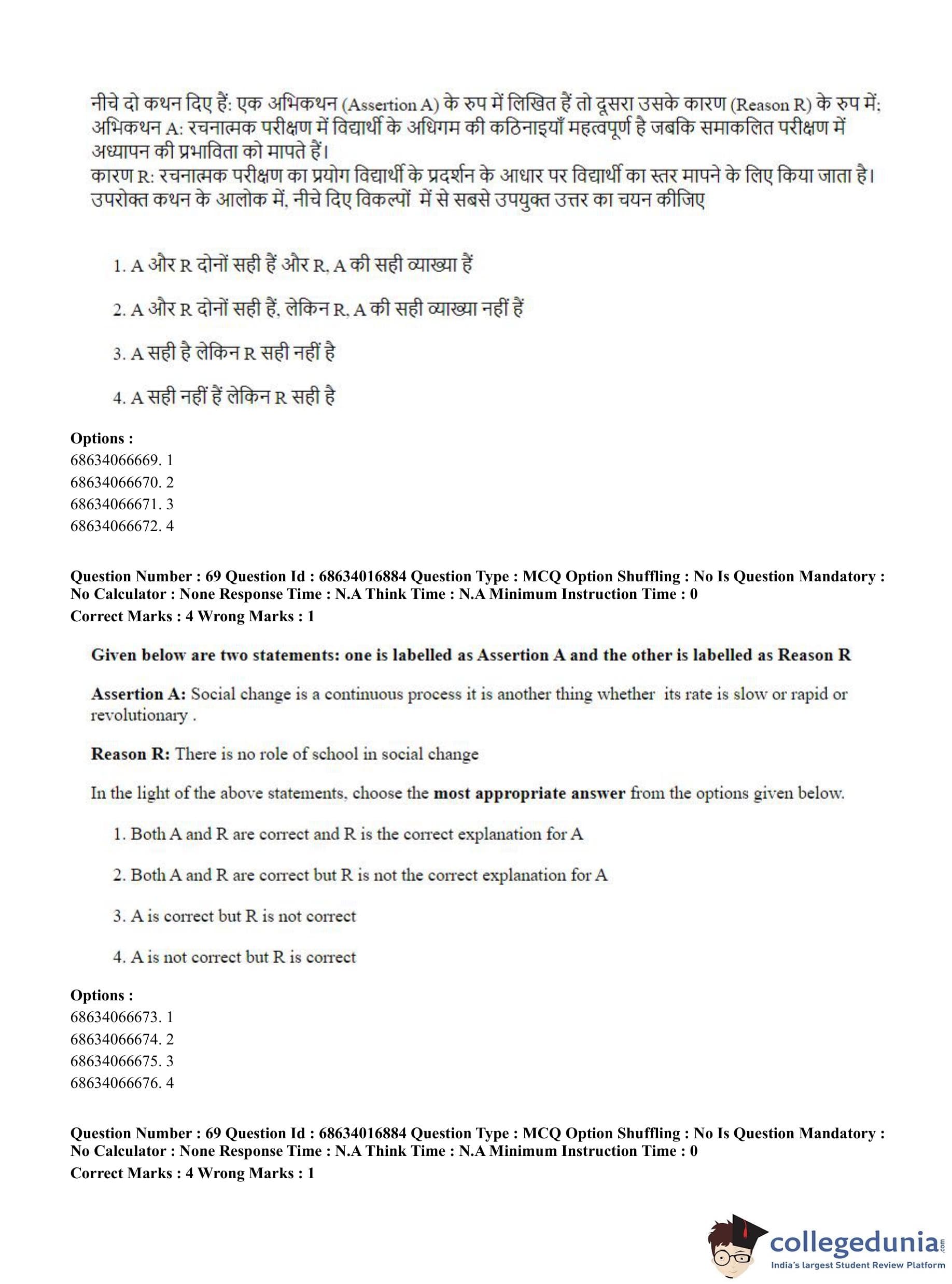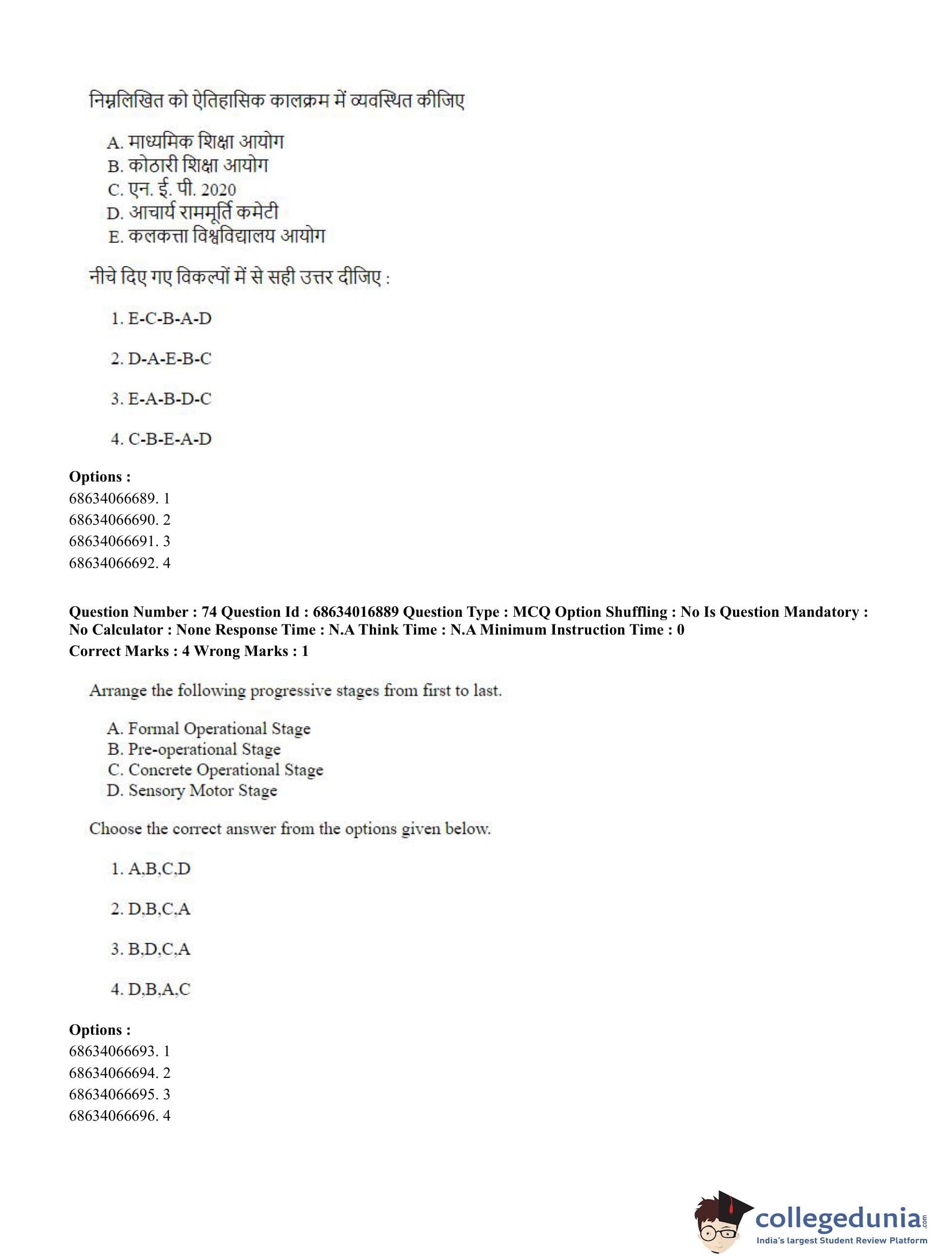 CUET PG 2023 M.Ed. Question Paper in Hindi (June 11 - Shift 1)