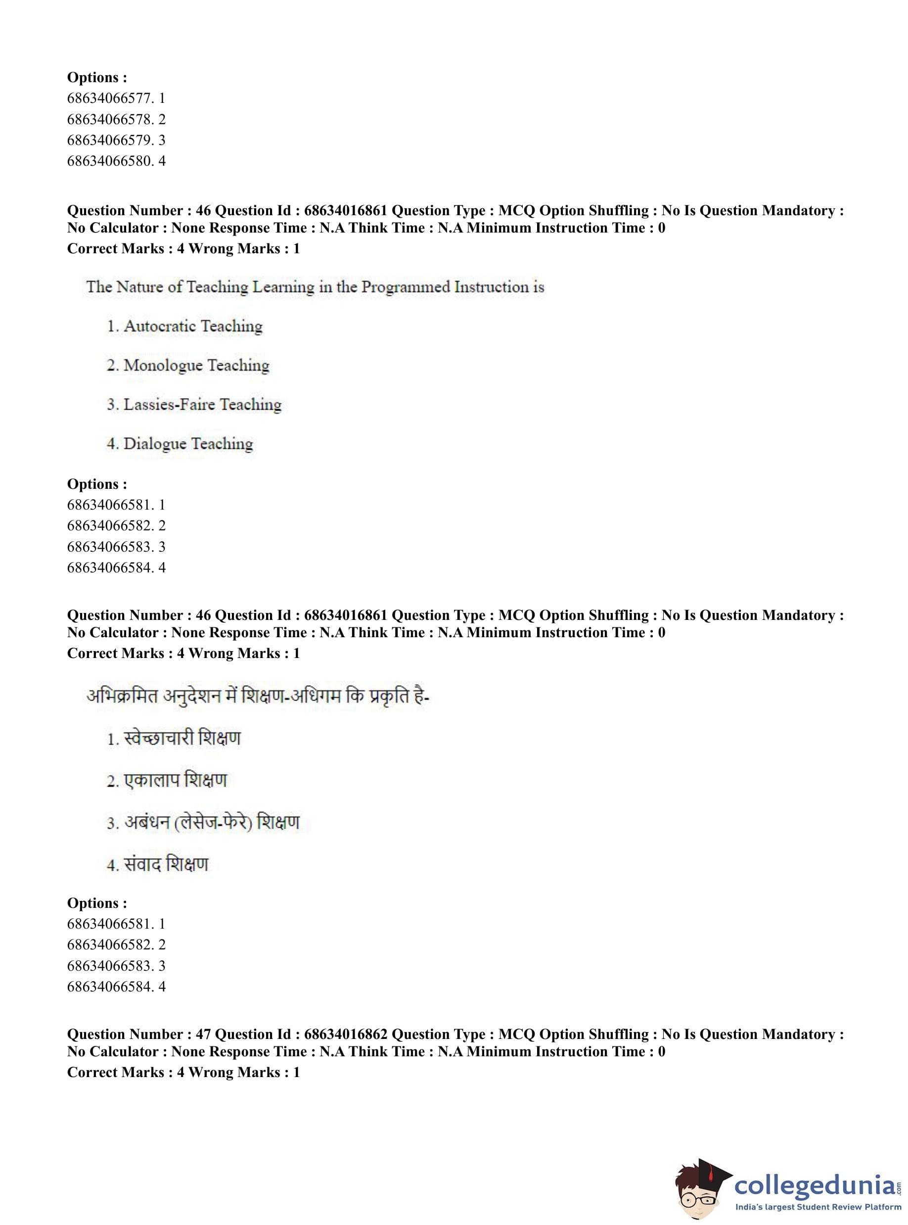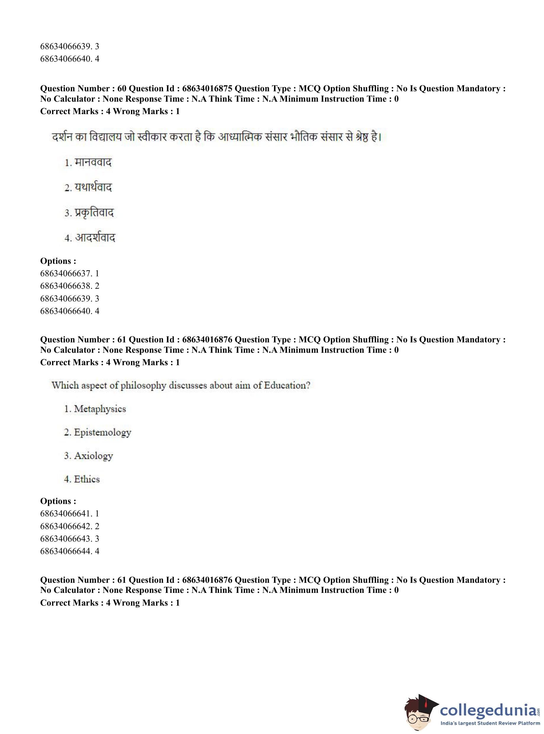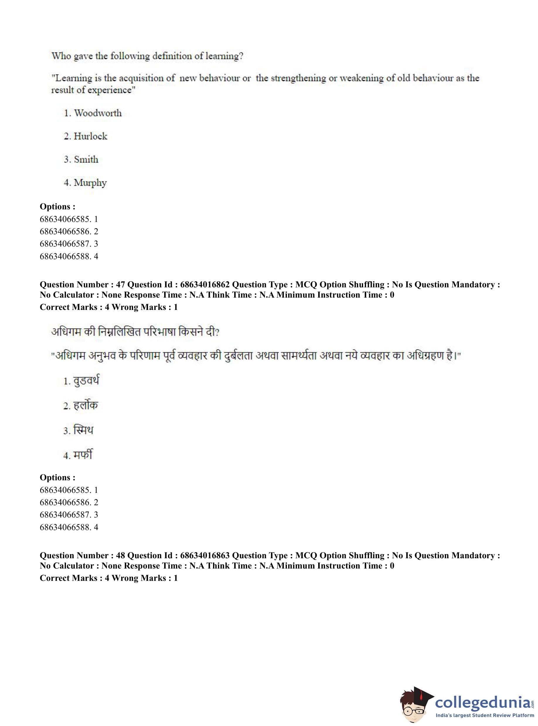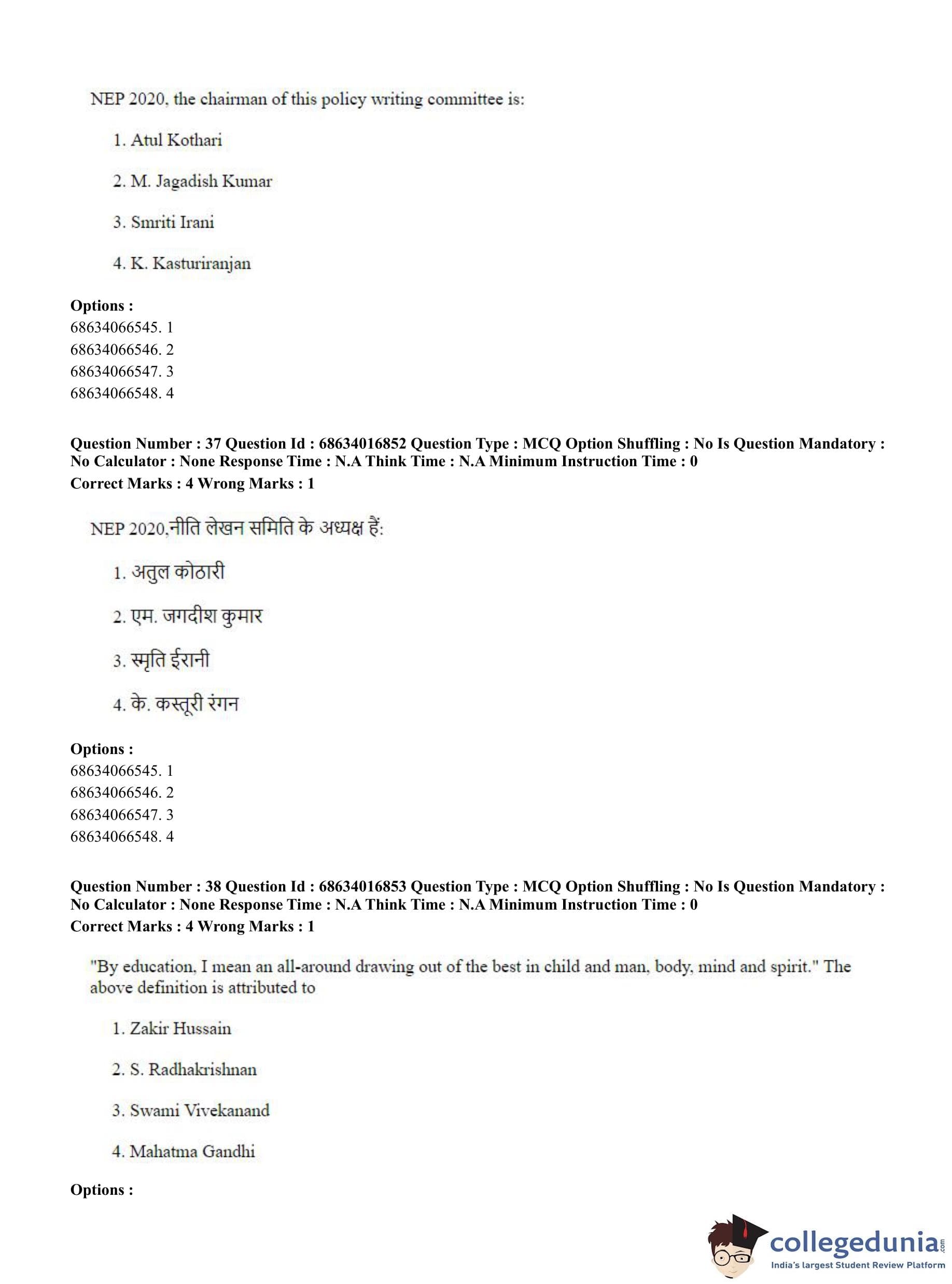 CUET PG 2023 M.Ed. Question Paper in Hindi (June 11 - Shift 1)