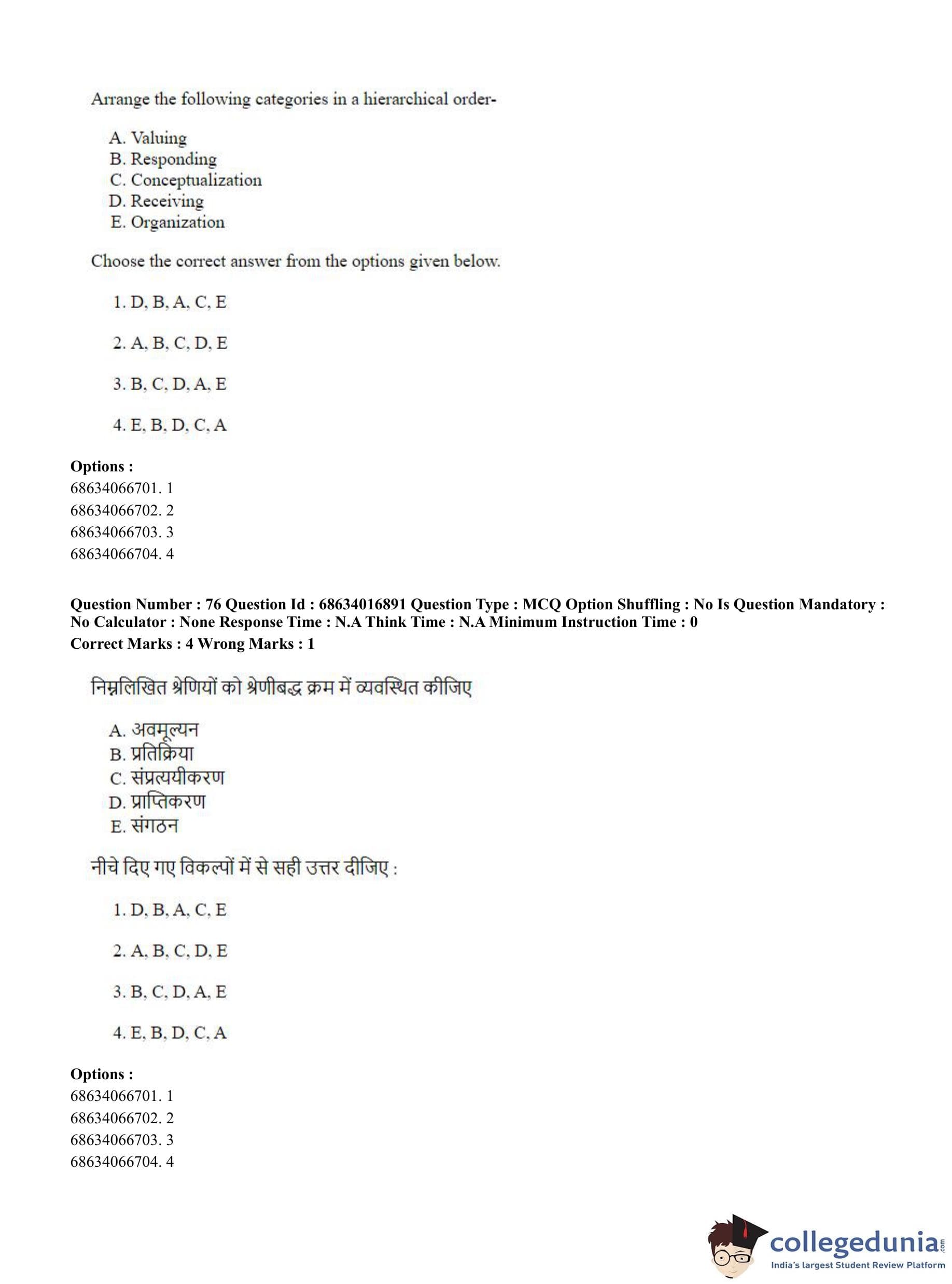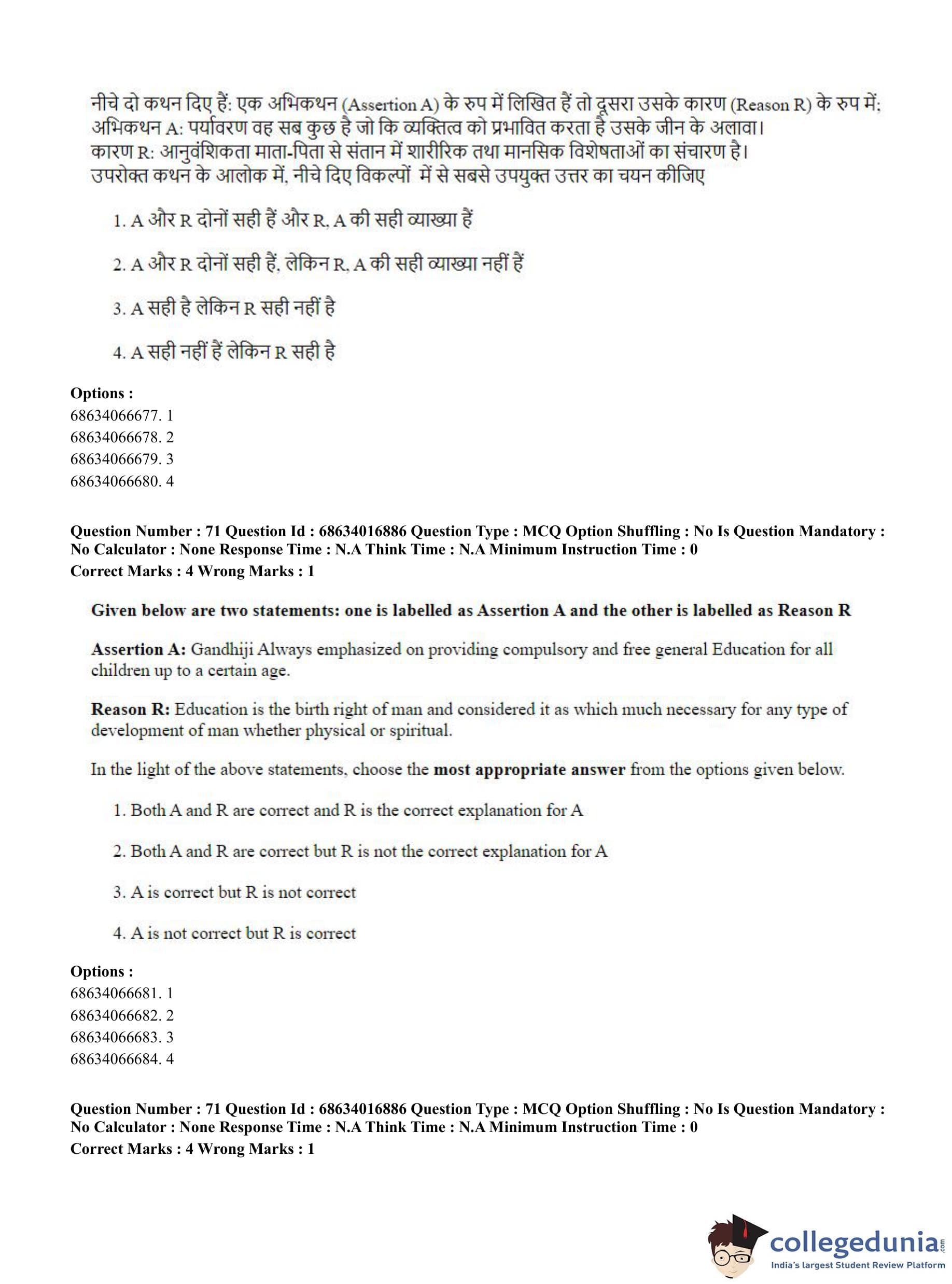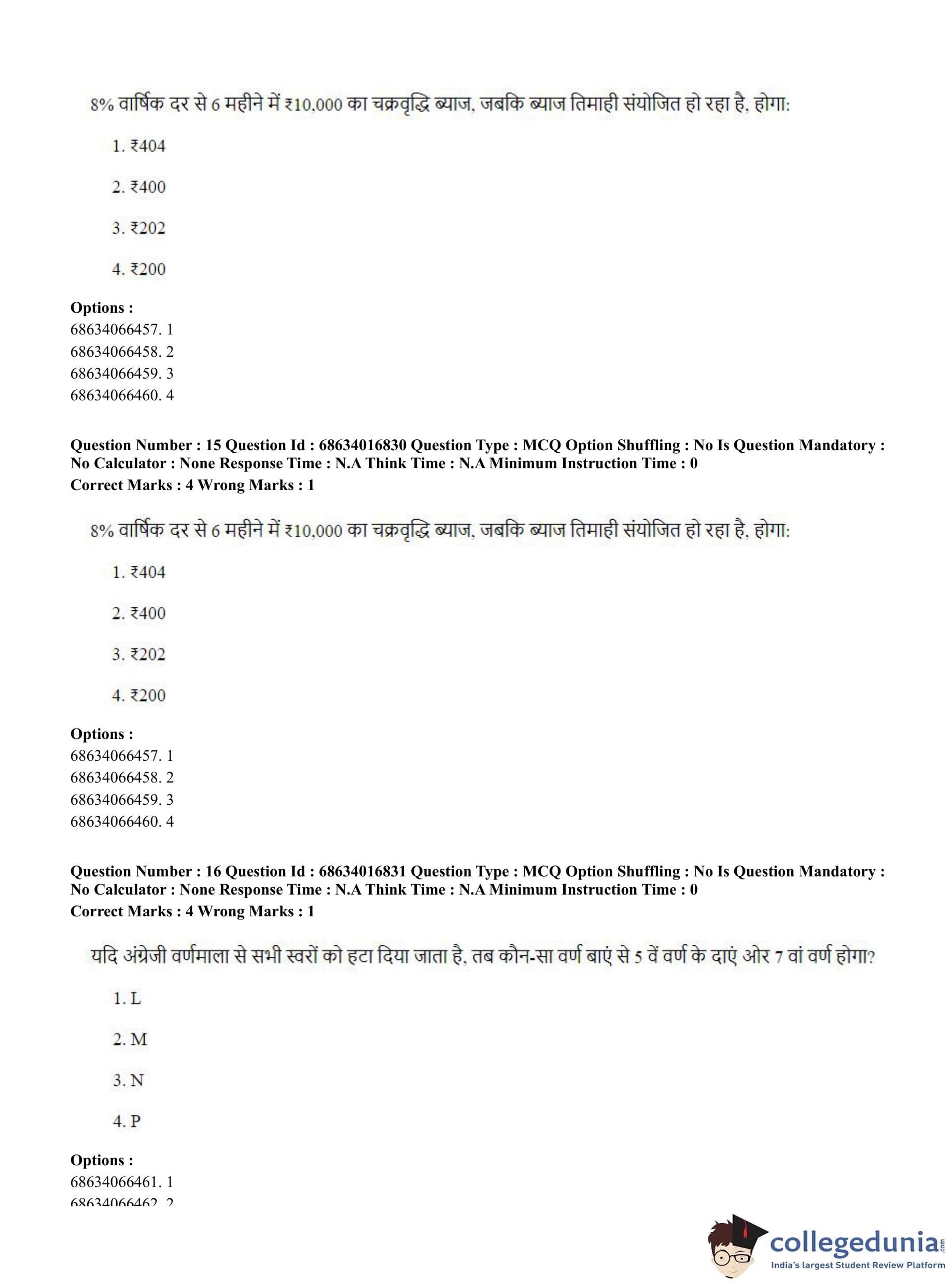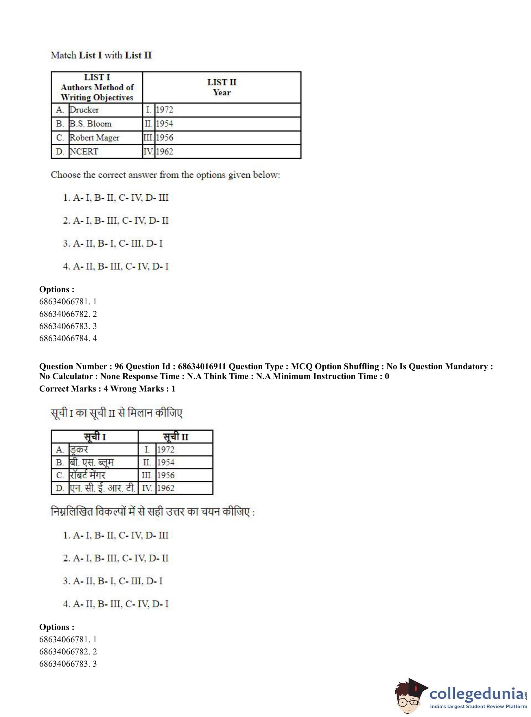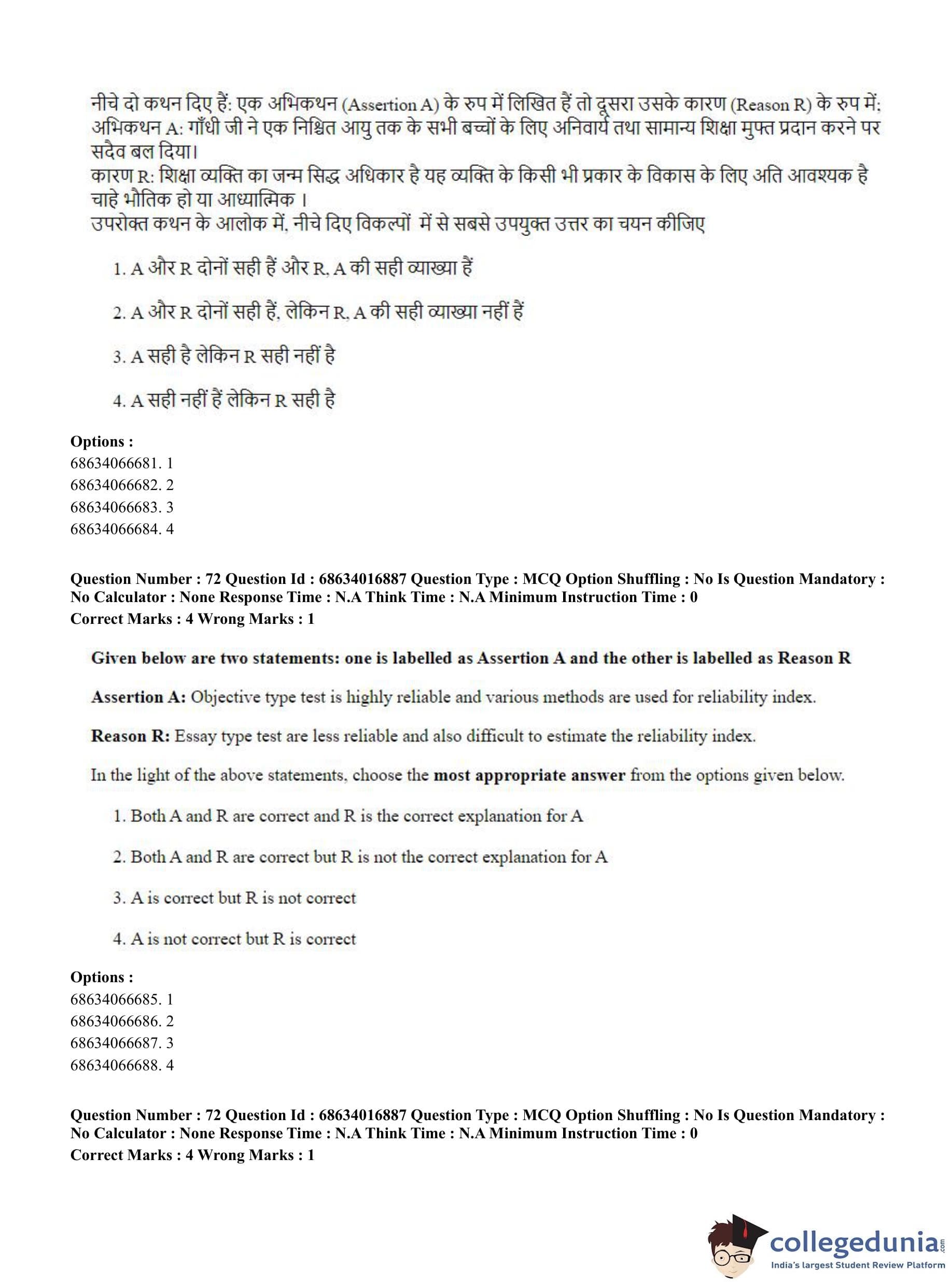 CUET PG 2023 M.Ed. Question Paper in Hindi (June 11 - Shift 1)