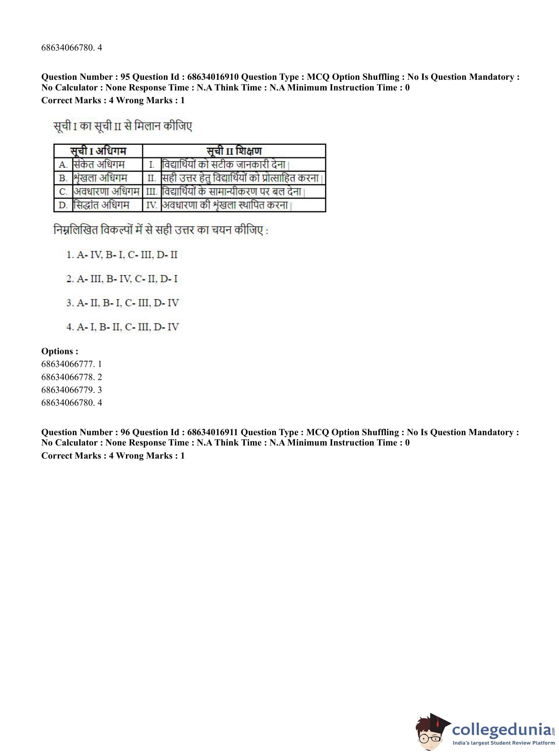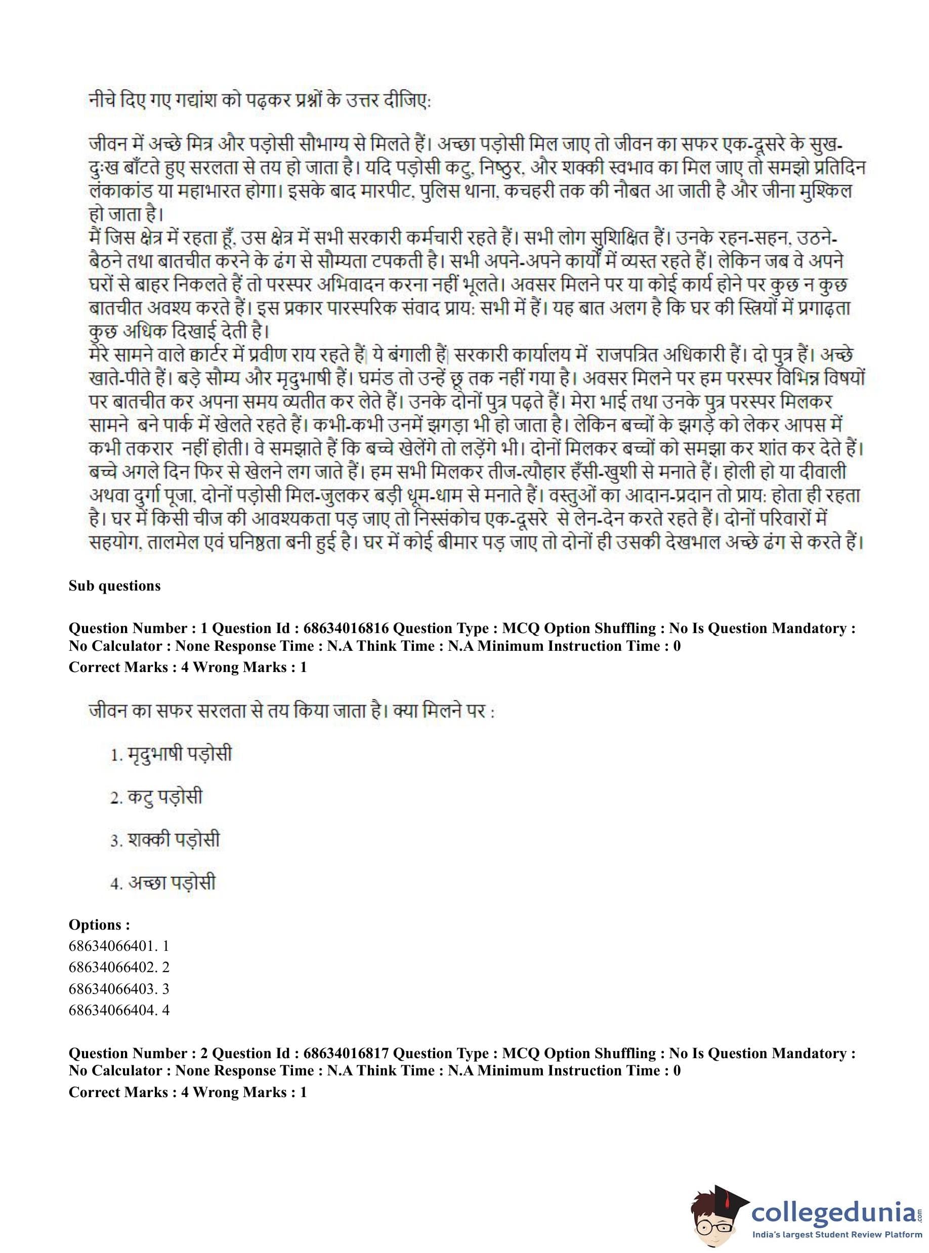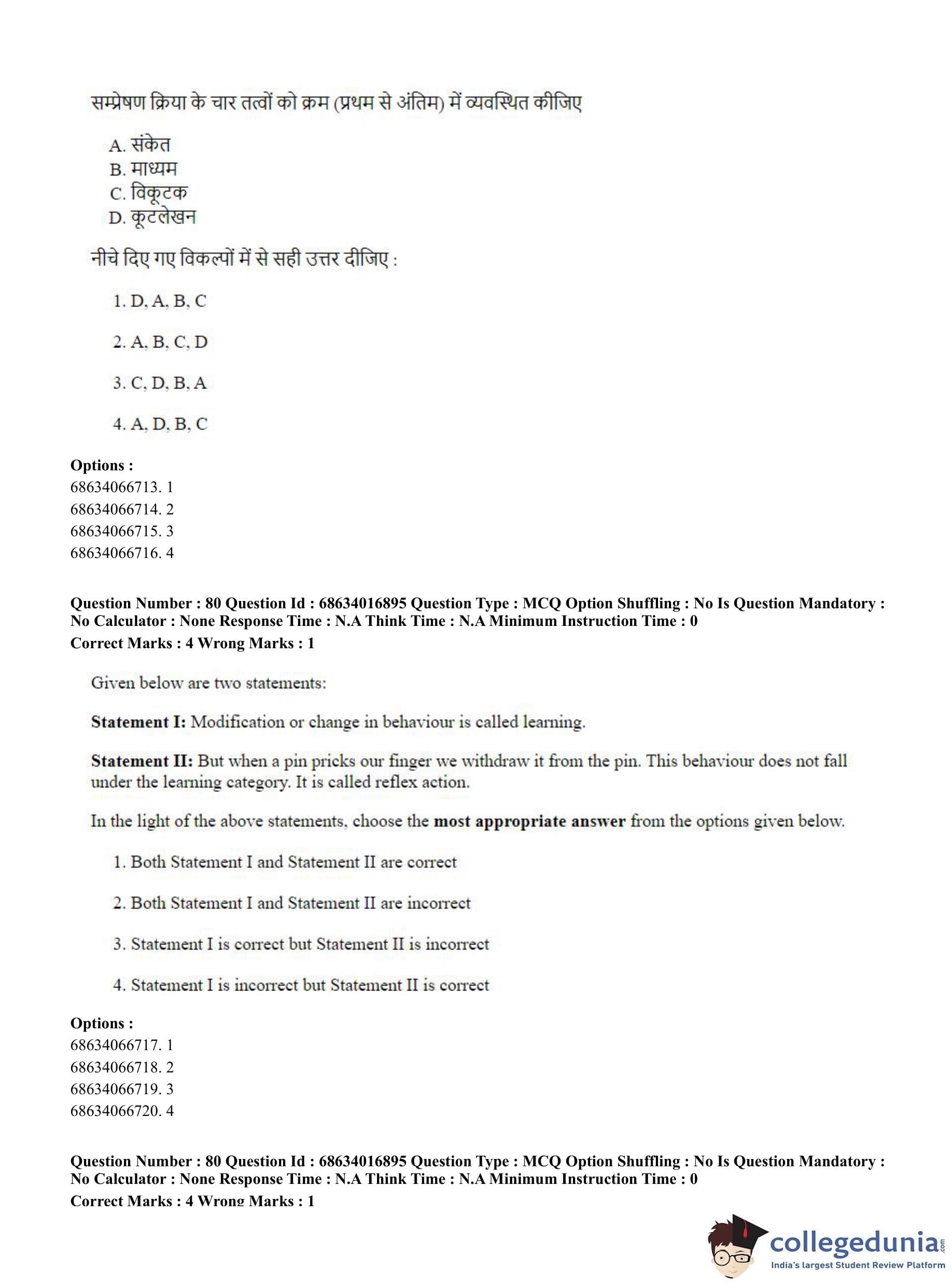 CUET PG 2023 M.Ed. Question Paper with Answer Key PDF in Hindi is available for download here. The exam was conducted by National Testing Agency (NTA) on June 11, 2023 in Shift 1. The question paper comprised a total of 100 questions divided into 2 sections.