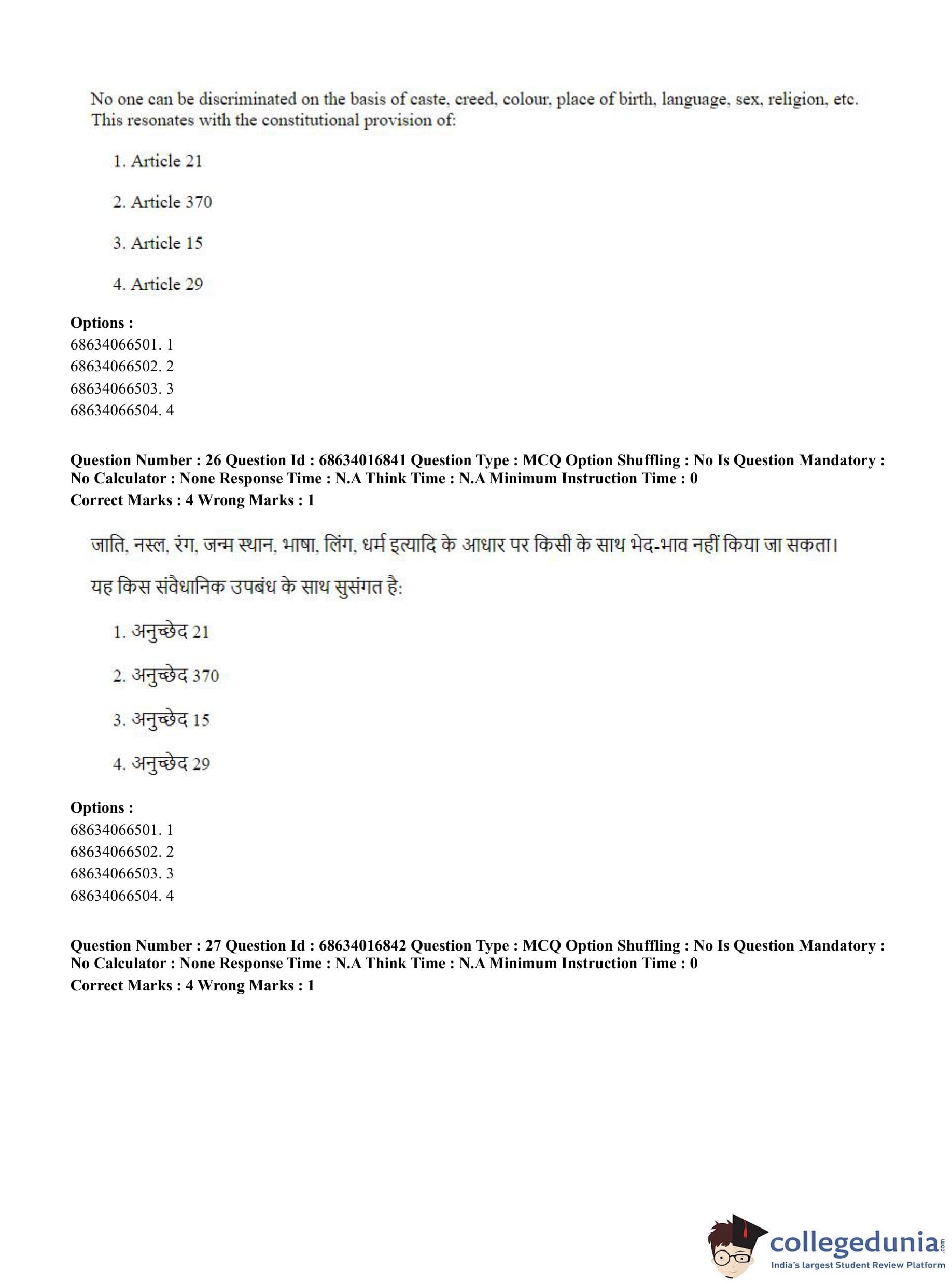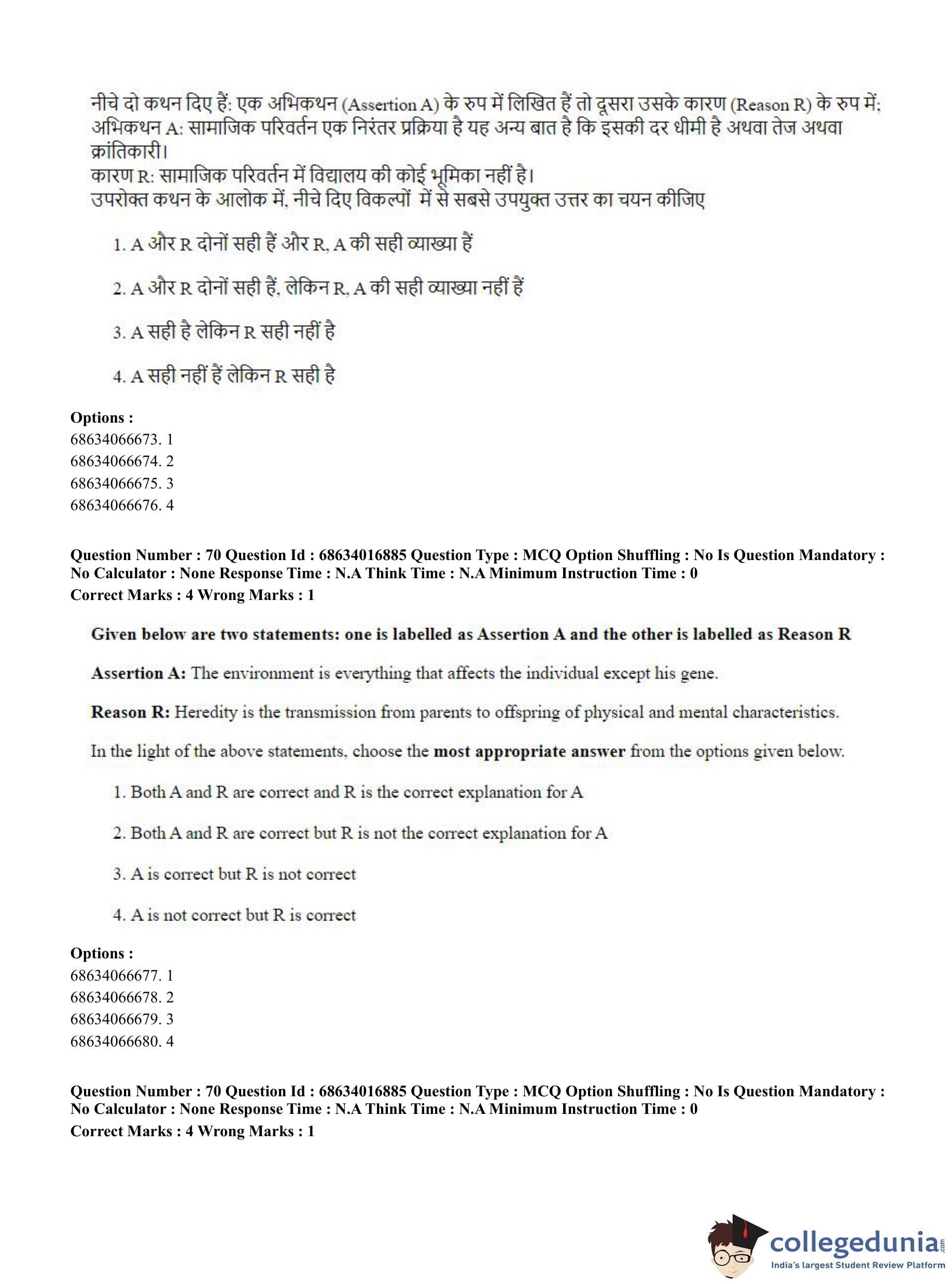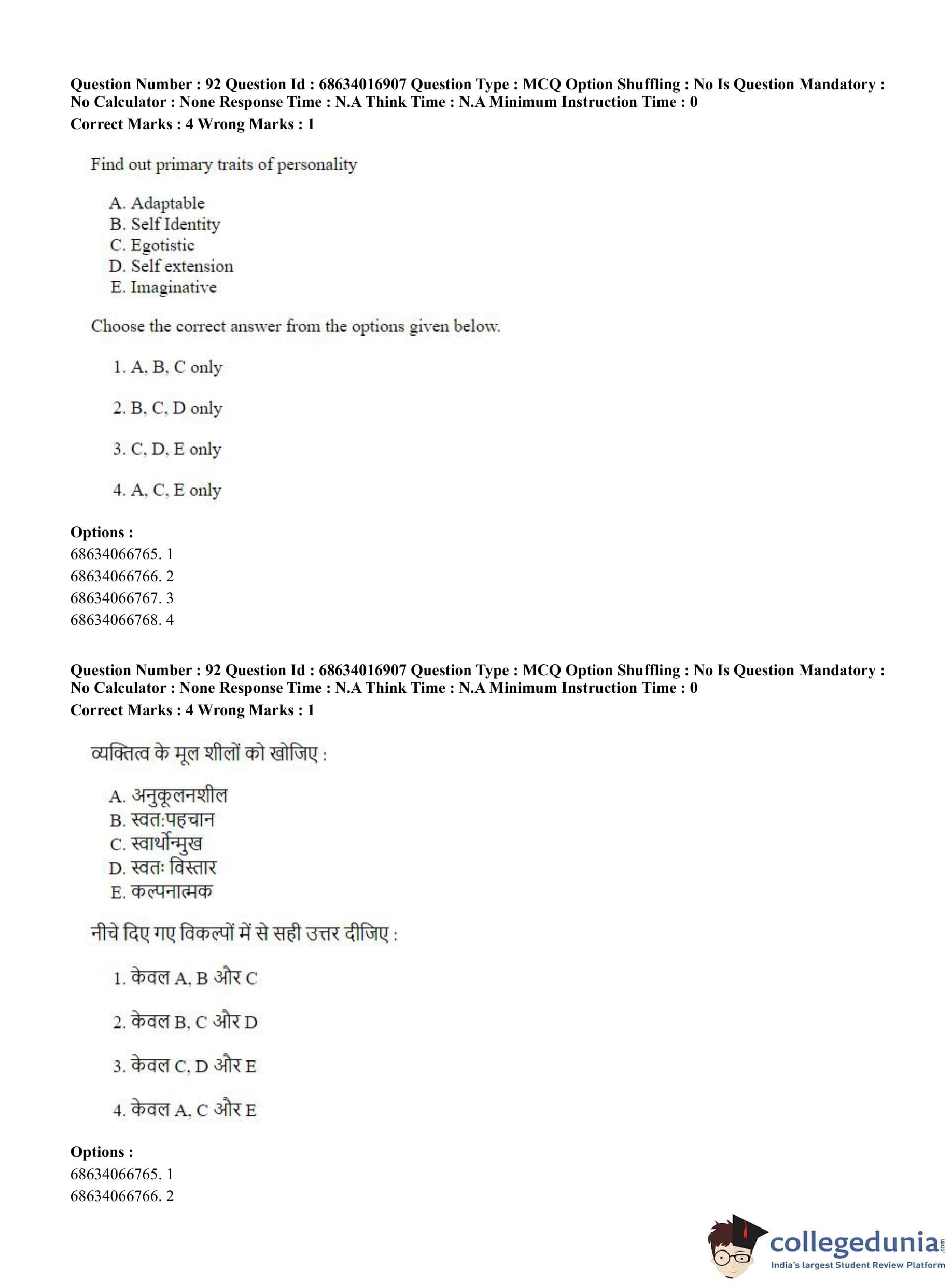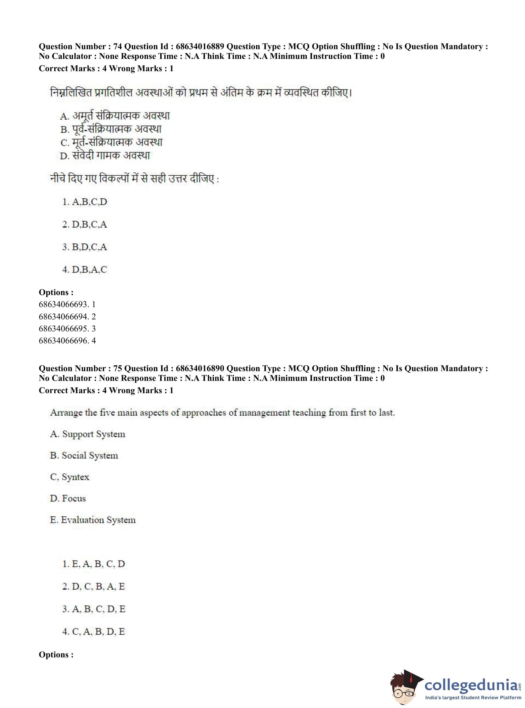 CUET PG 2023 M.Ed. Question Paper with Answer Key PDF in Hindi is available for download here. The exam was conducted by National Testing Agency (NTA) on June 11, 2023 in Shift 1. The question paper comprised a total of 100 questions divided into 2 sections.