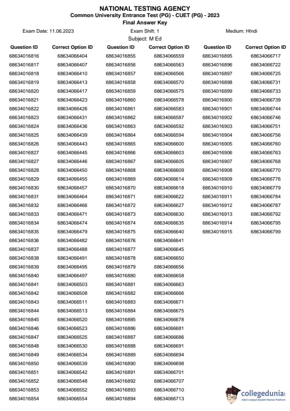 | CUET PG M.Ed. Question Paper 2023 PDF | CUET PG M.Ed. Answer Key 2023 PDF |