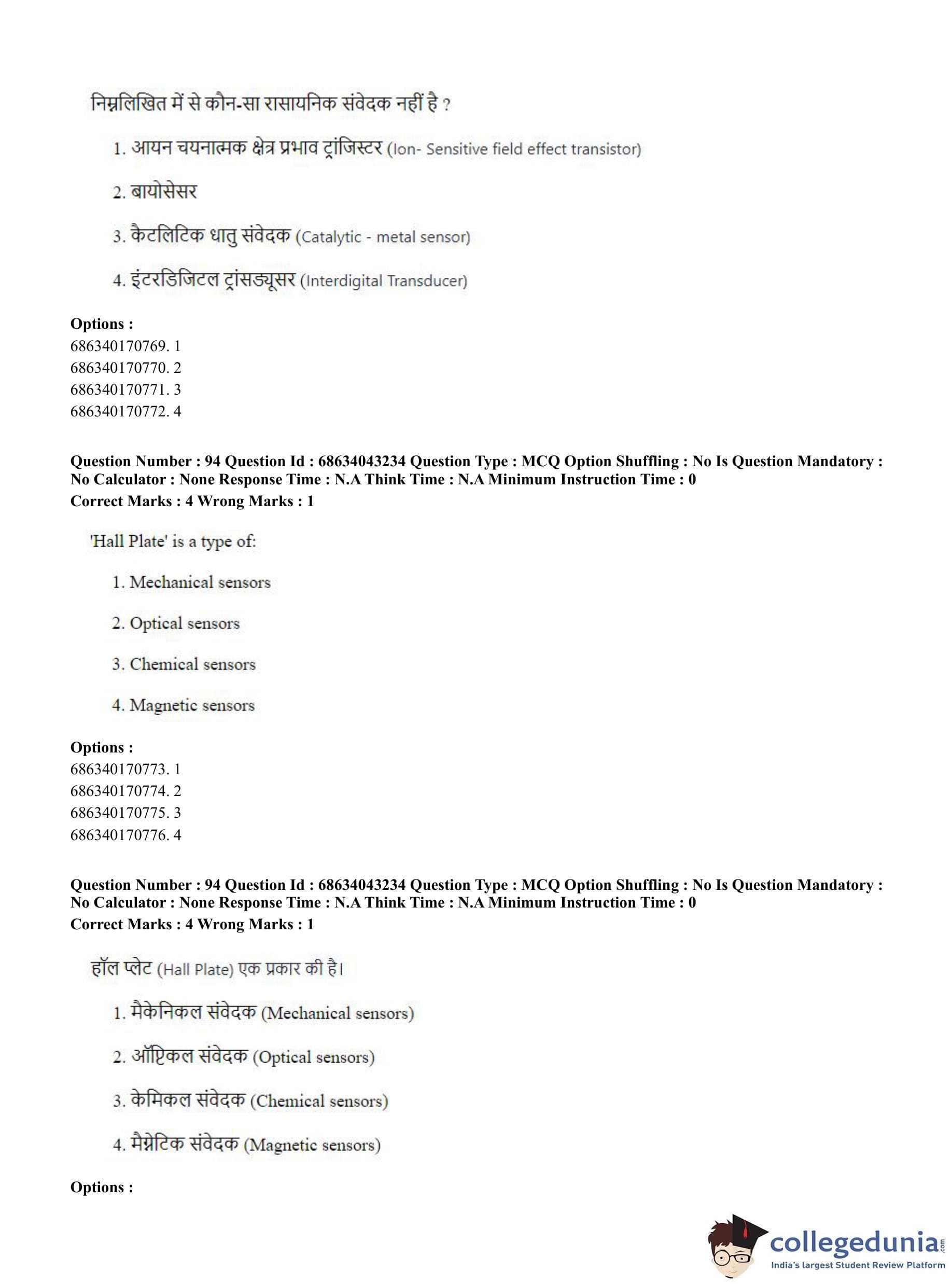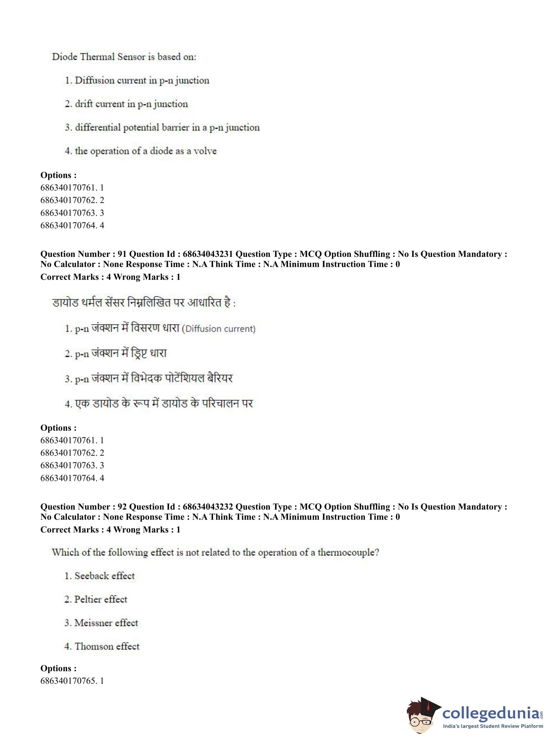 CUET PG 2023 Nanoelectronics Question Paper in Hindi (June 30 - Shift 3)