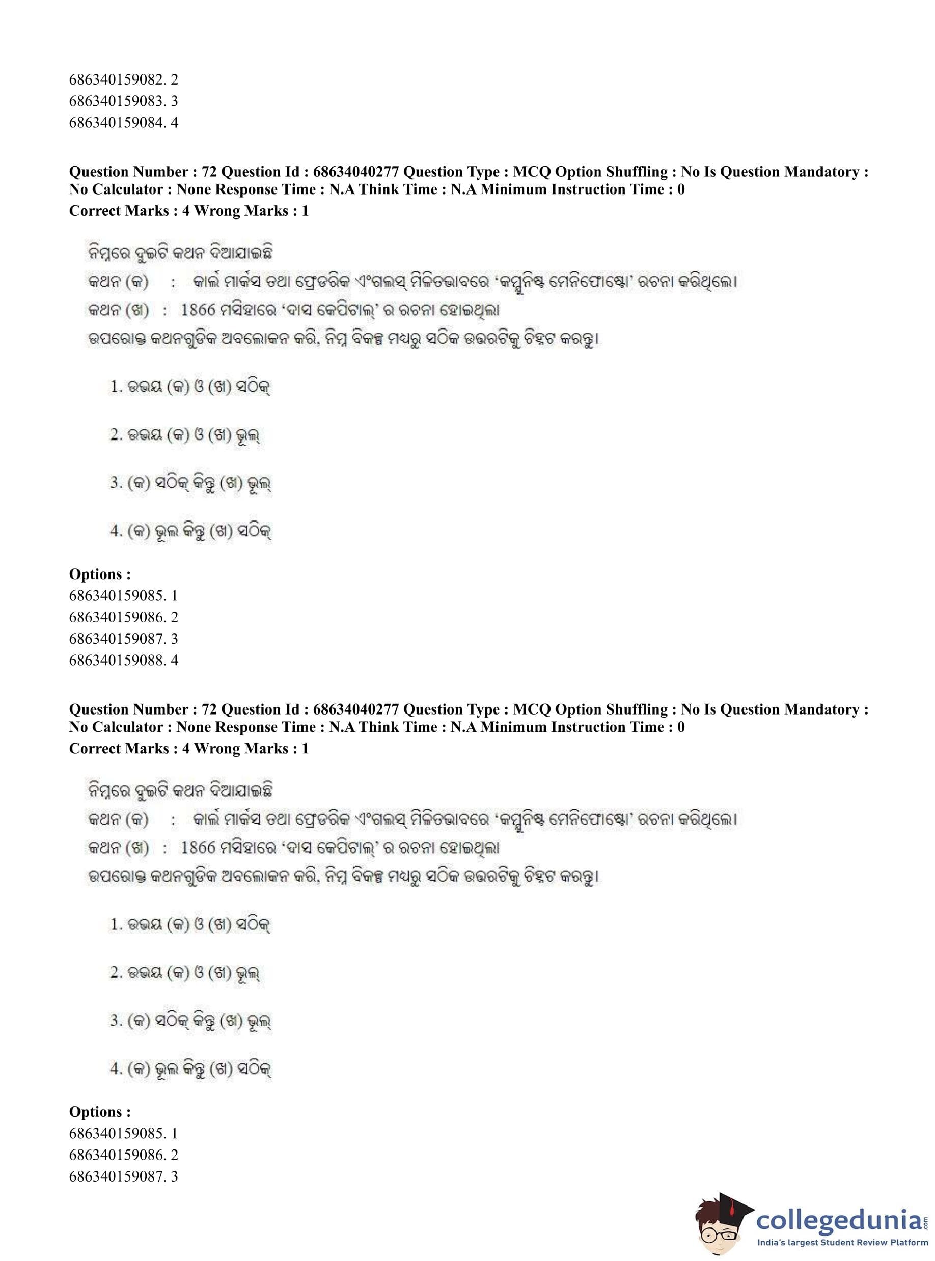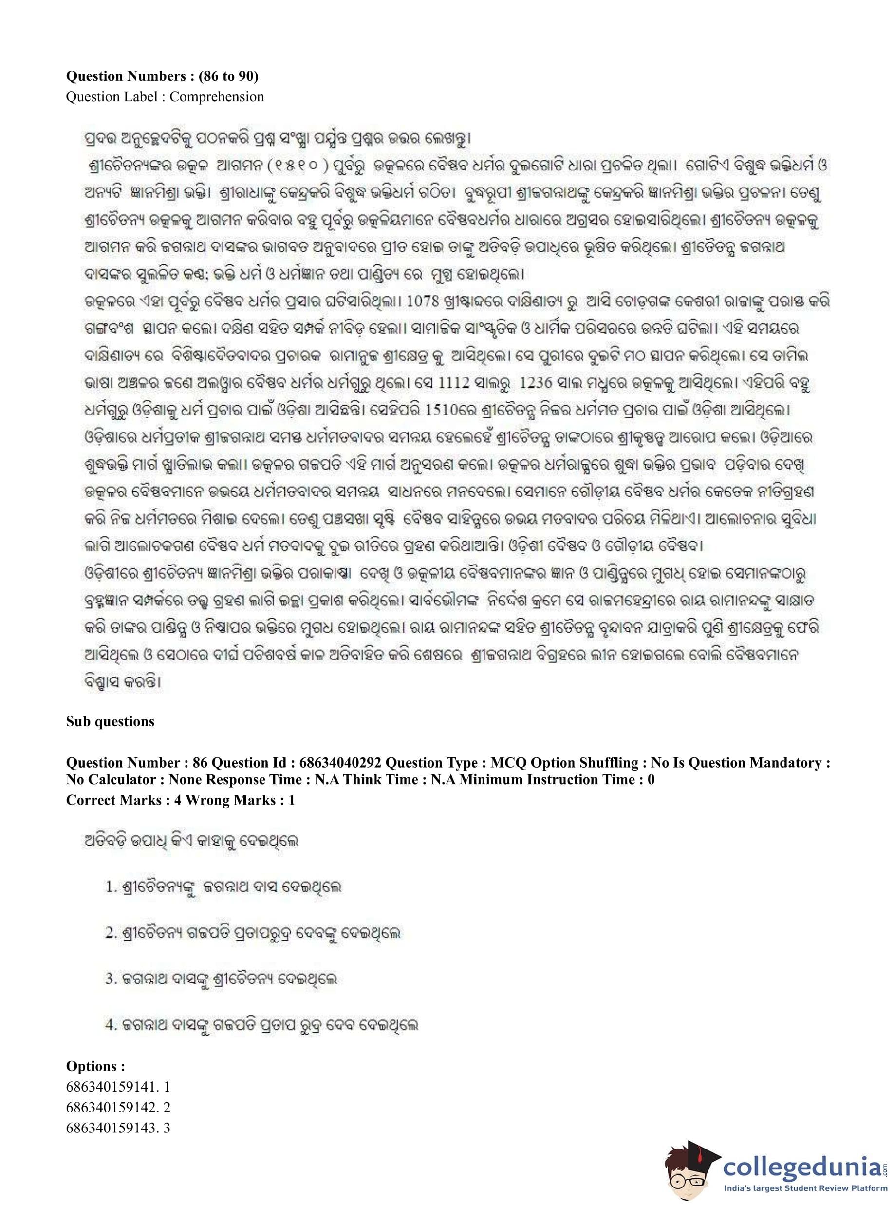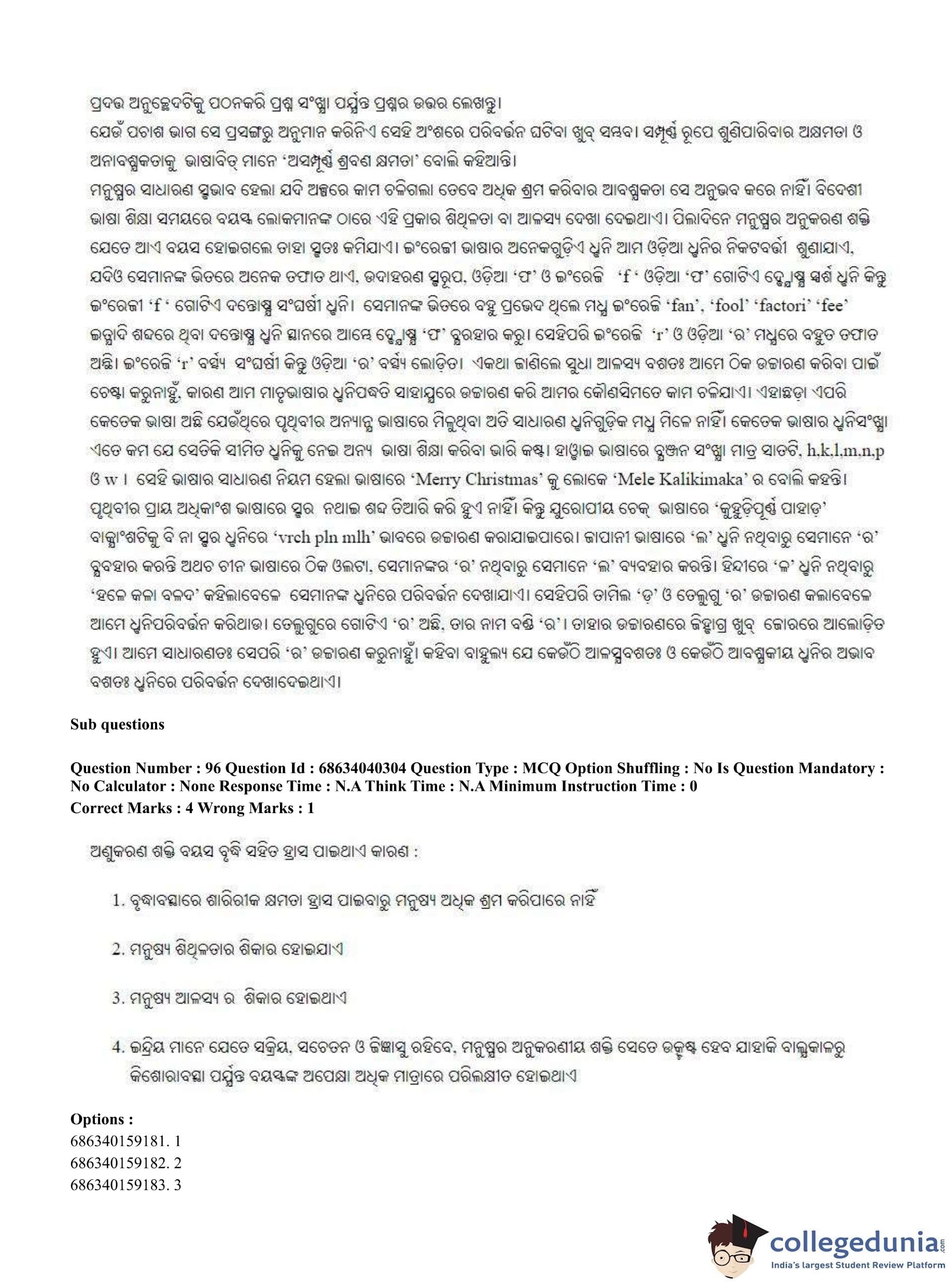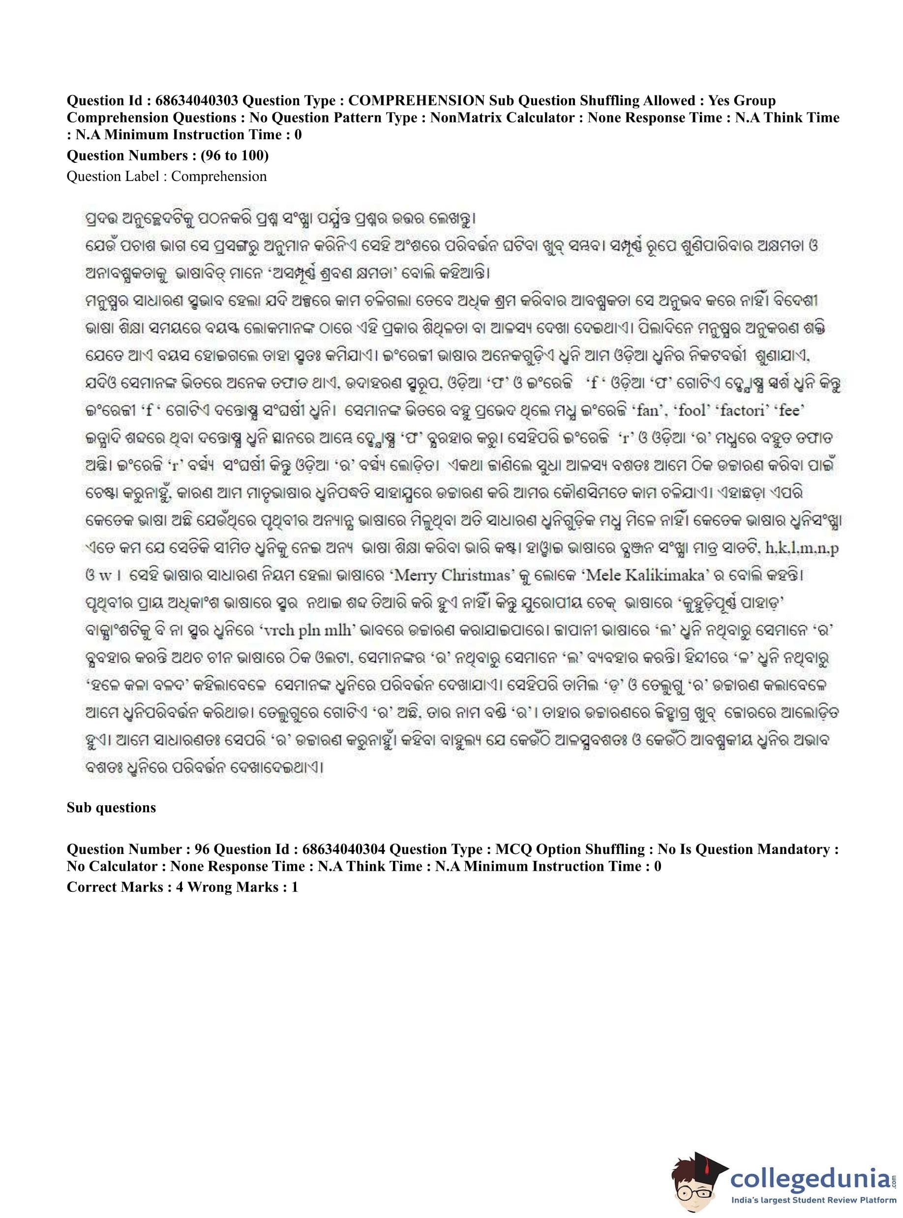 CUET PG 2023 Odia Question Paper in English (June 25 - Shift 3)