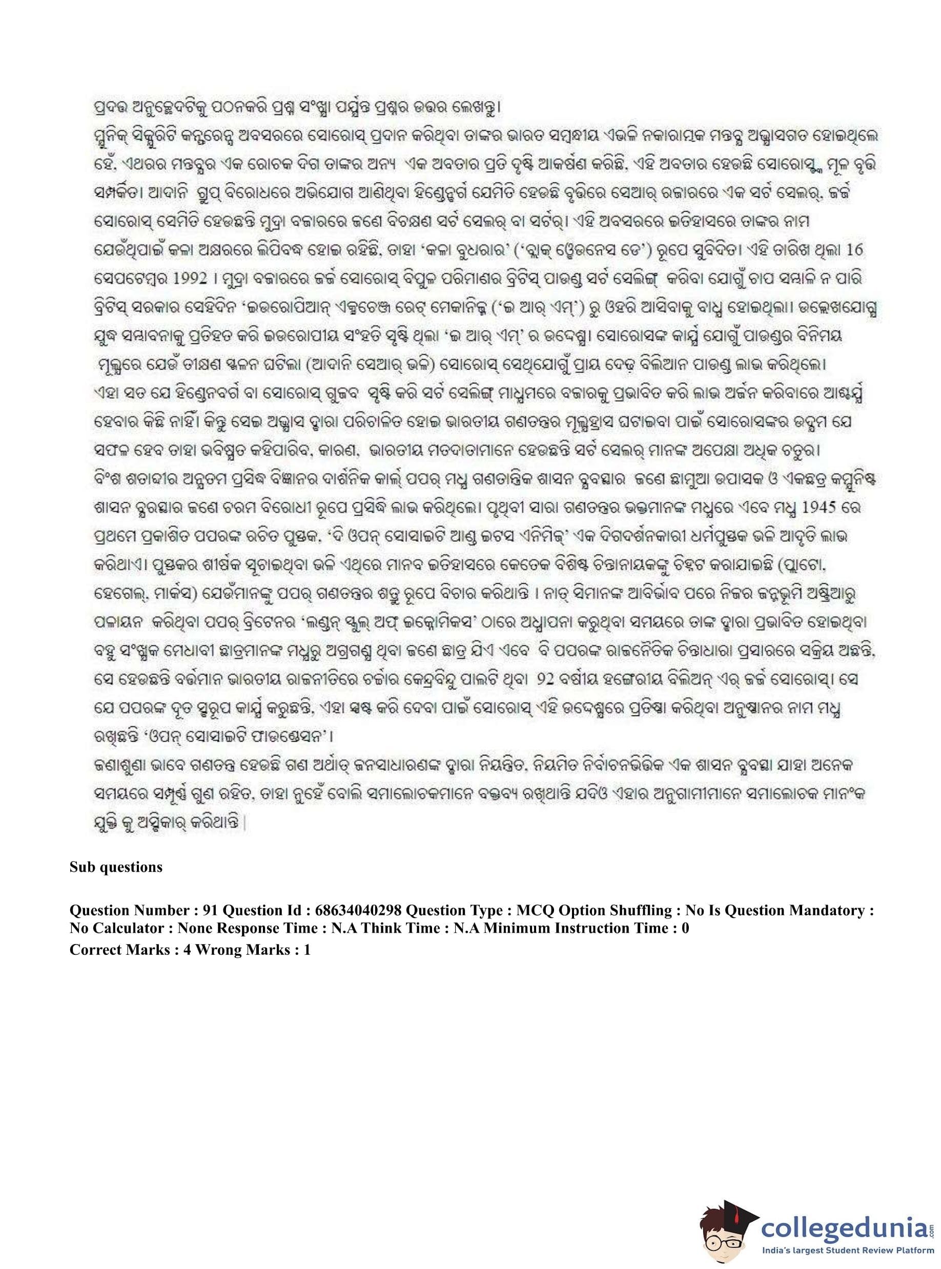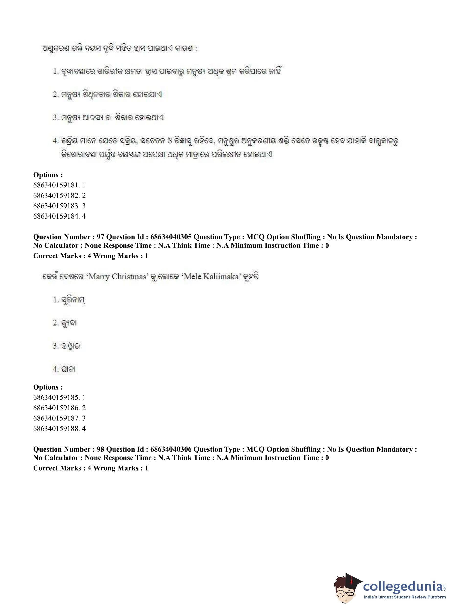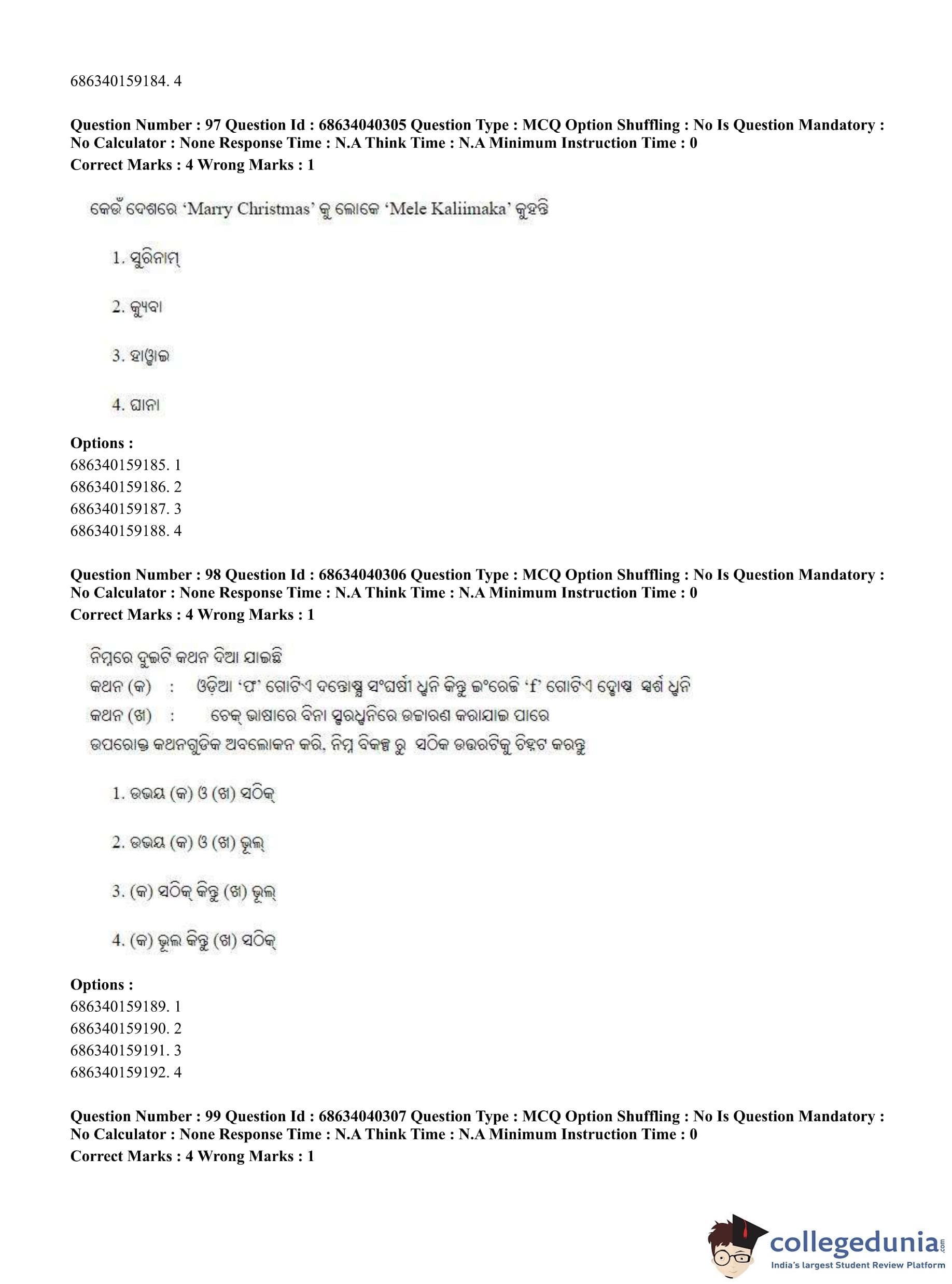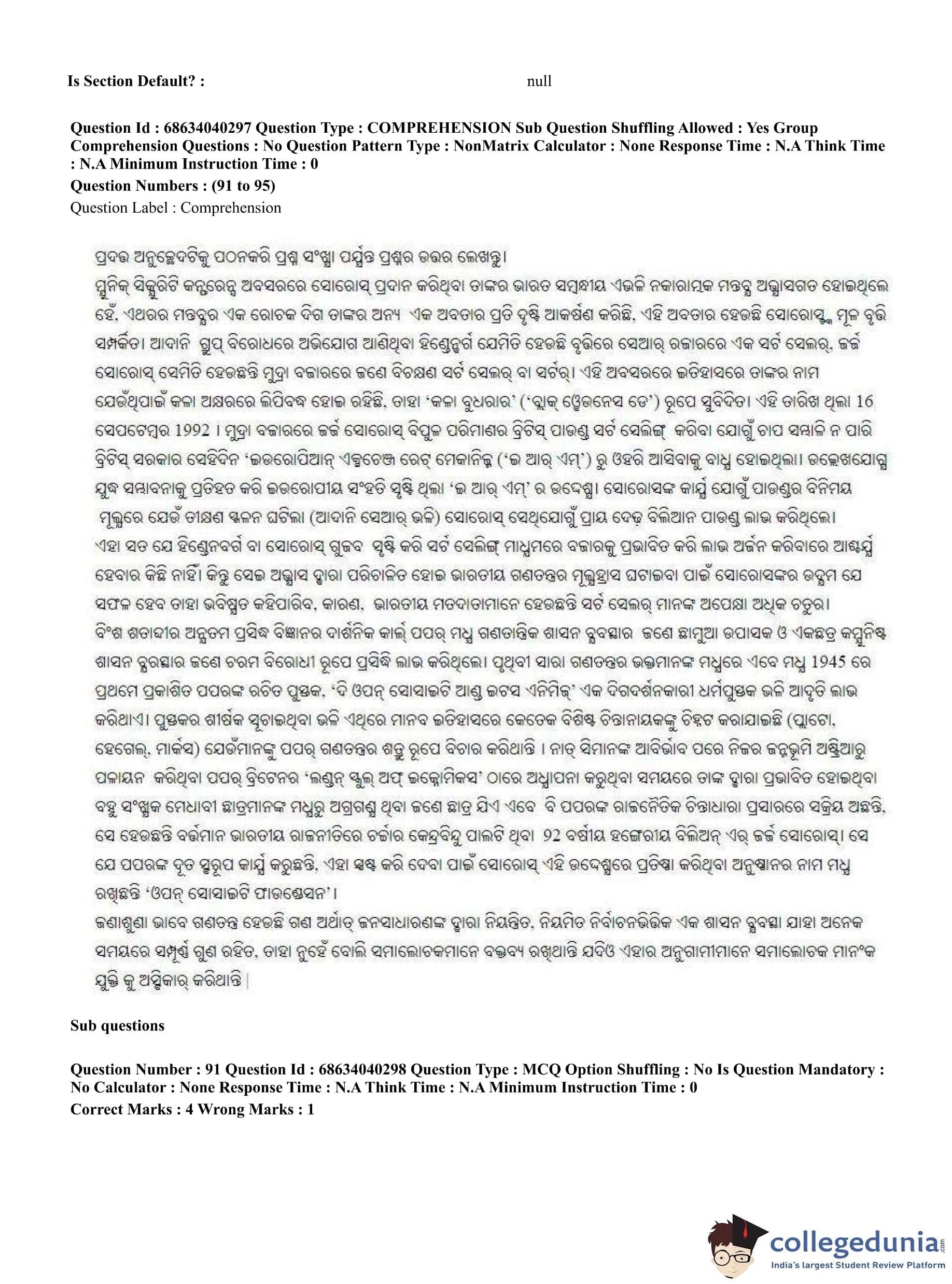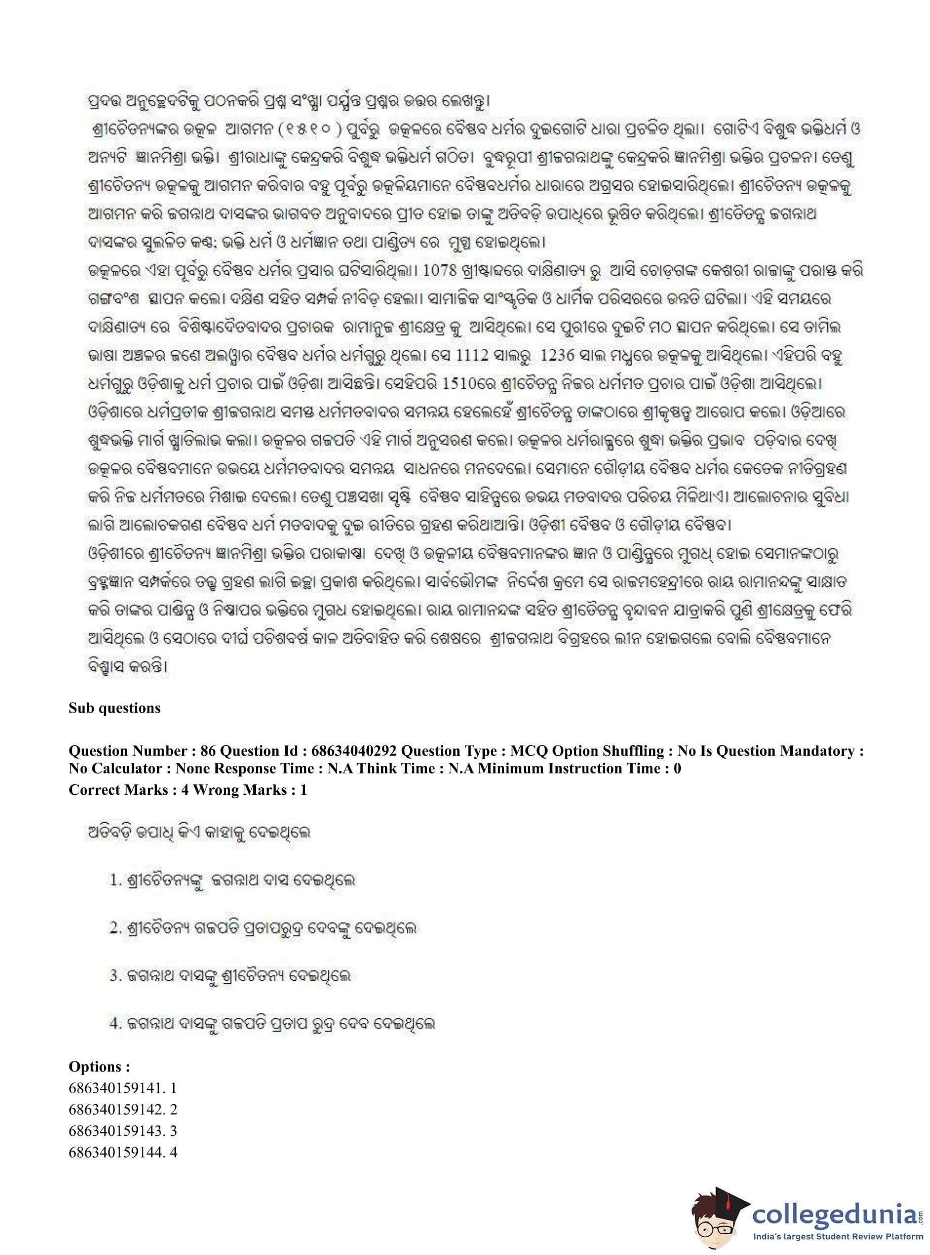 CUET PG 2023 Odia Question Paper in English (June 25 - Shift 3)