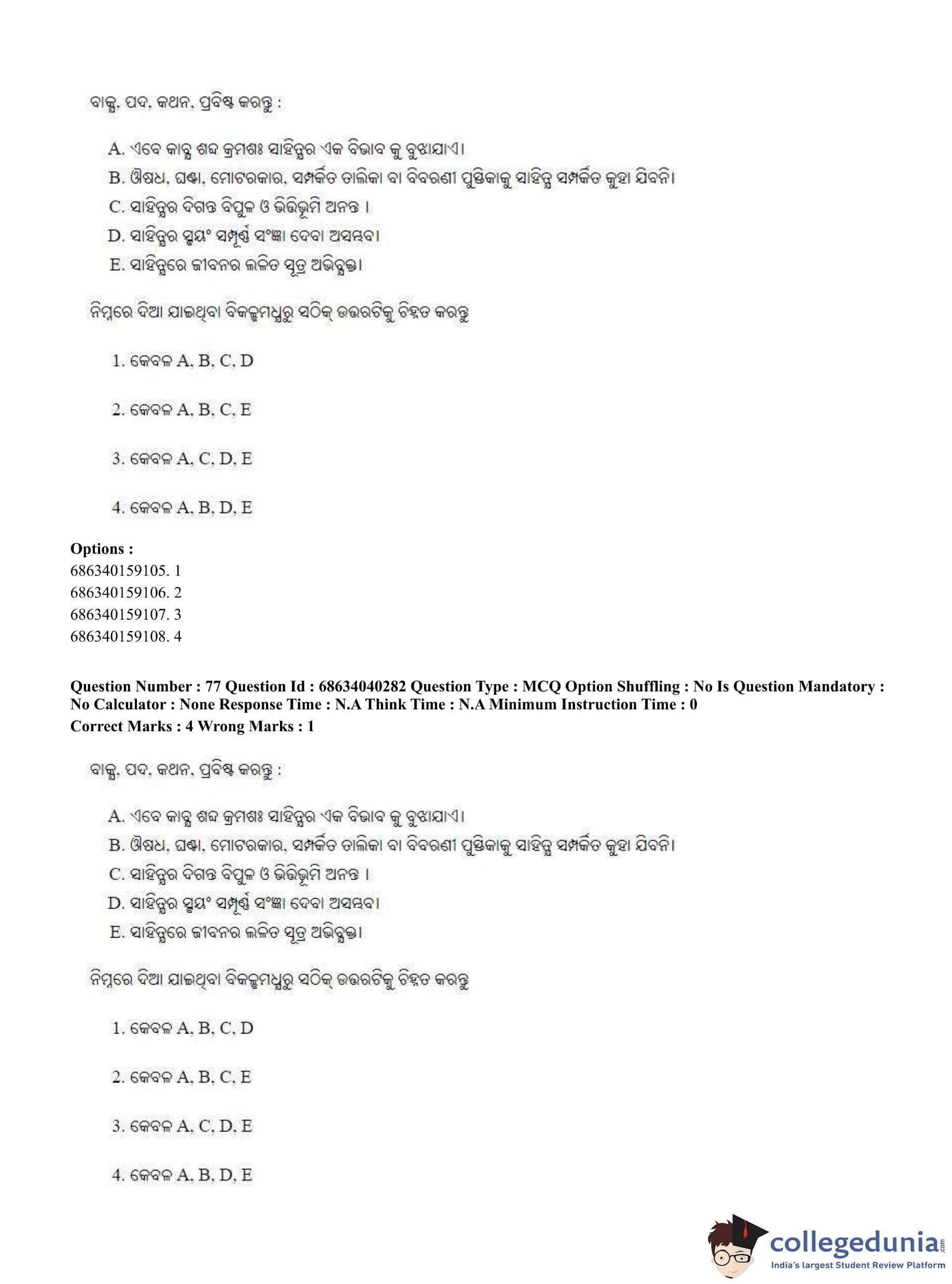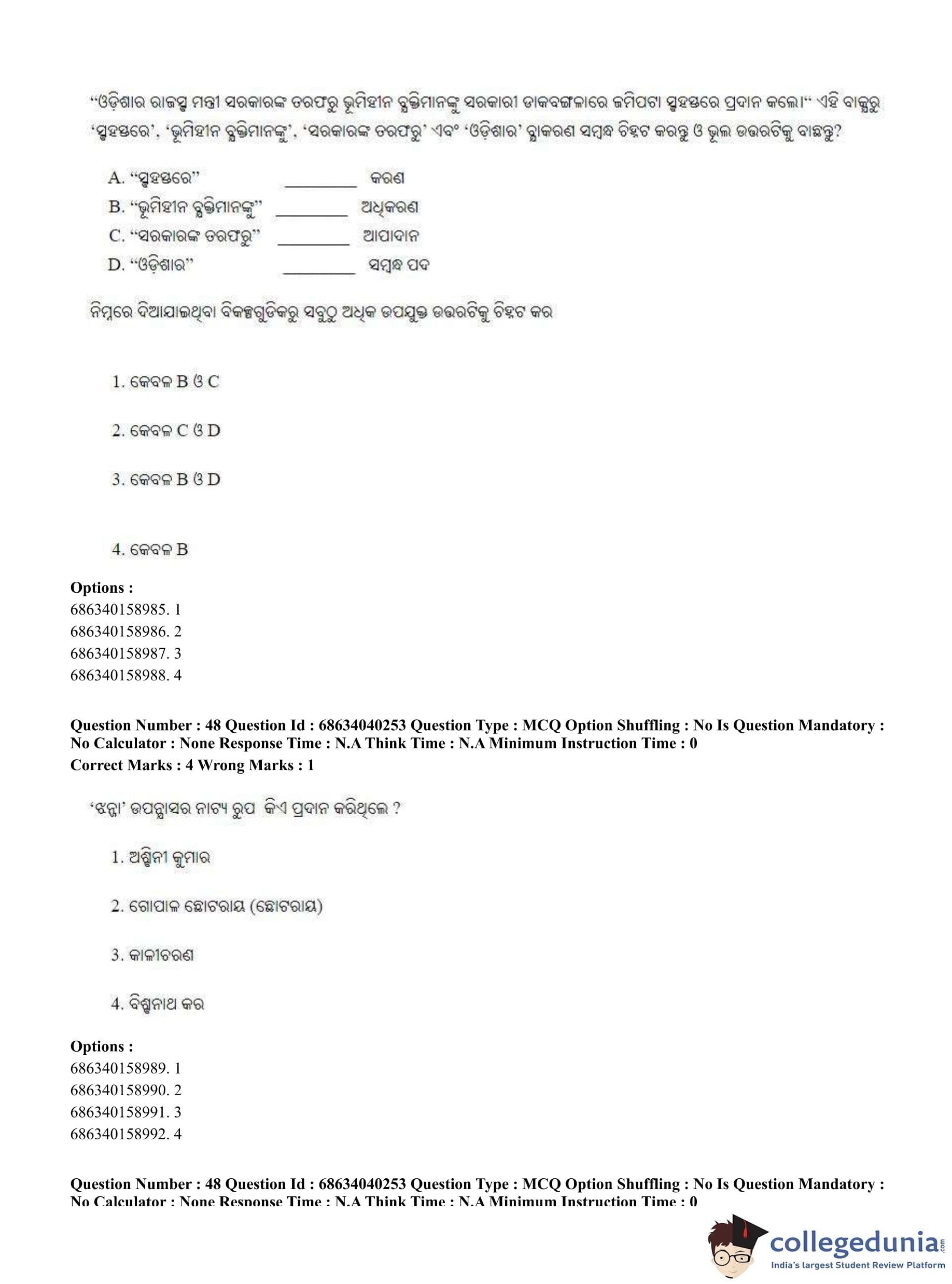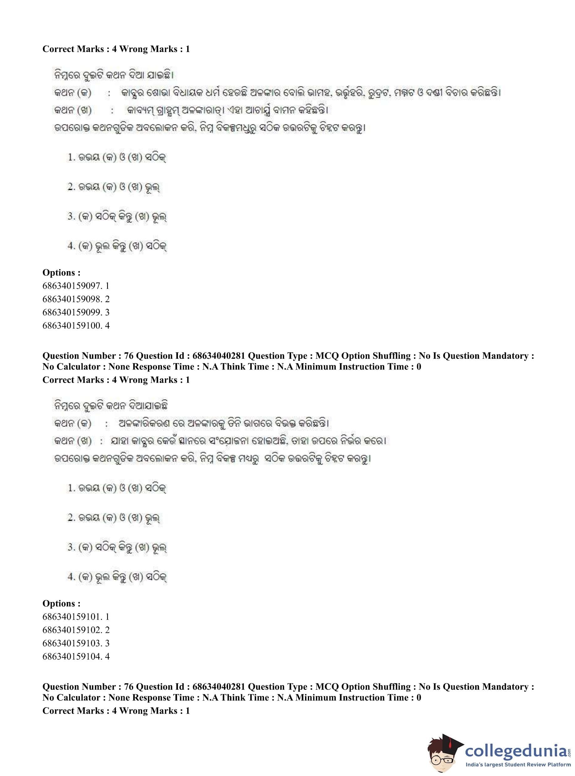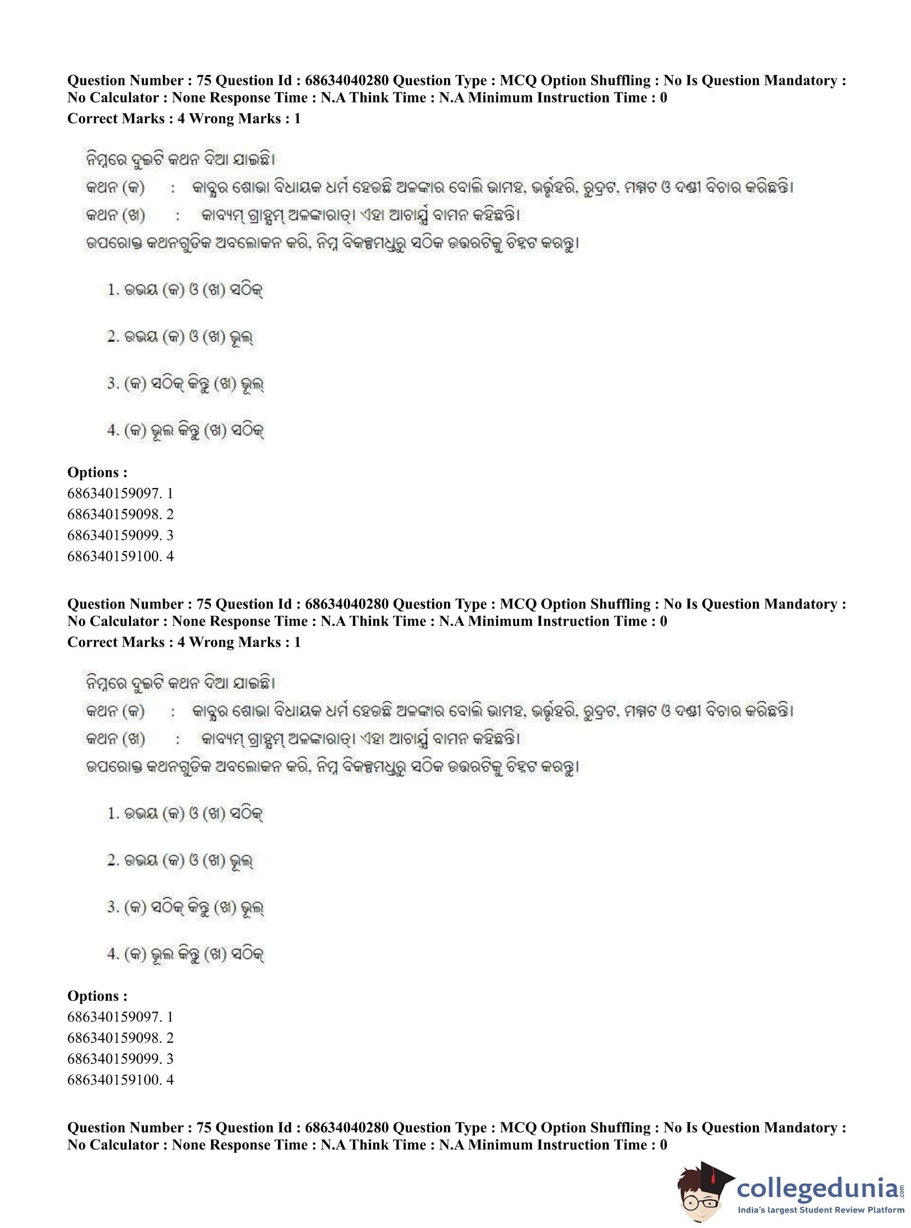 CUET PG 2023 Odia Question Paper in English (June 25 - Shift 3)