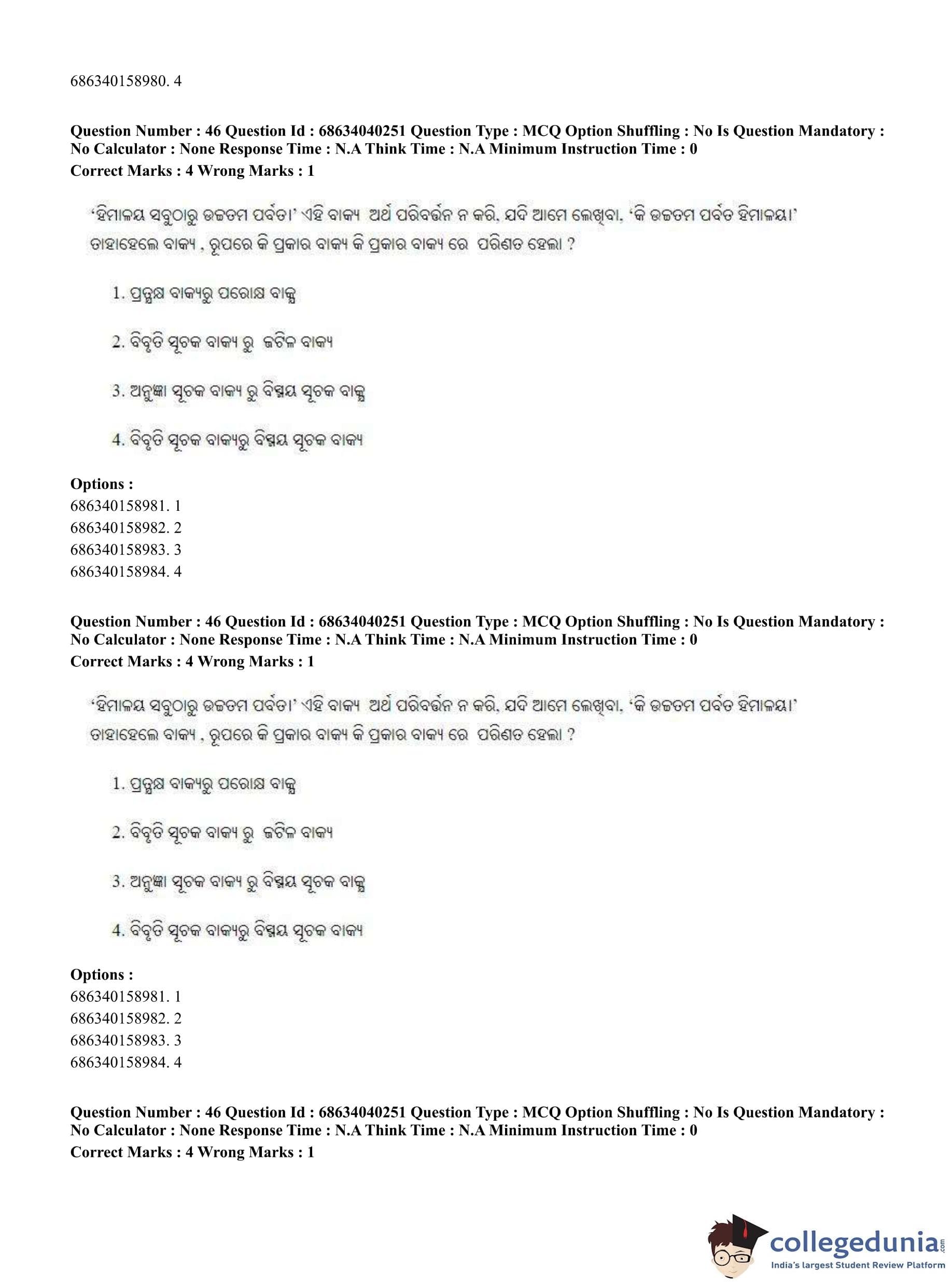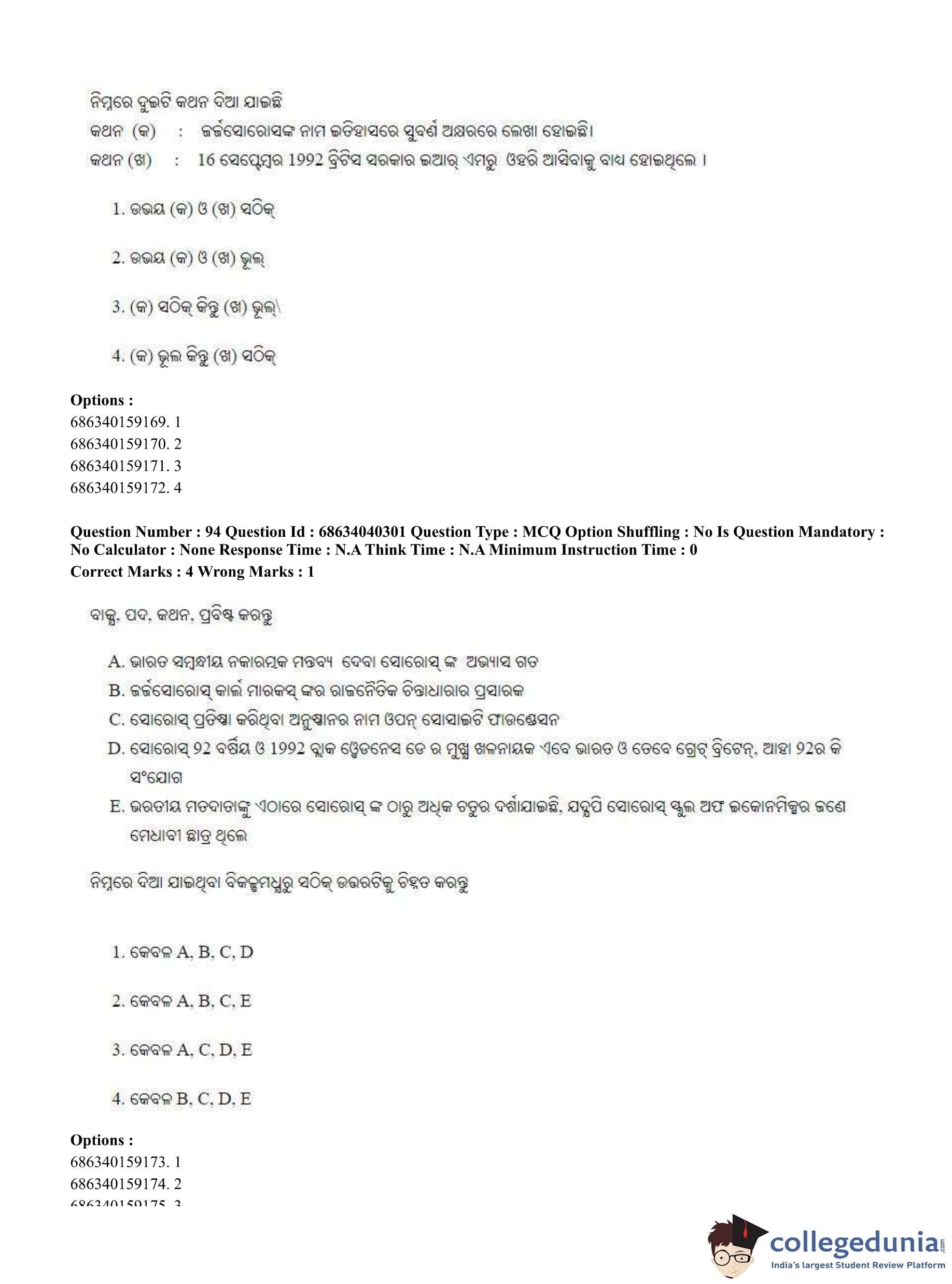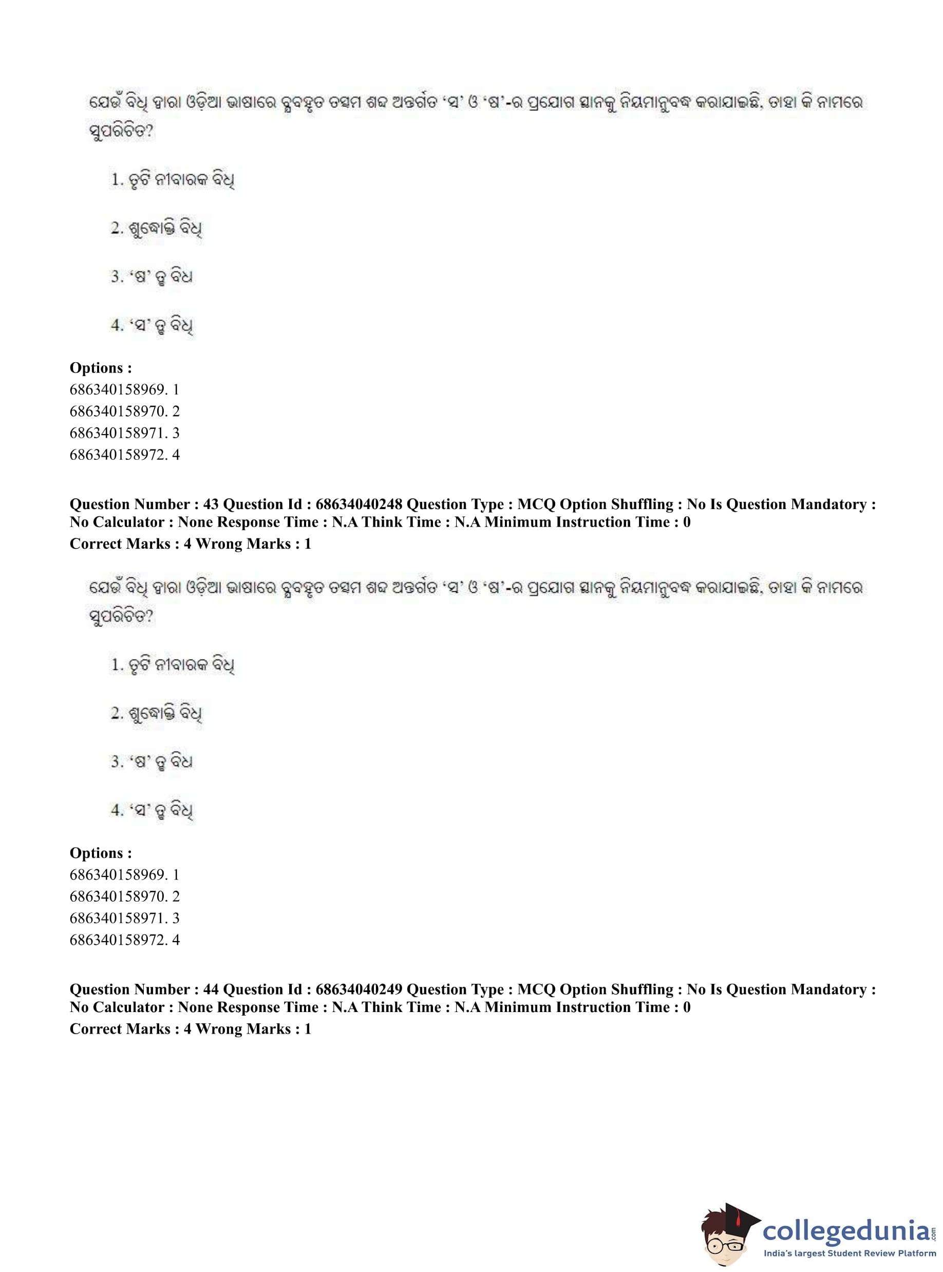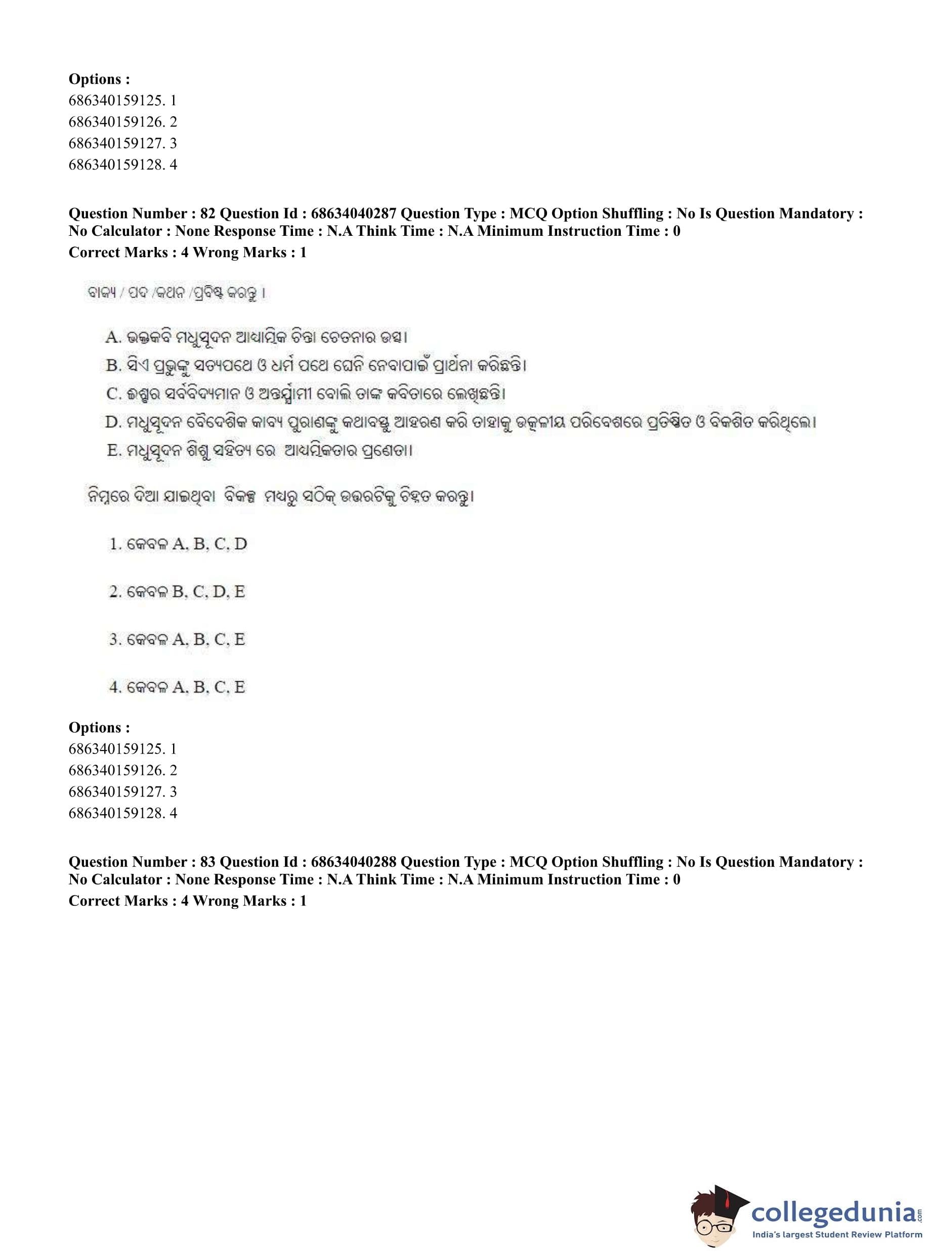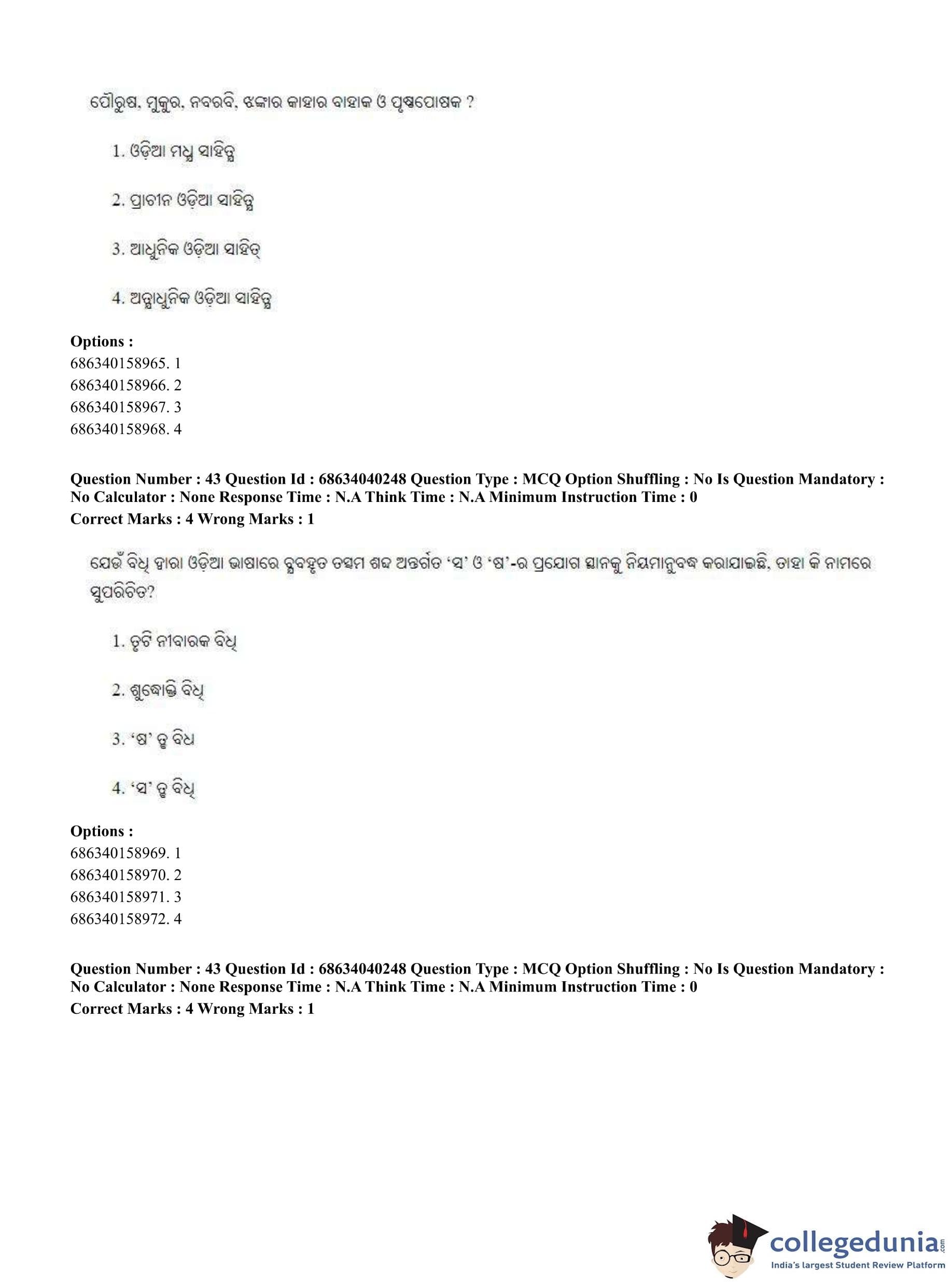 CUET PG 2023 Odia Question Paper in English (June 25 - Shift 3)