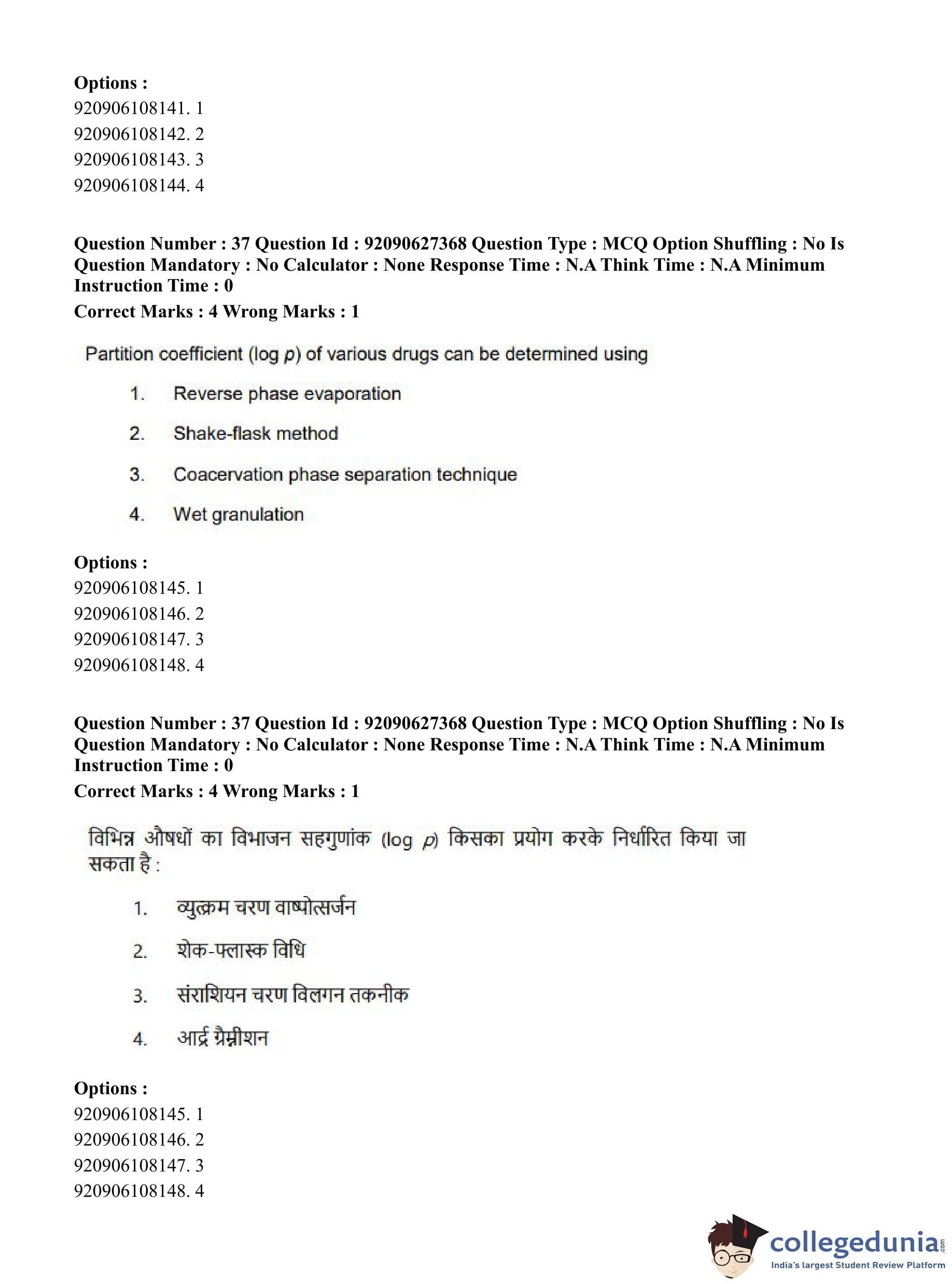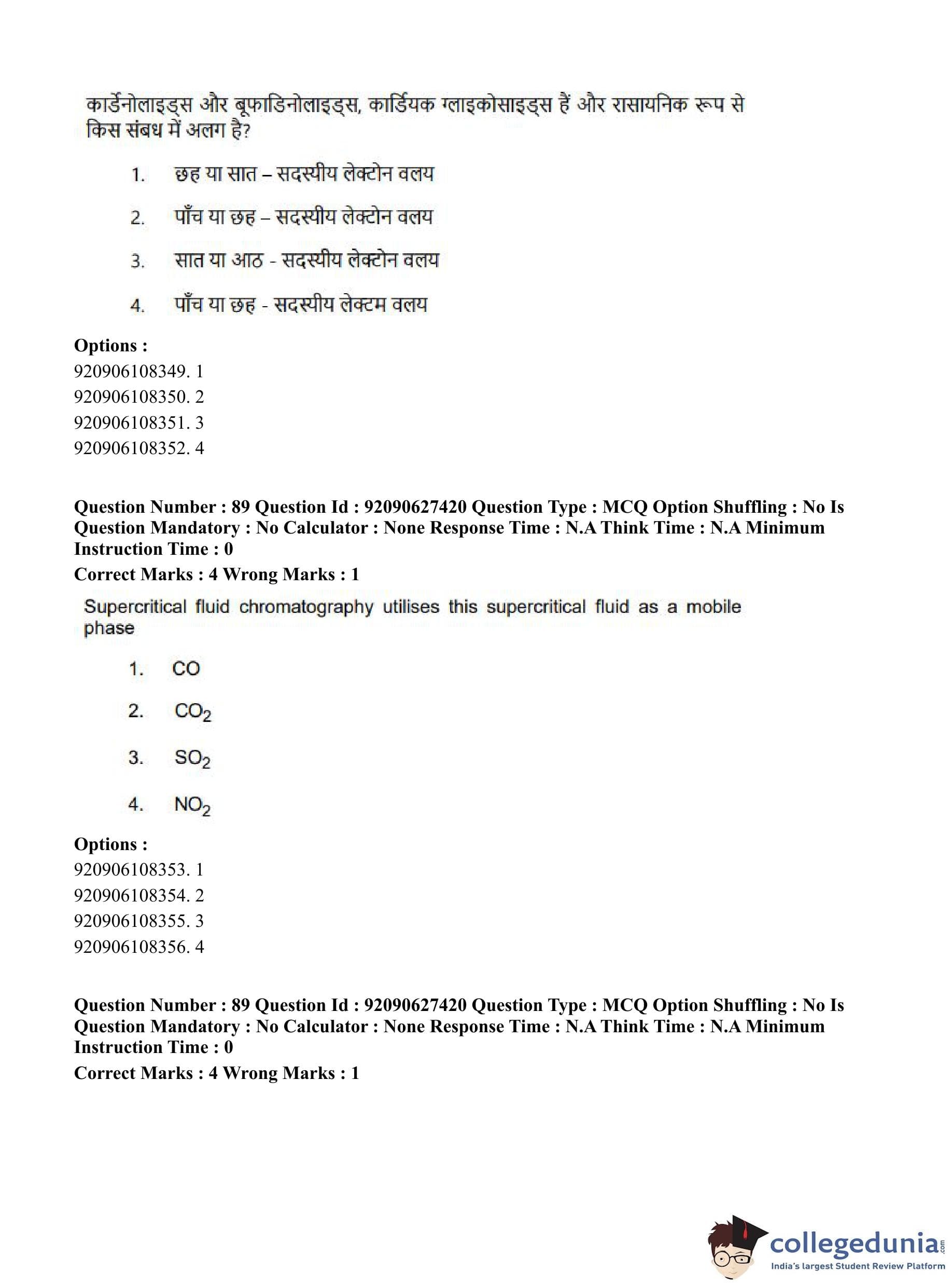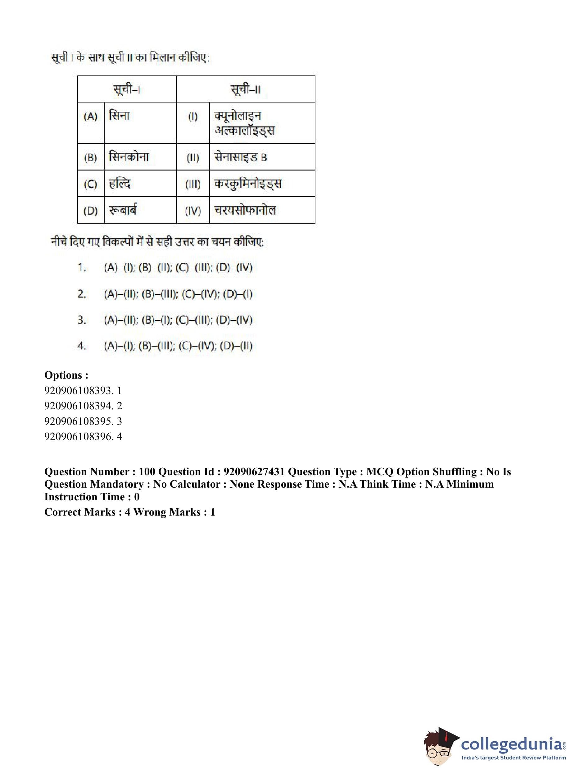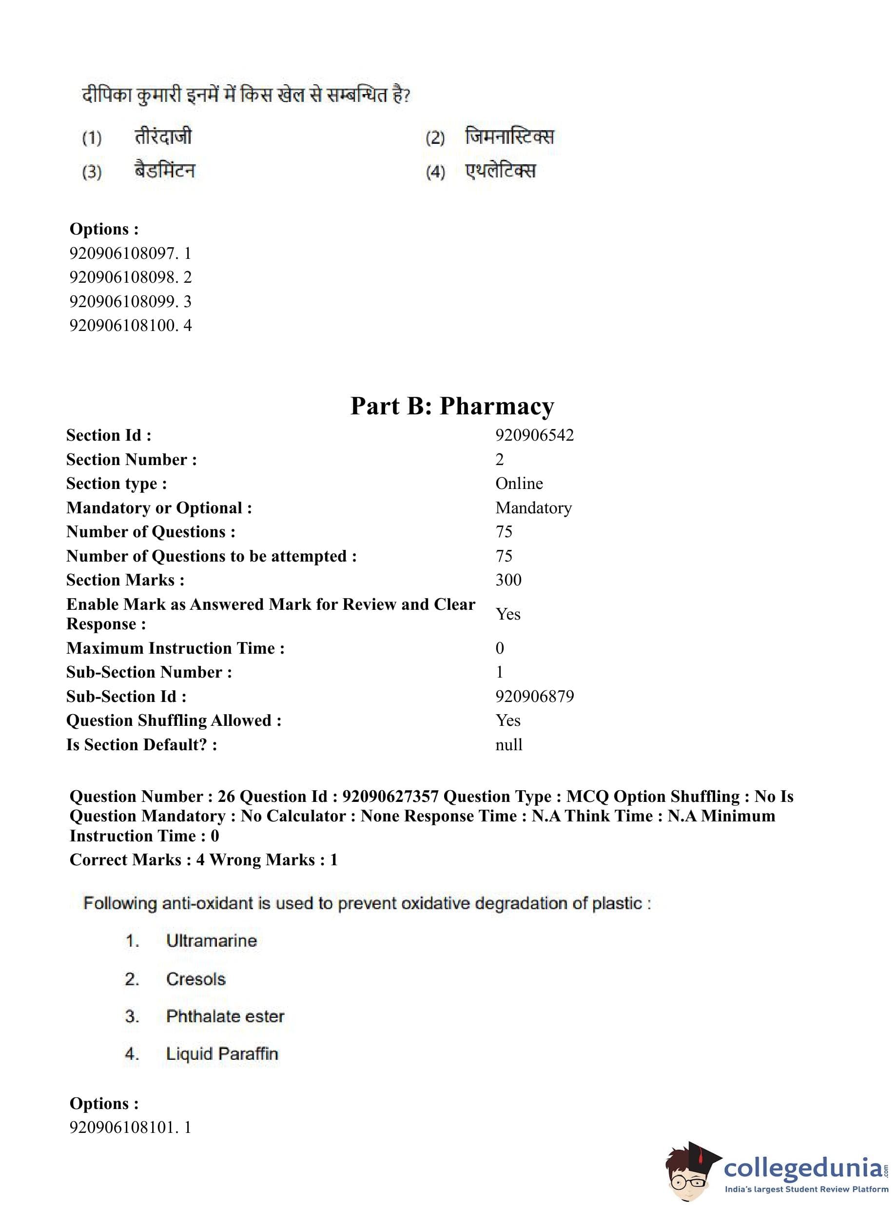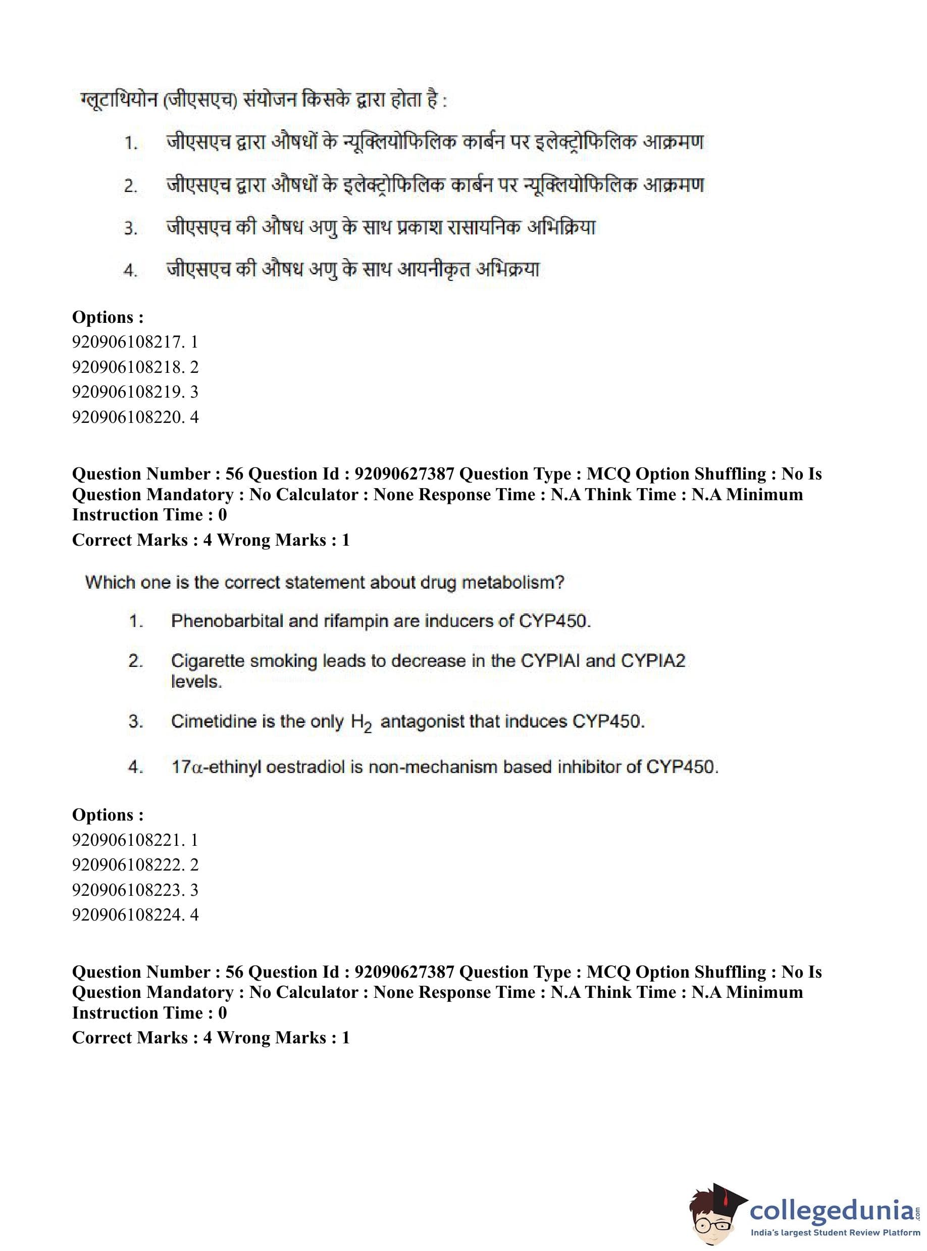 CUET PG 2023 Pharmacy Question Paper in Hindi (June 26 - Shift 3)
