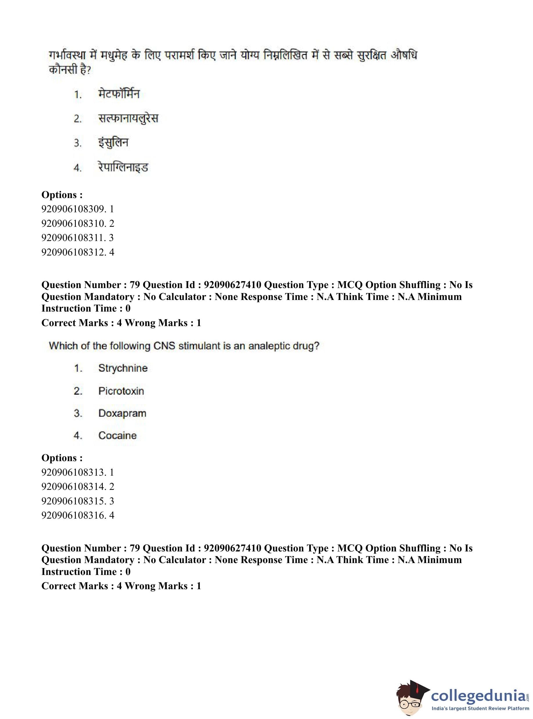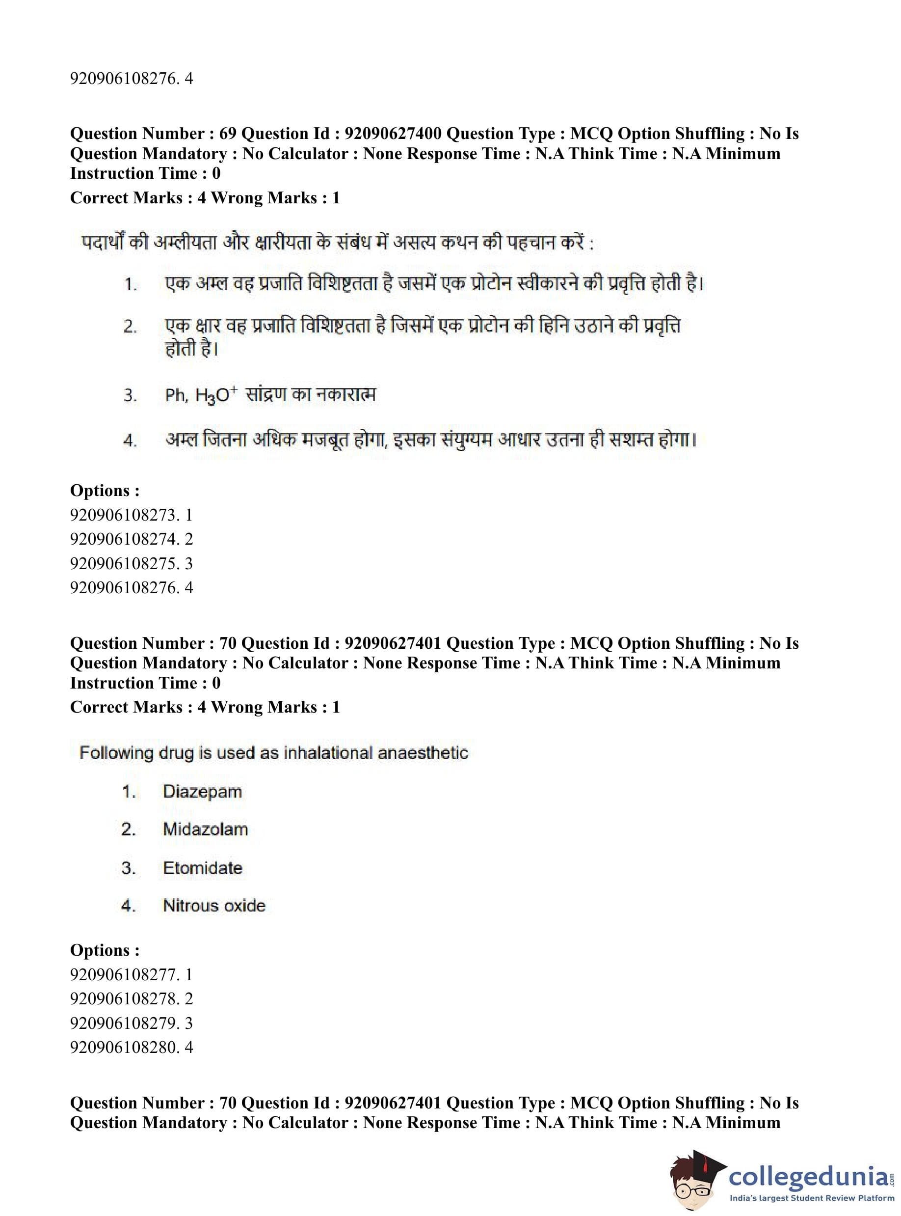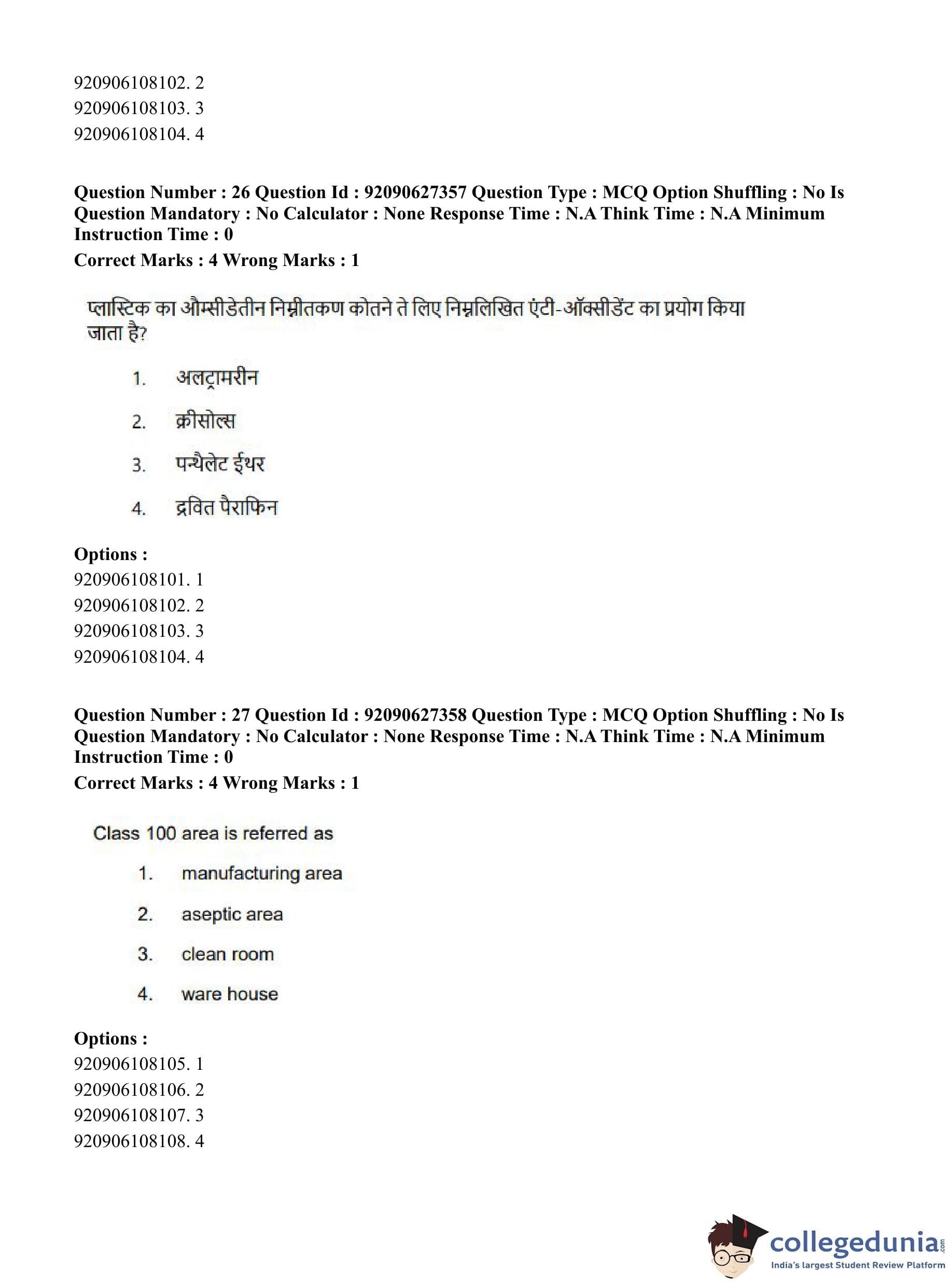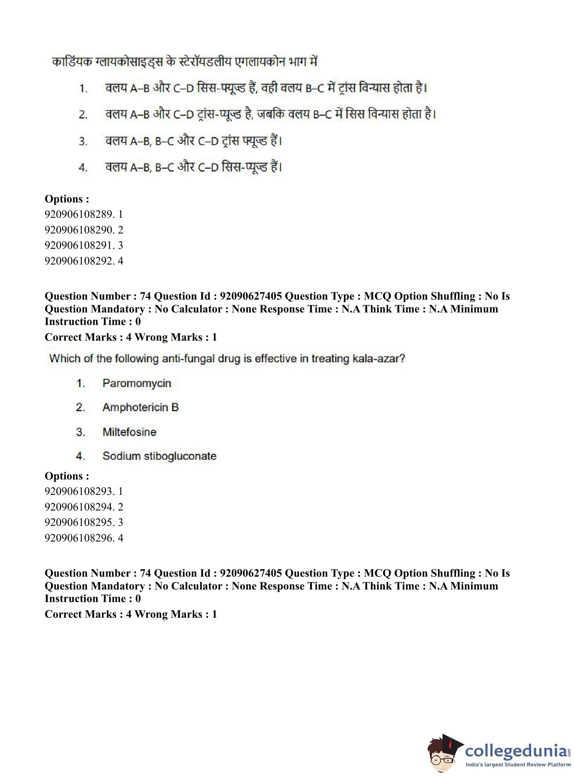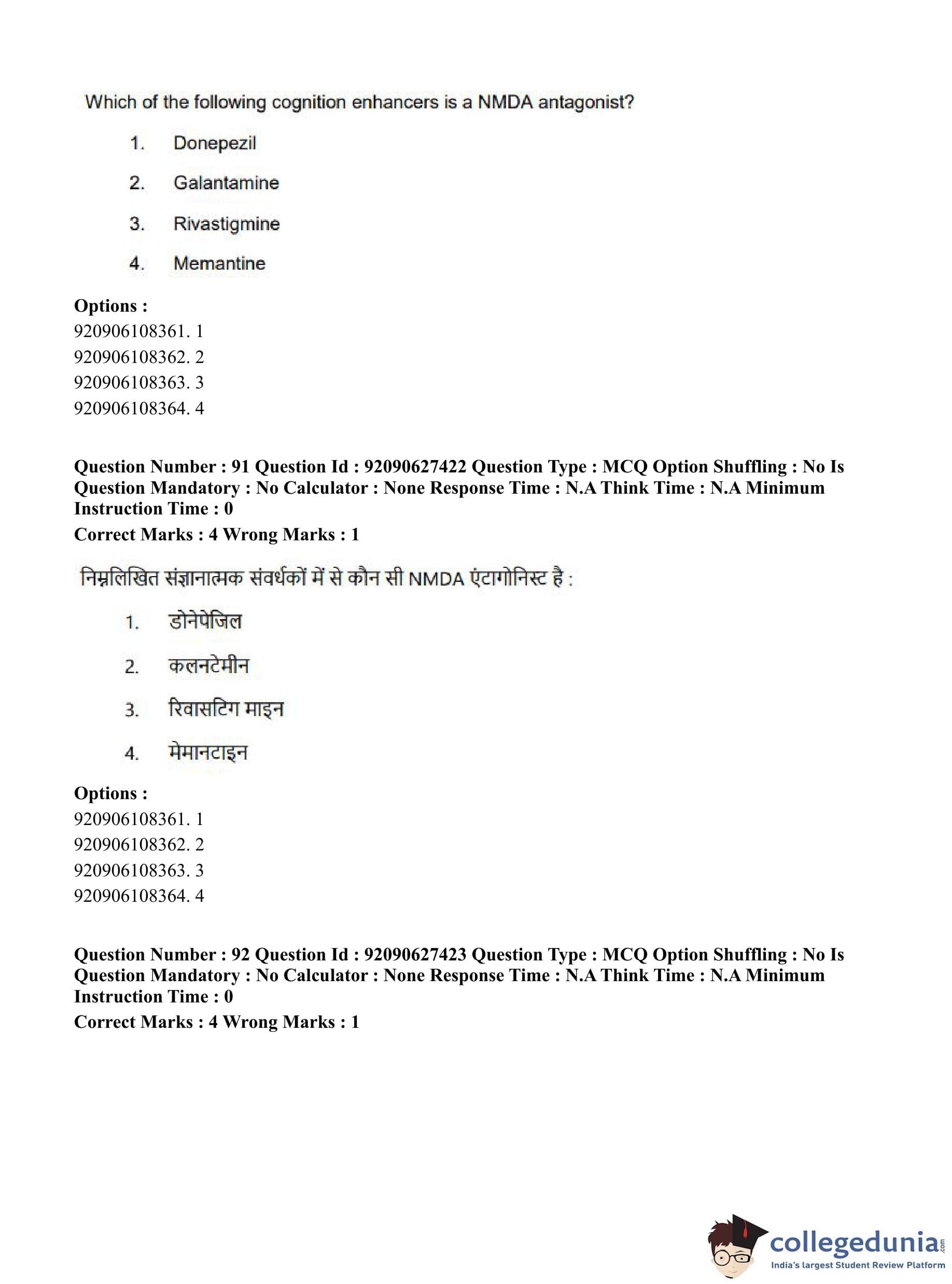 CUET PG 2023 Pharmacy Question Paper in Hindi (June 26 - Shift 3)