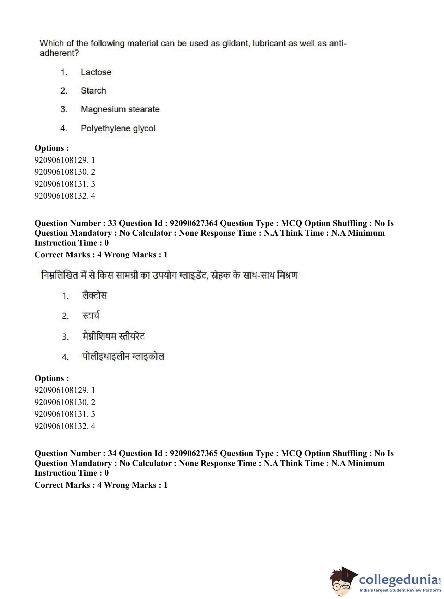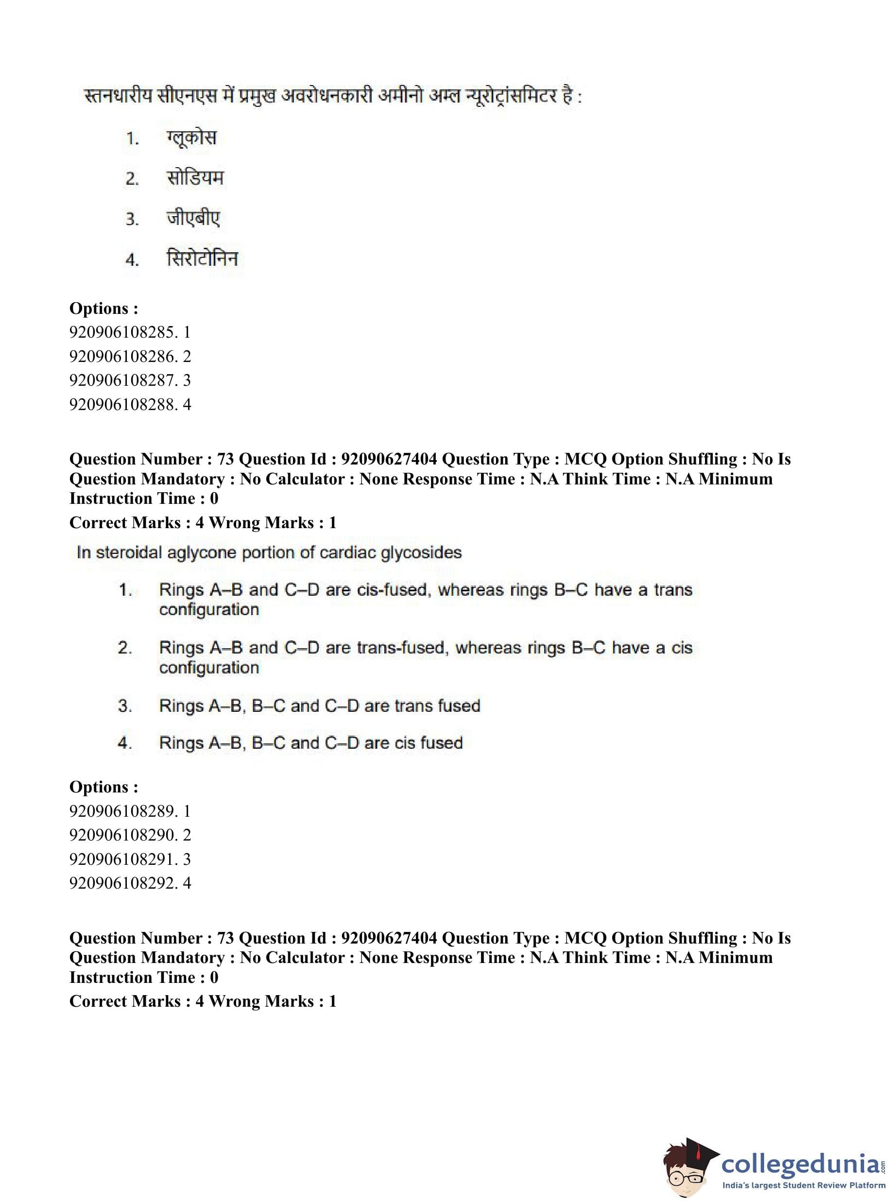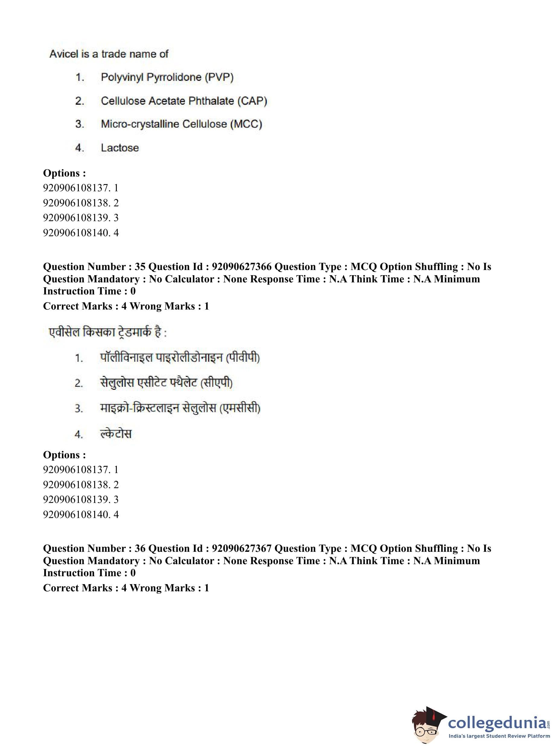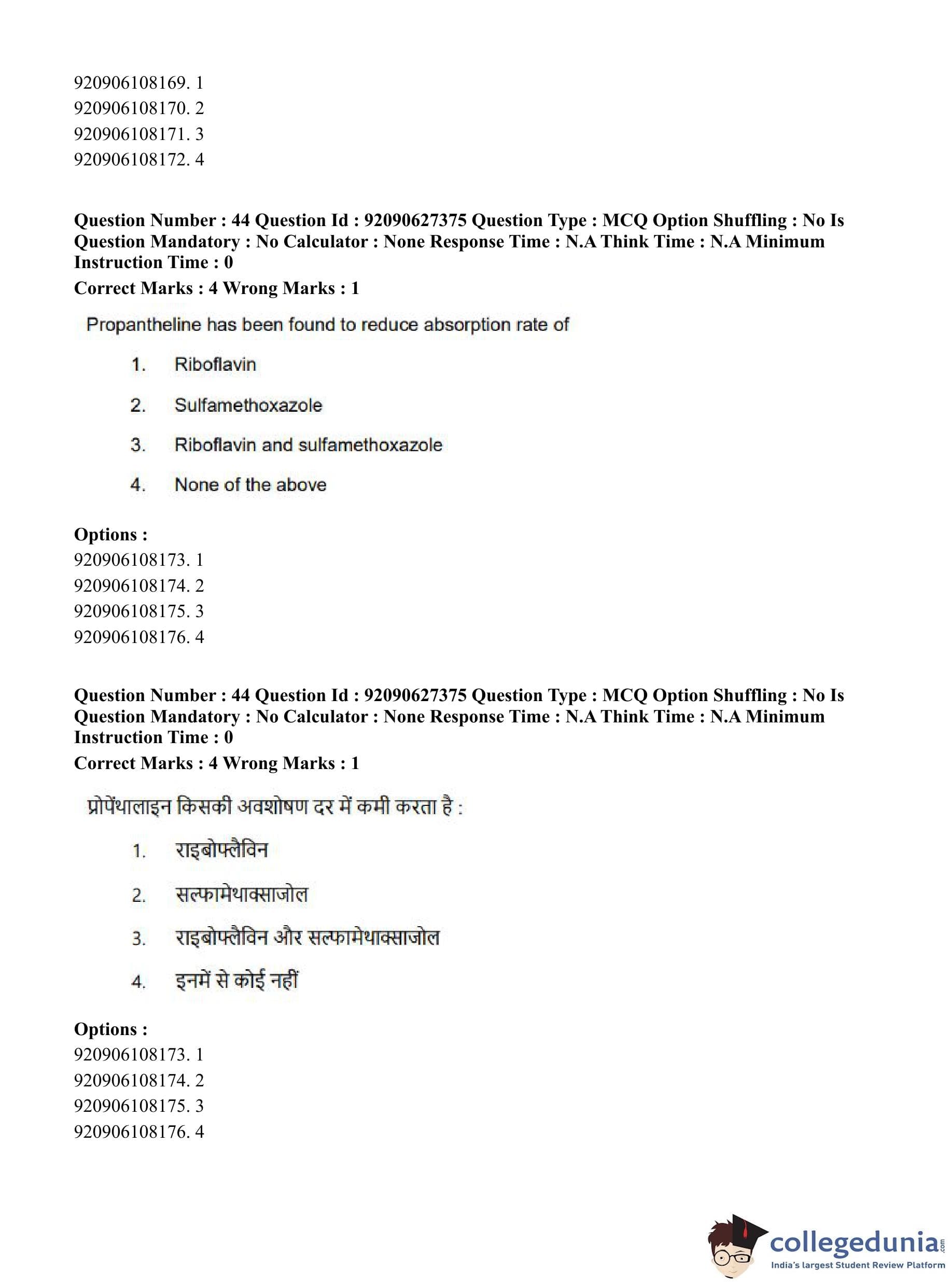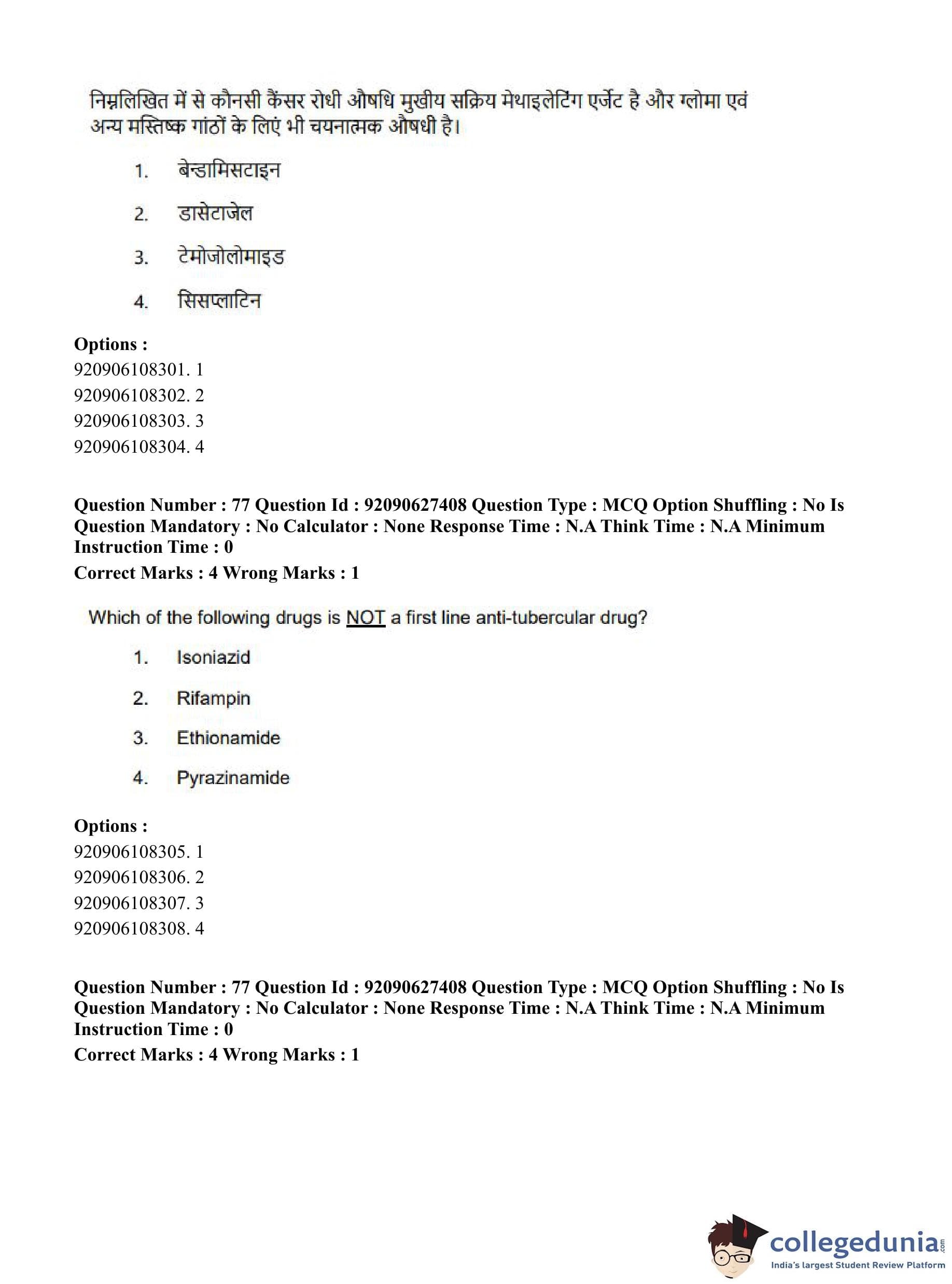CUET PG 2023 Pharmacy Question Paper in Hindi (June 26 - Shift 3)