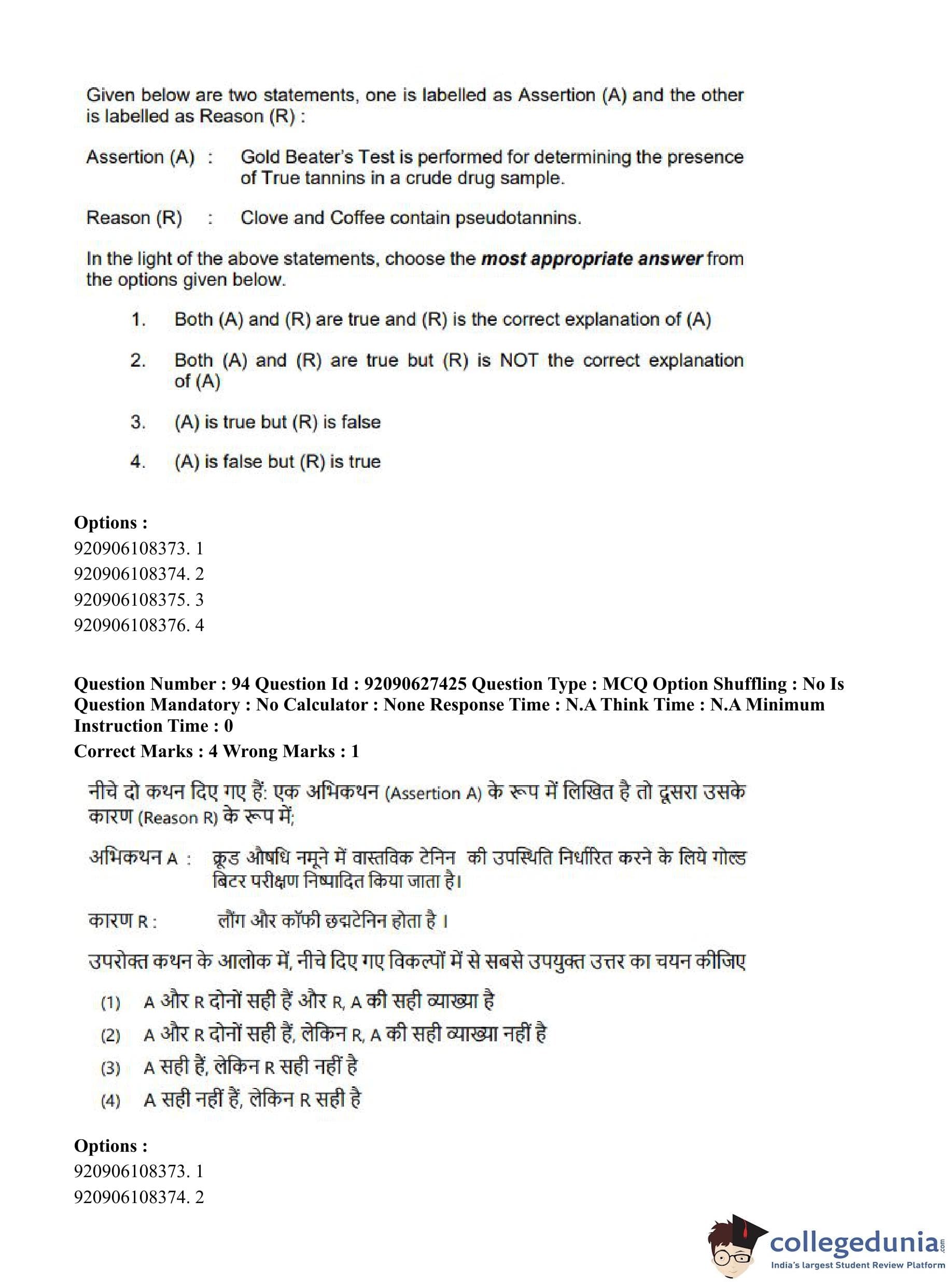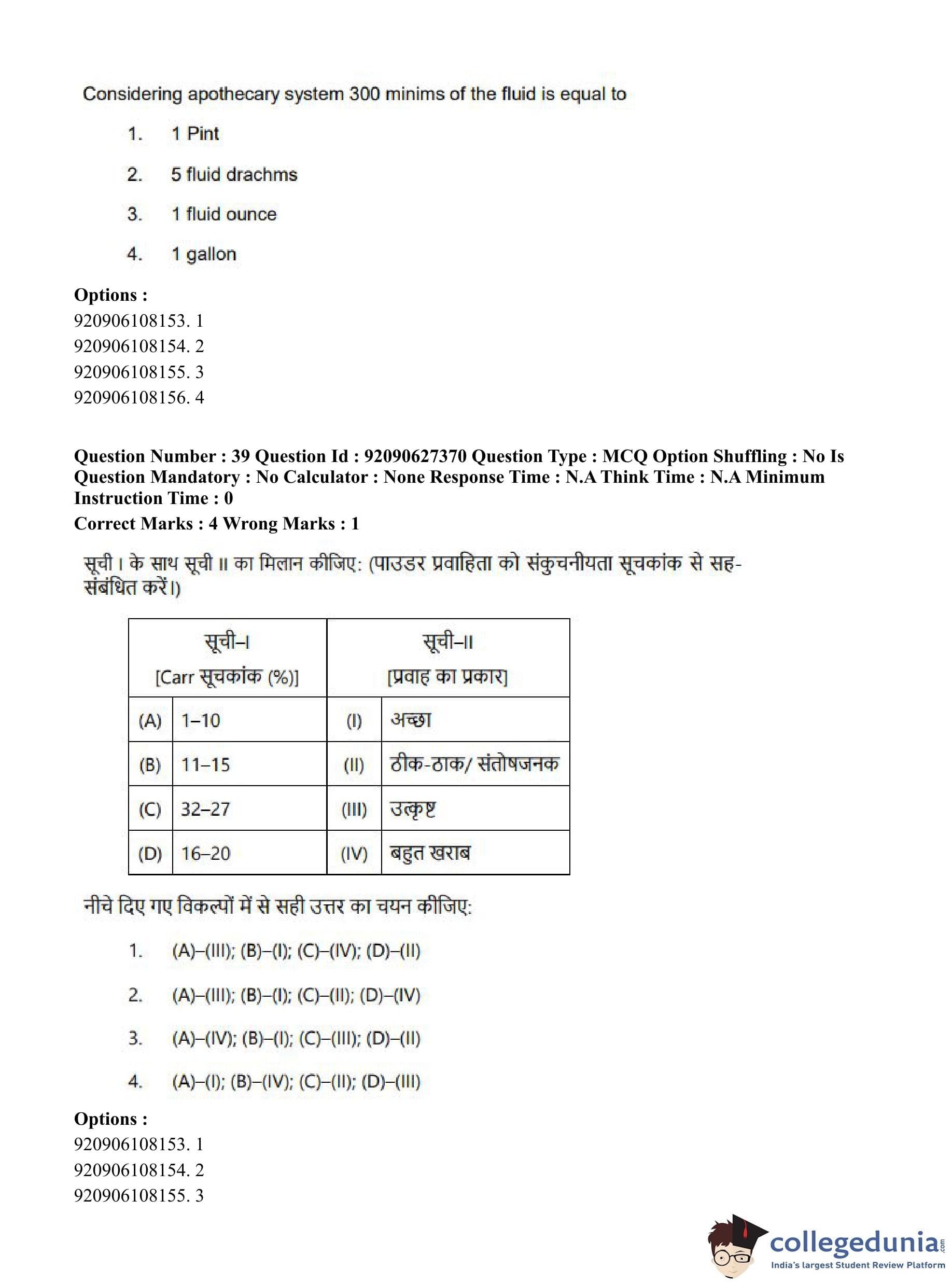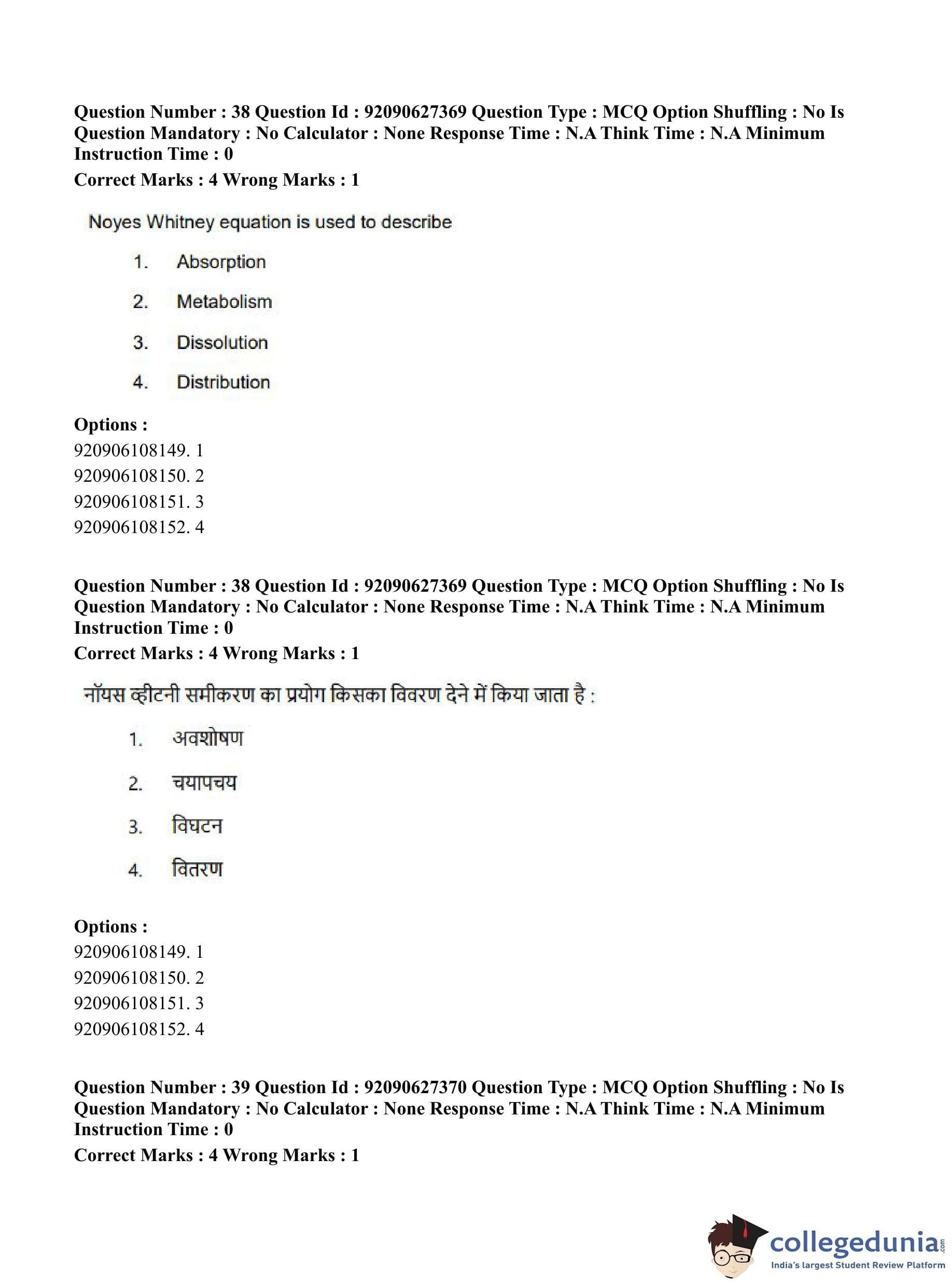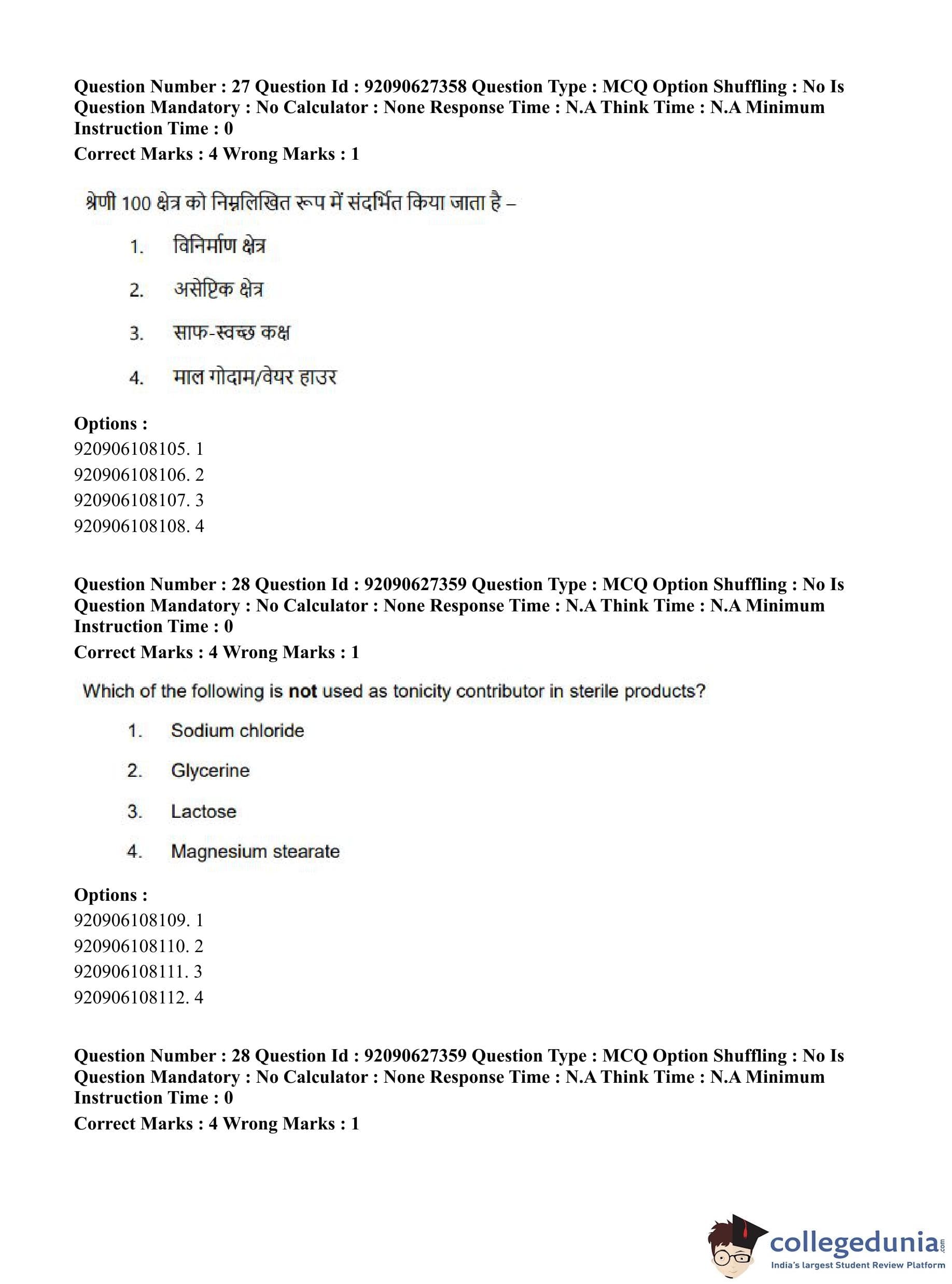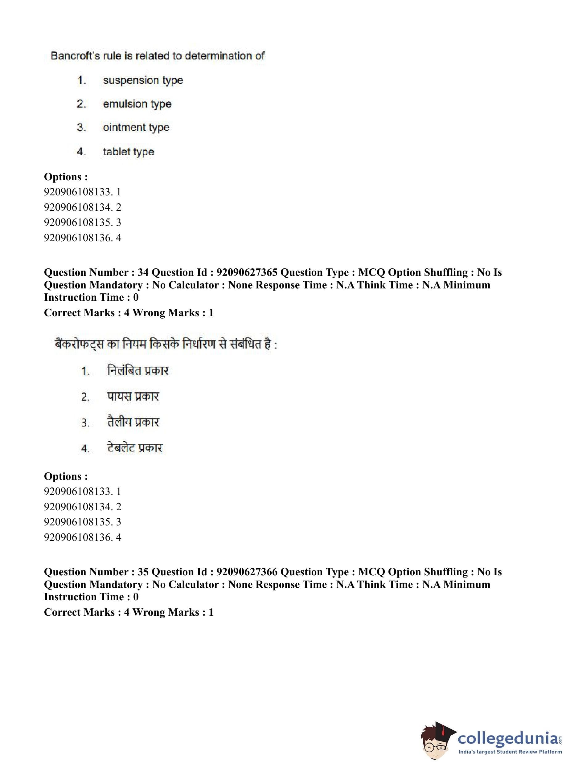 CUET PG 2023 Pharmacy Question Paper in Hindi (June 26 - Shift 3)