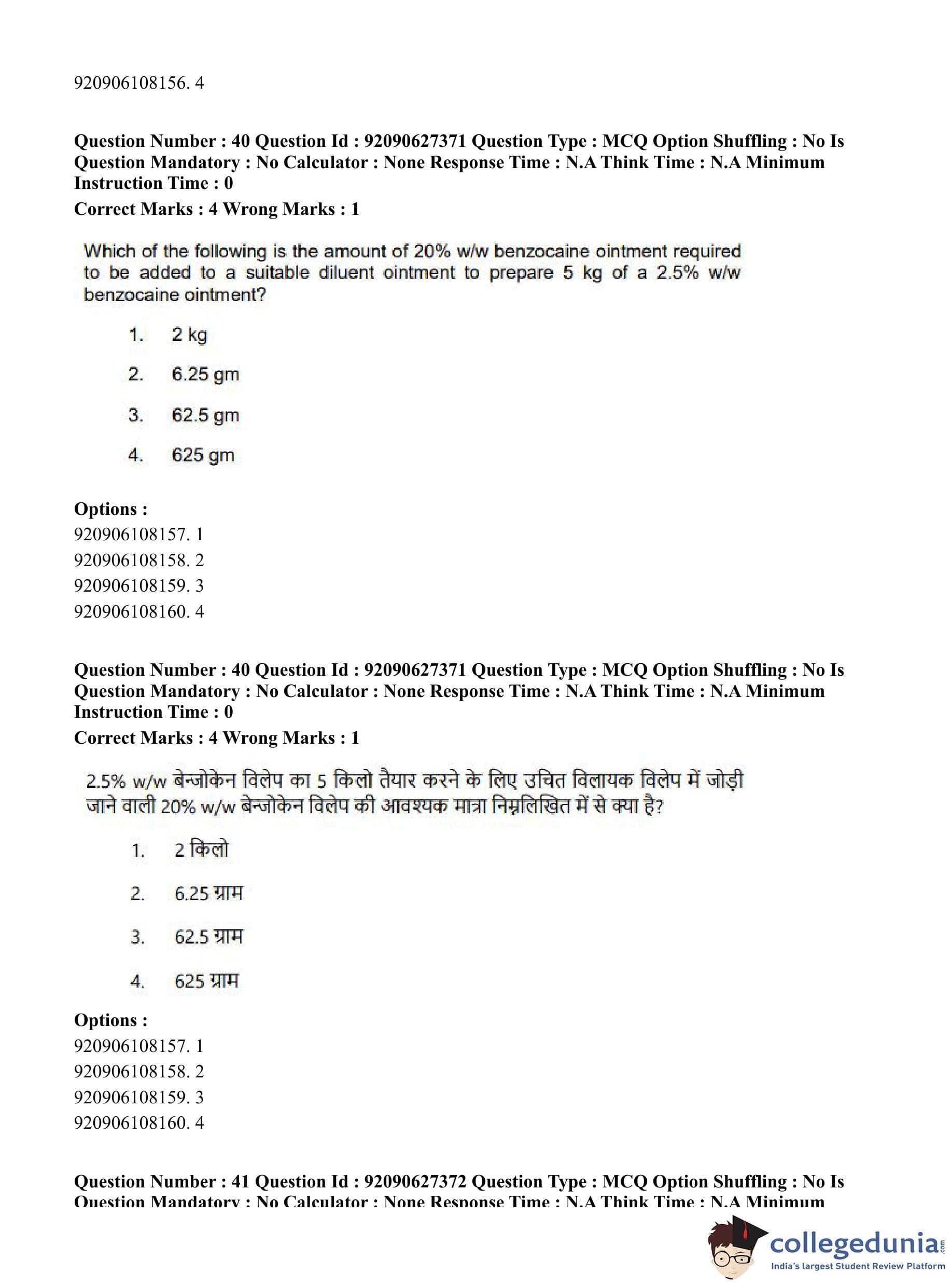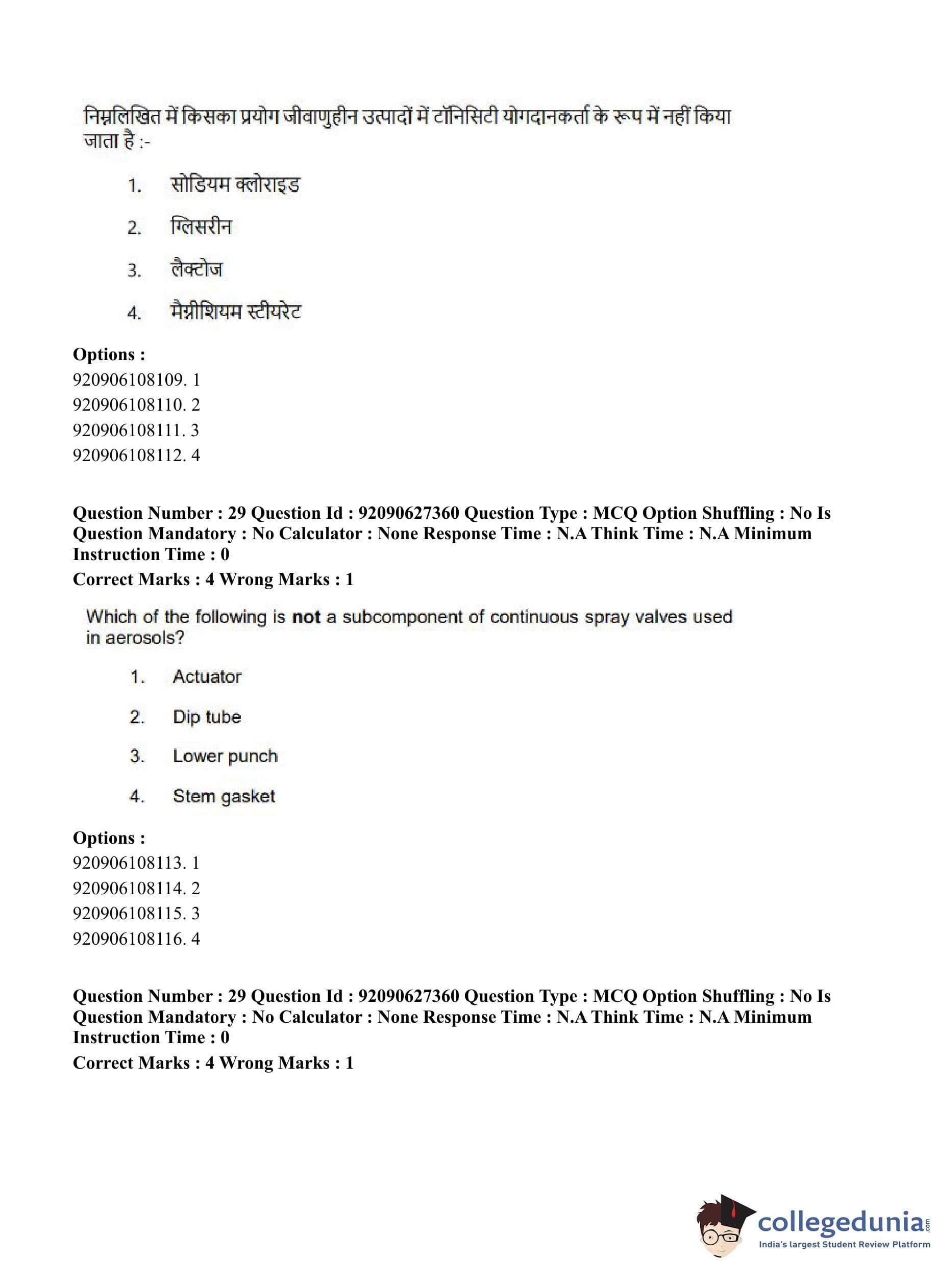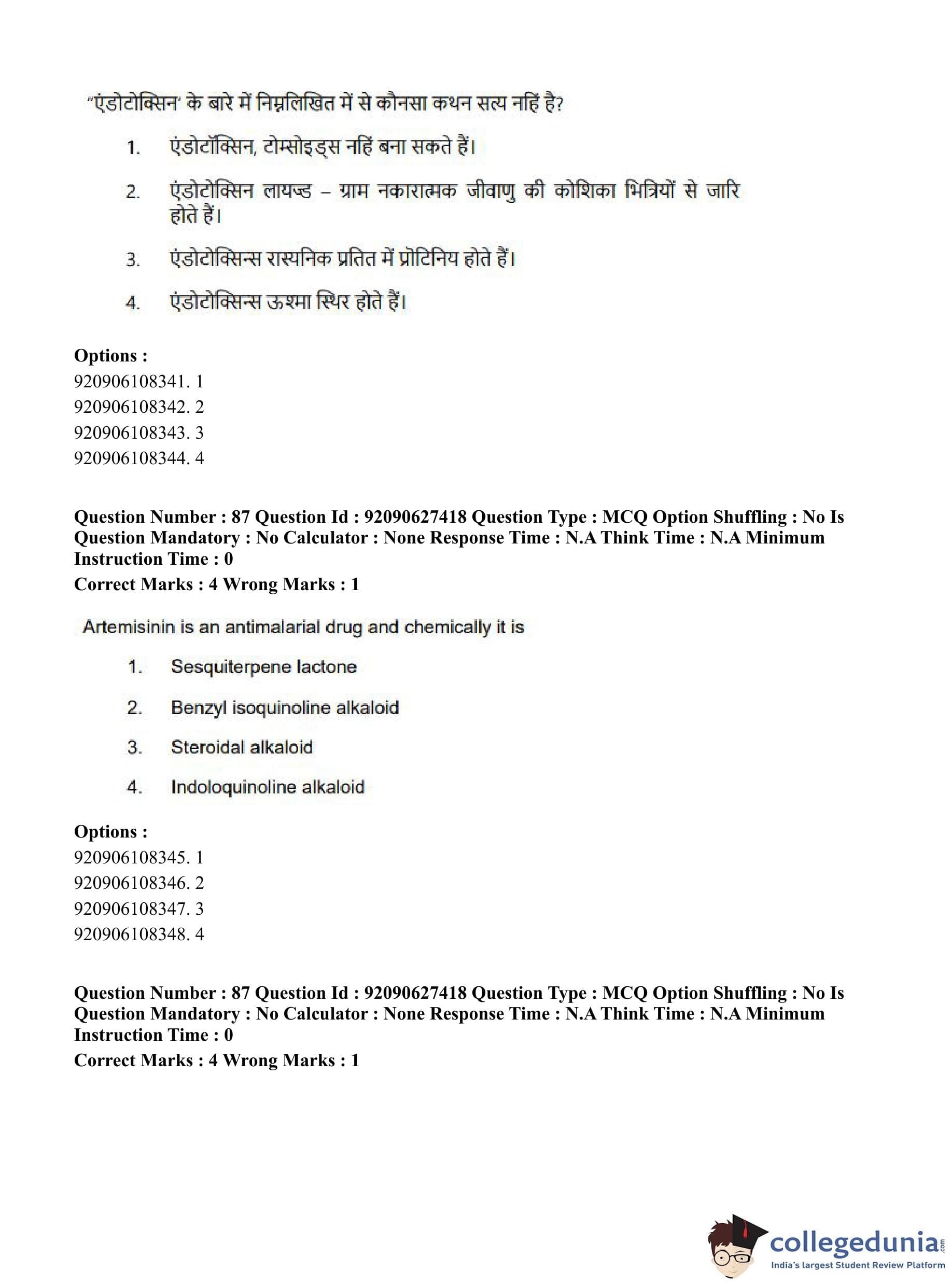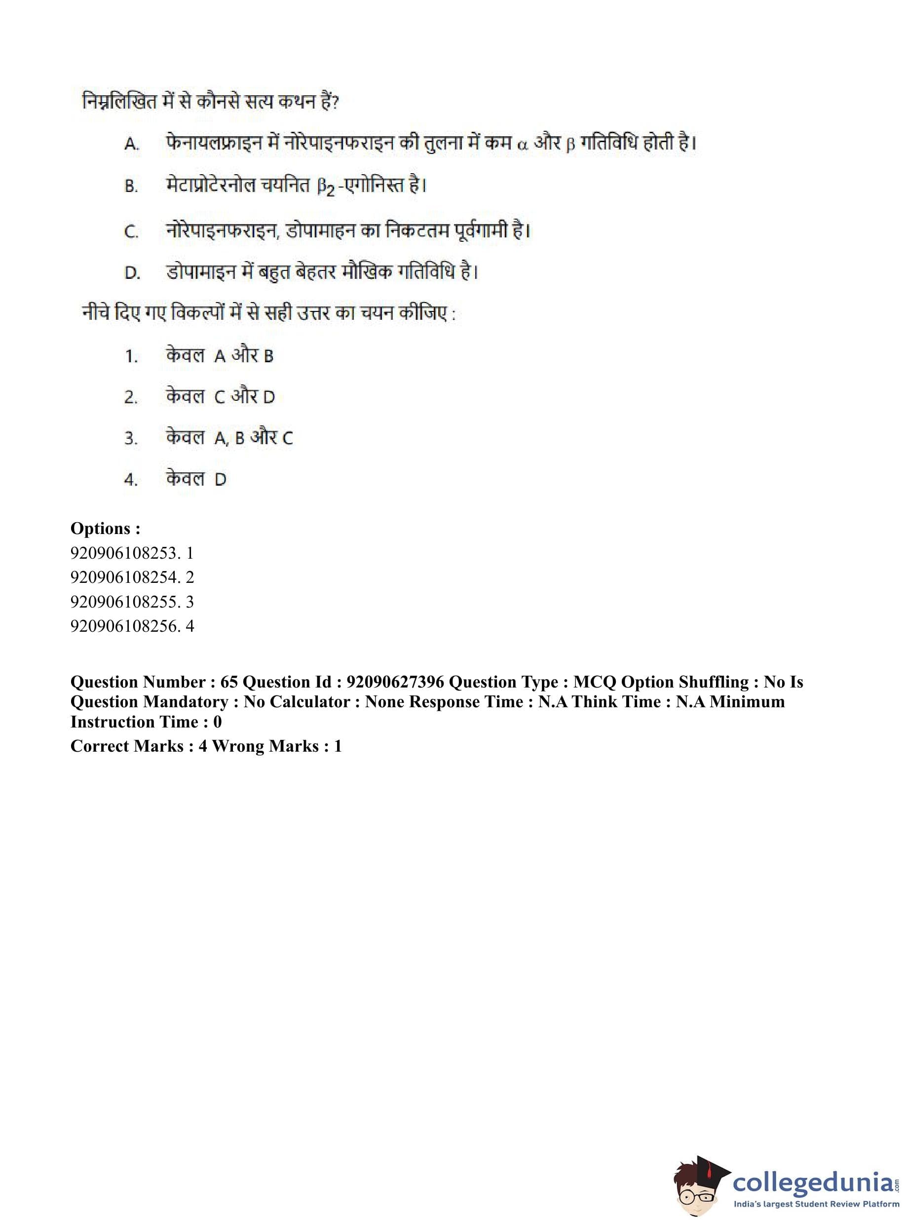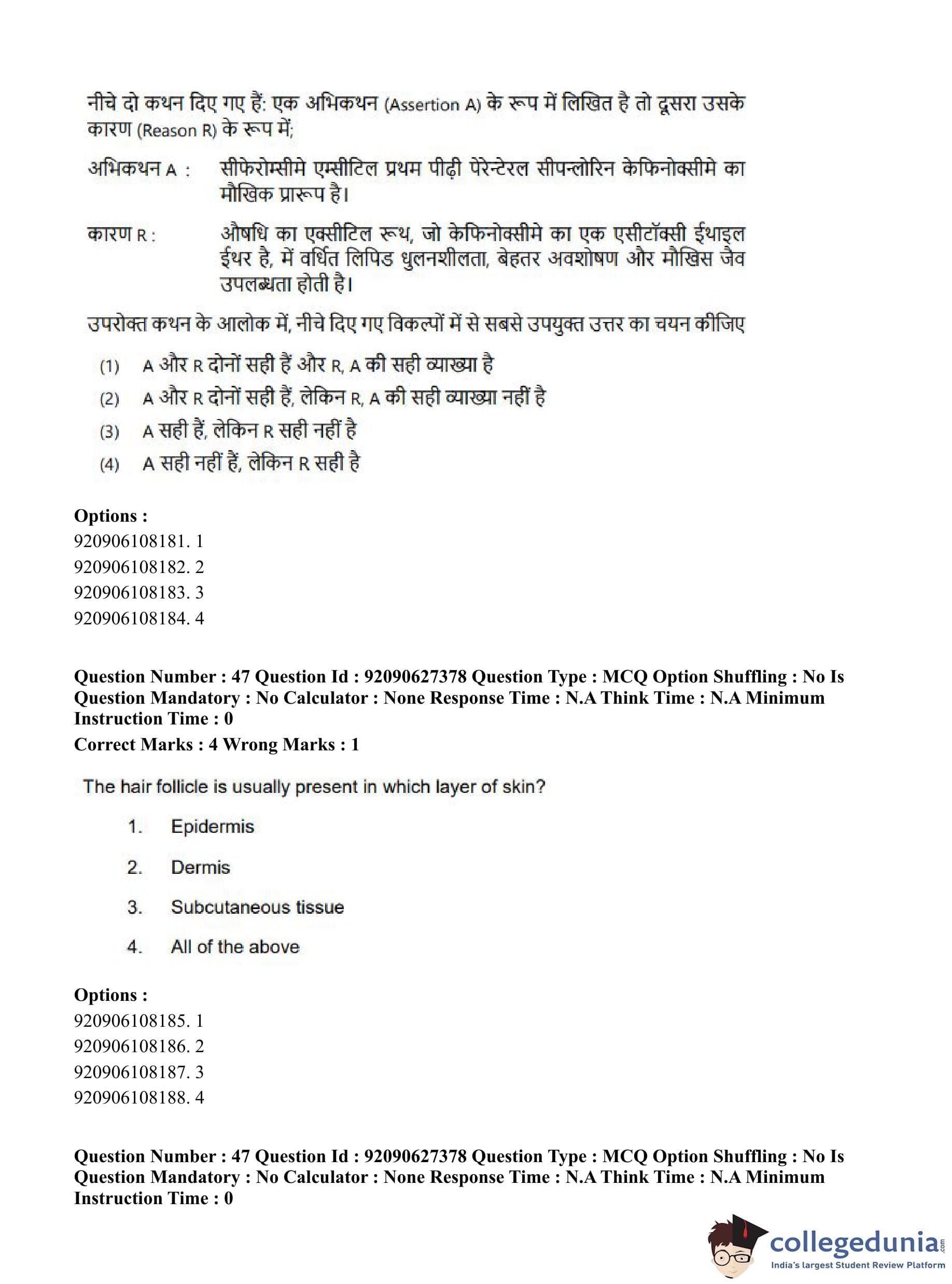CUET PG 2023 Pharmacy Question Paper in Hindi (June 26 - Shift 3)