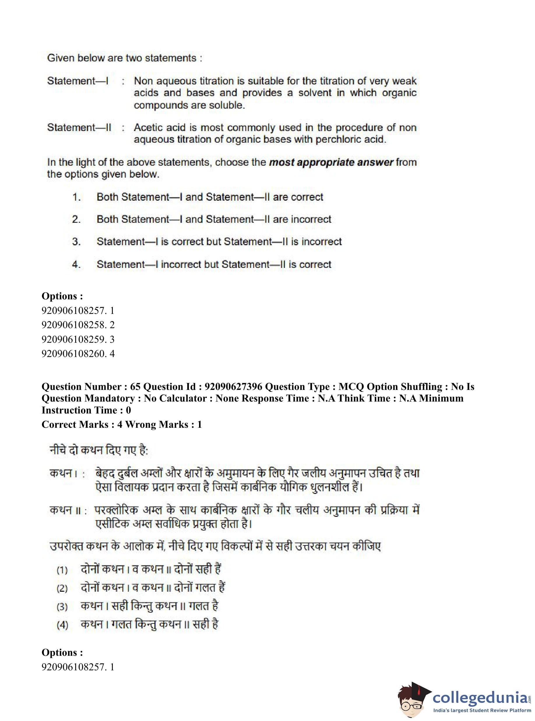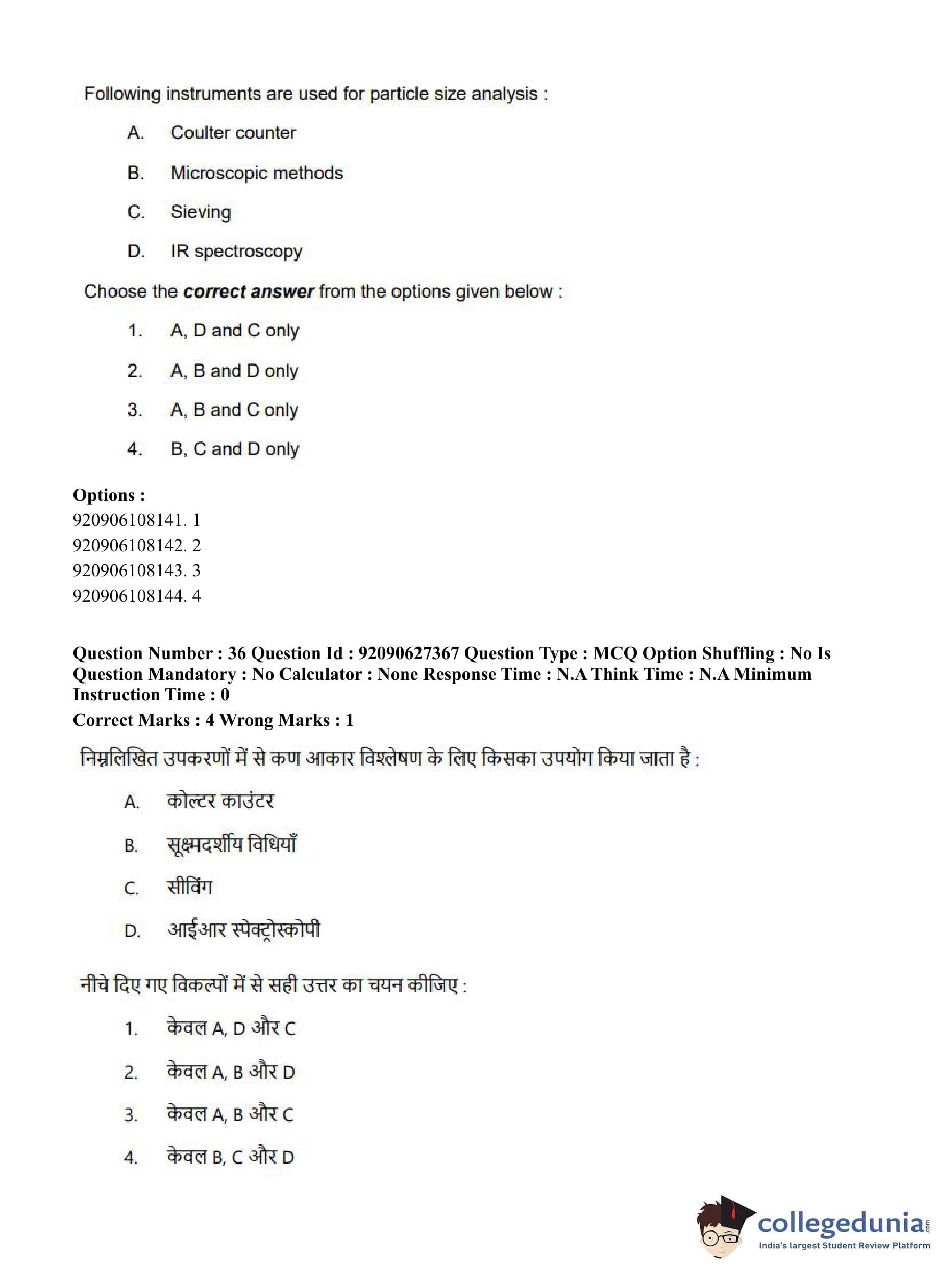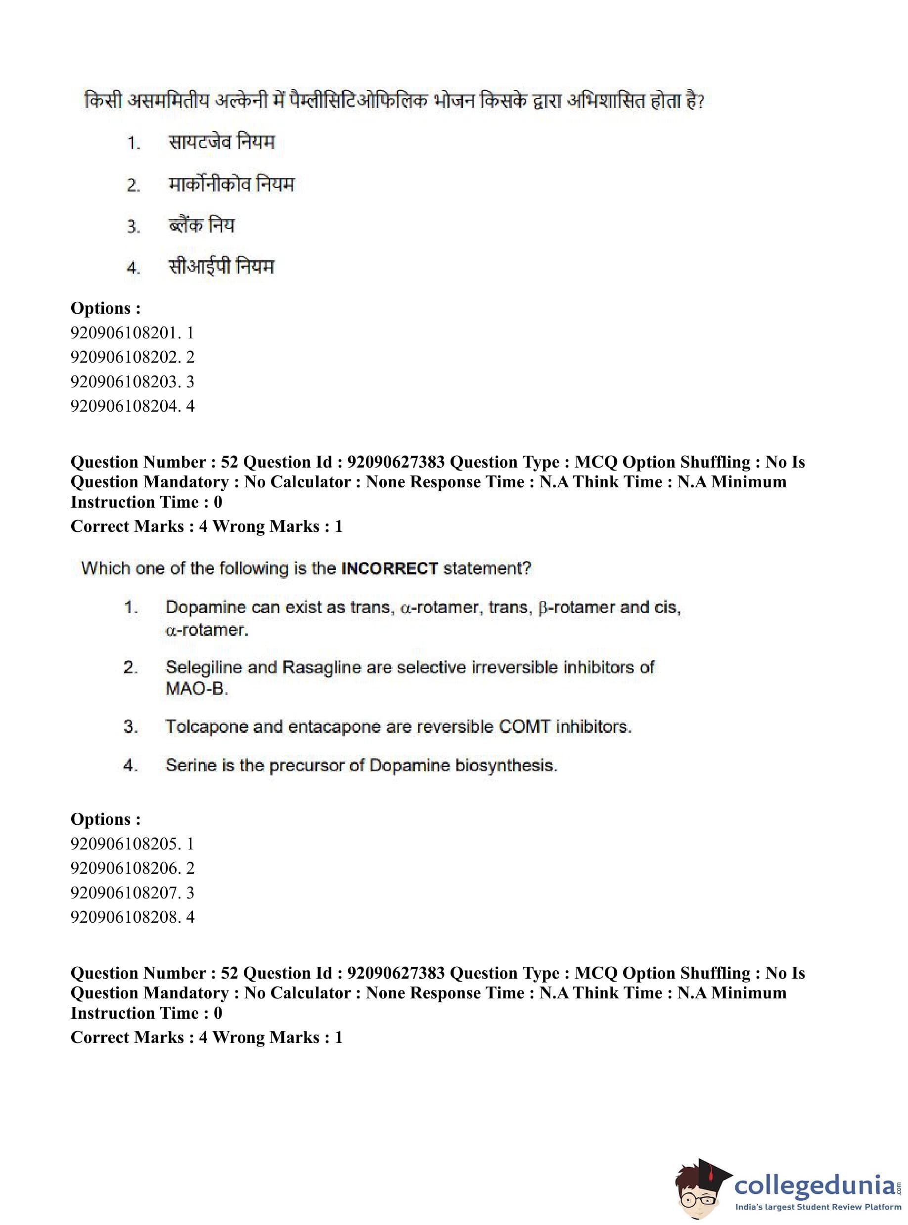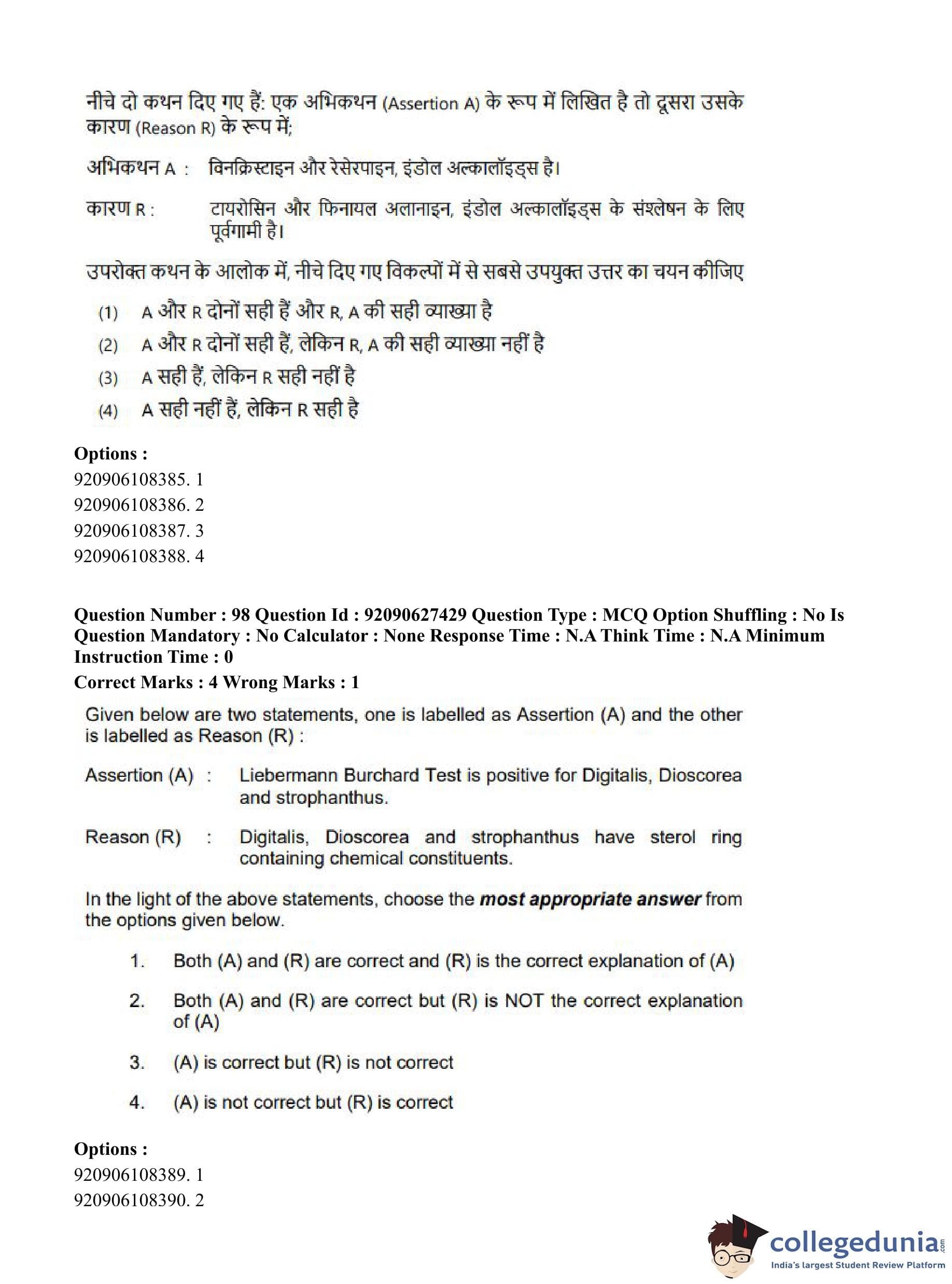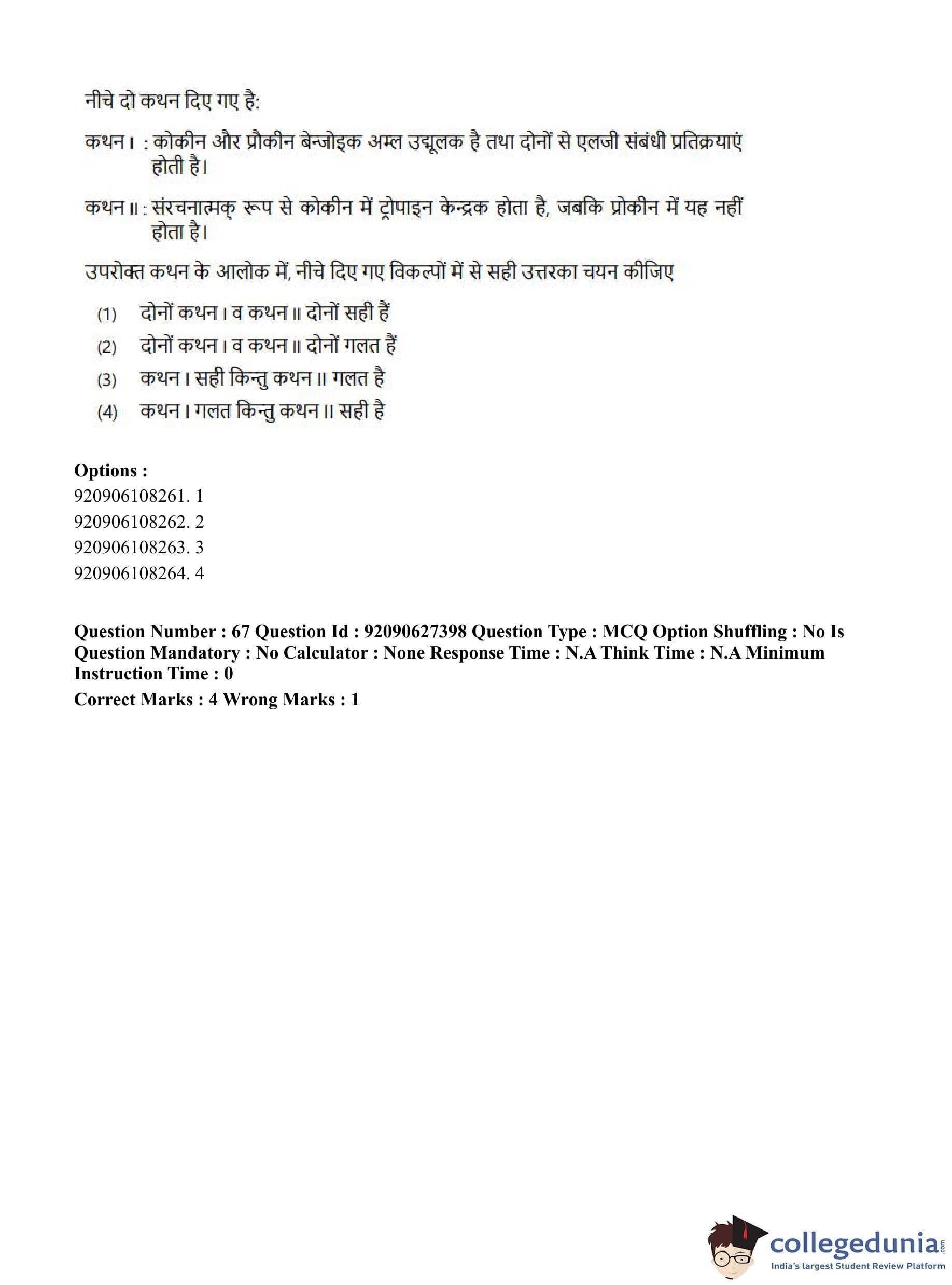 CUET PG 2023 Pharmacy Question Paper in Hindi (June 26 - Shift 3)