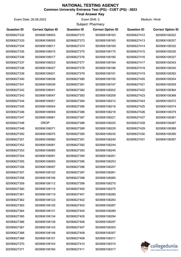 | CUET PG Pharmacy Question Paper 2023 PDF | CUET PG Pharmacy Answer Key 2023 PDF |