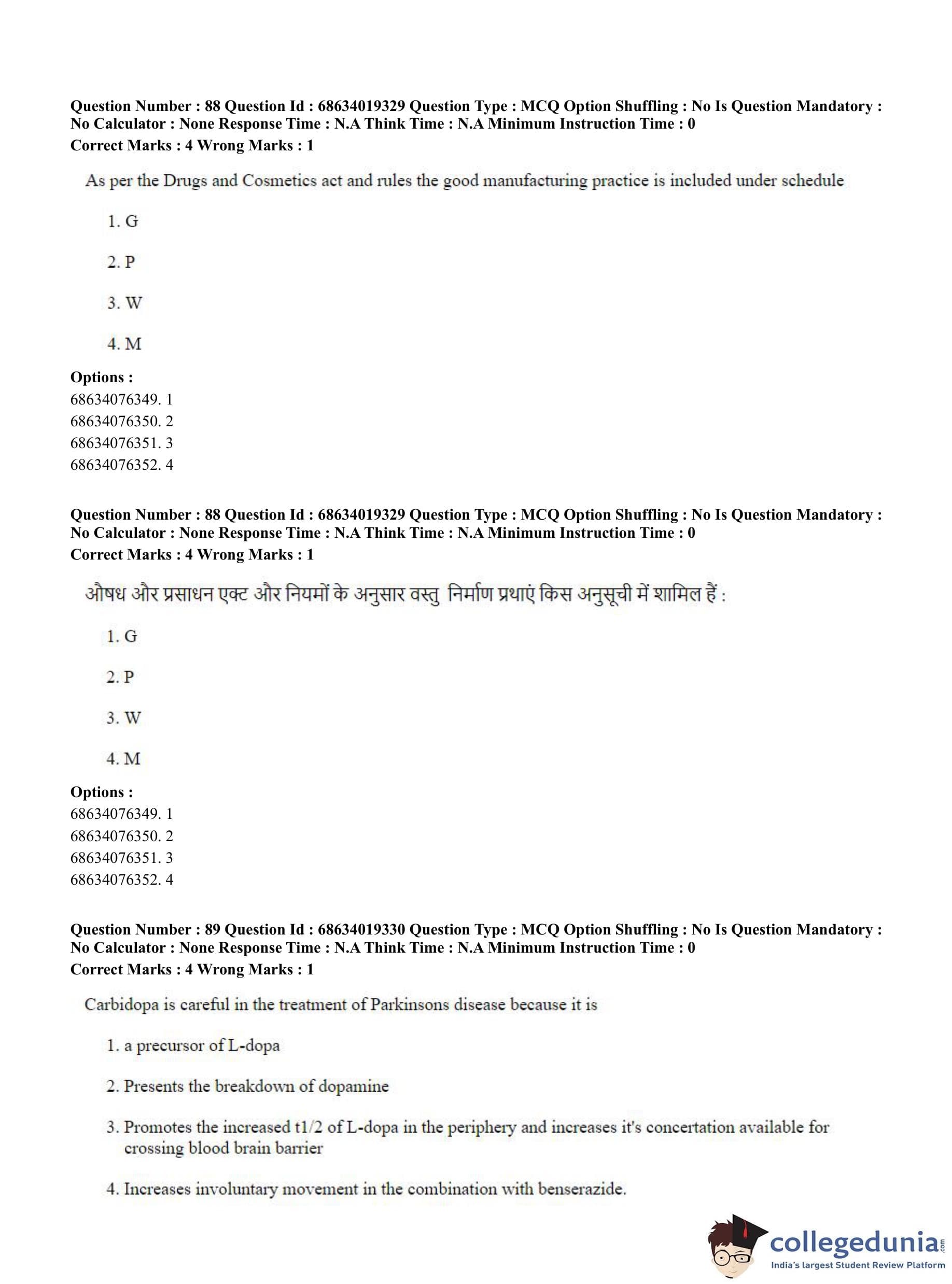 CUET PG 2023 Pharmacy Question Paper in English (June 13 - Shift 2)