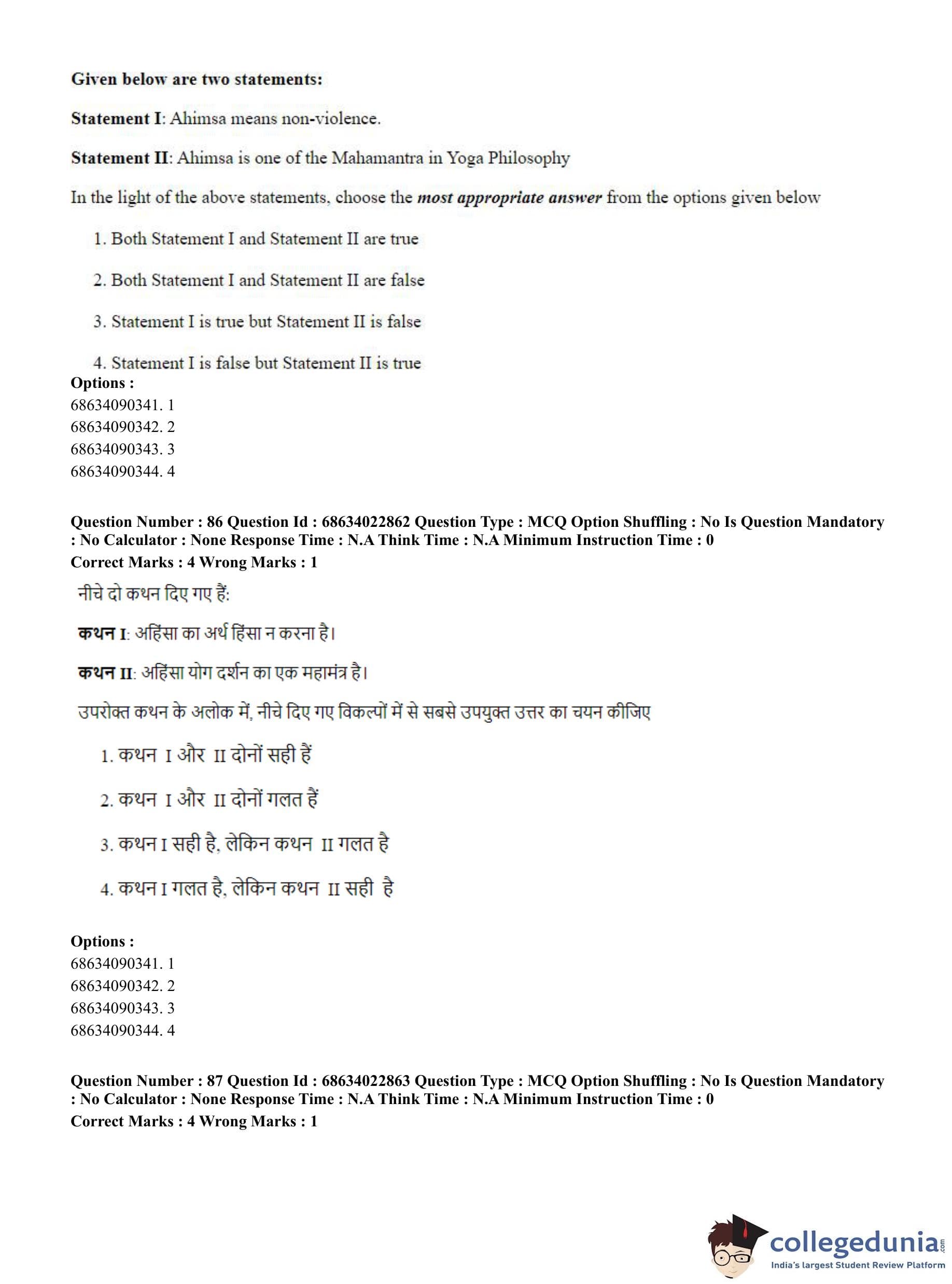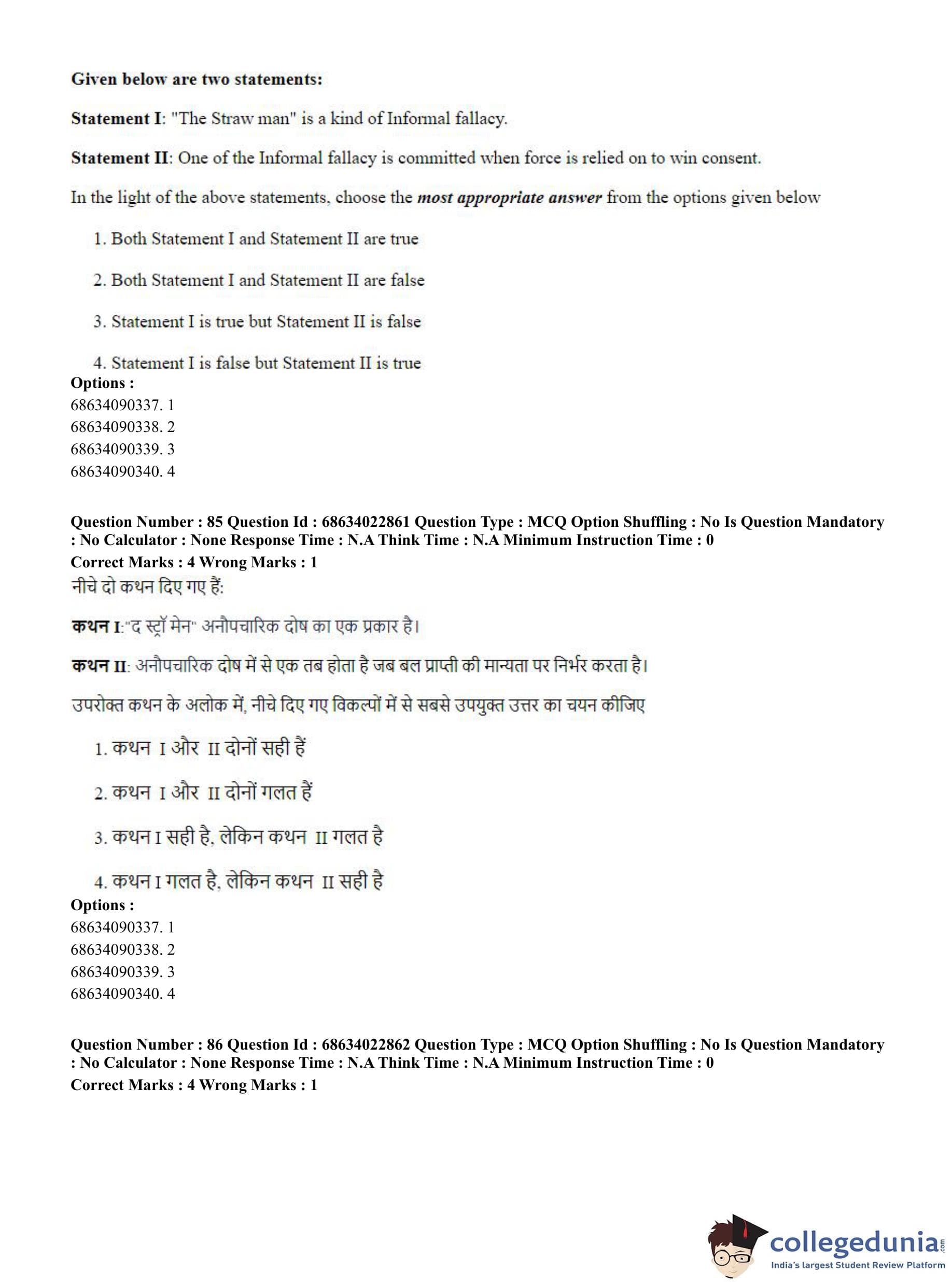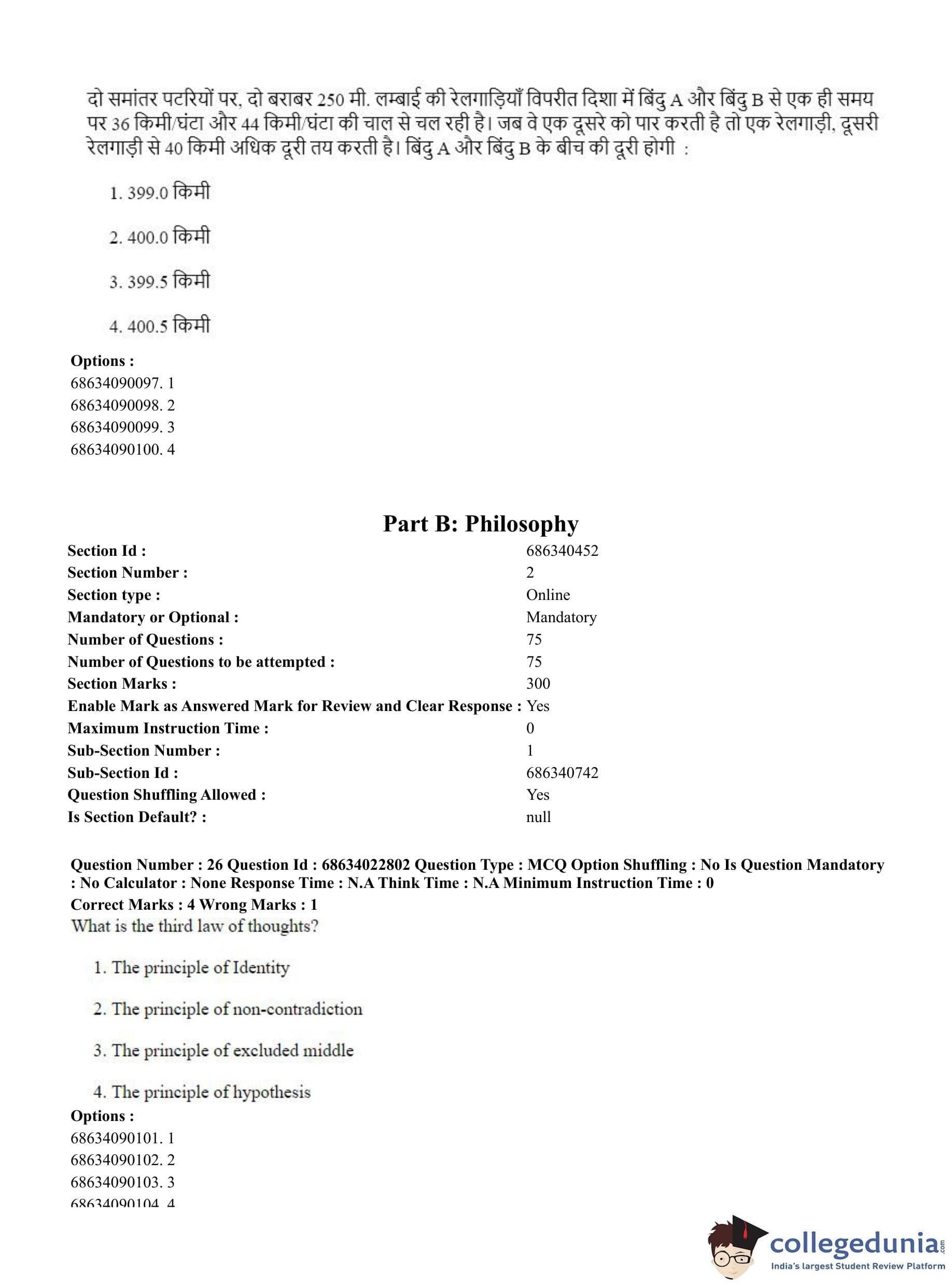 CUET PG 2023 Philosophy Question Paper with Answer Key PDF in Hindi is available for download here. The exam was conducted by National Testing Agency (NTA) on June 15, 2023 in Shift 3. The question paper comprised a total of 100 questions divided into 2 sections.