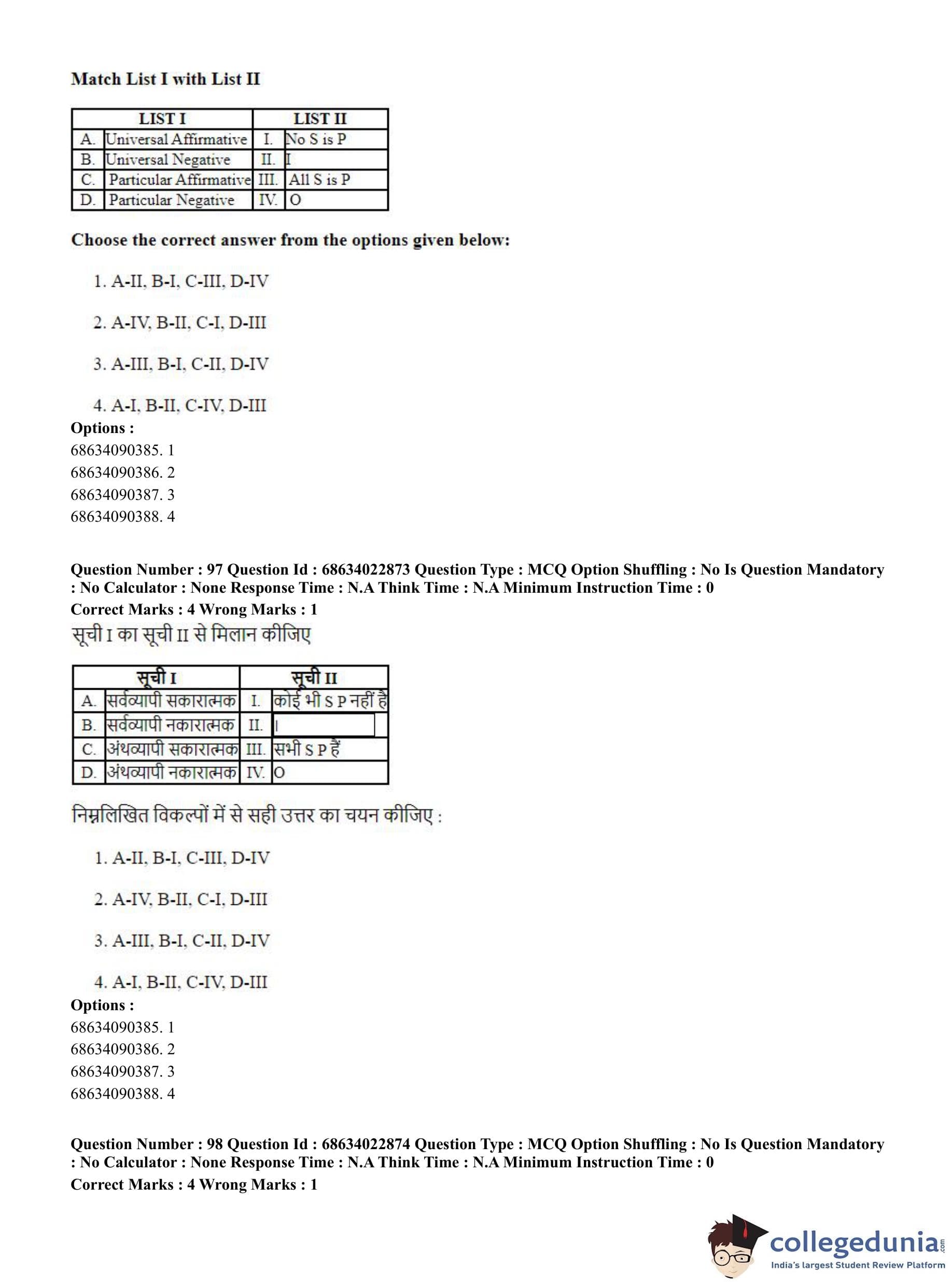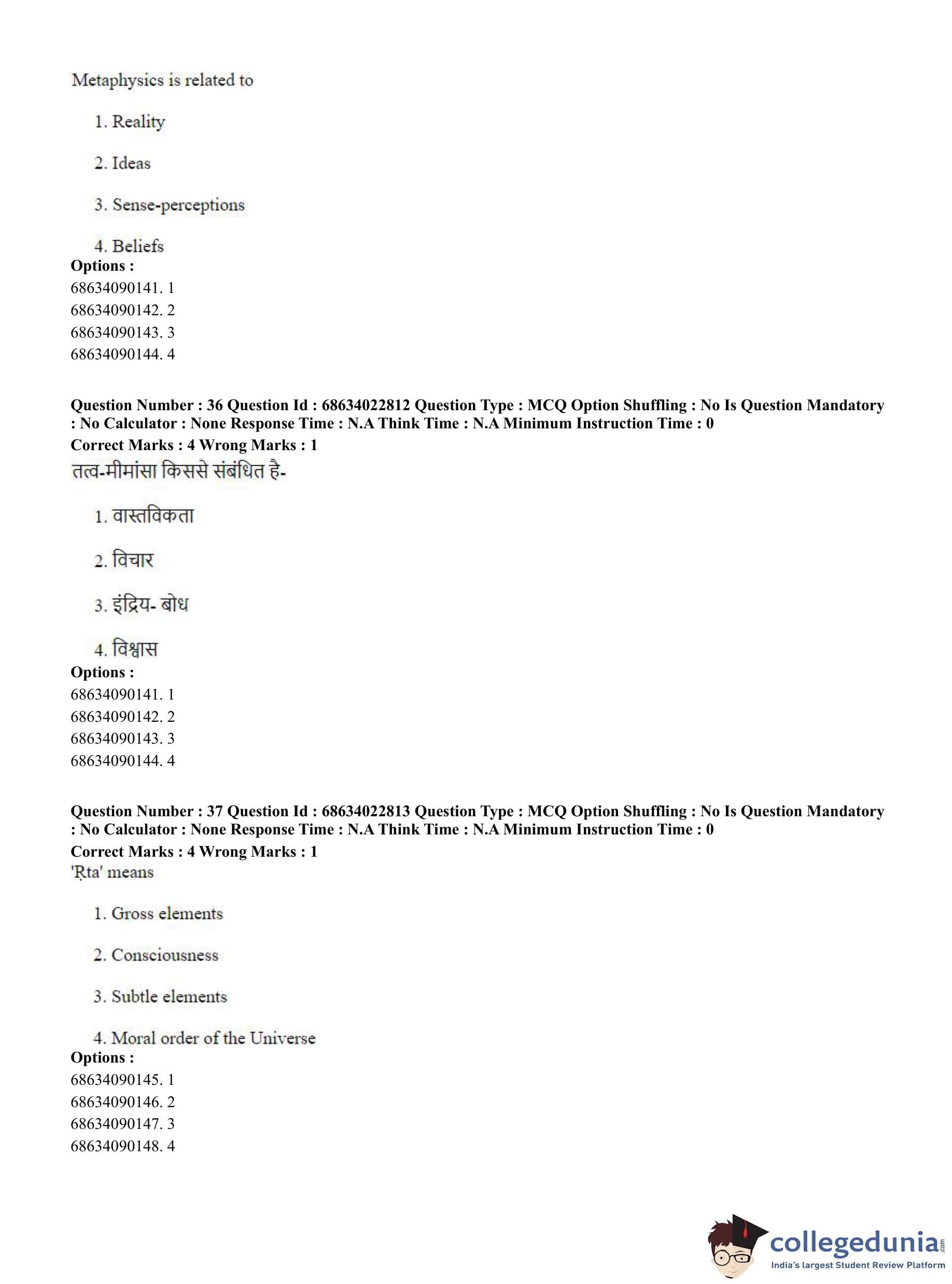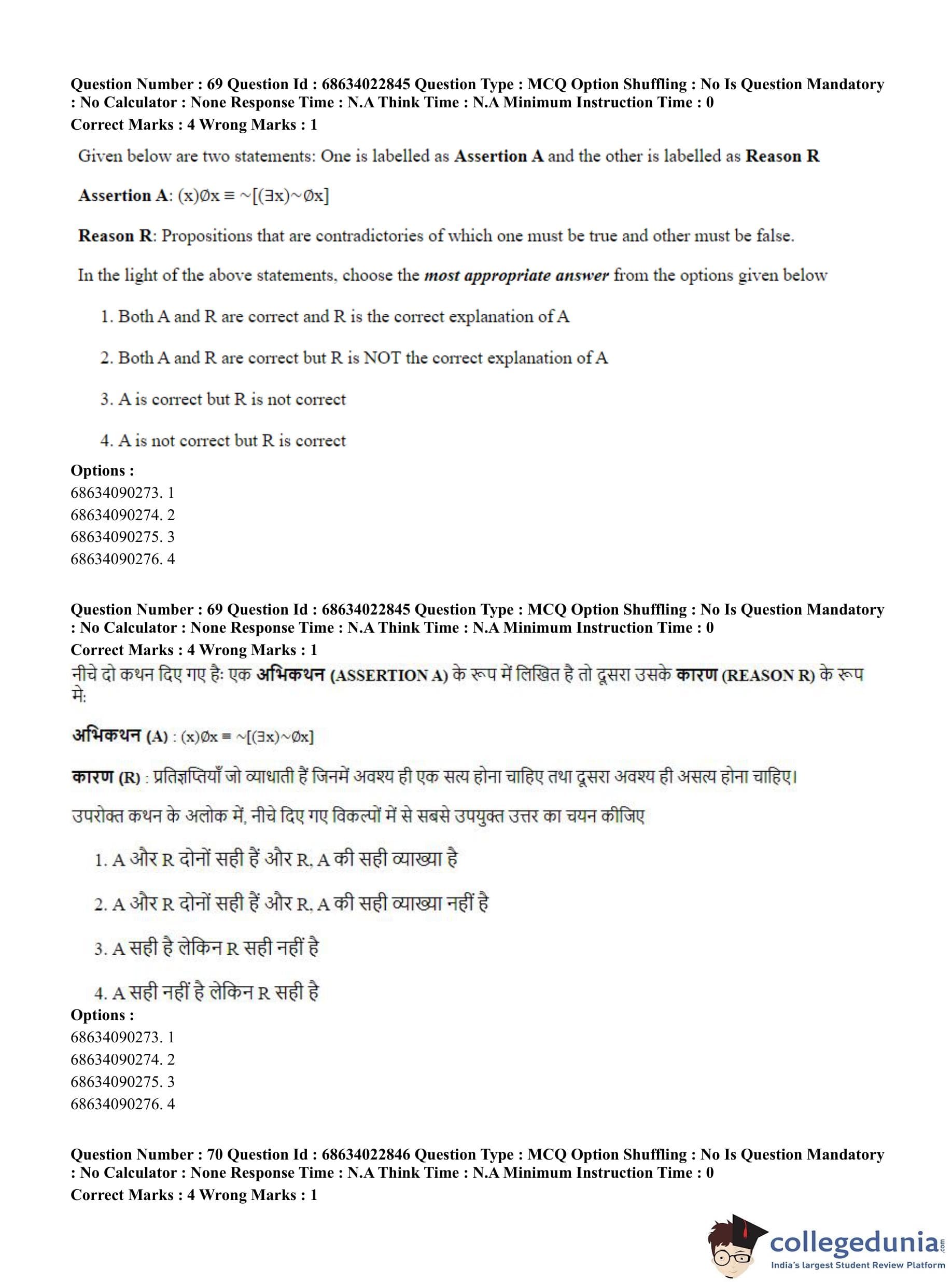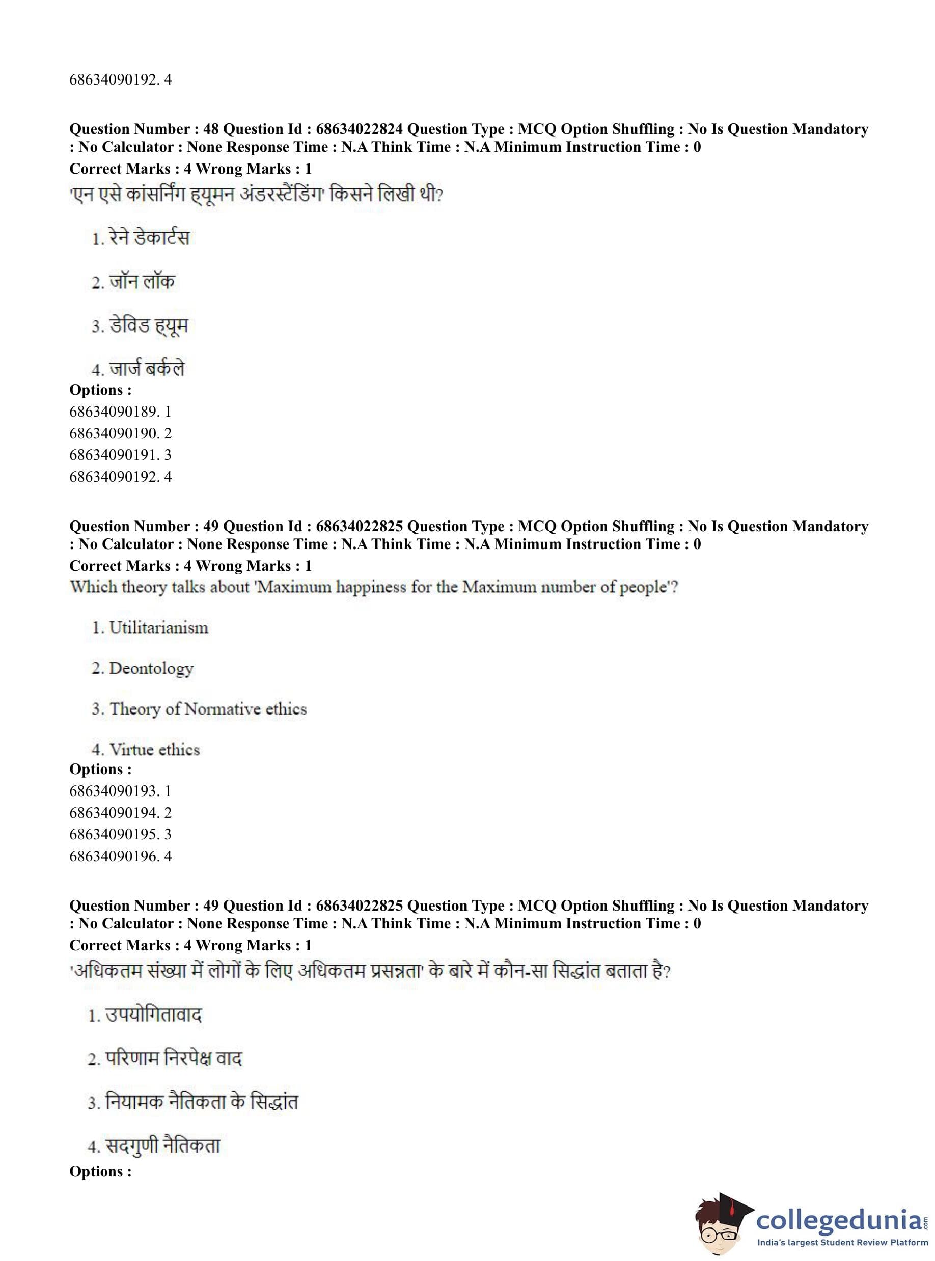 CUET PG 2023 Philosophy Question Paper with Answer Key PDF in Hindi is available for download here. The exam was conducted by National Testing Agency (NTA) on June 15, 2023 in Shift 3. The question paper comprised a total of 100 questions divided into 2 sections.