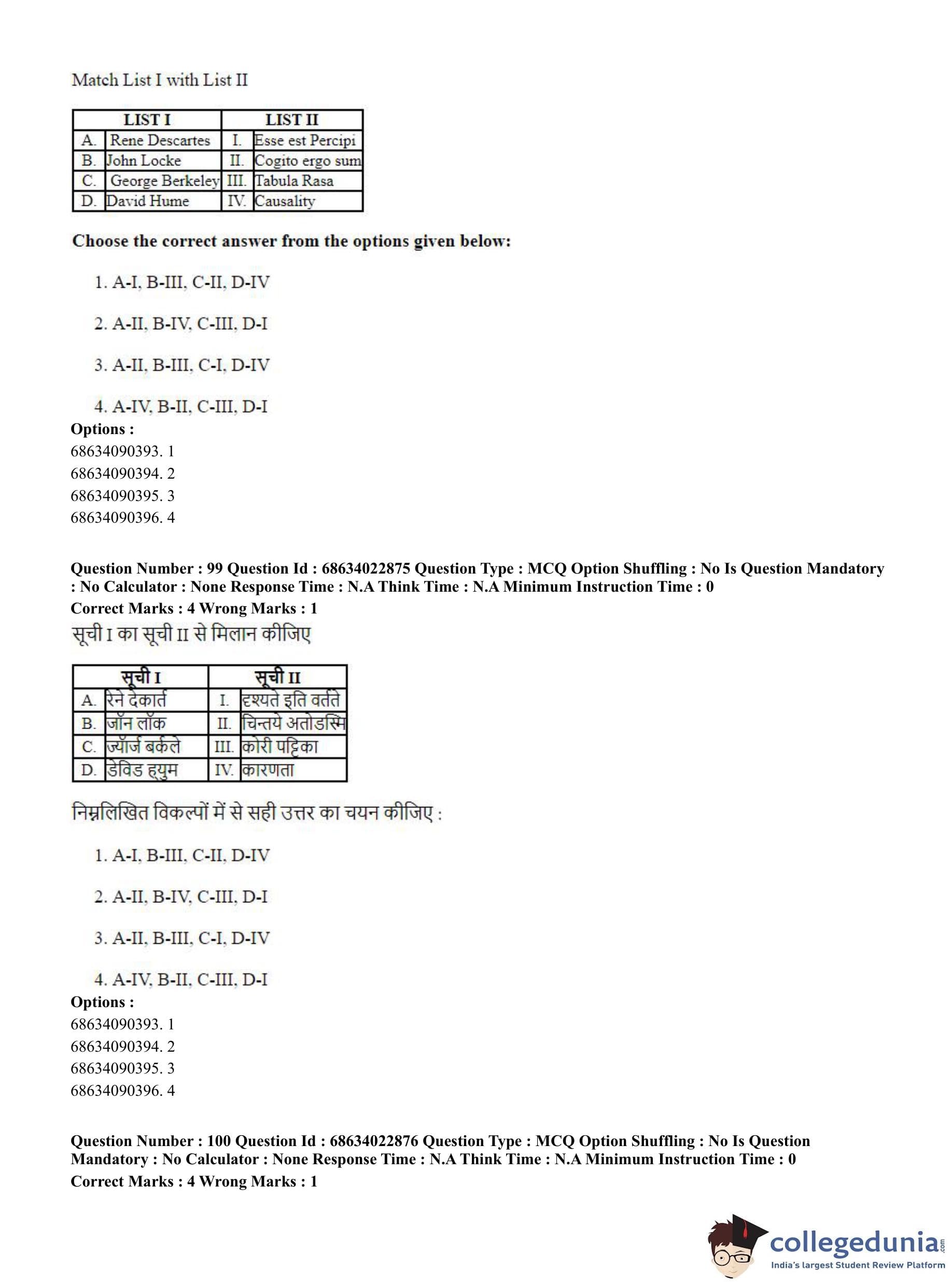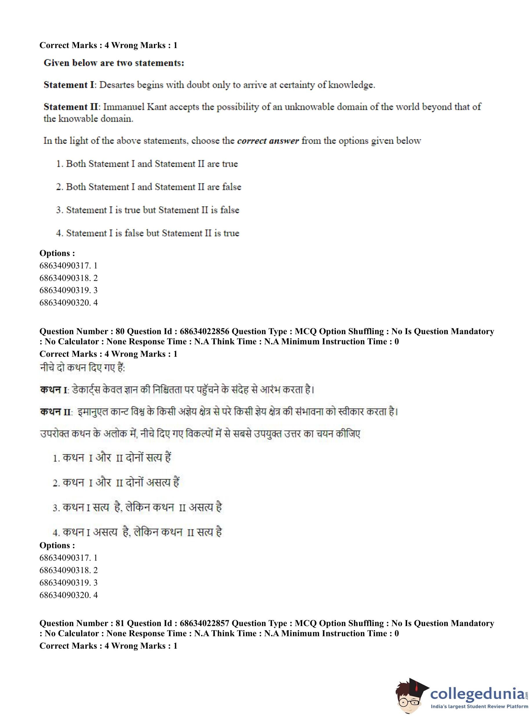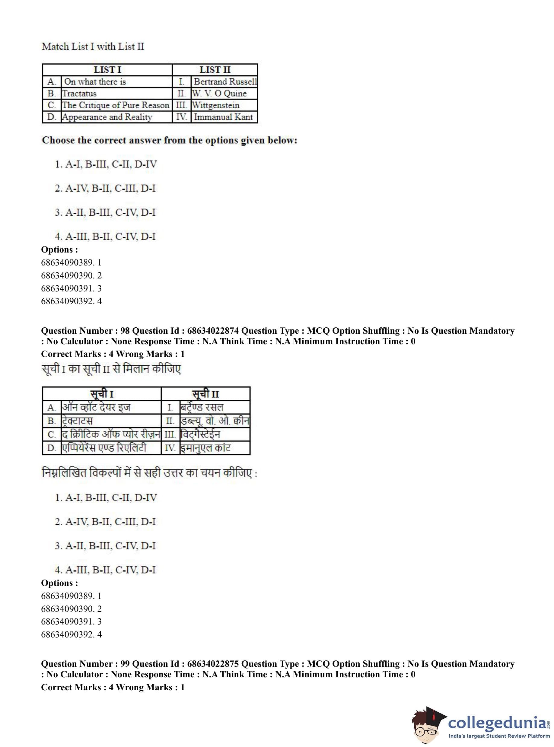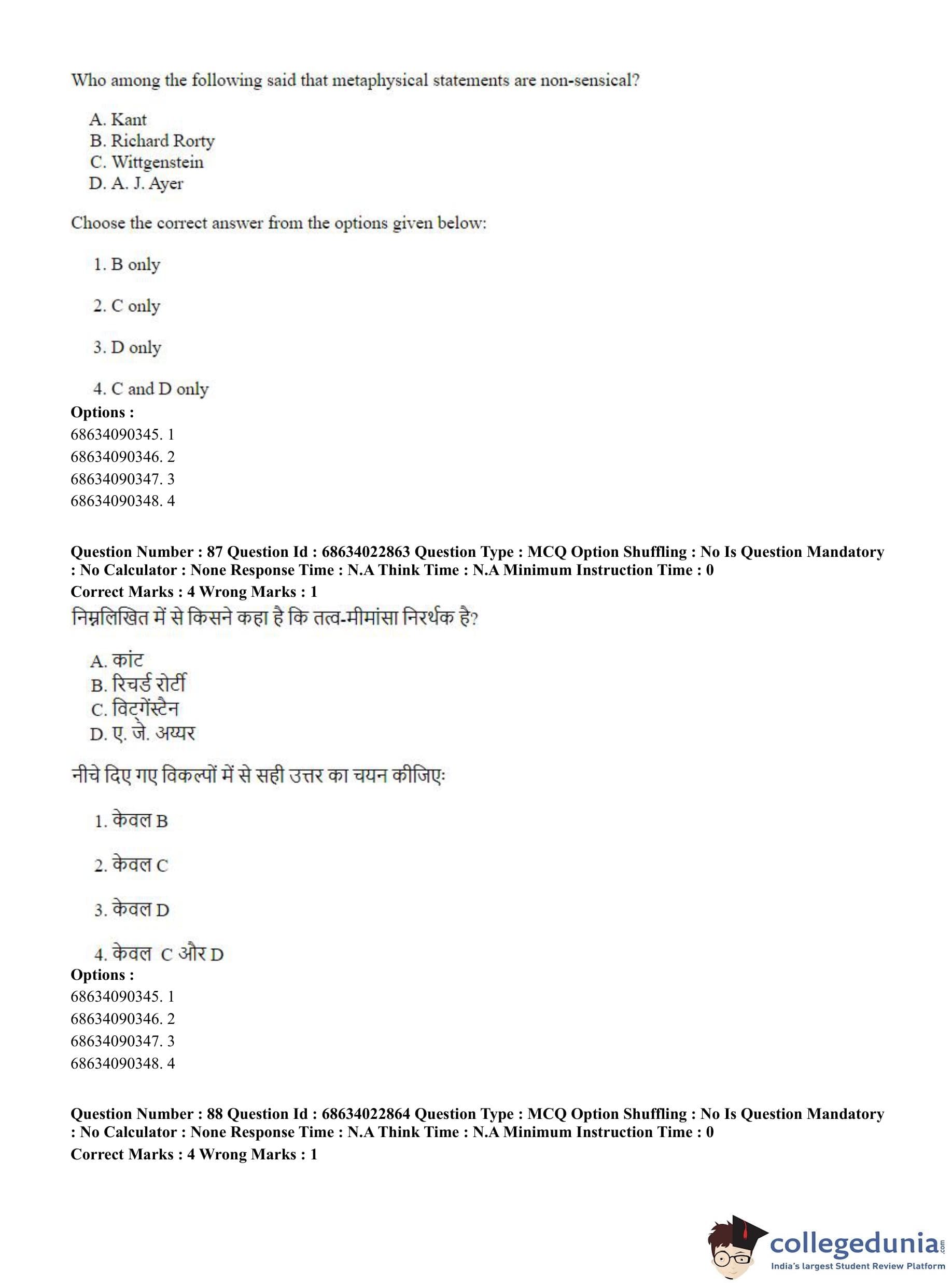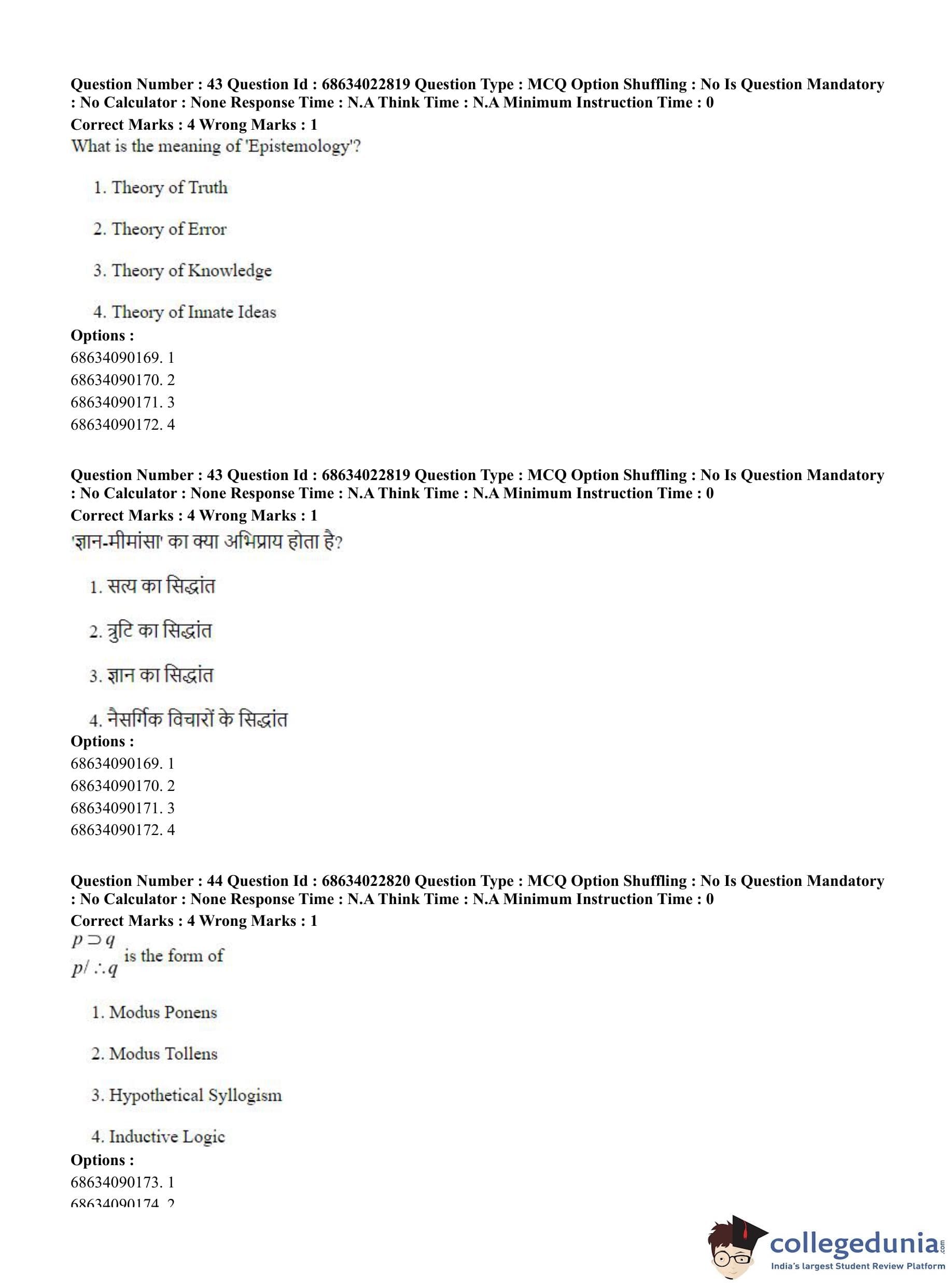 CUET PG 2023 Philosophy Question Paper in Hindi (June 15 - Shift 3)