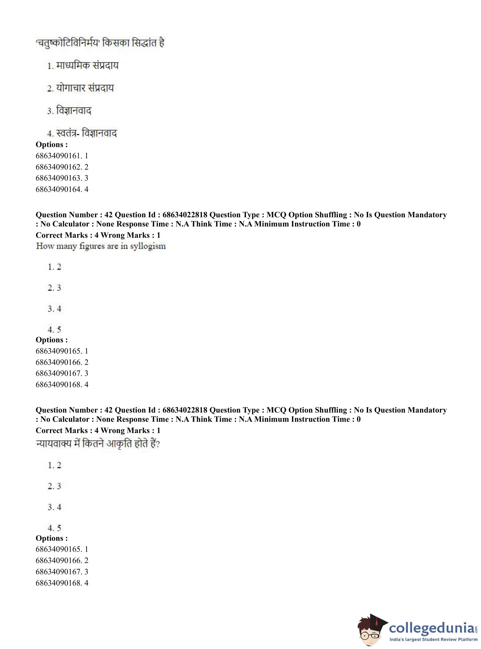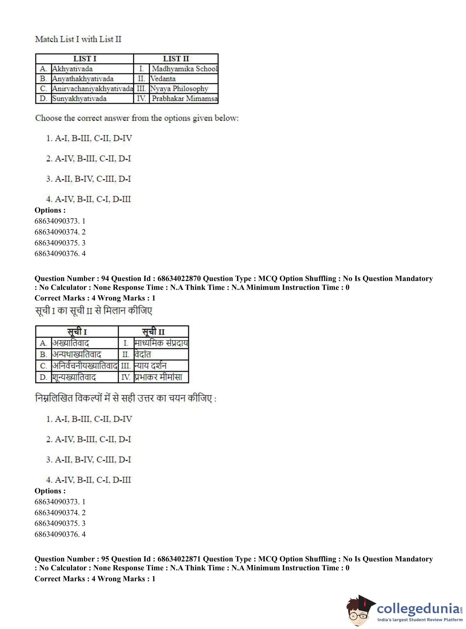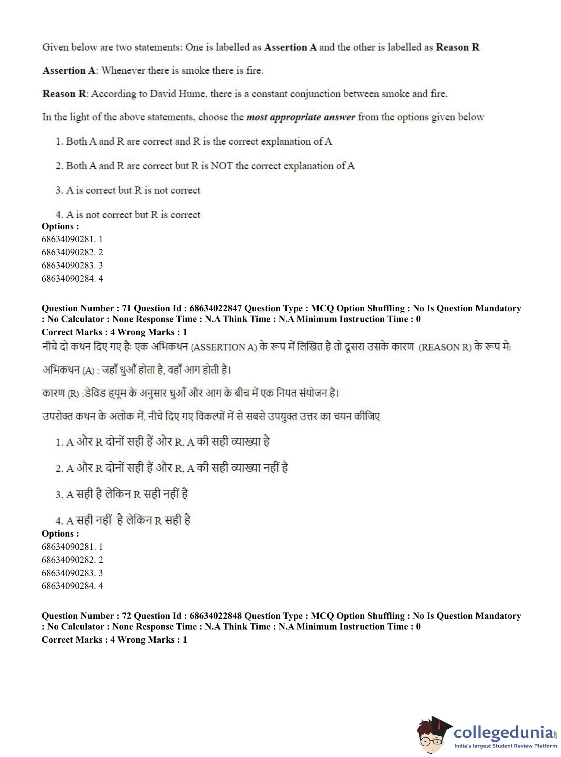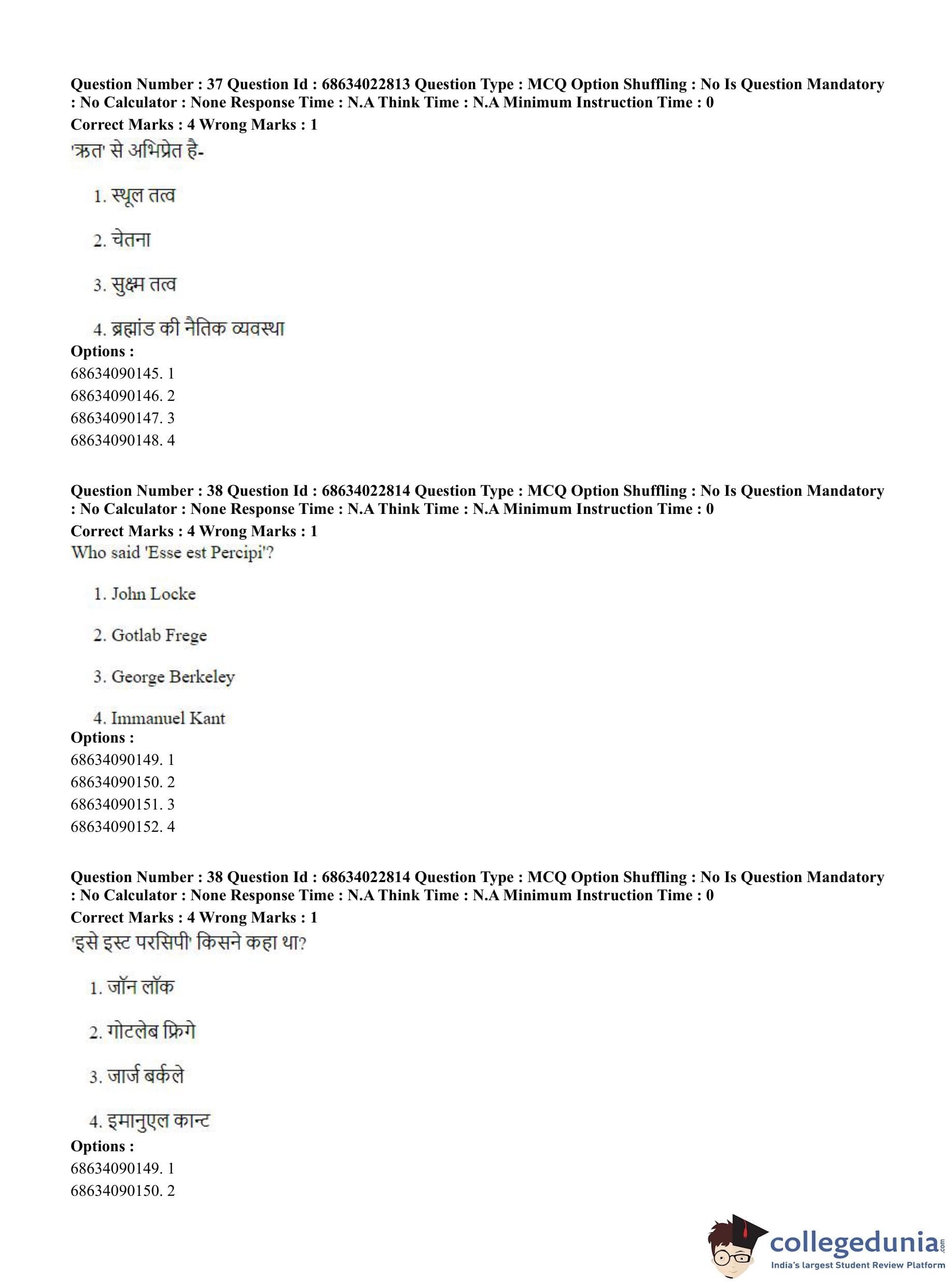 CUET PG 2023 Philosophy Question Paper in Hindi (June 15 - Shift 3)