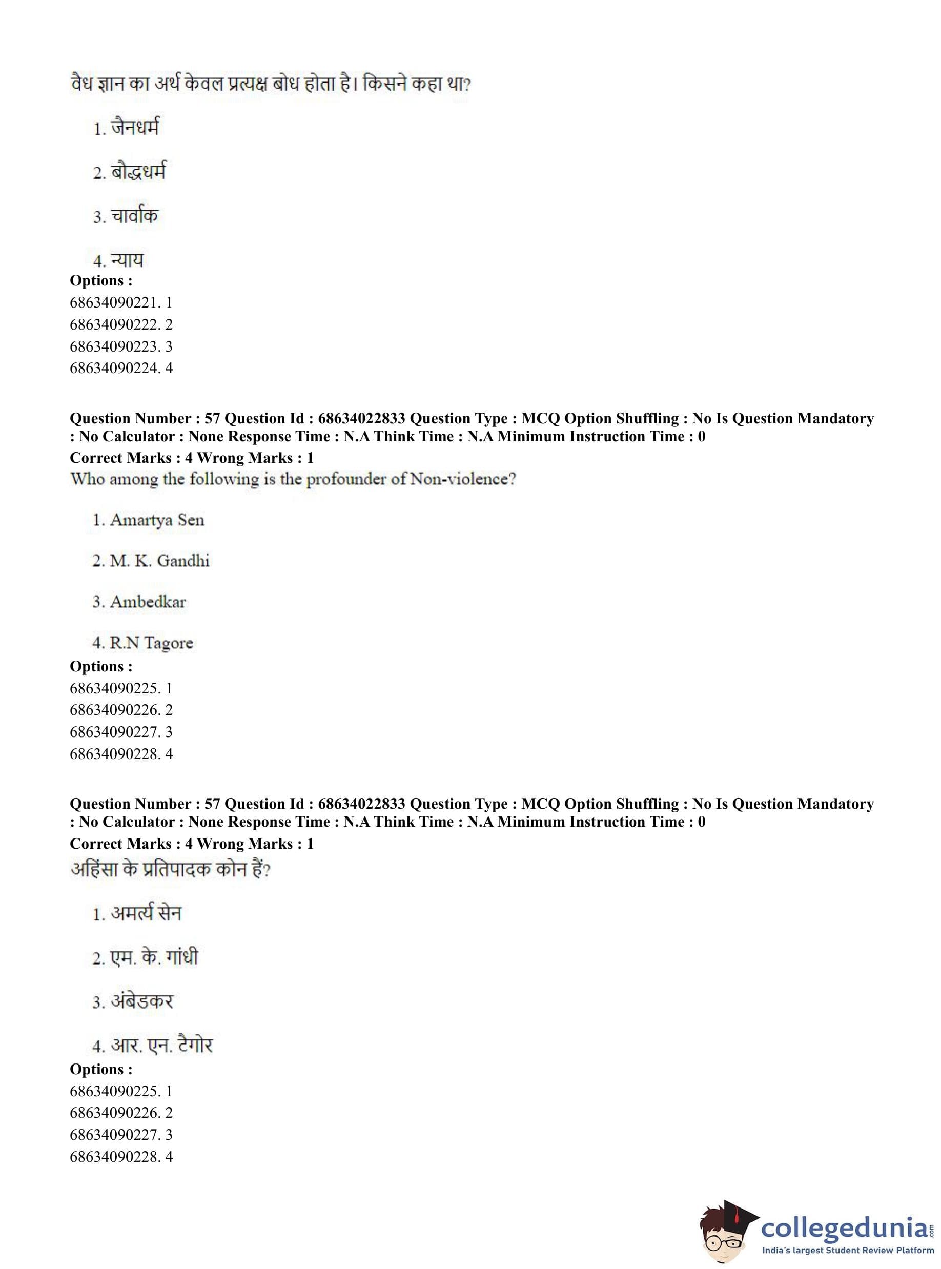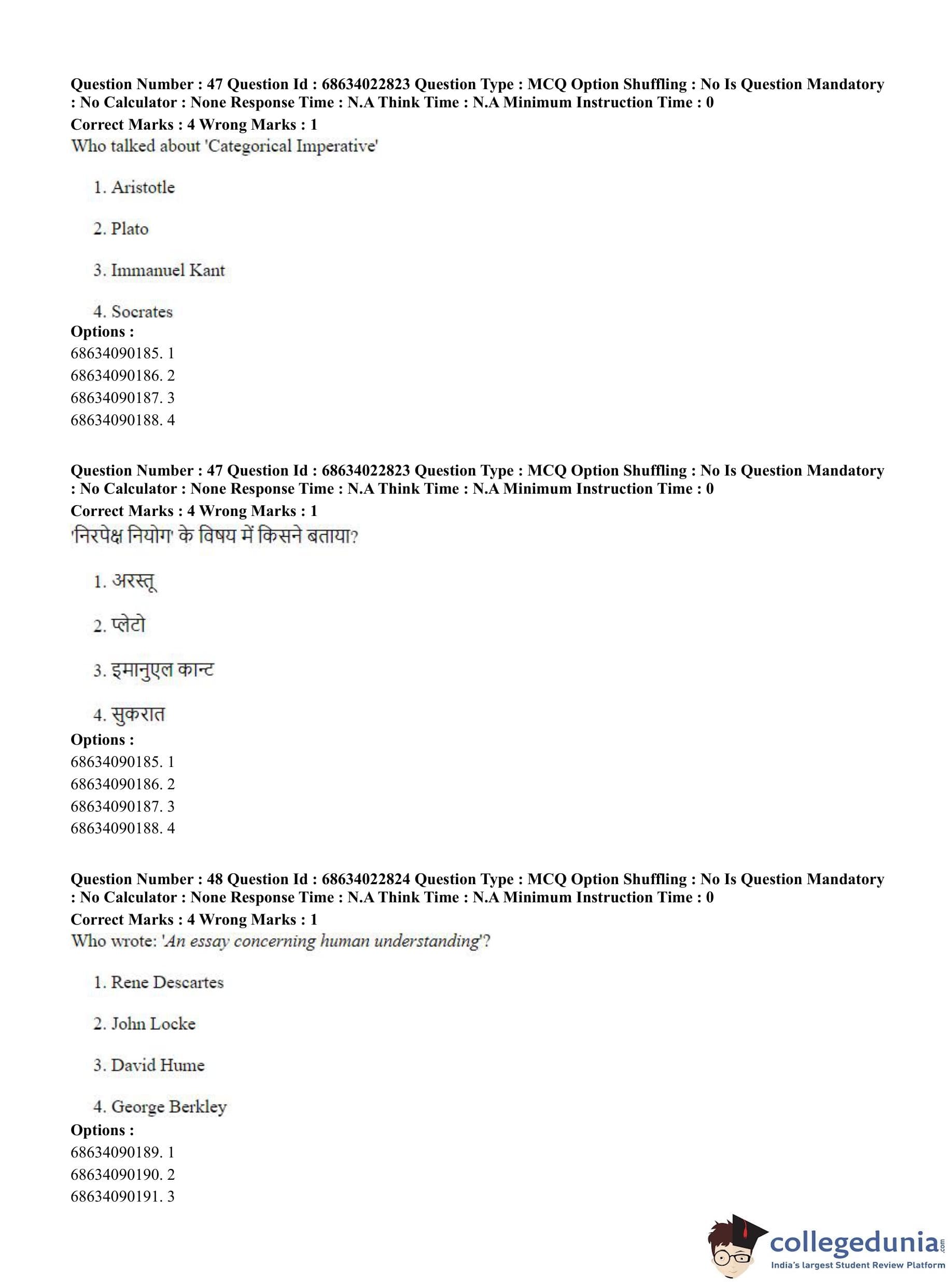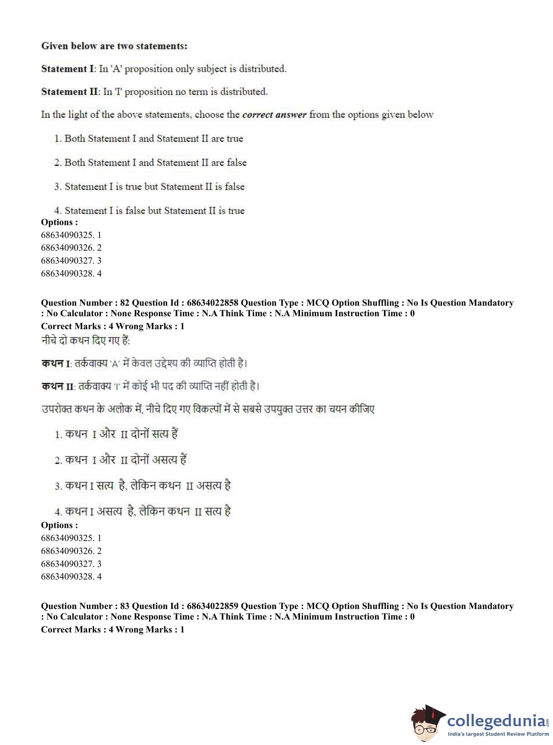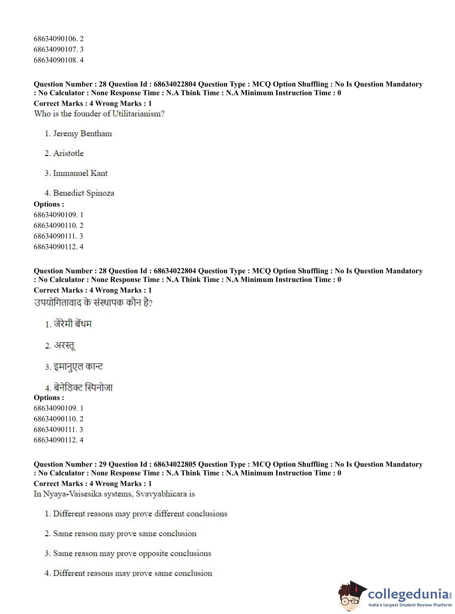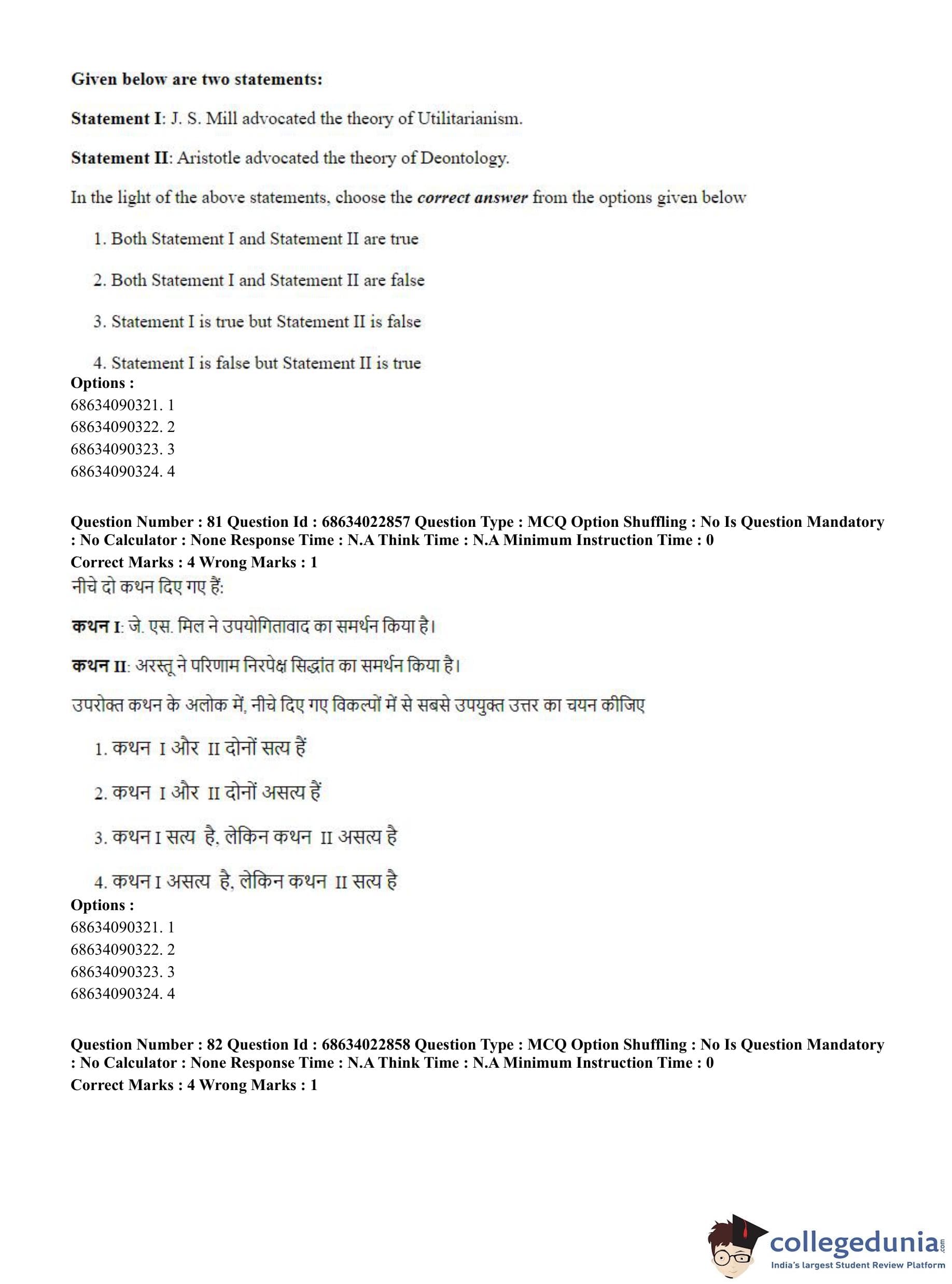CUET PG 2023 Philosophy Question Paper in Hindi (June 15 - Shift 3)