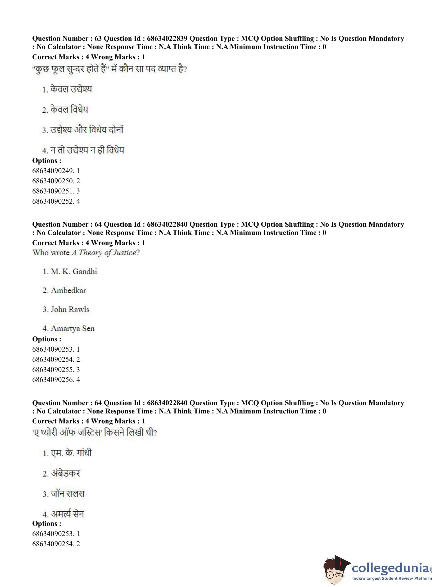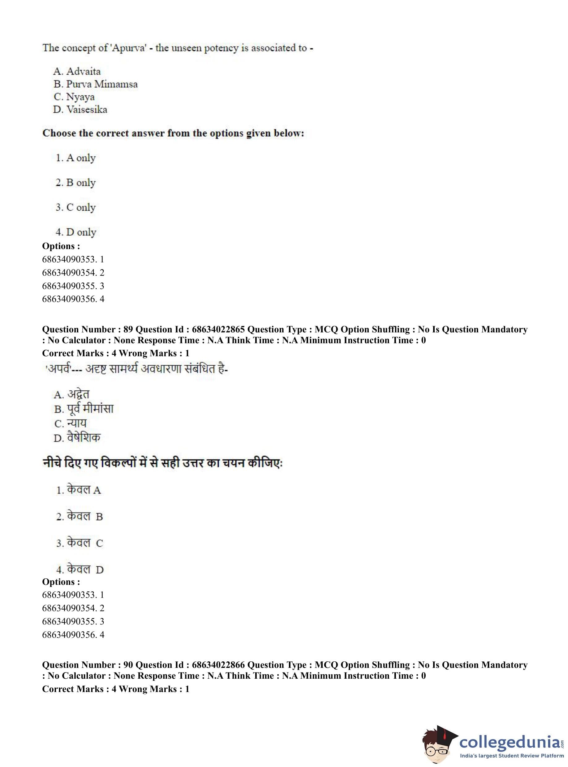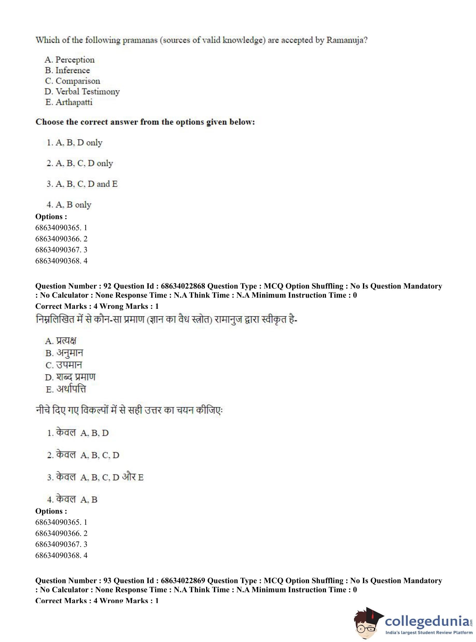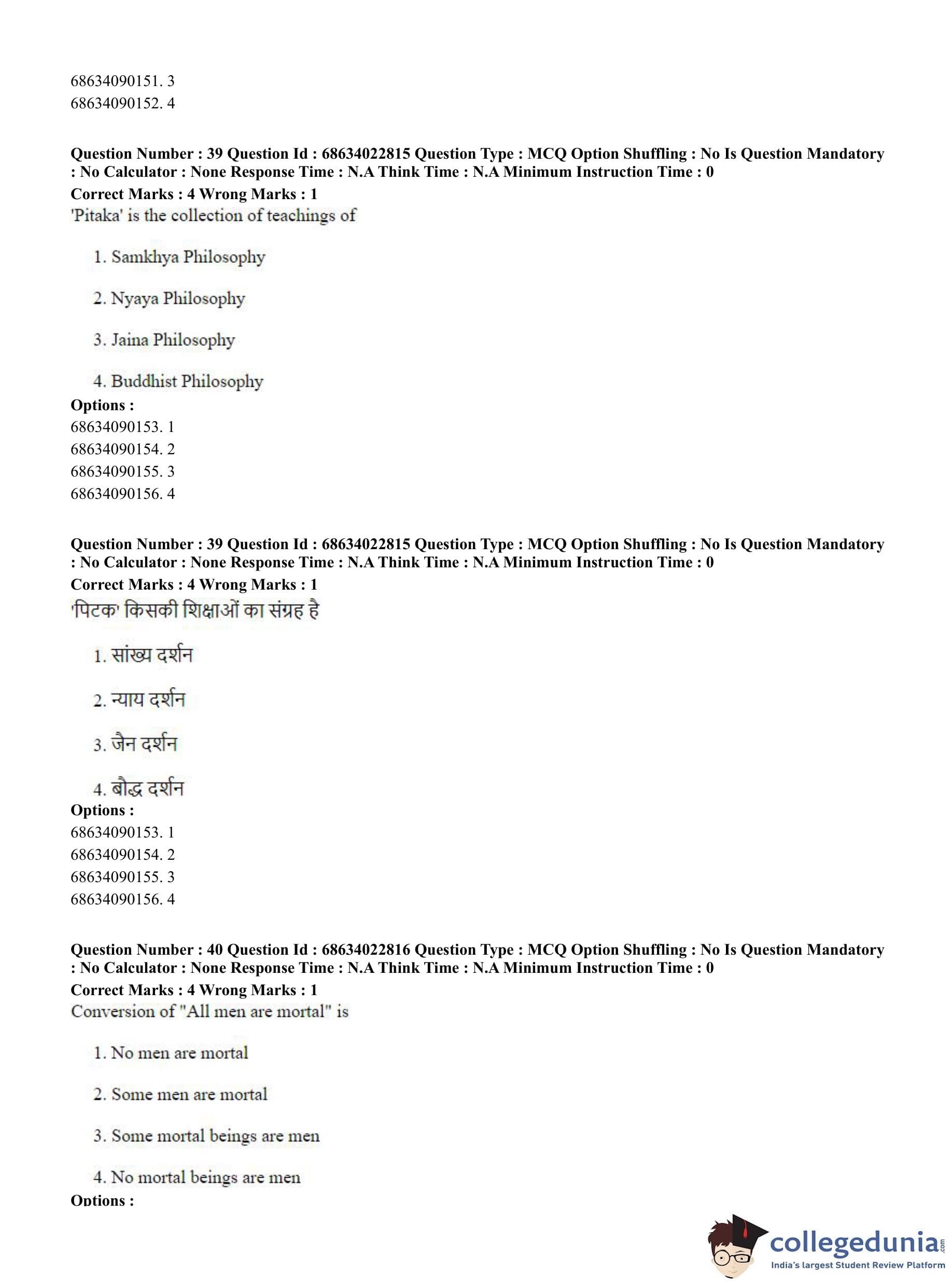 CUET PG 2023 Philosophy Question Paper in Hindi (June 15 - Shift 3)