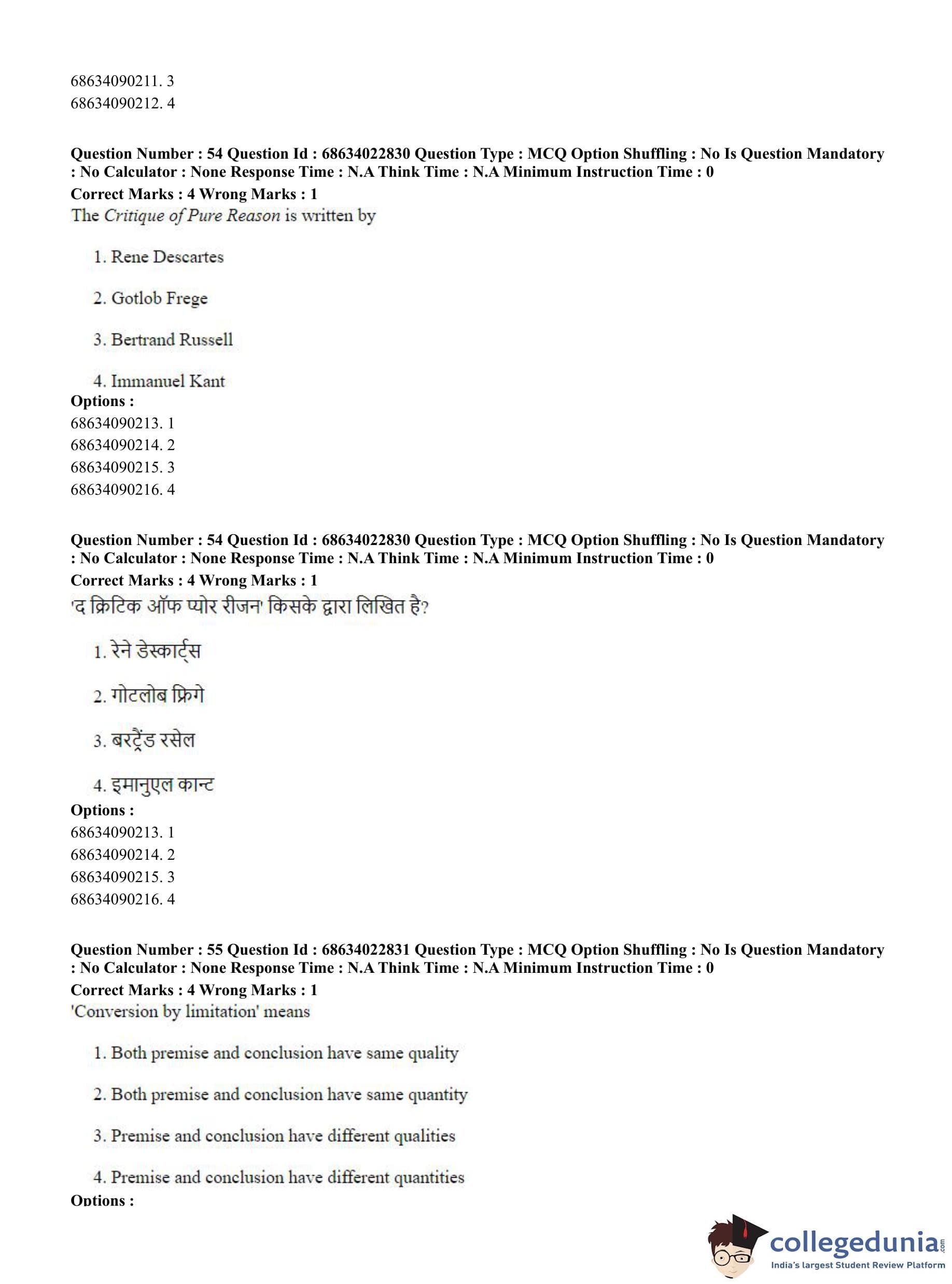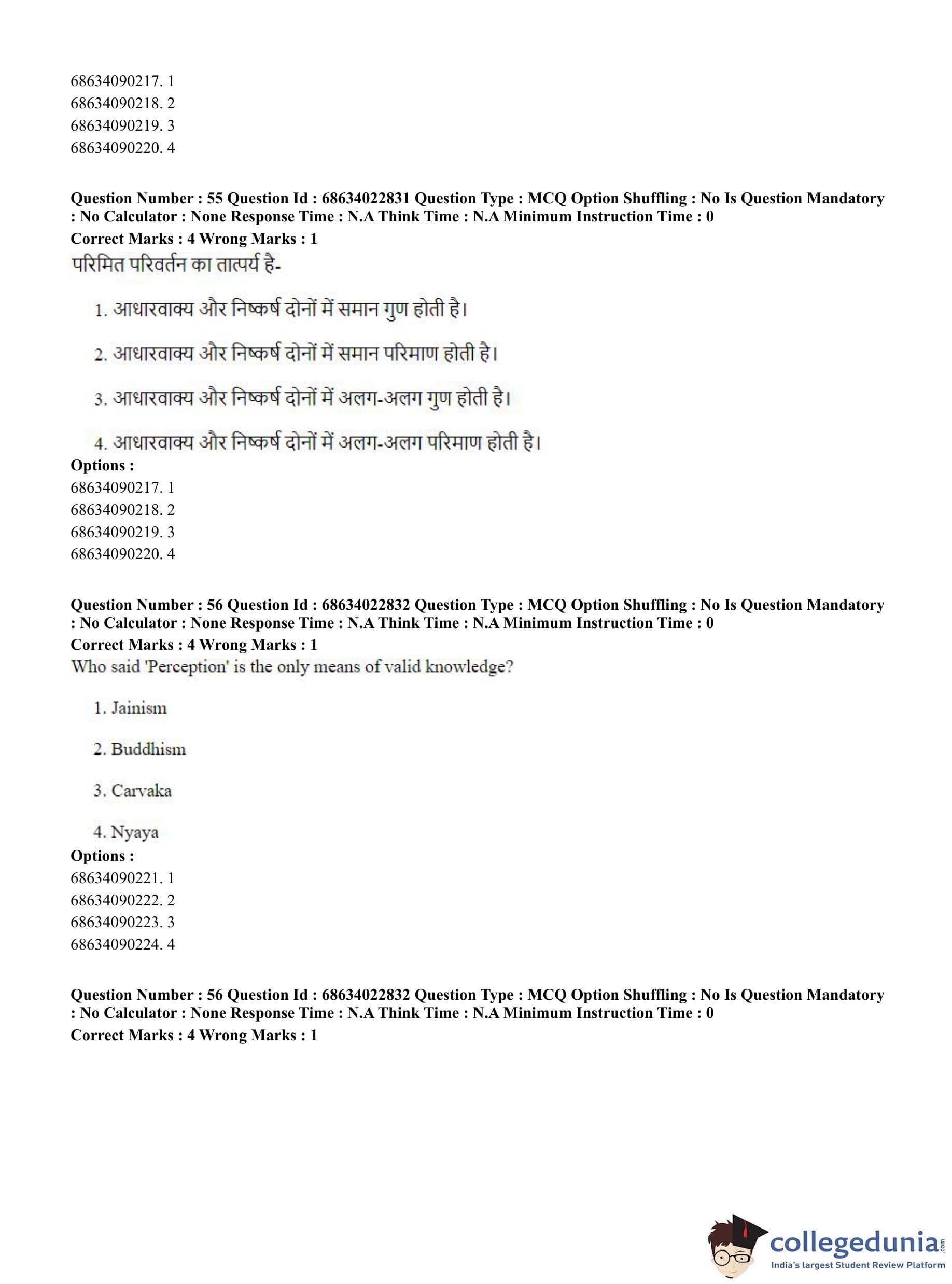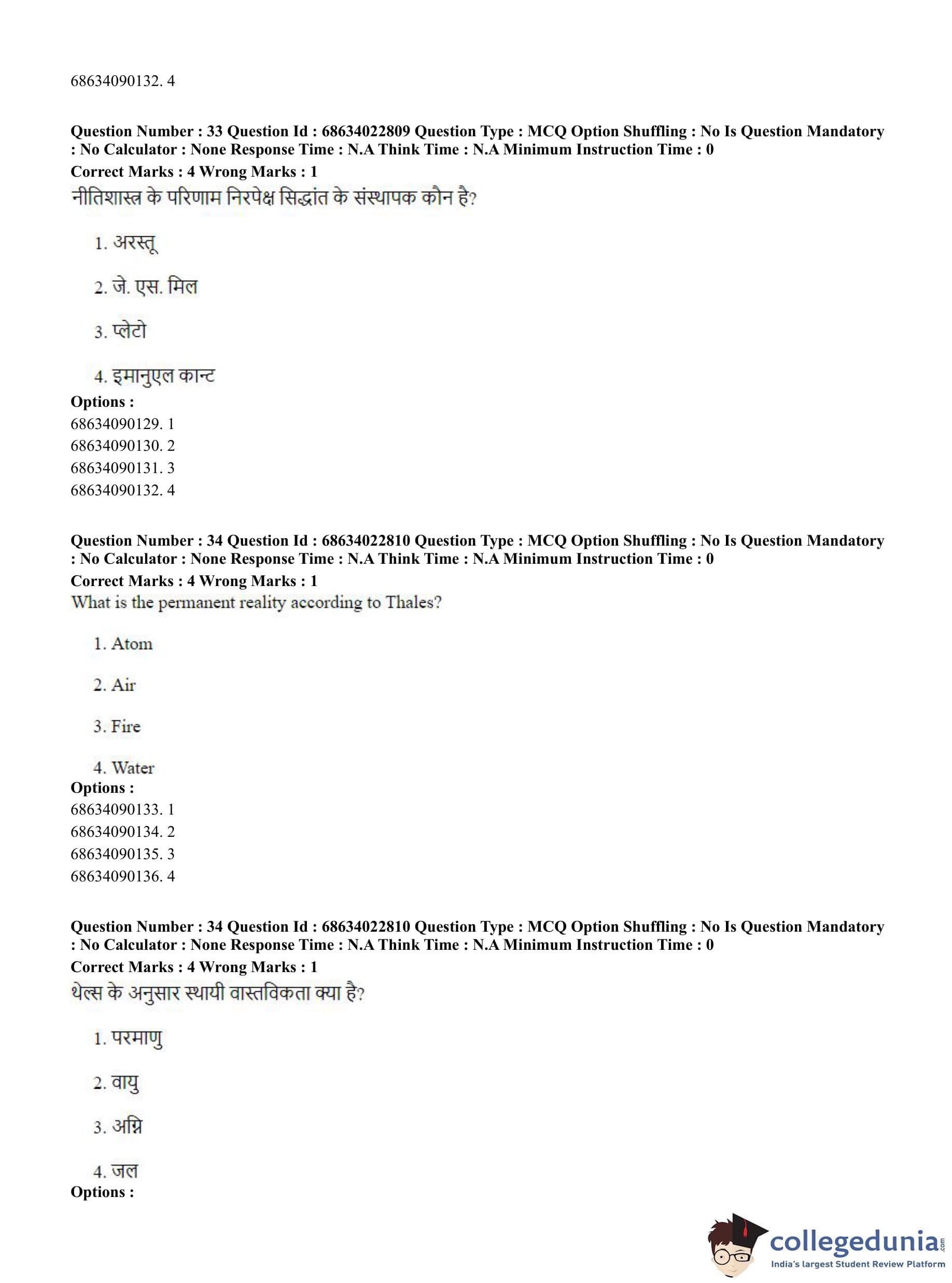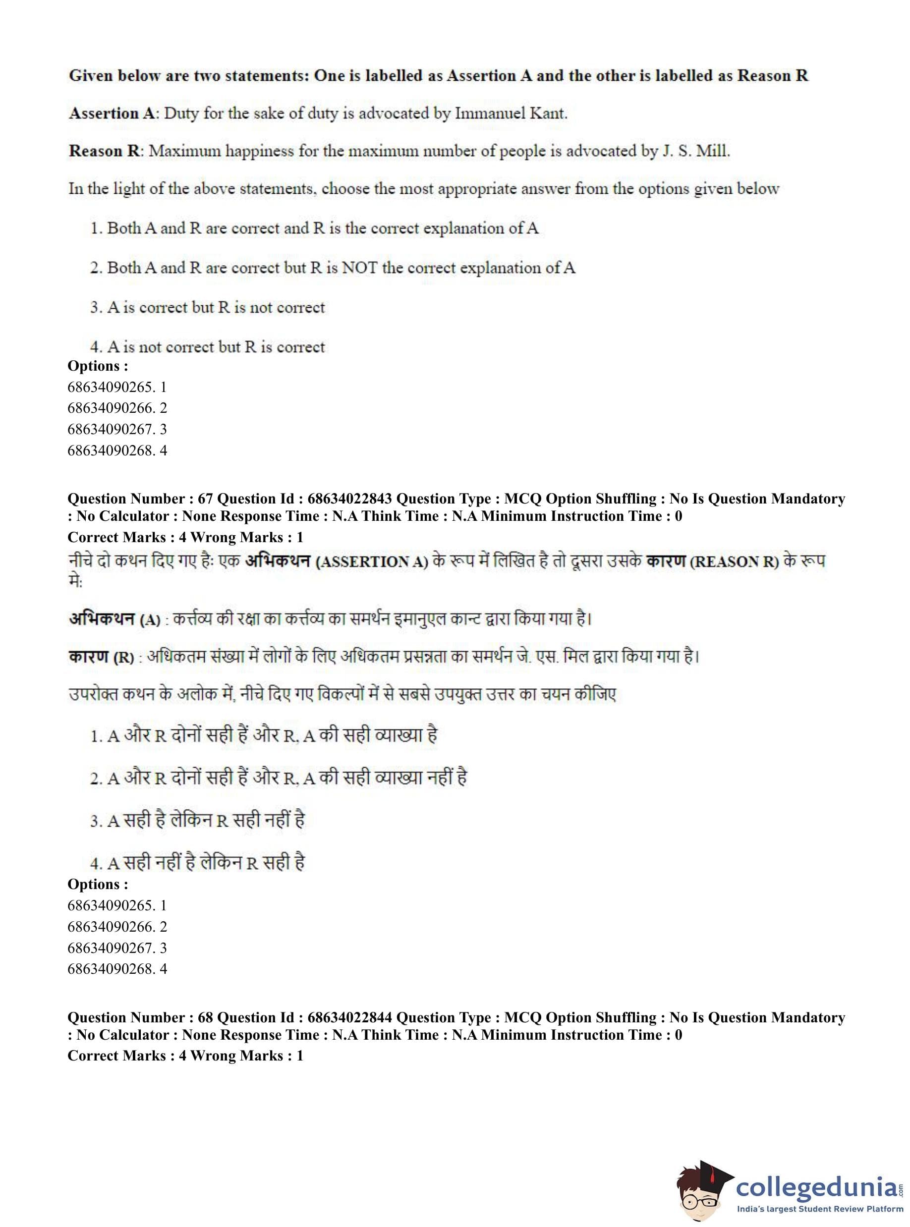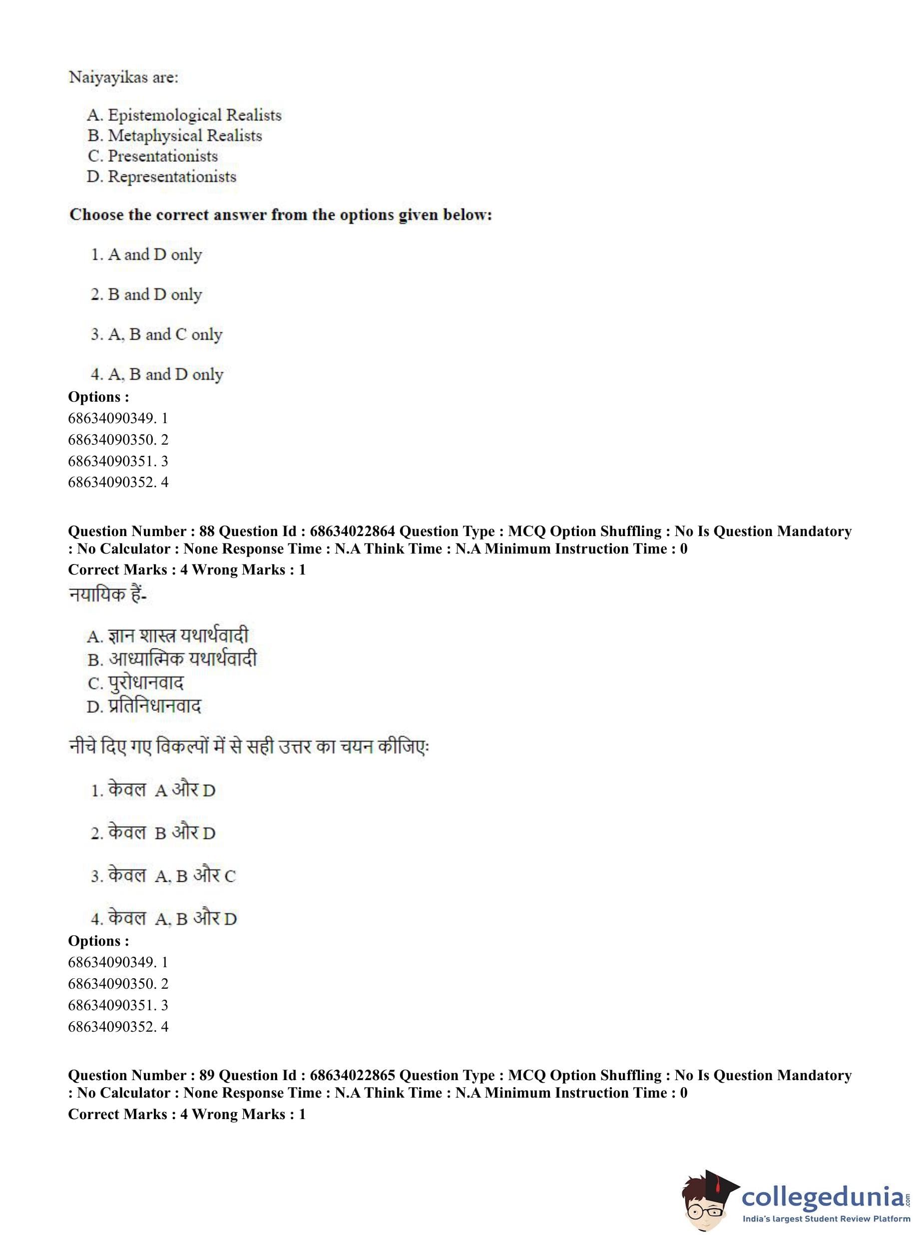 CUET PG 2023 Philosophy Question Paper in Hindi (June 15 - Shift 3)