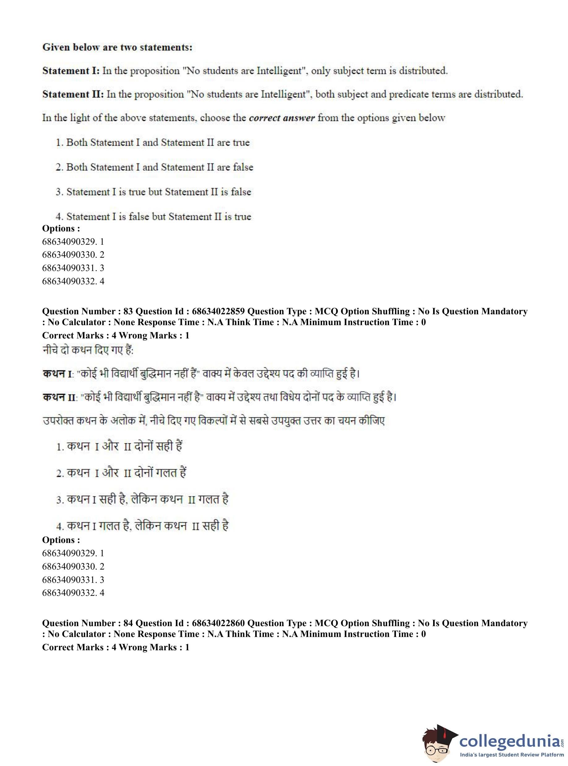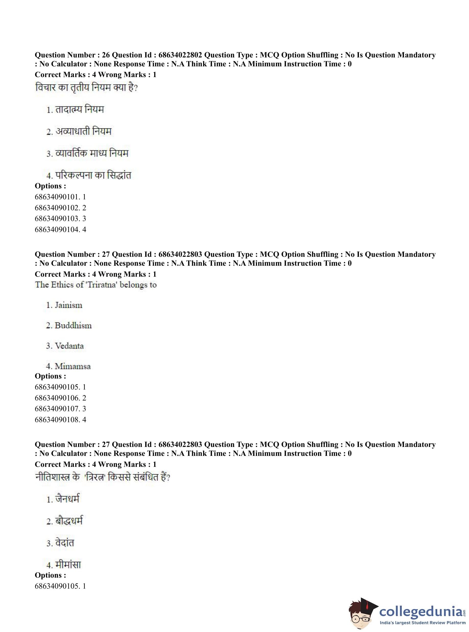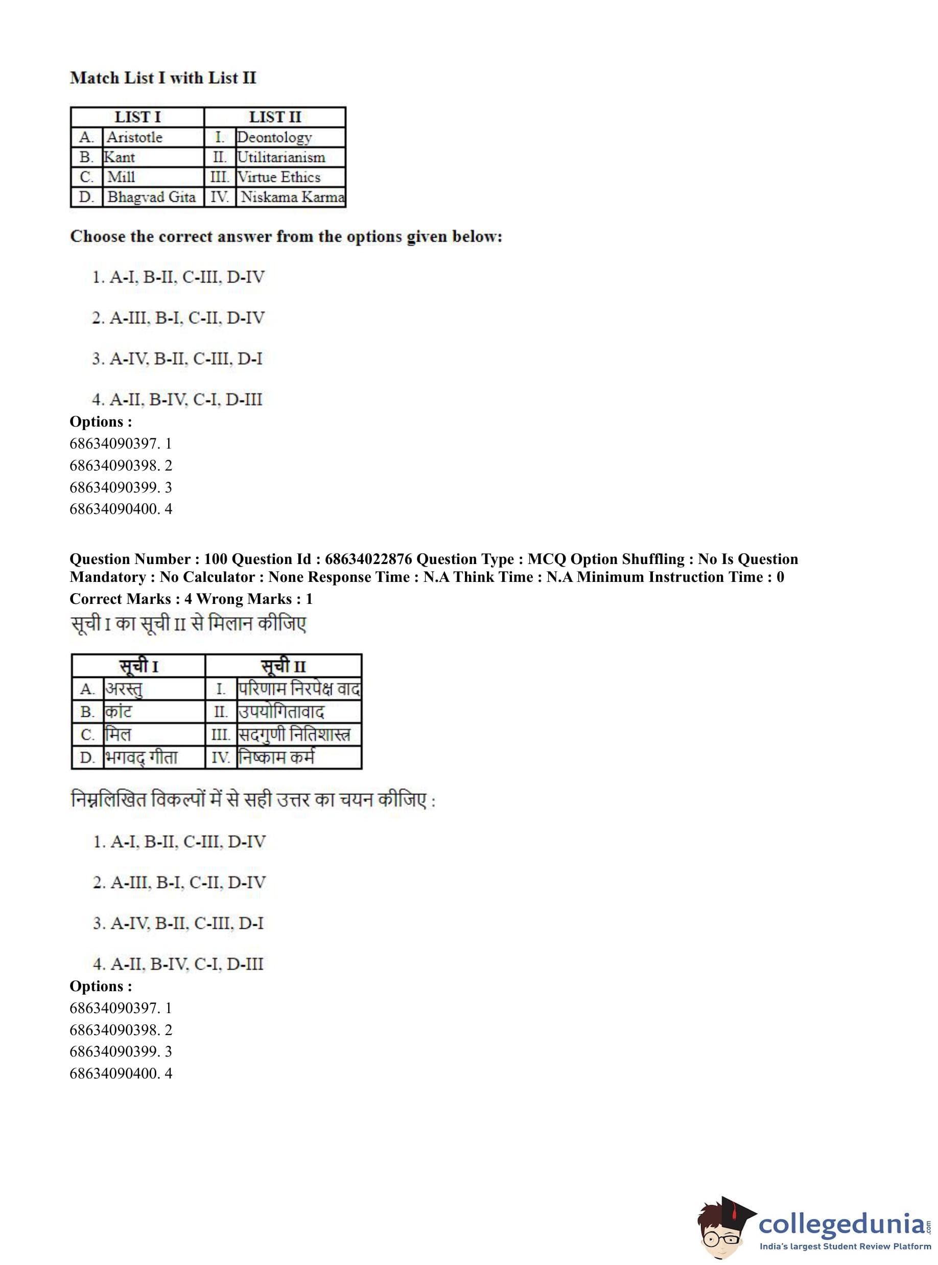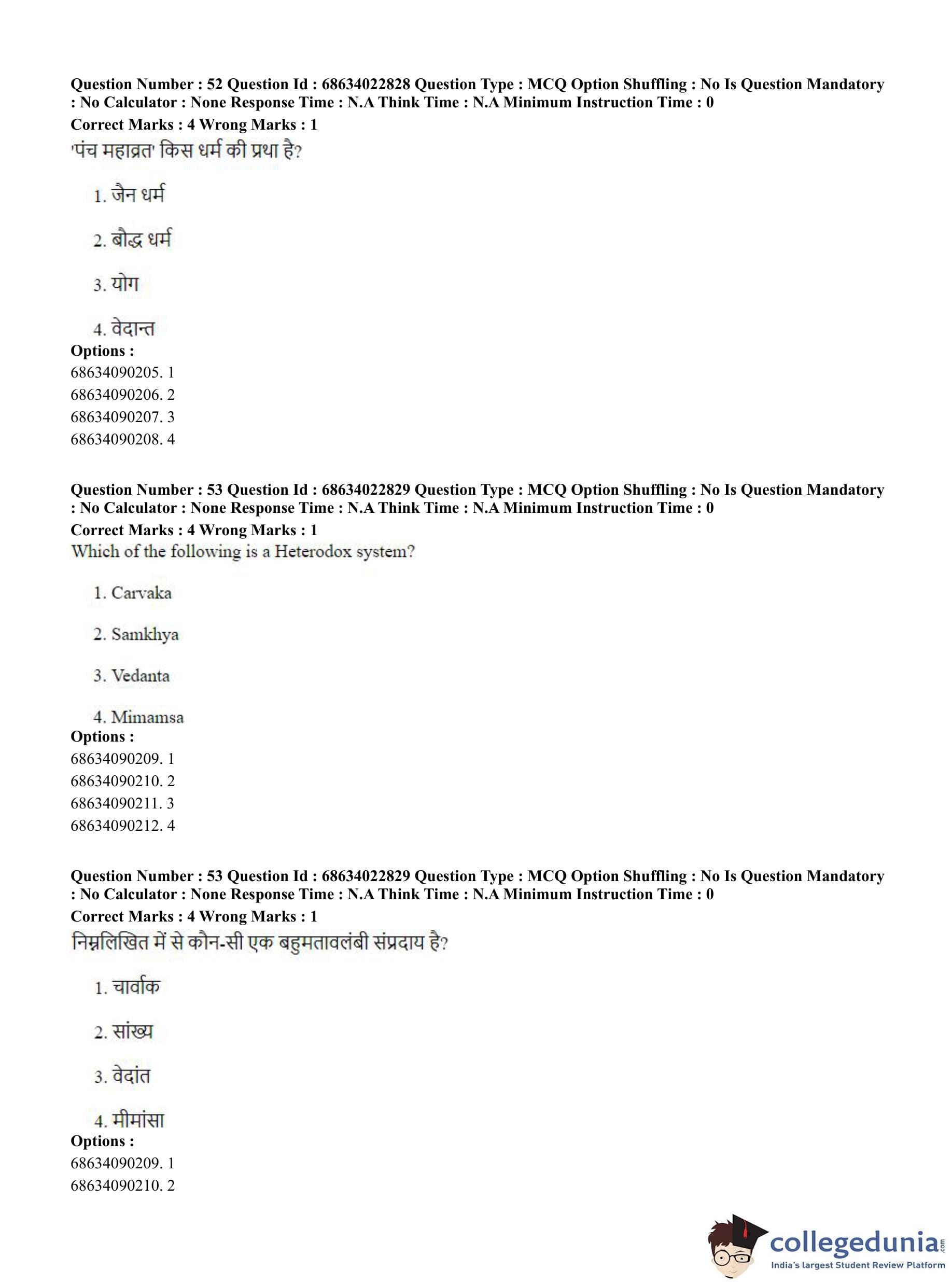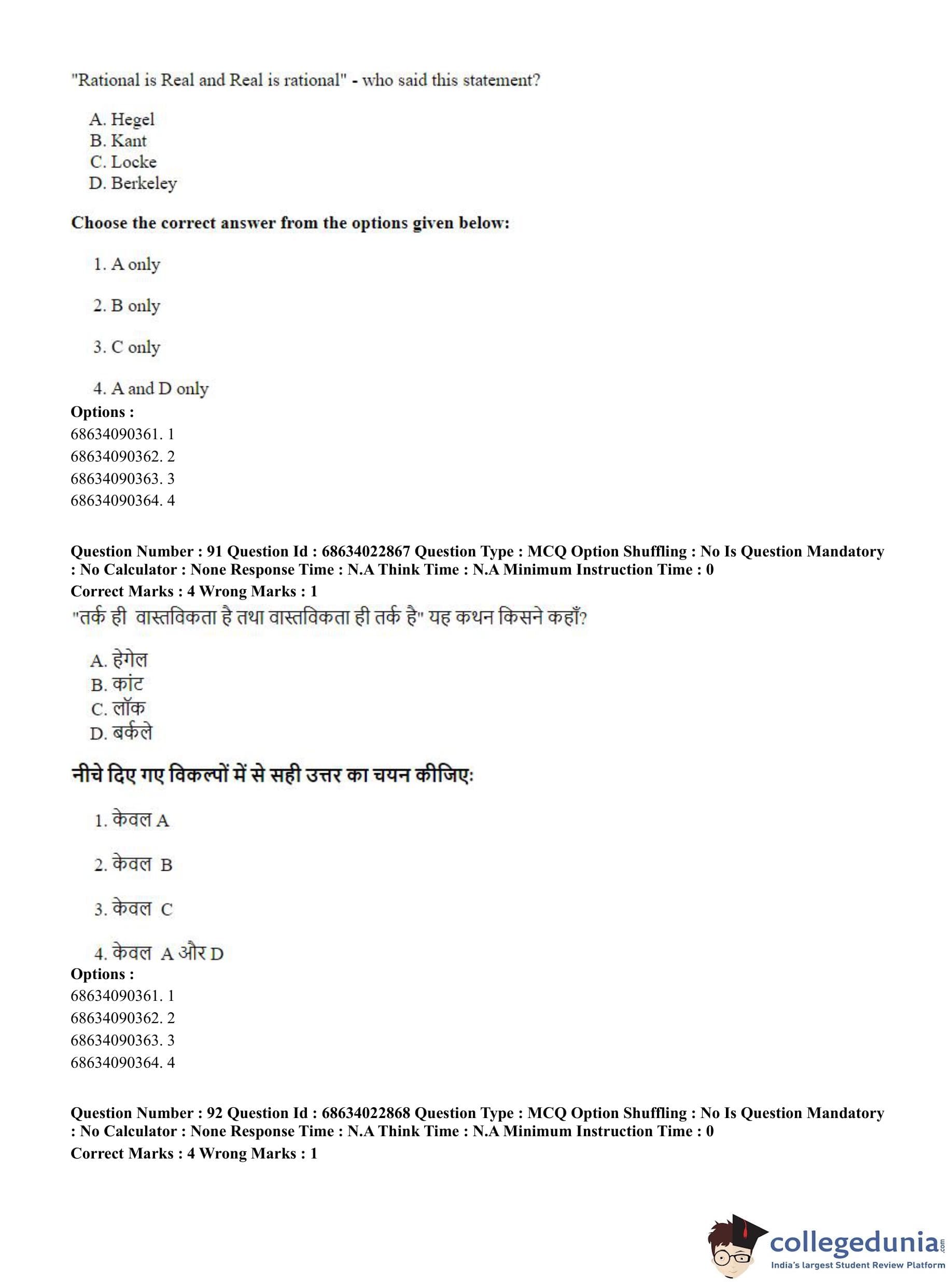 CUET PG 2023 Philosophy Question Paper in Hindi (June 15 - Shift 3)
