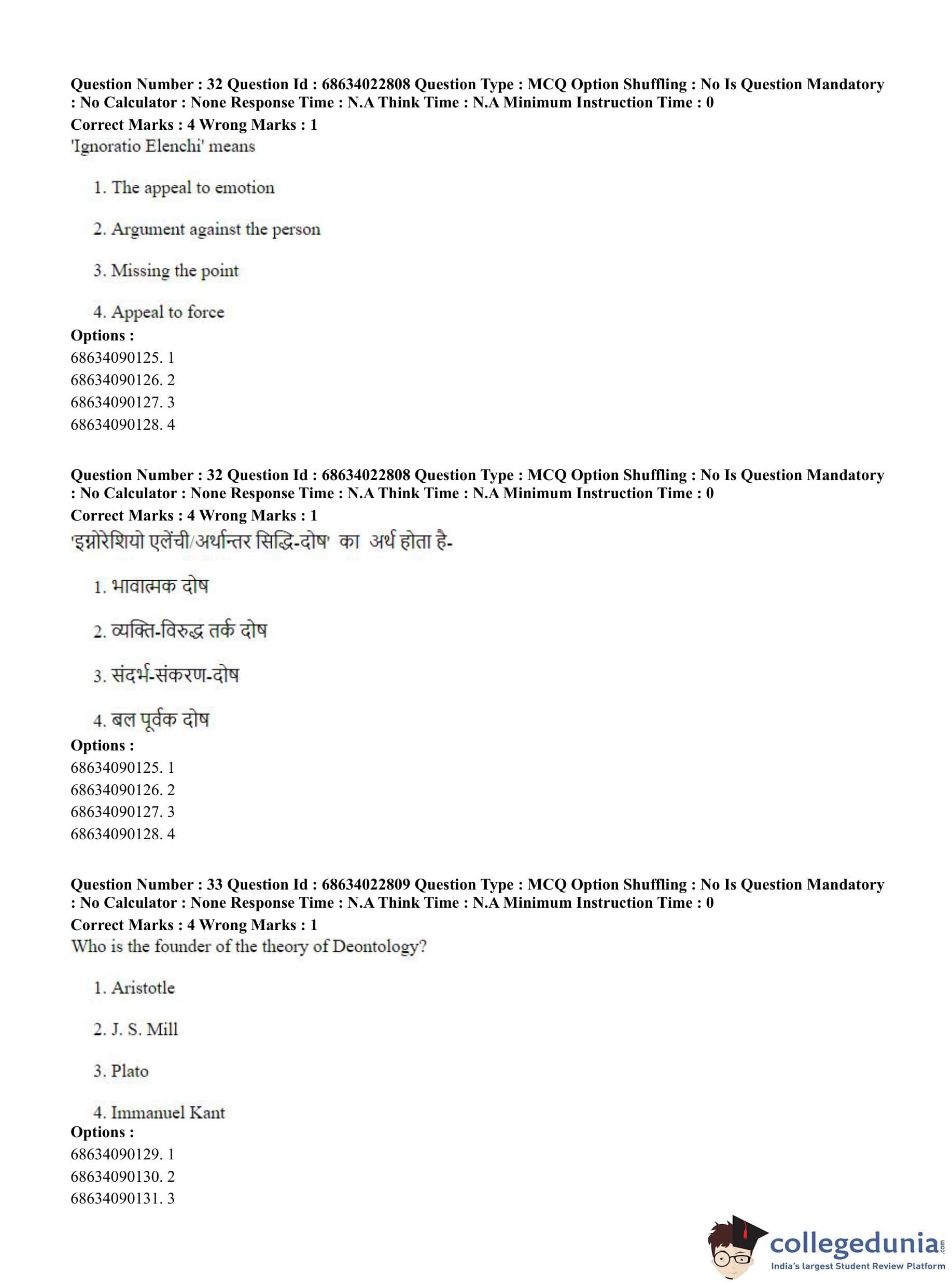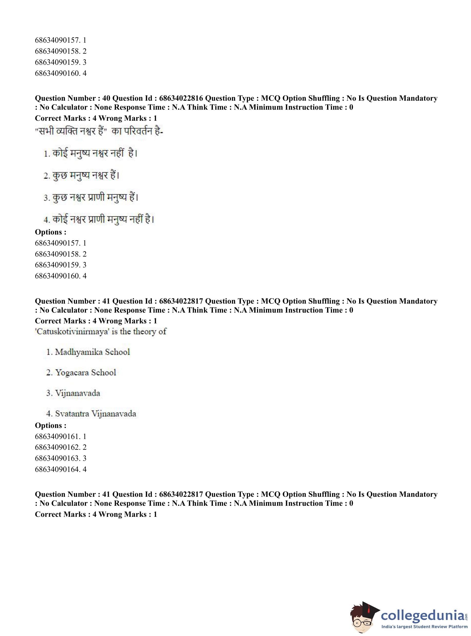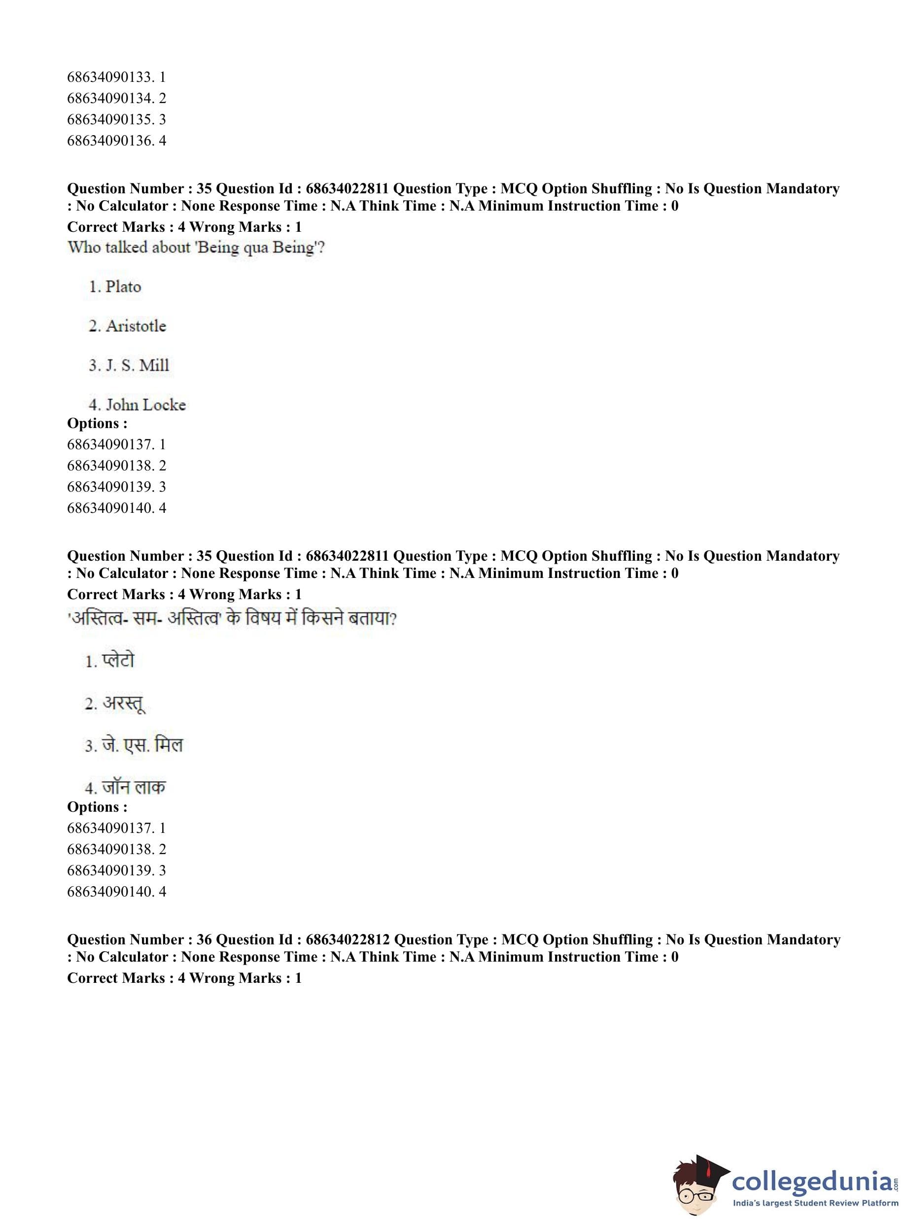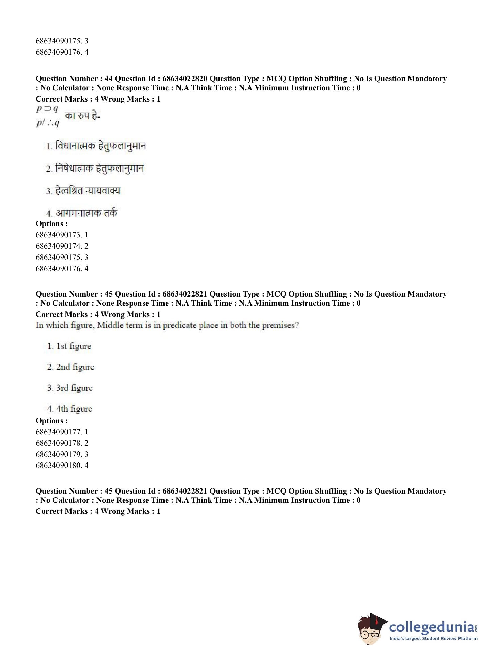 CUET PG 2023 Philosophy Question Paper in Hindi (June 15 - Shift 3)