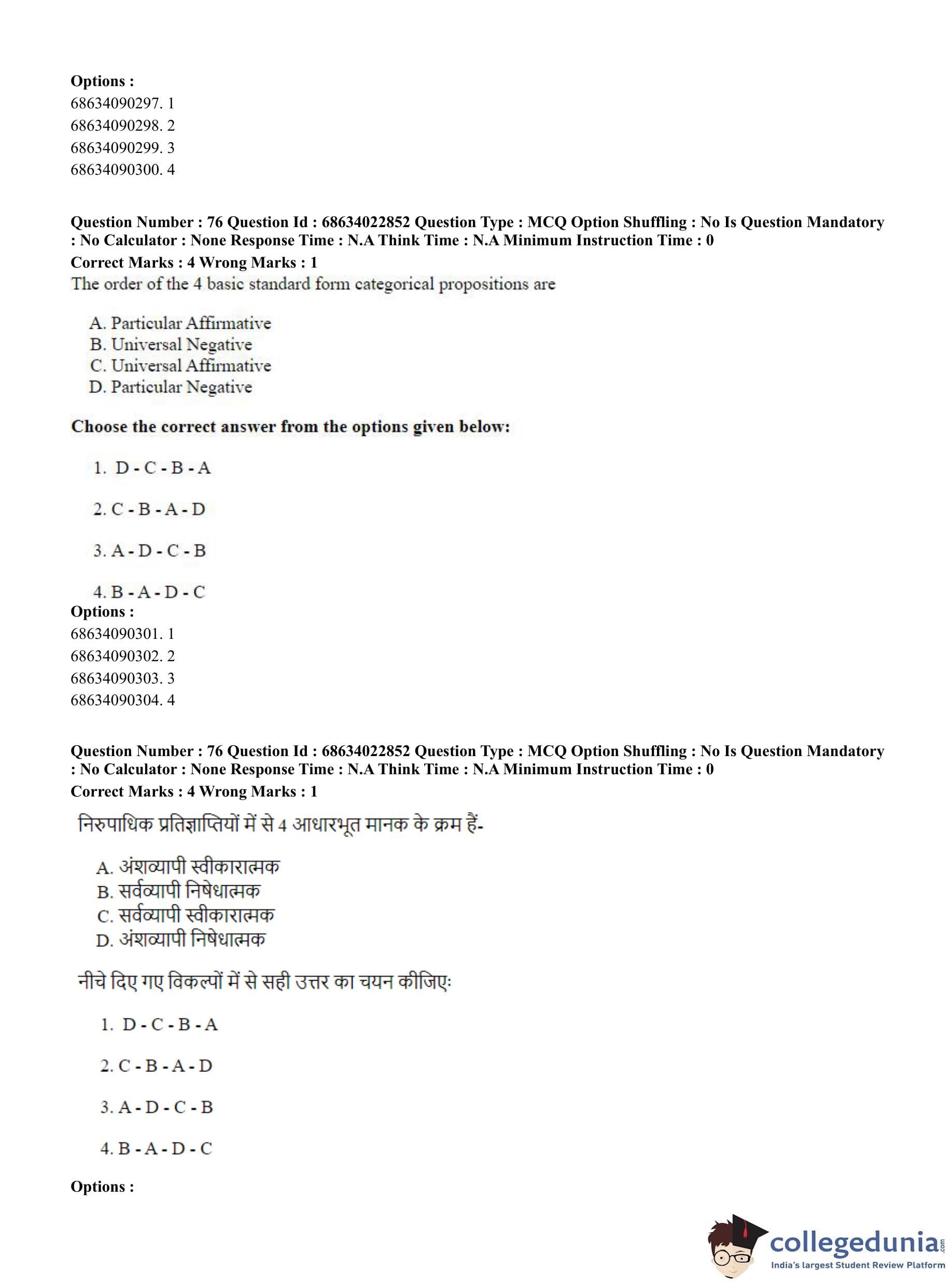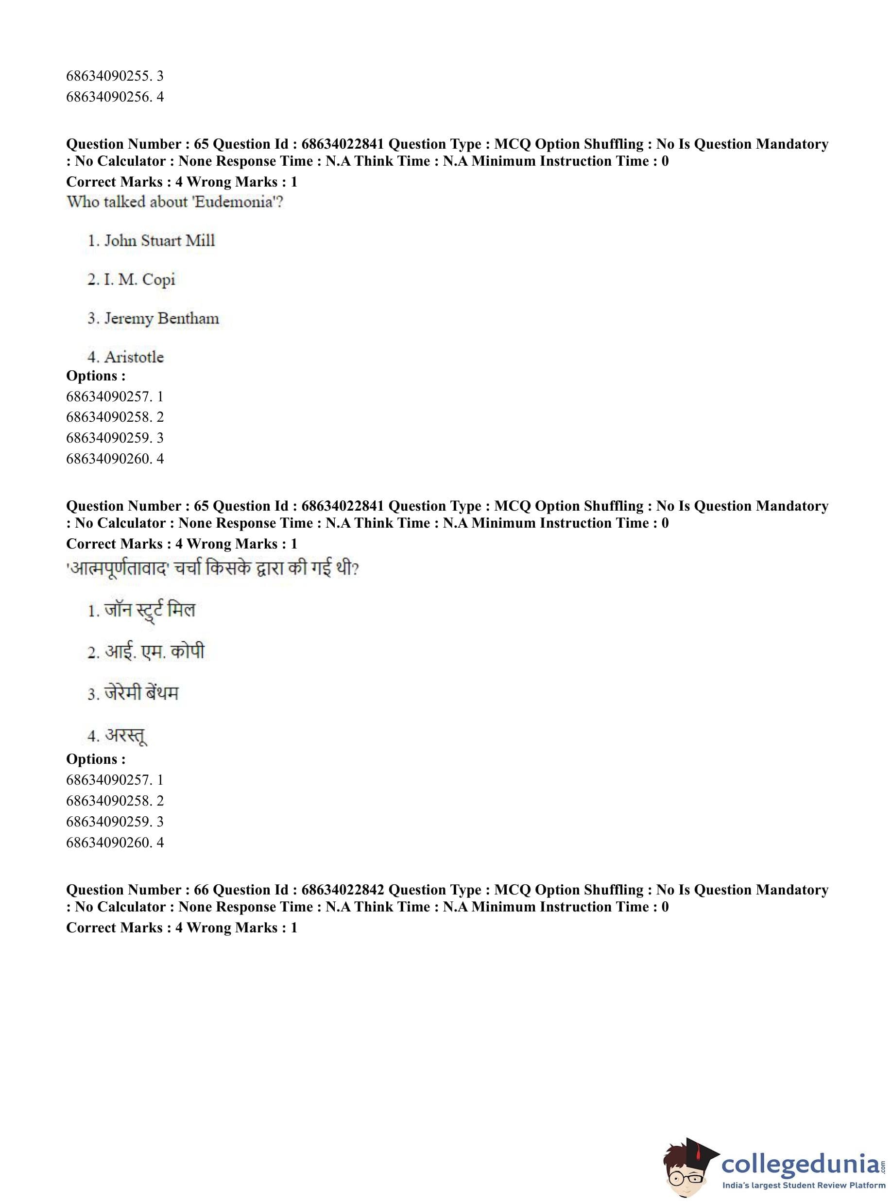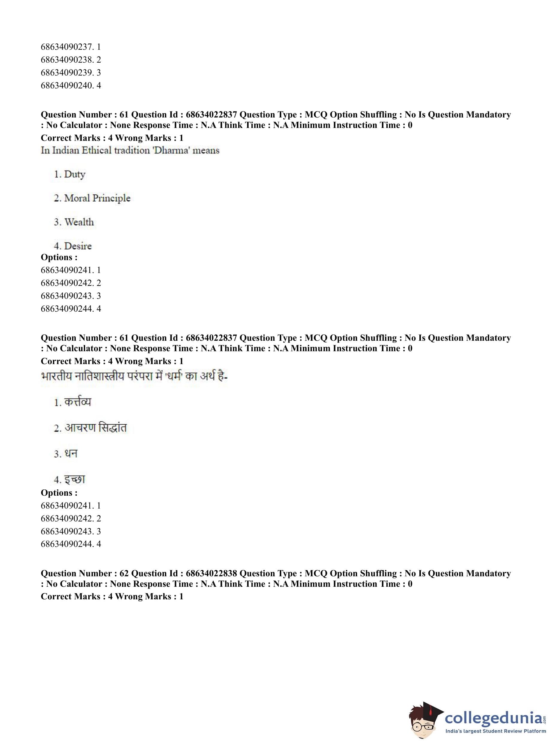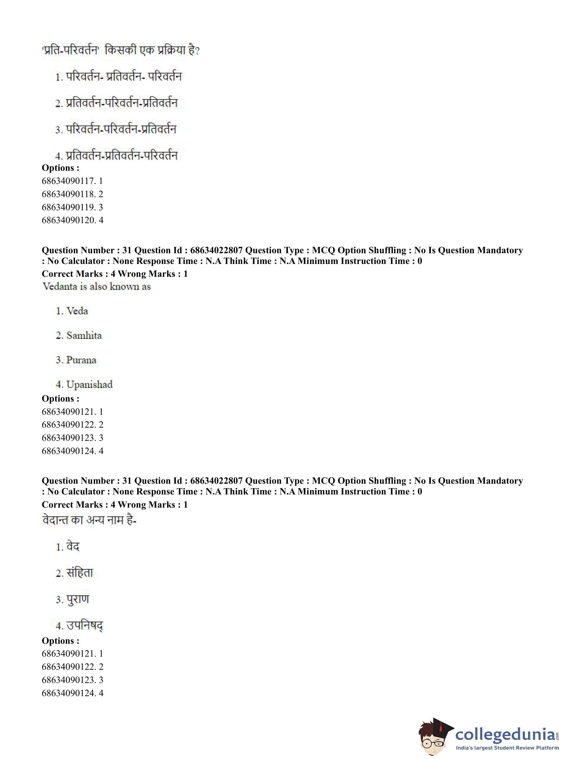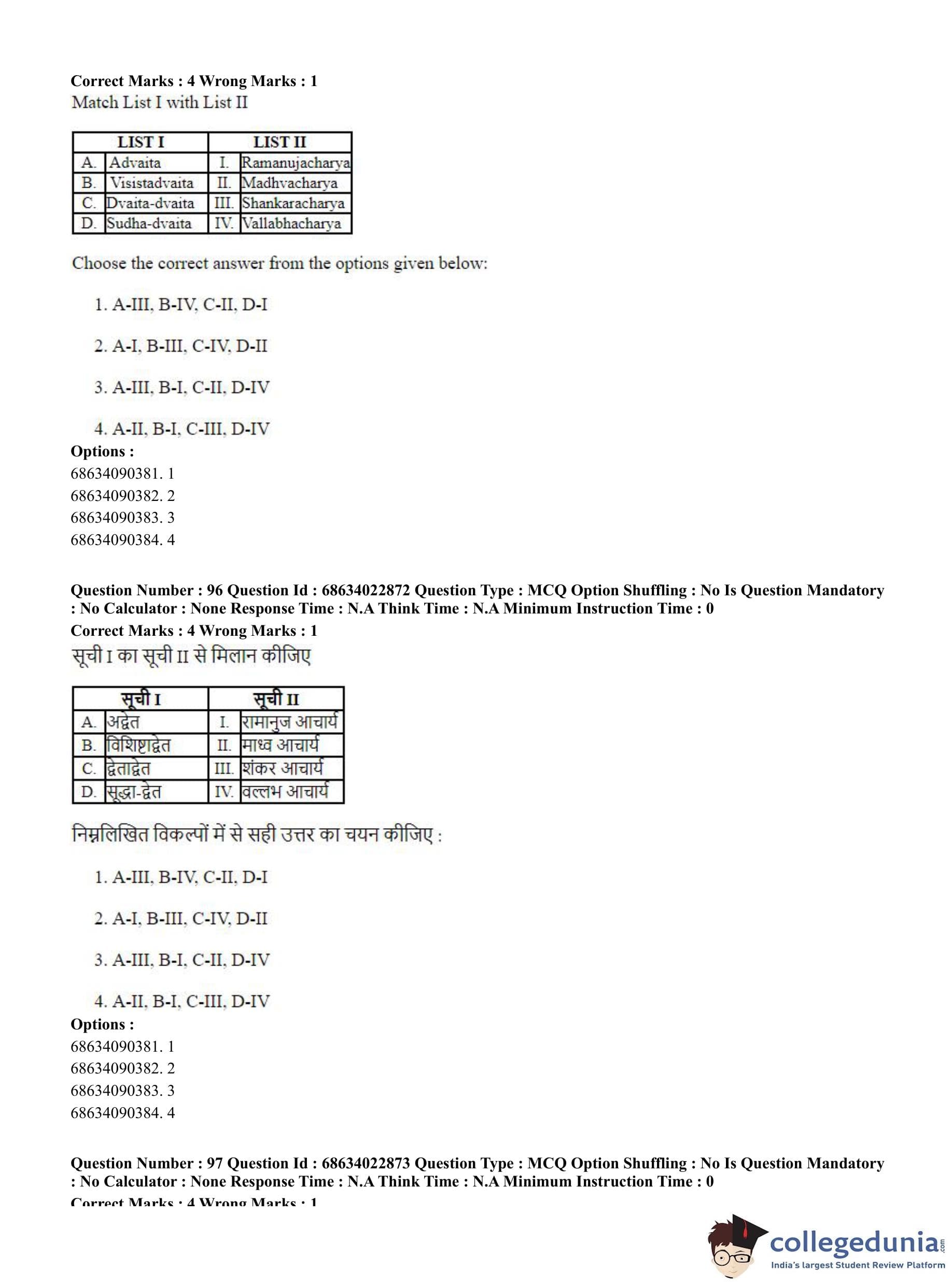 CUET PG 2023 Philosophy Question Paper in Hindi (June 15 - Shift 3)