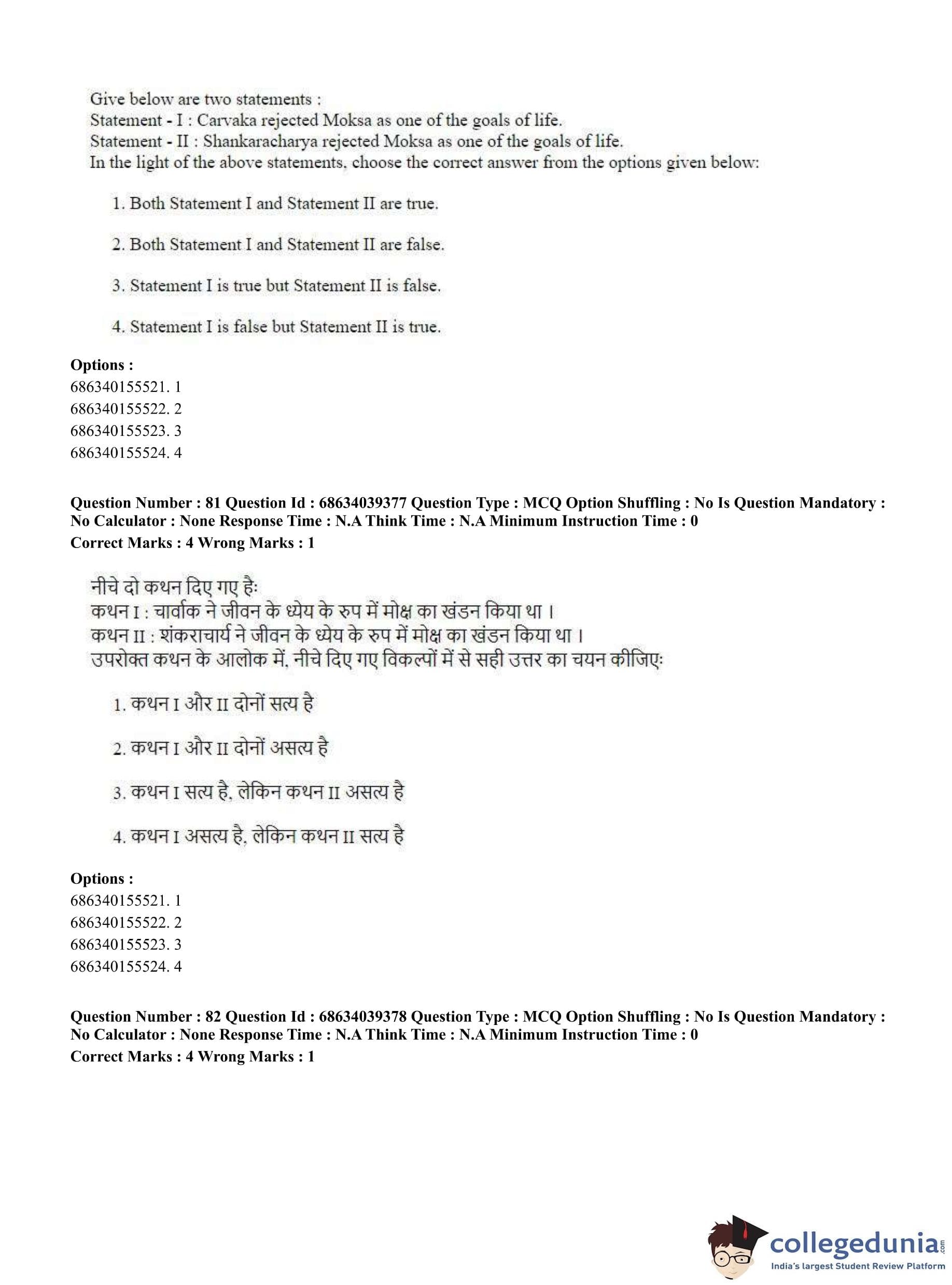 CUET PG 2023 Philosophy Question Paper in Hindi (June 25 - Shift 2)