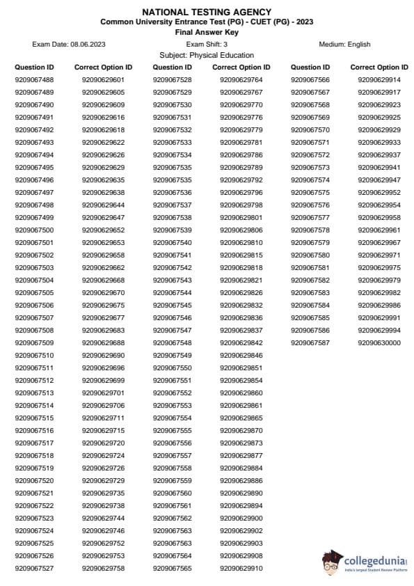 | CUET PG Physical Education Question Paper 2023 PDF | CUET PG Physical Education Answer Key 2023 PDF |