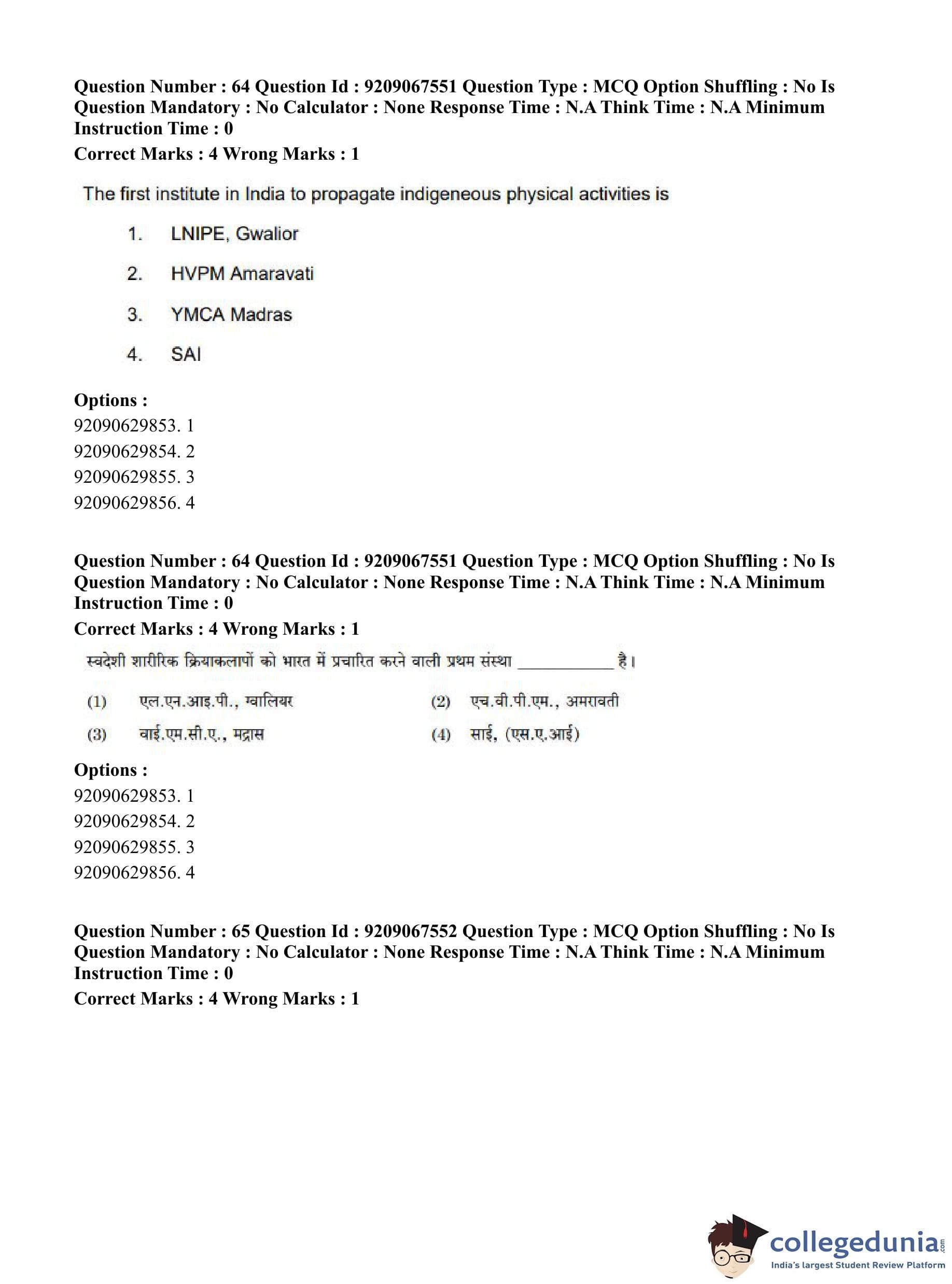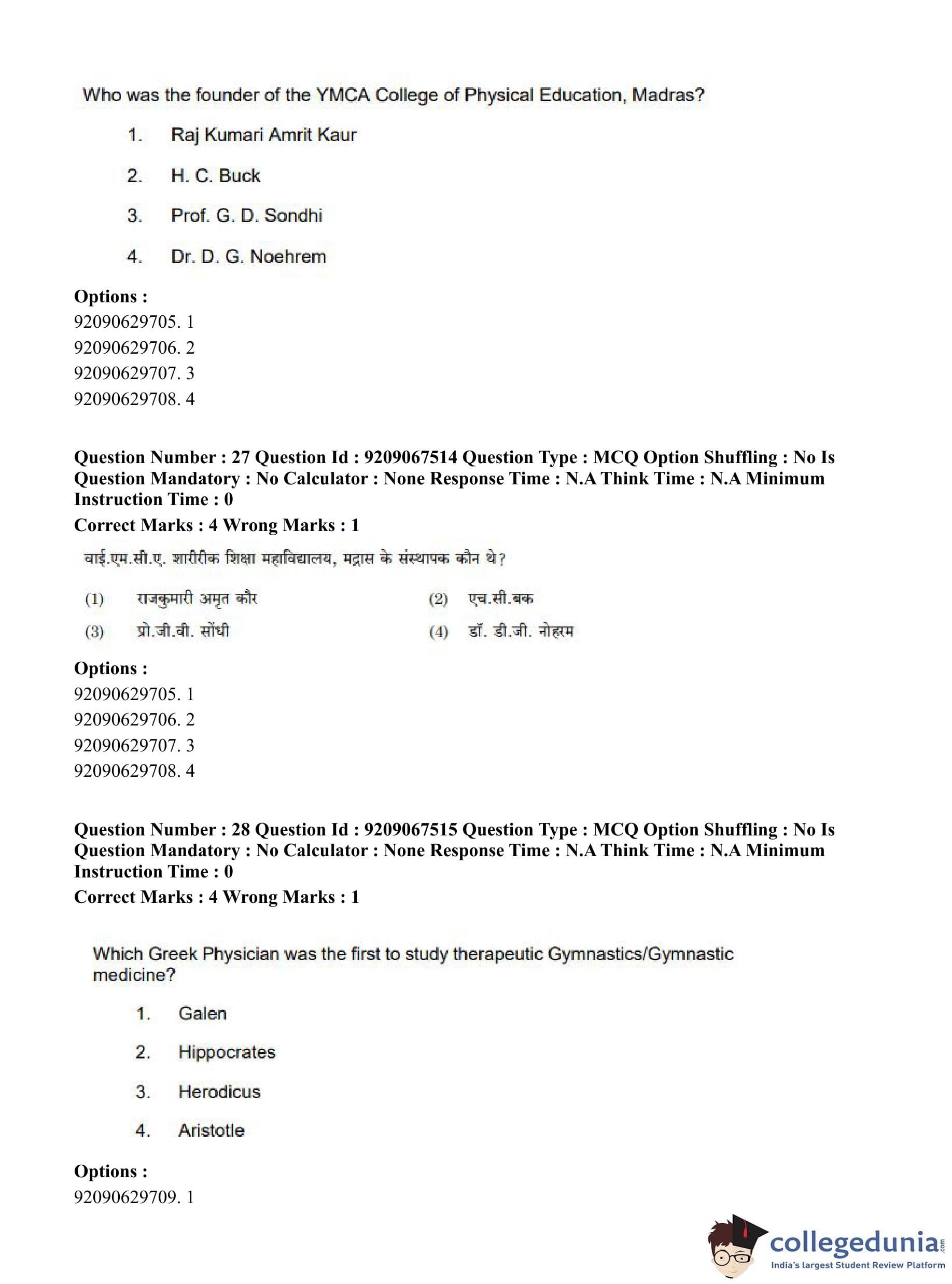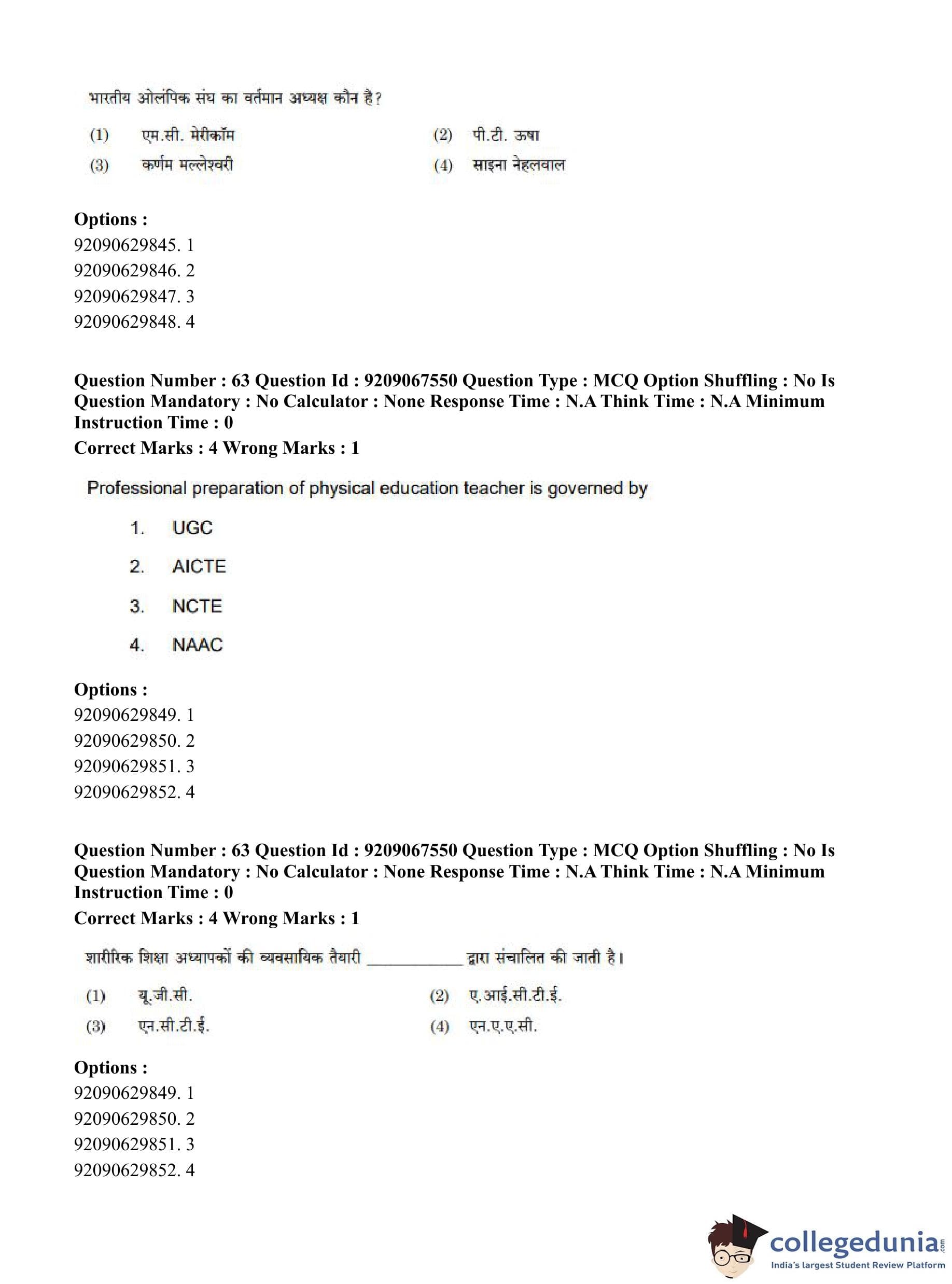 CUET PG 2023 Physical Education Question Paper in English (June 8 - Shift 3)