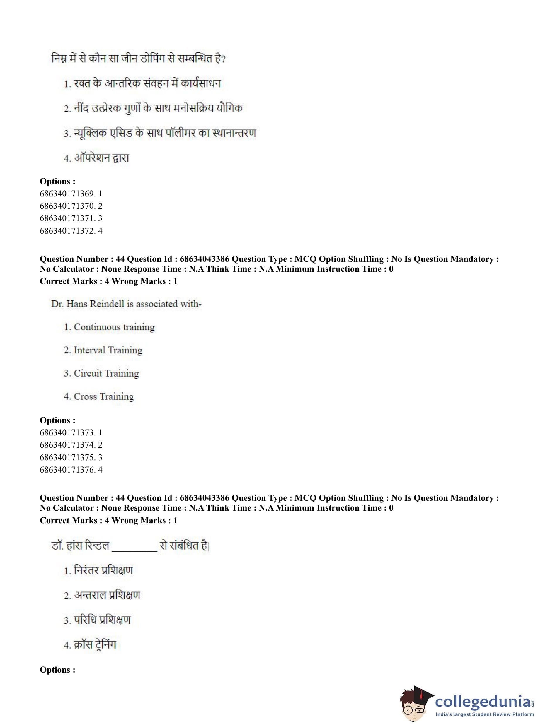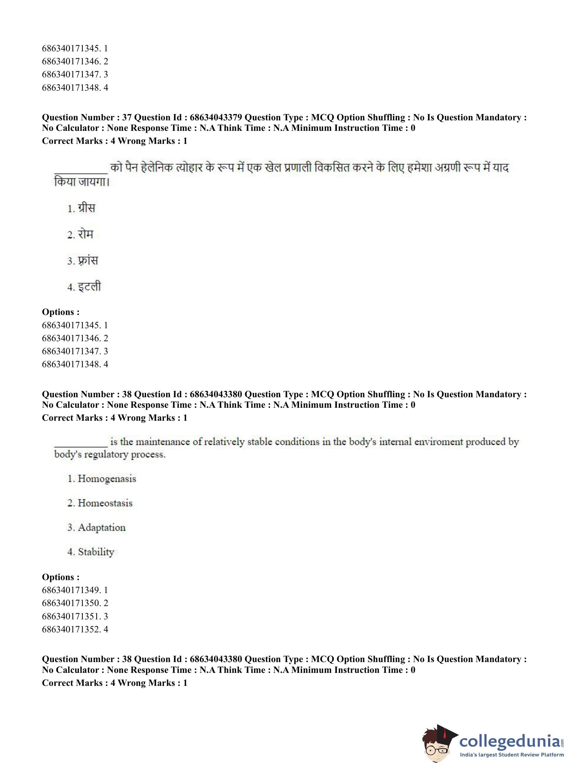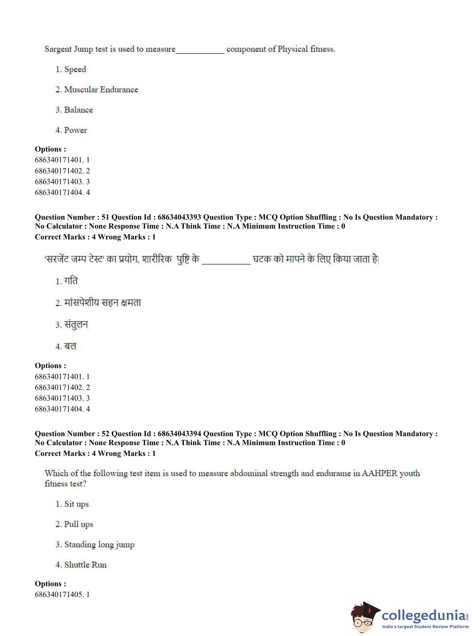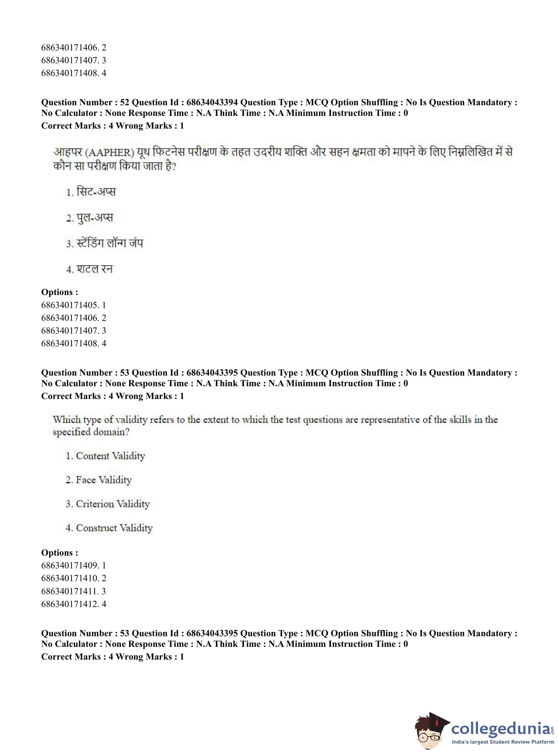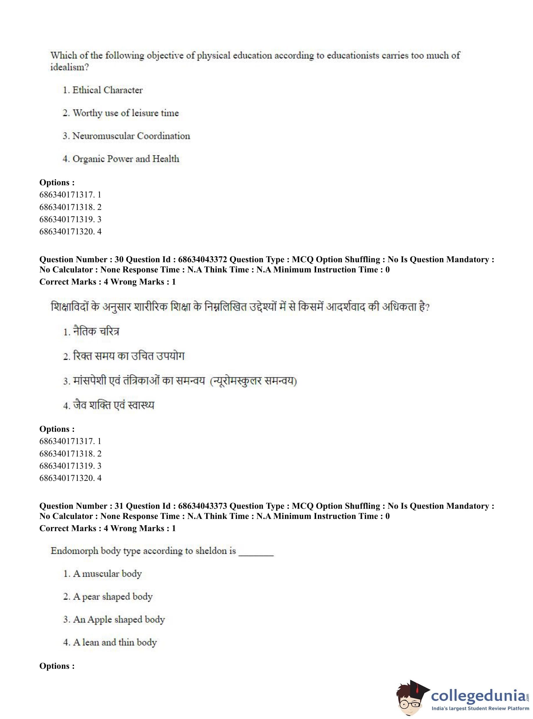 CUET PG 2023 Physical Education Question Paper in Hindi (June 30 - Shift 3)