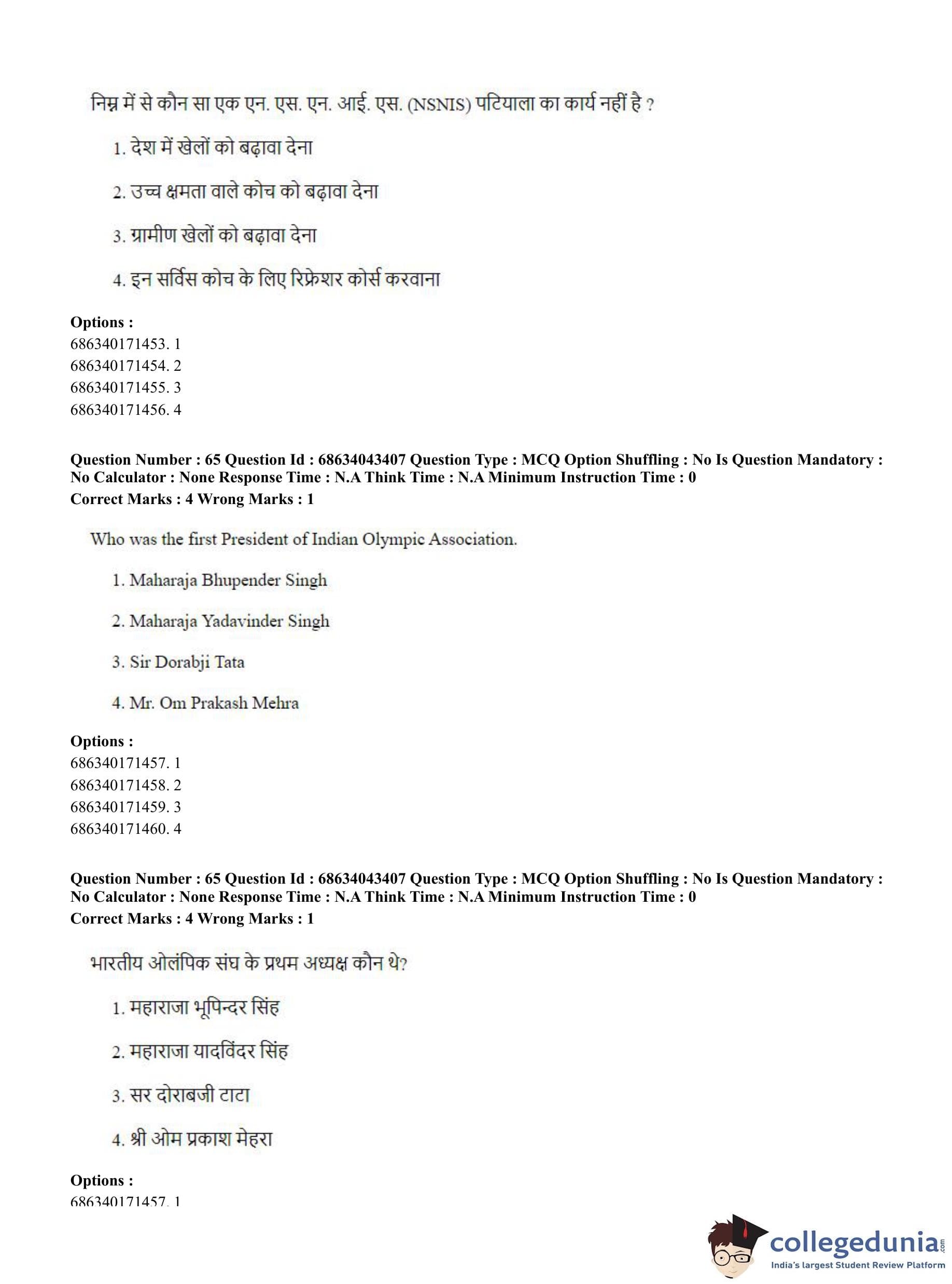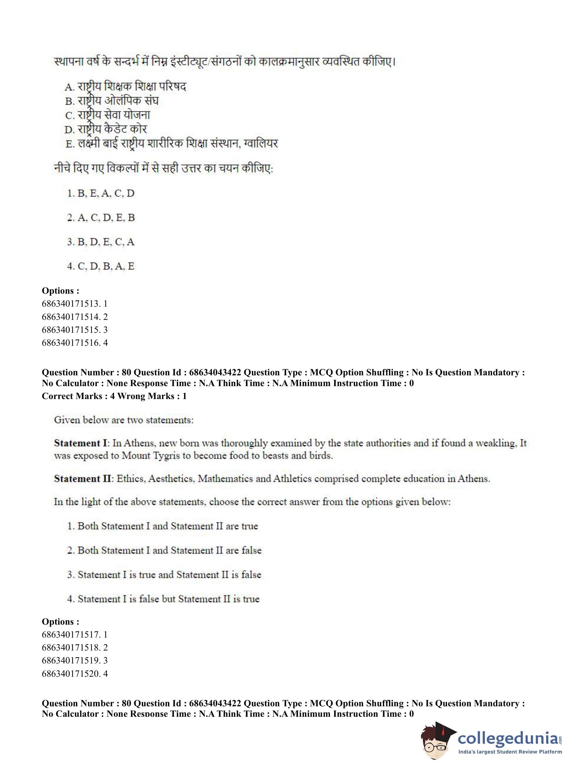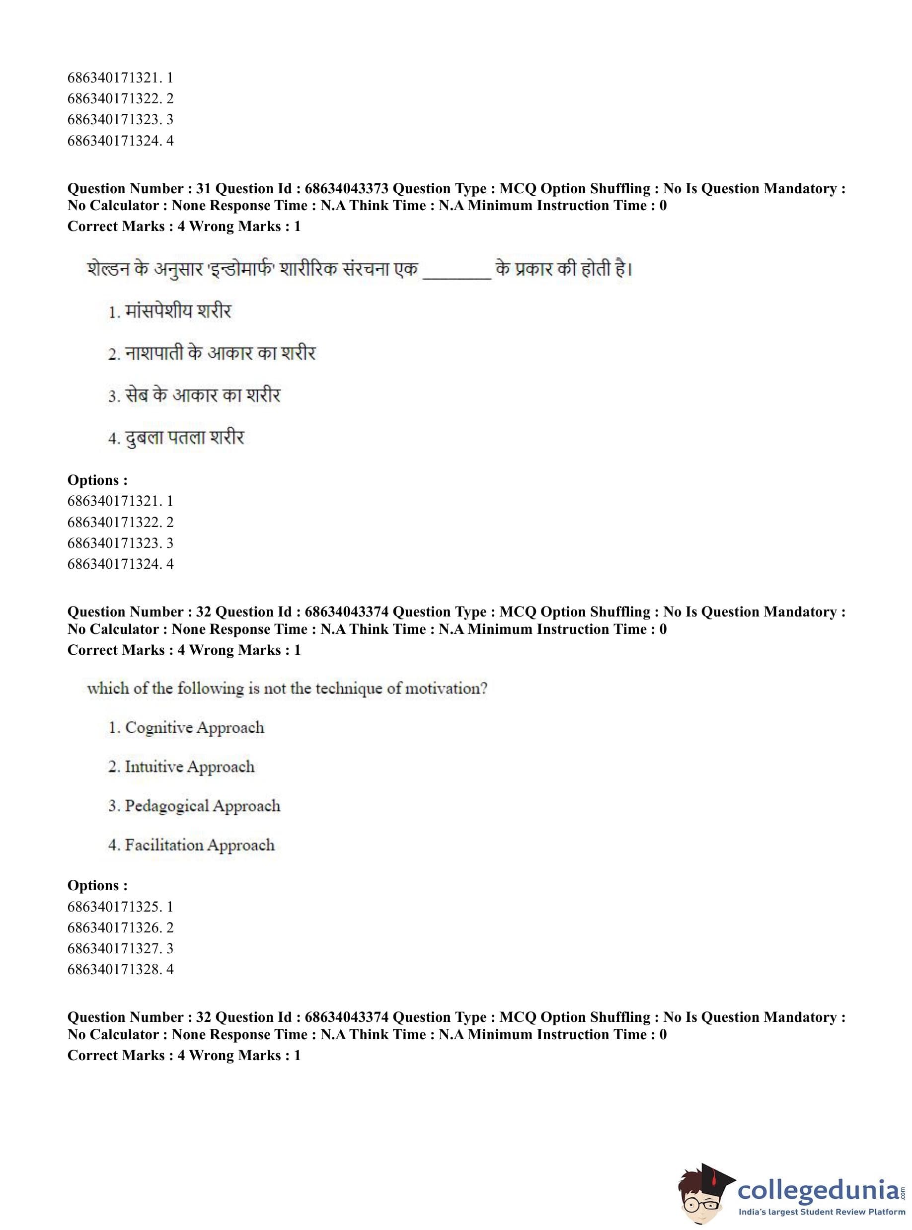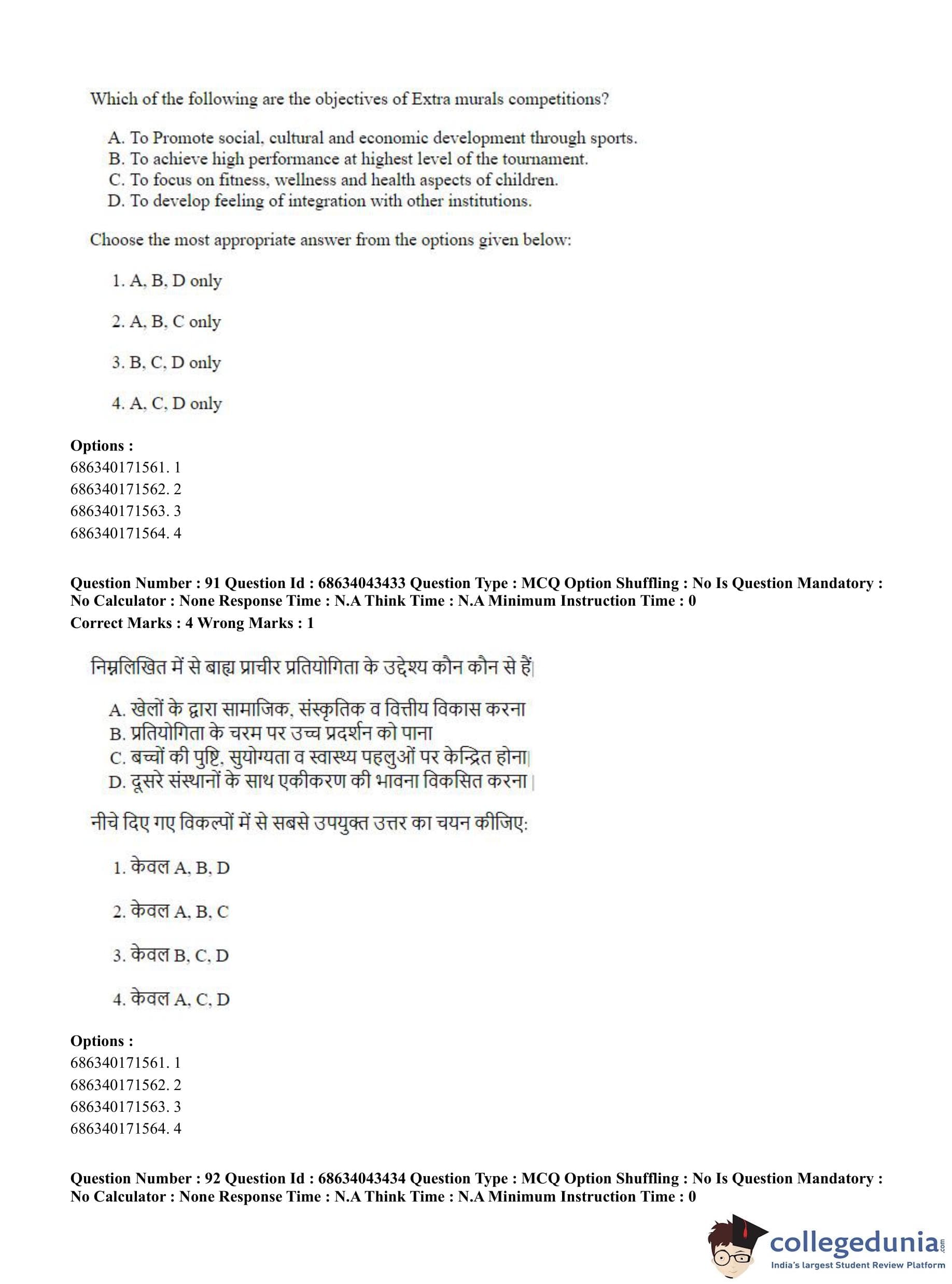 CUET PG 2023 Physical Education Question Paper in Hindi (June 30 - Shift 3)