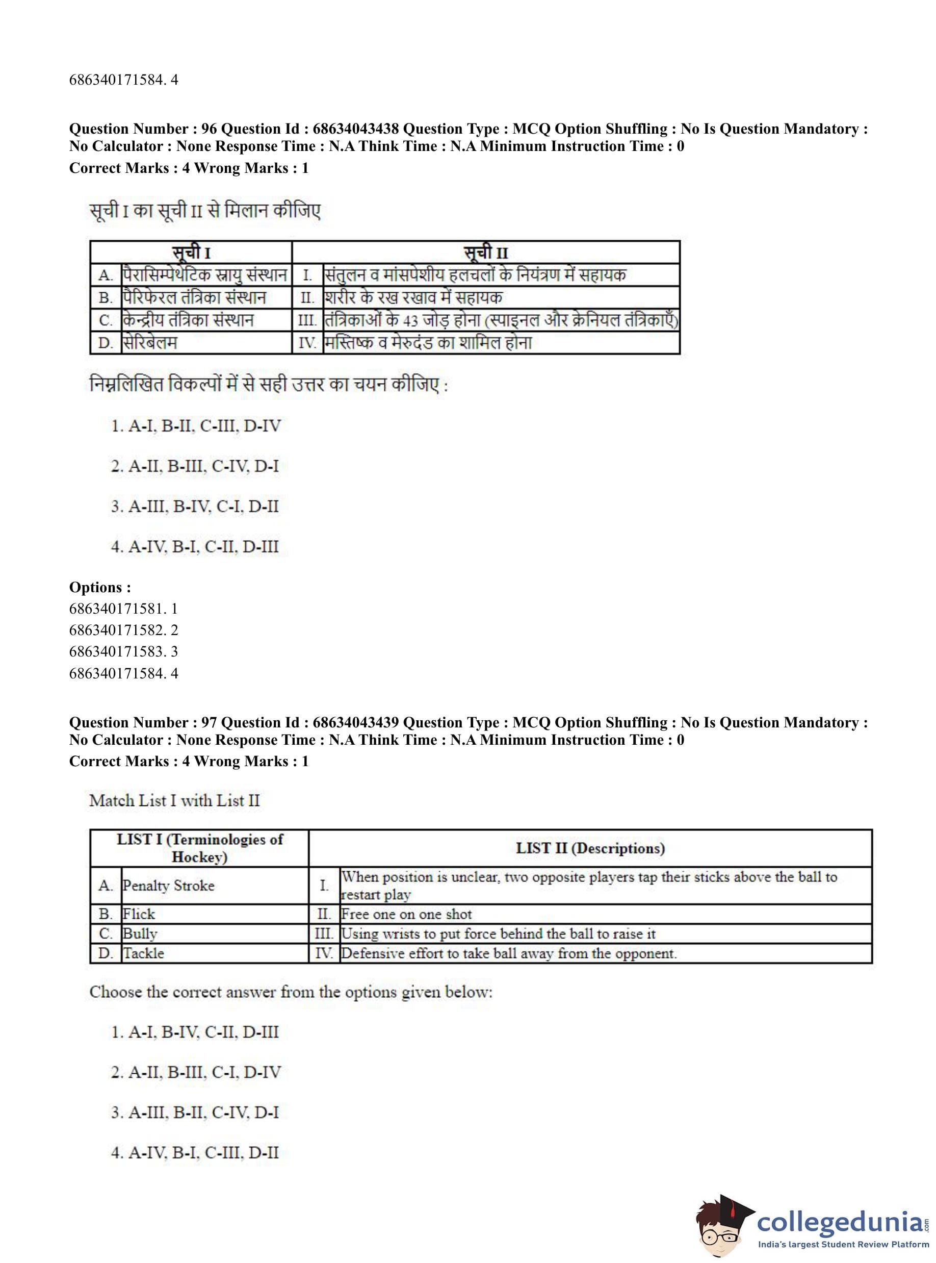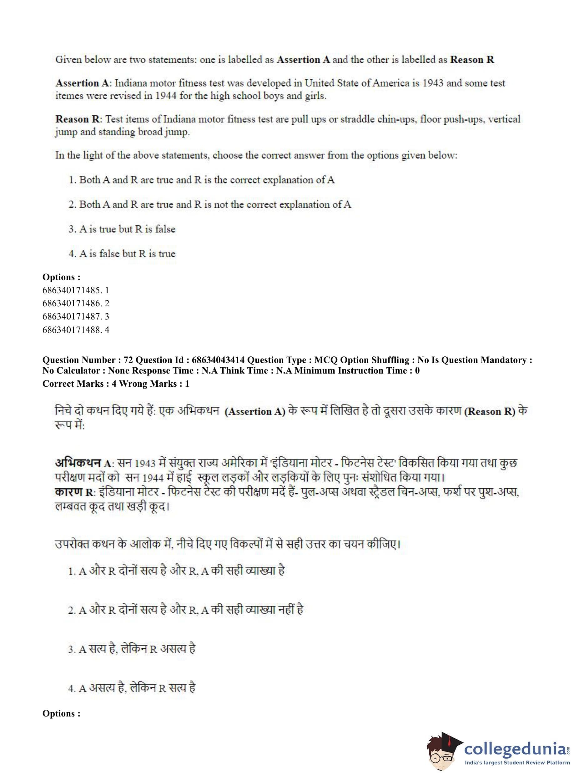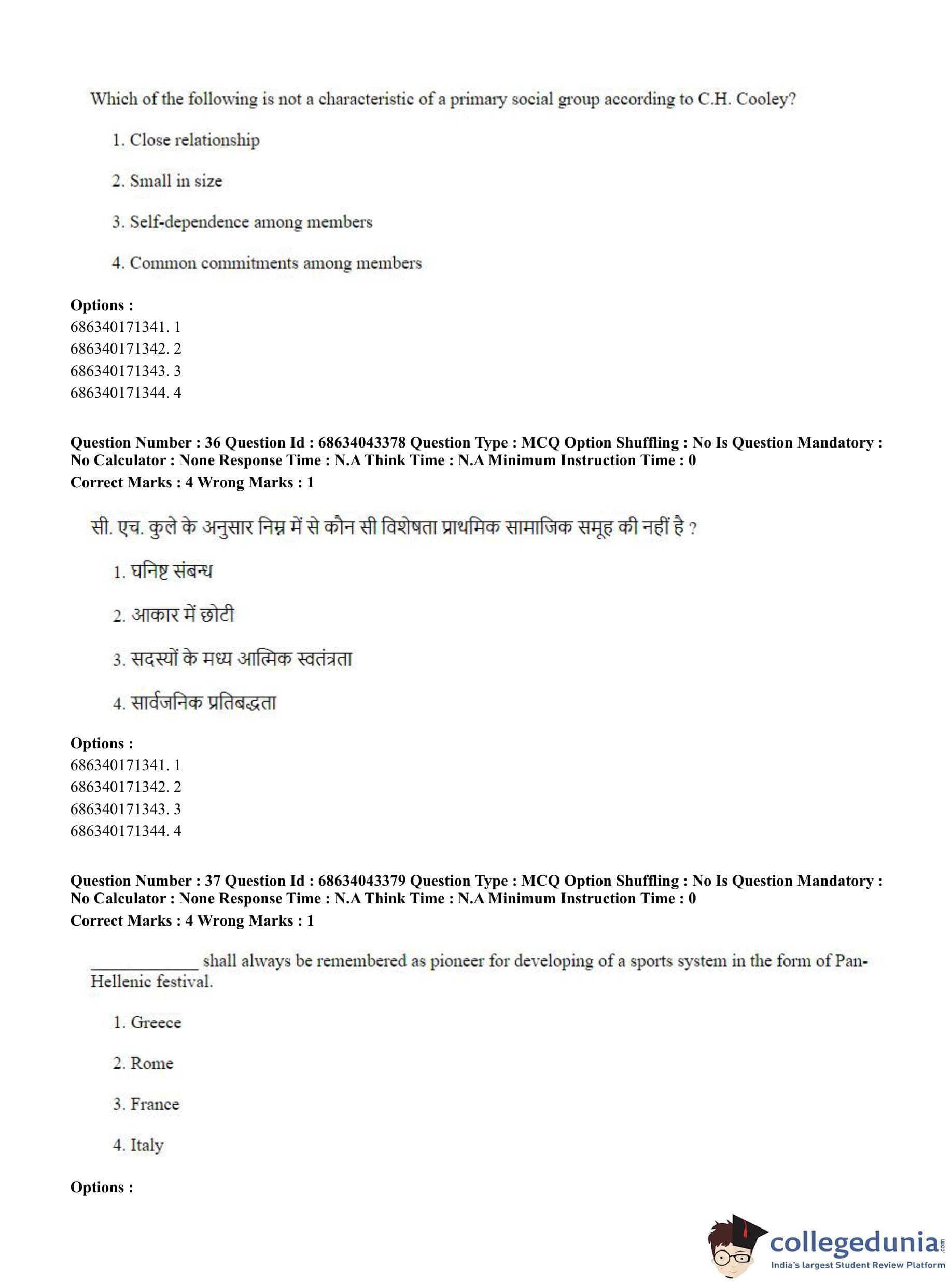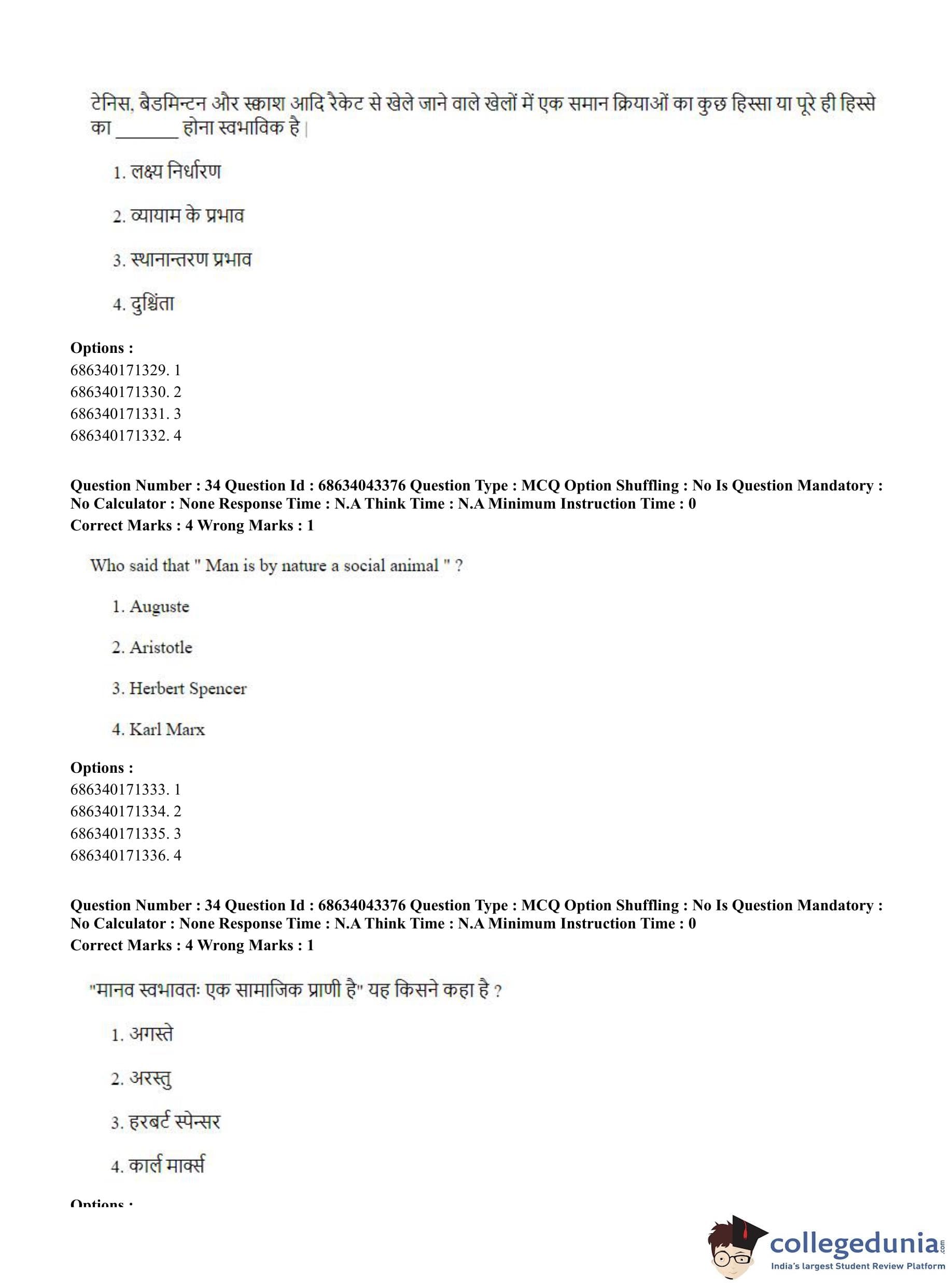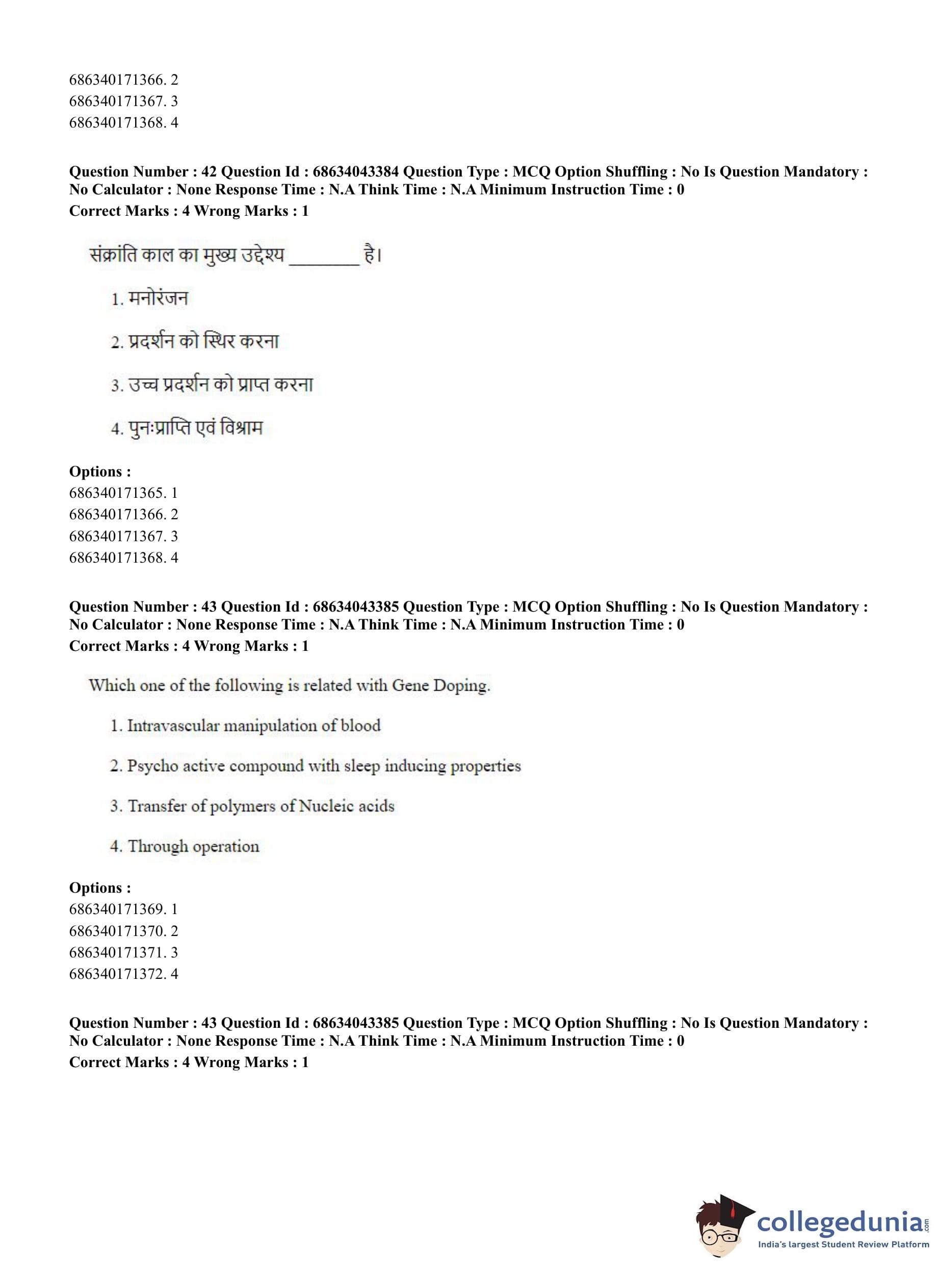 CUET PG 2023 Physical Education Question Paper in Hindi (June 30 - Shift 3)