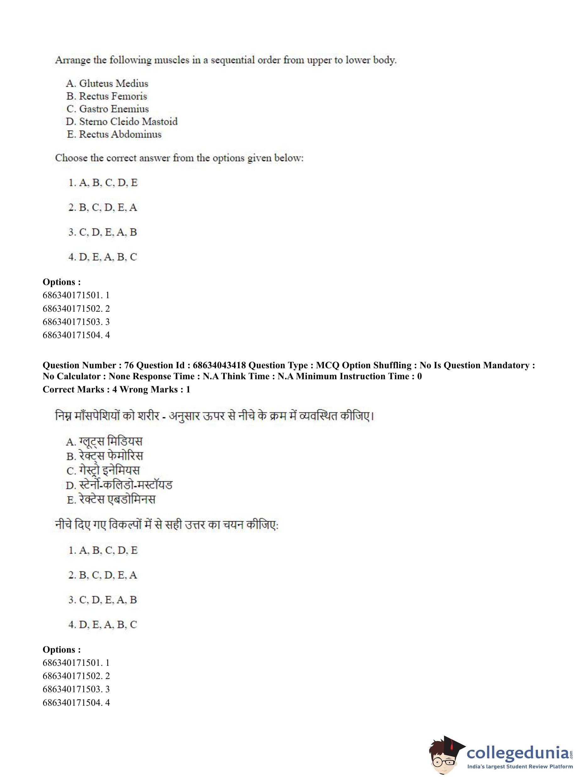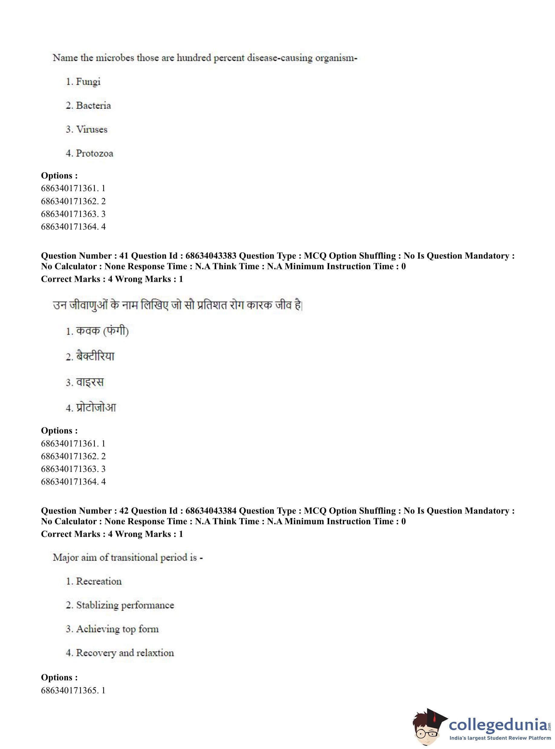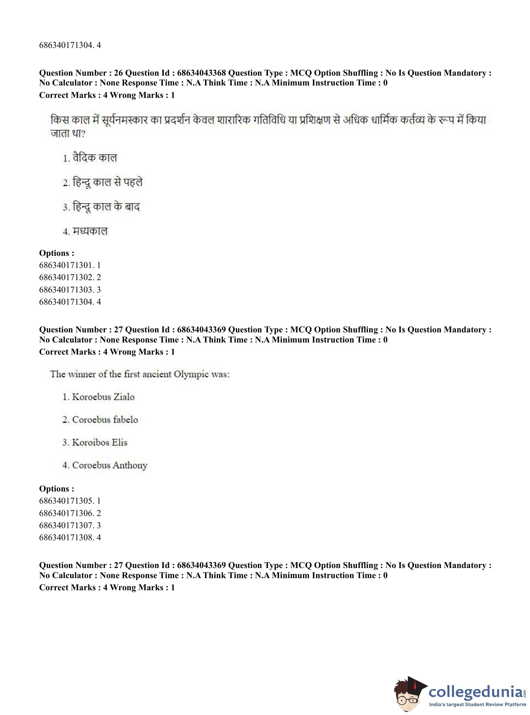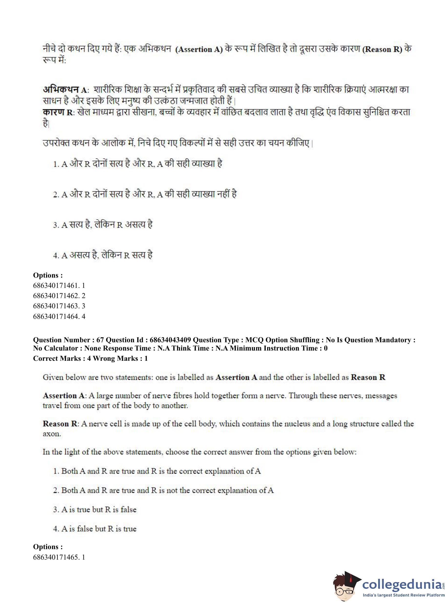CUET PG 2023 Physical Education Question Paper in Hindi (June 30 - Shift 3)