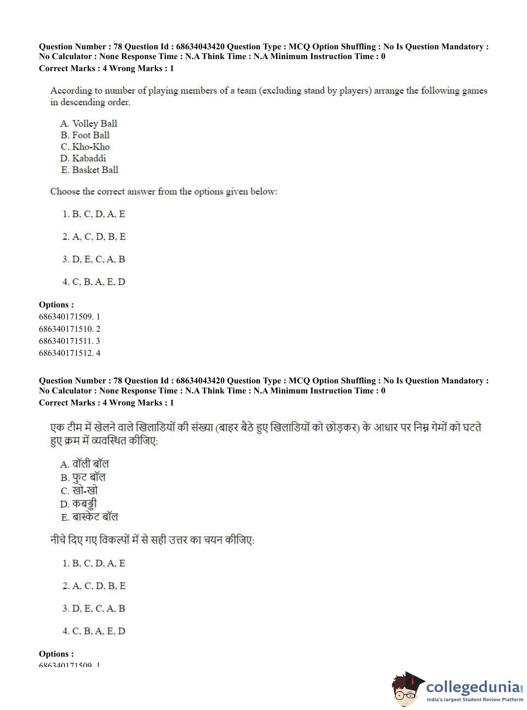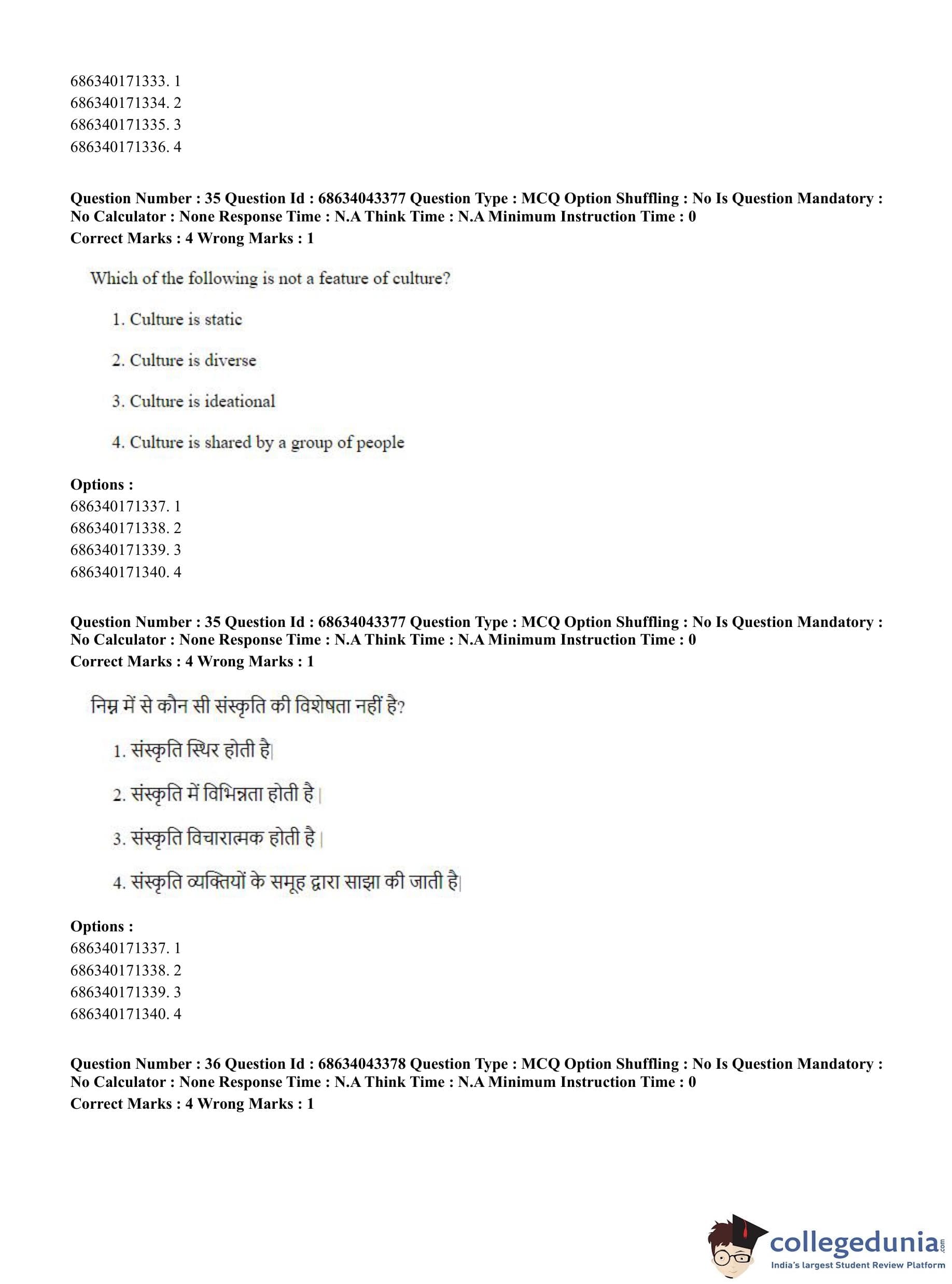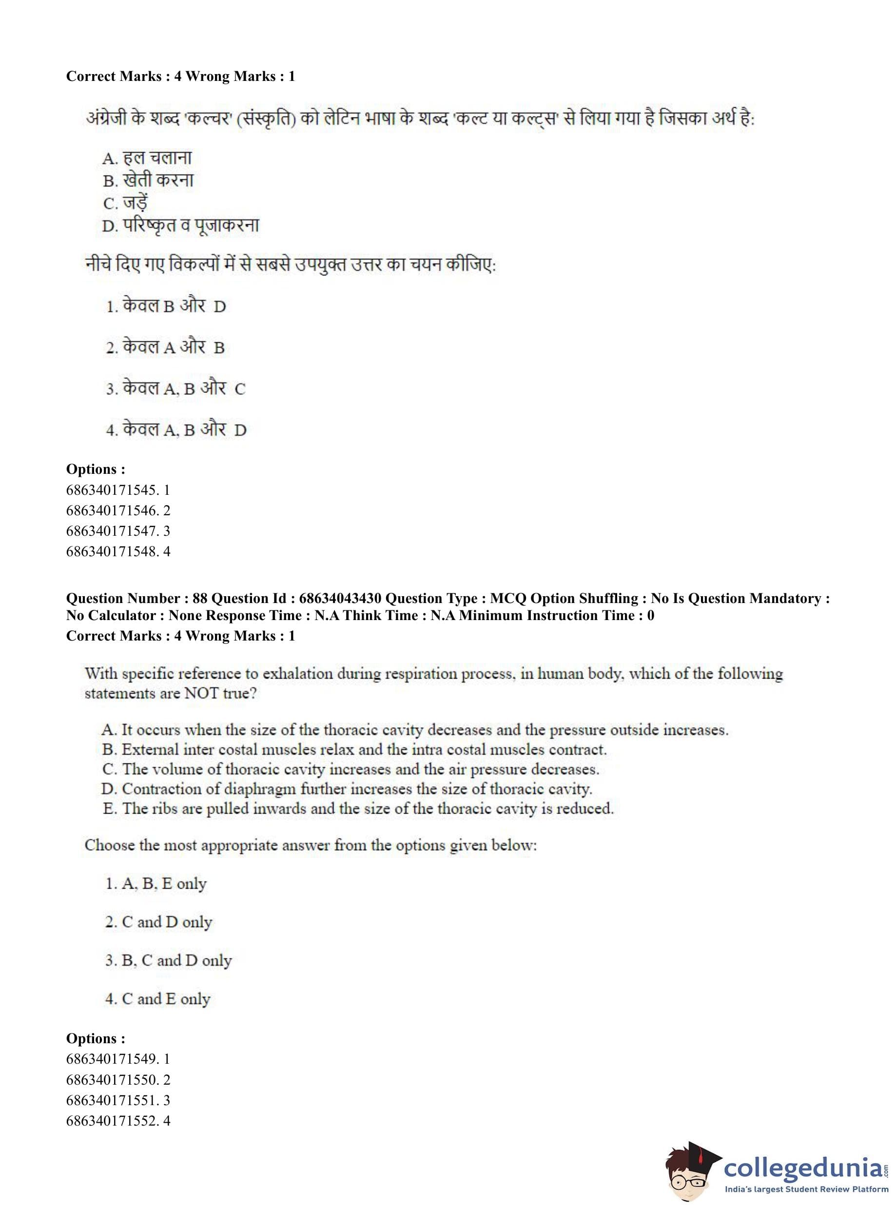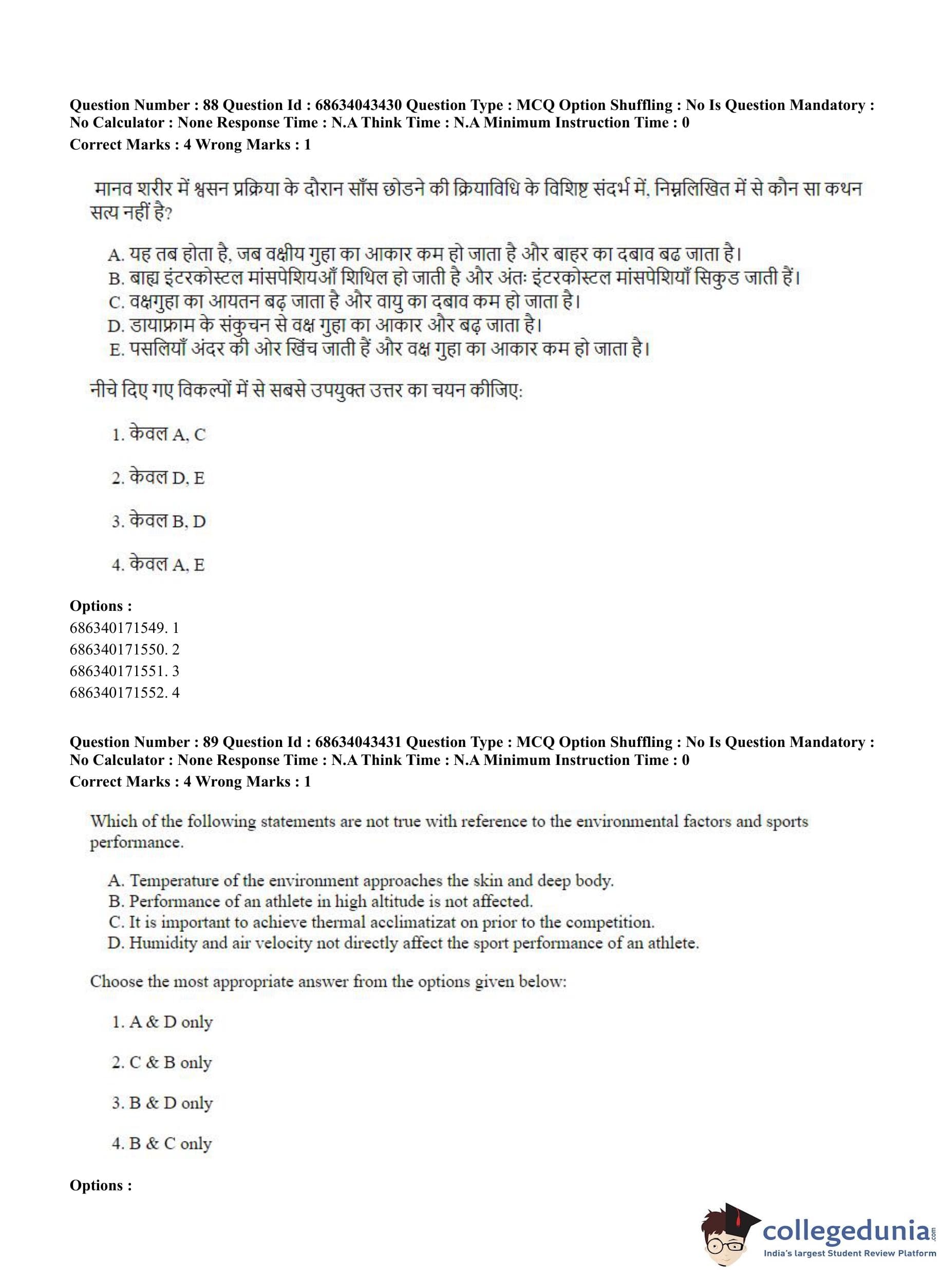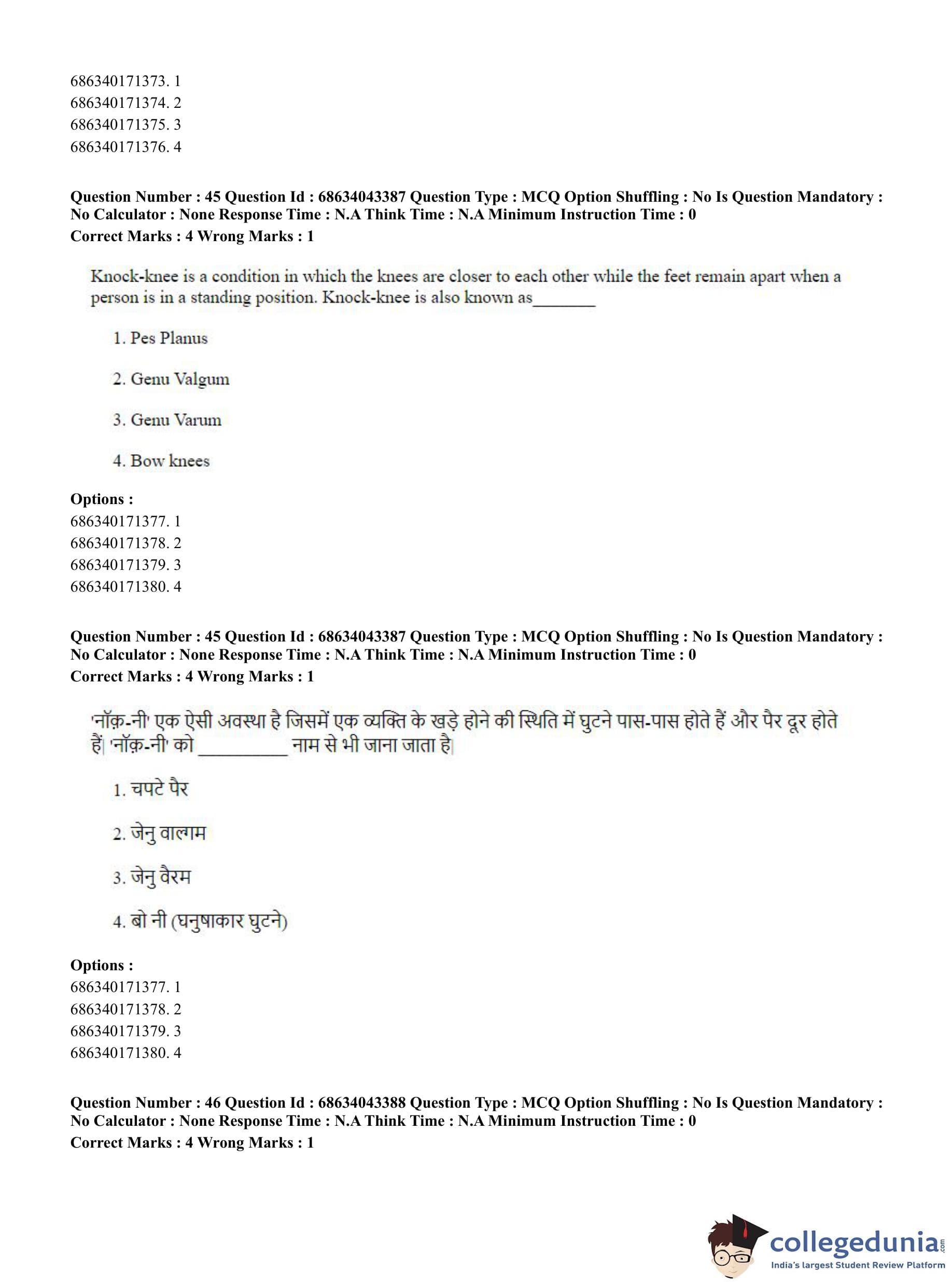 CUET PG 2023 Physical Education Question Paper in Hindi (June 30 - Shift 3)