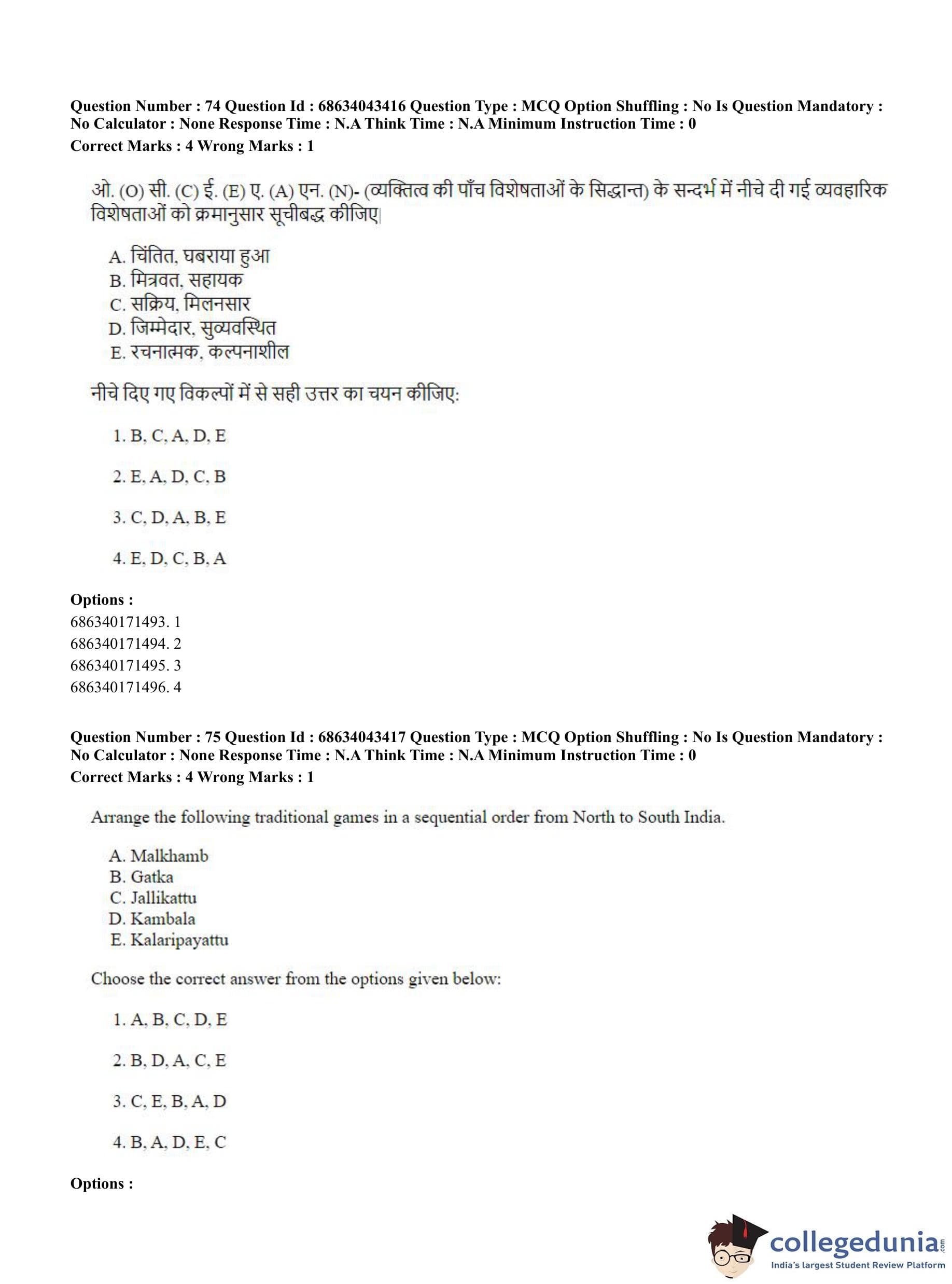 CUET PG 2023 Physical Education Question Paper with Answer Key PDF in Hindi is available for download here. The exam was conducted by National Testing Agency (NTA) on June 30, 2023 in Shift 3. The question paper comprised a total of 100 questions divided into 2 sections.