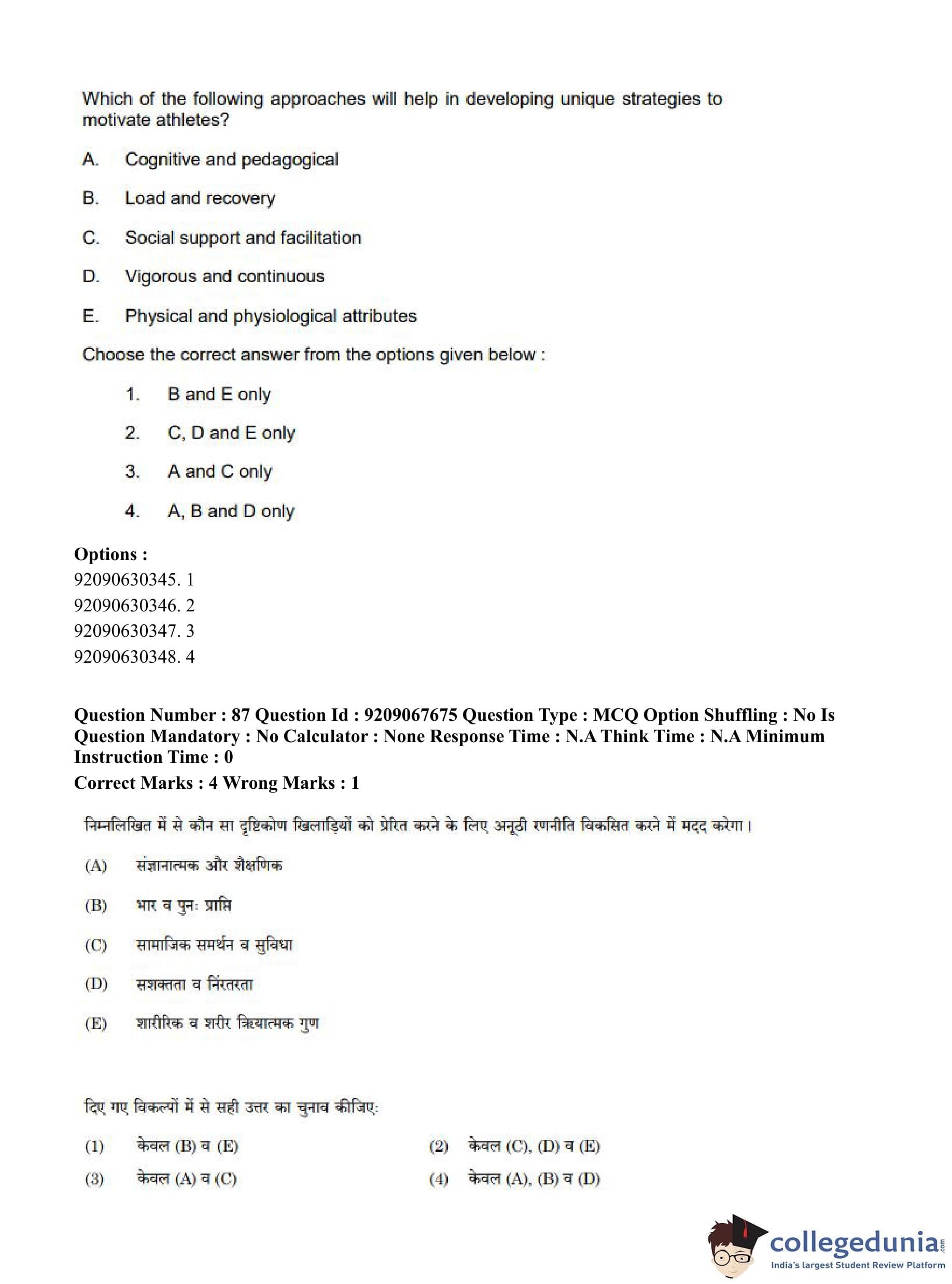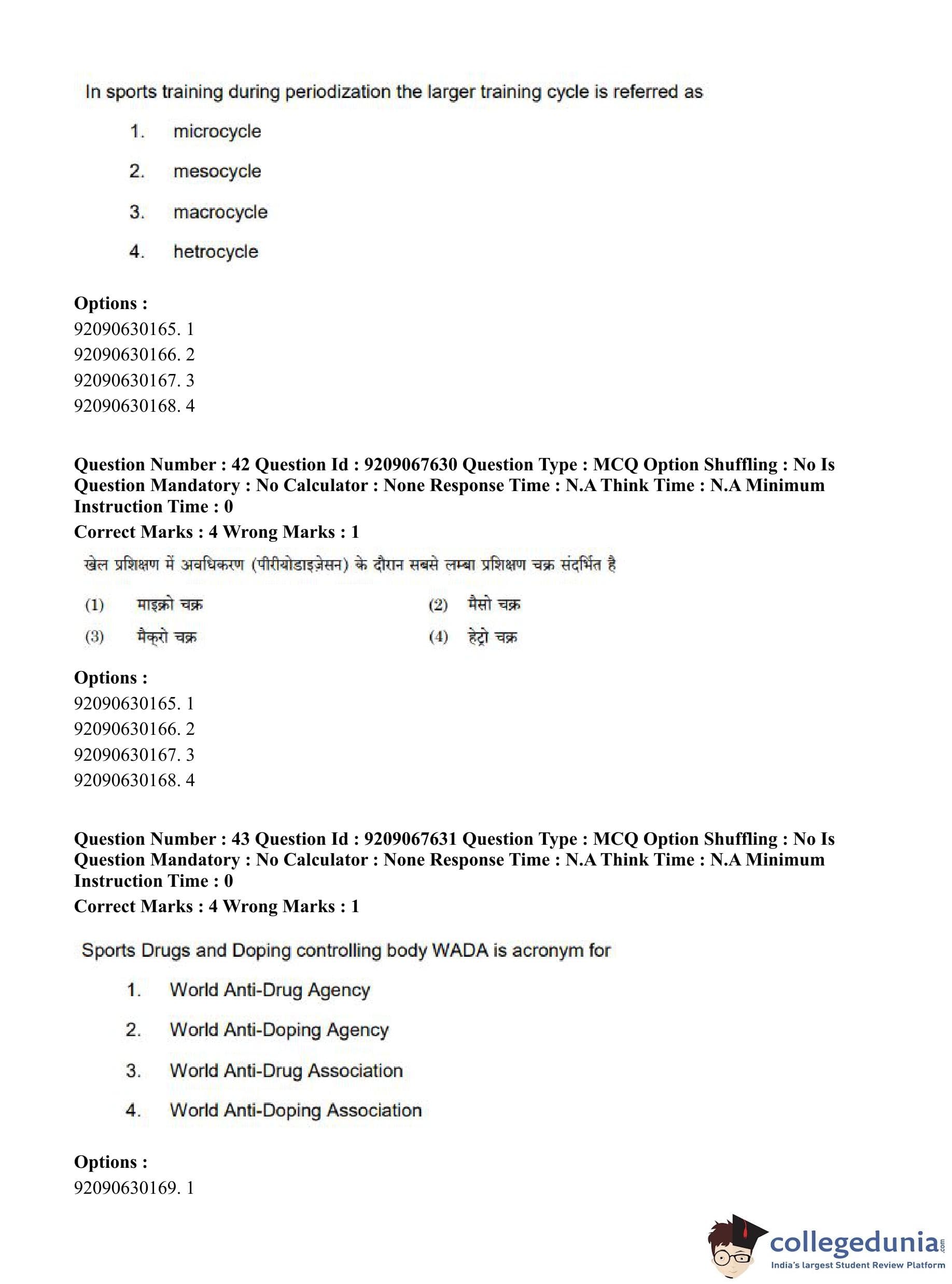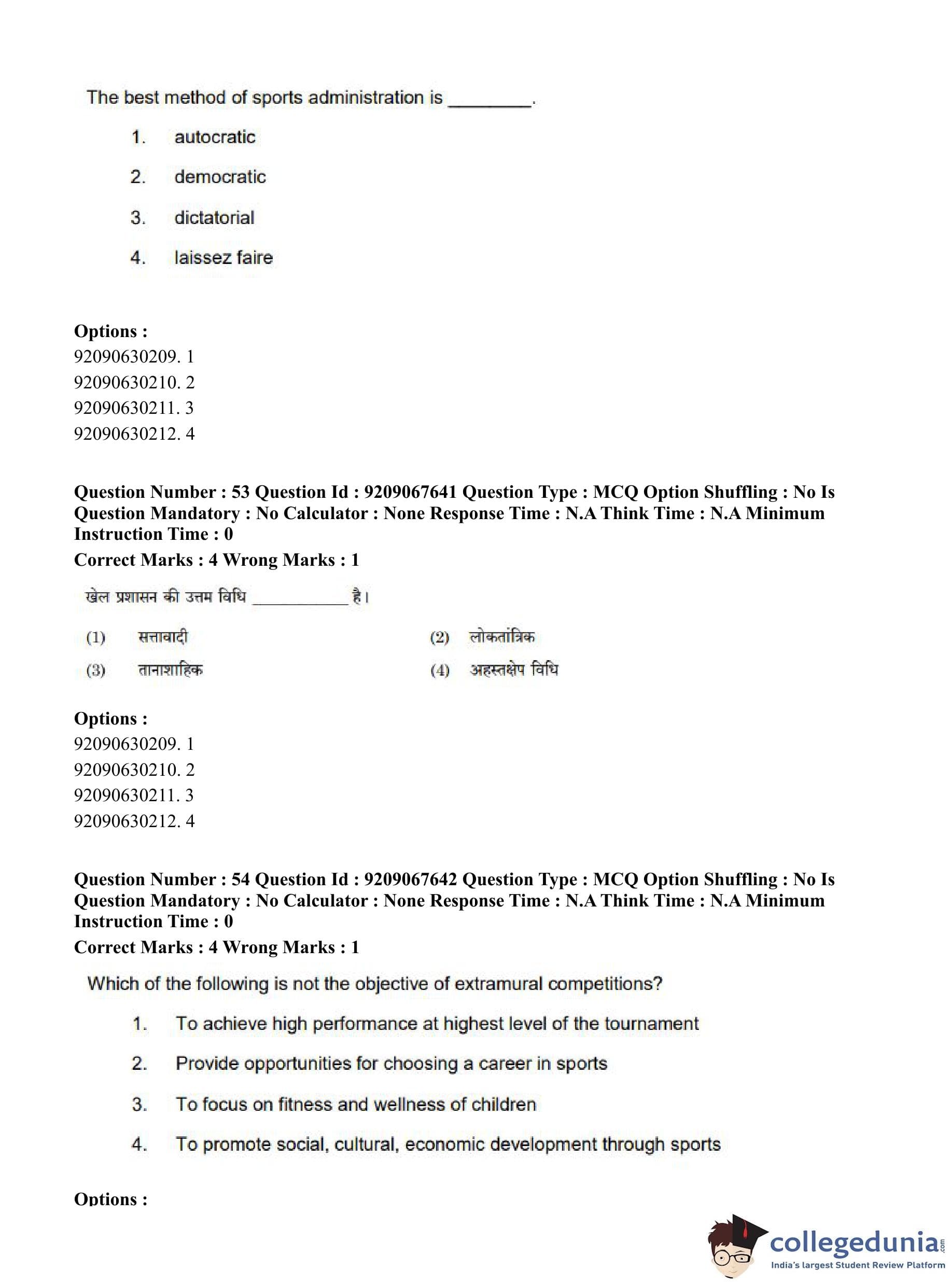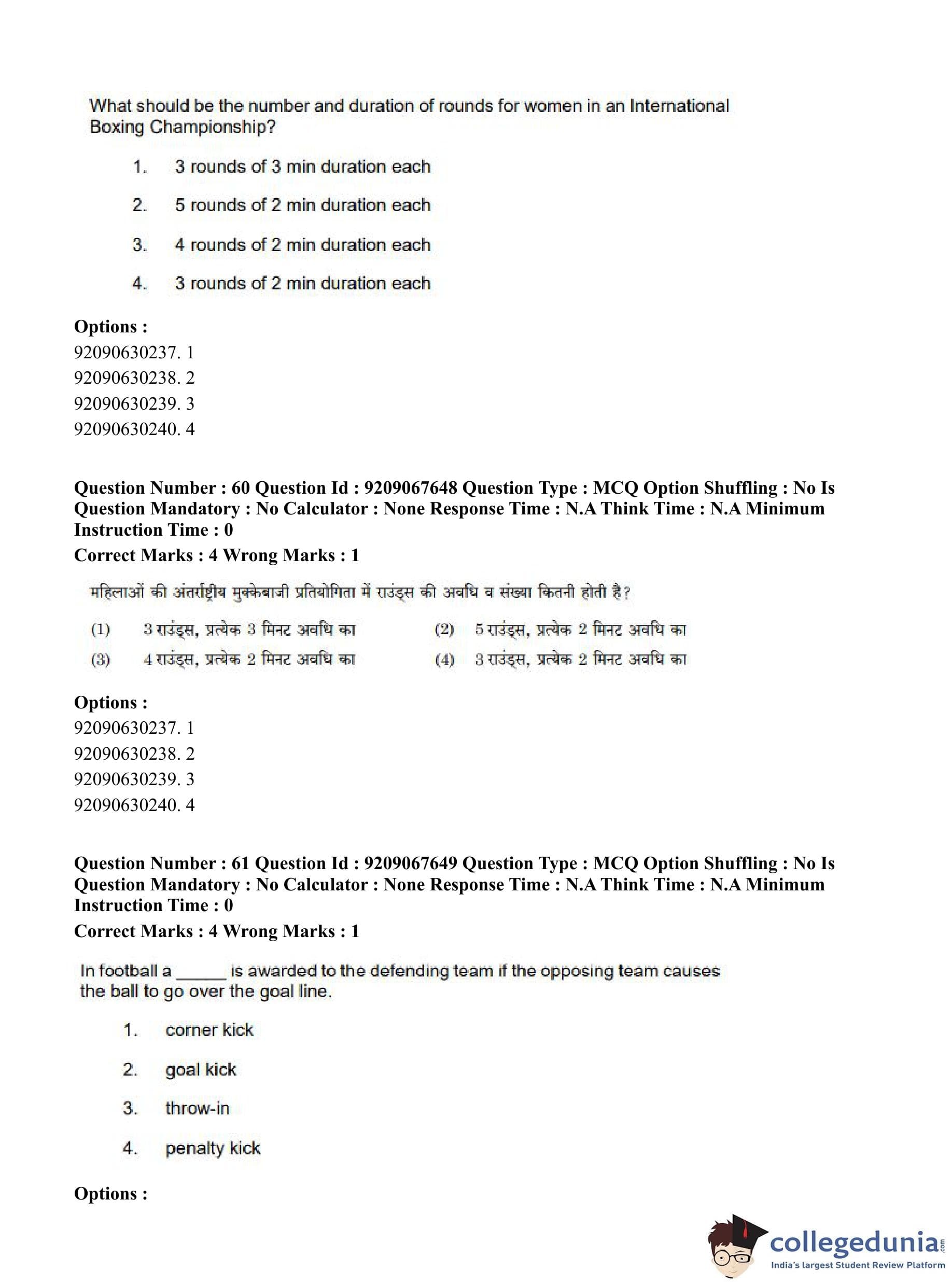 CUET PG 2023 Physical Education Question Paper in Hindi (June 8 - Shift 3)