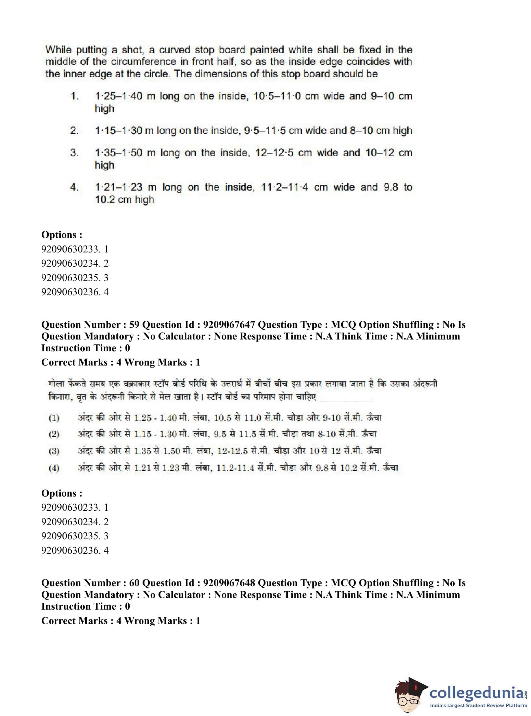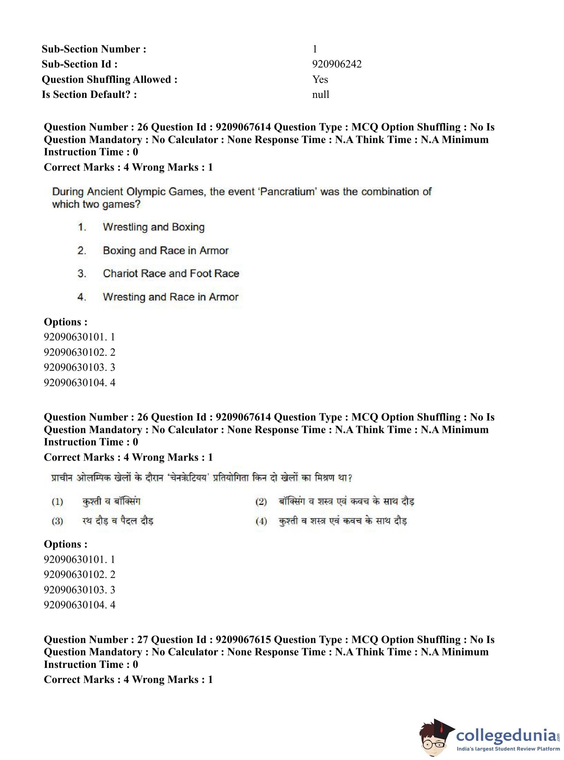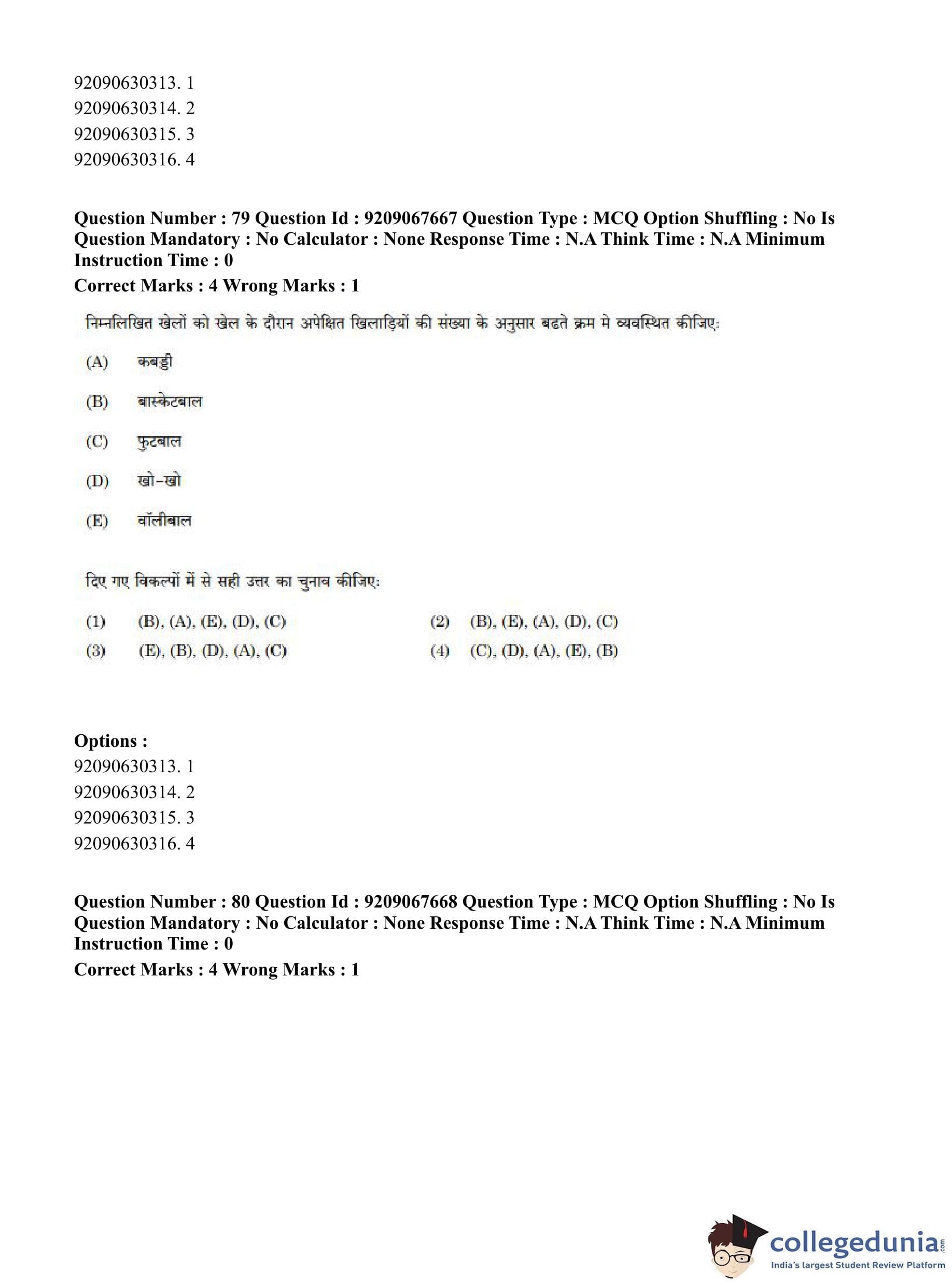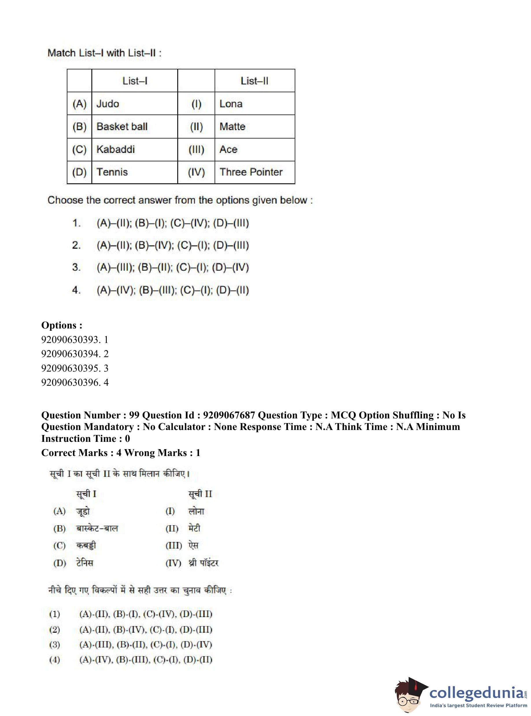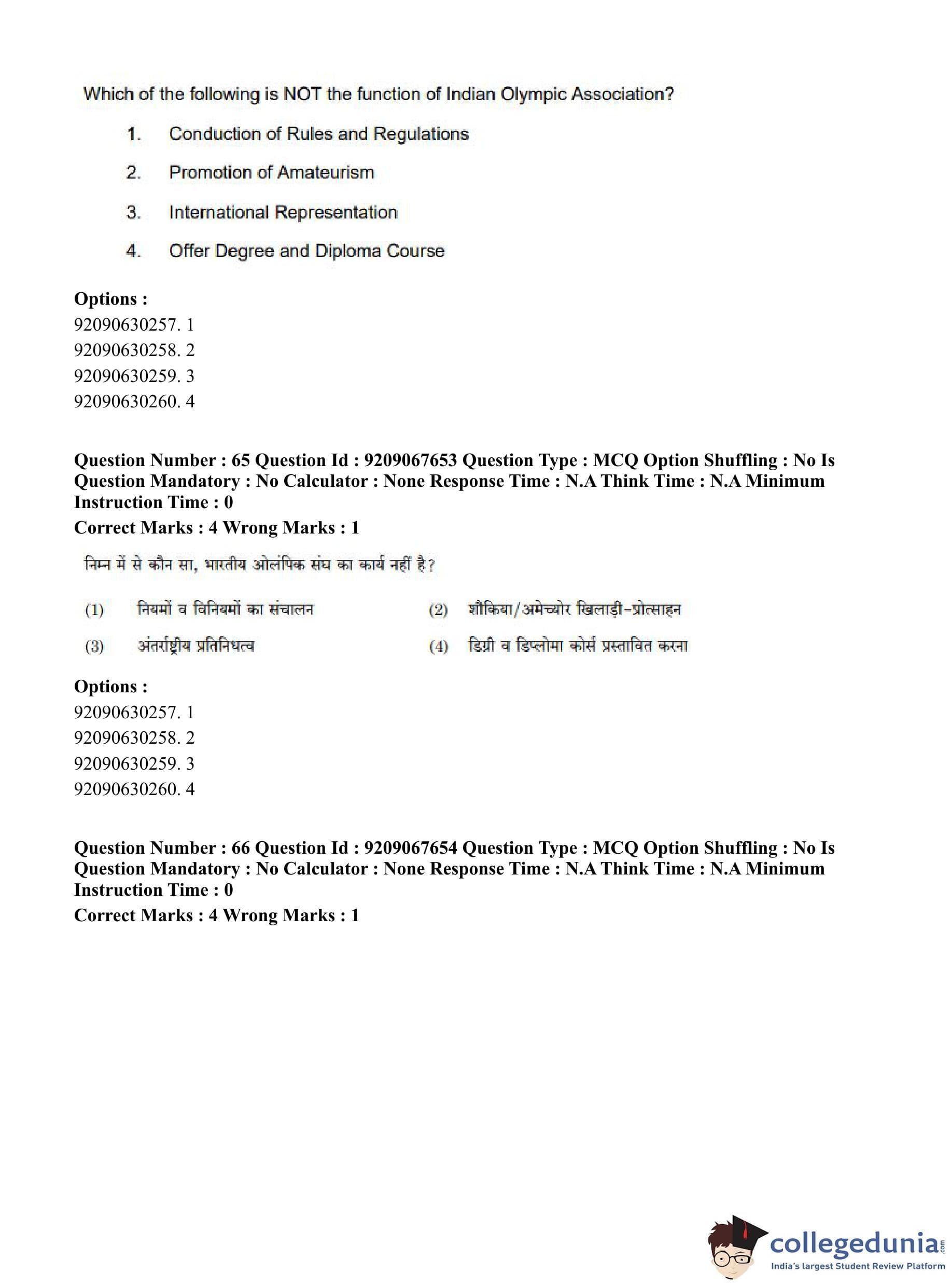 CUET PG 2023 Physical Education Question Paper in Hindi (June 8 - Shift 3)