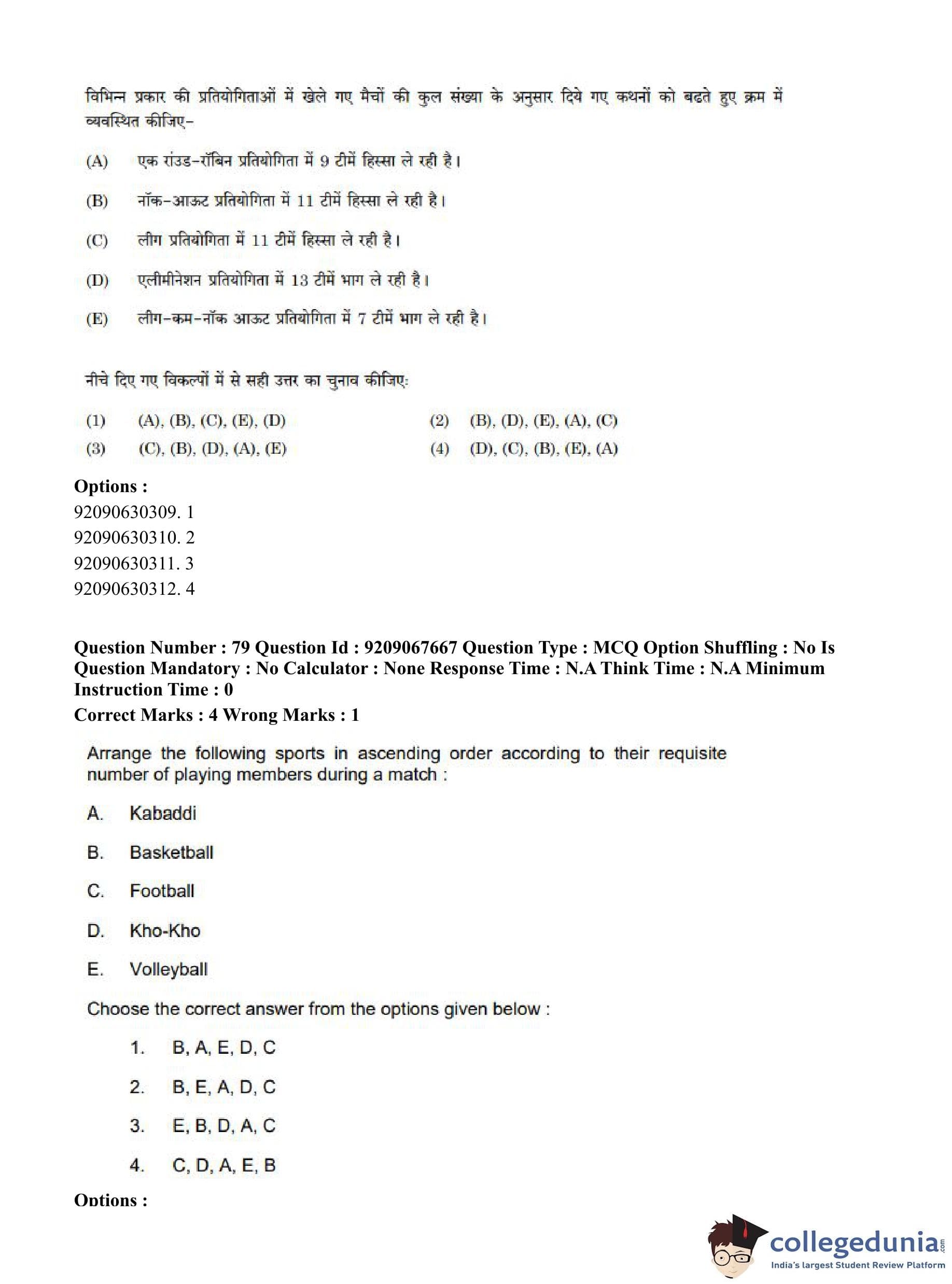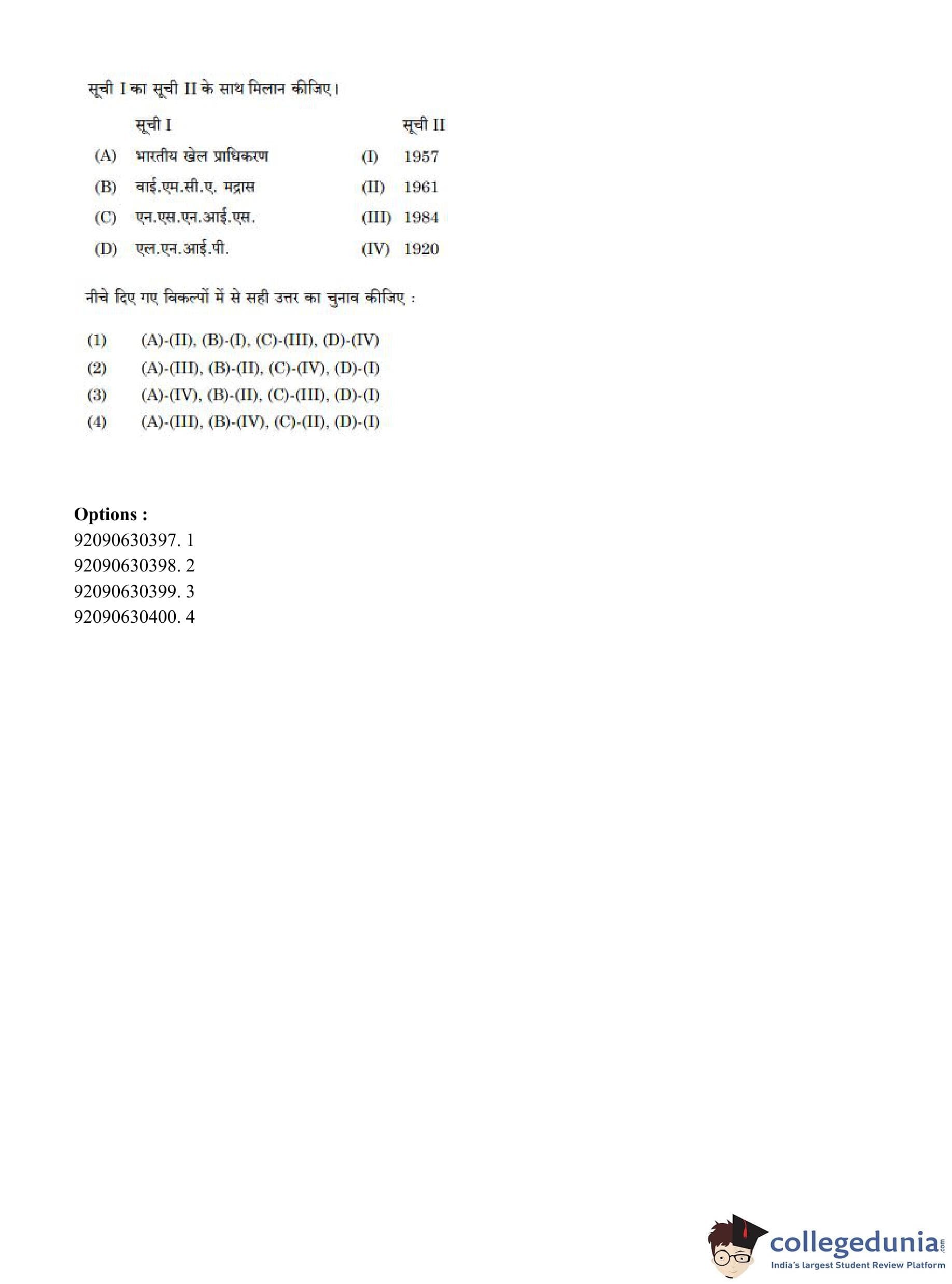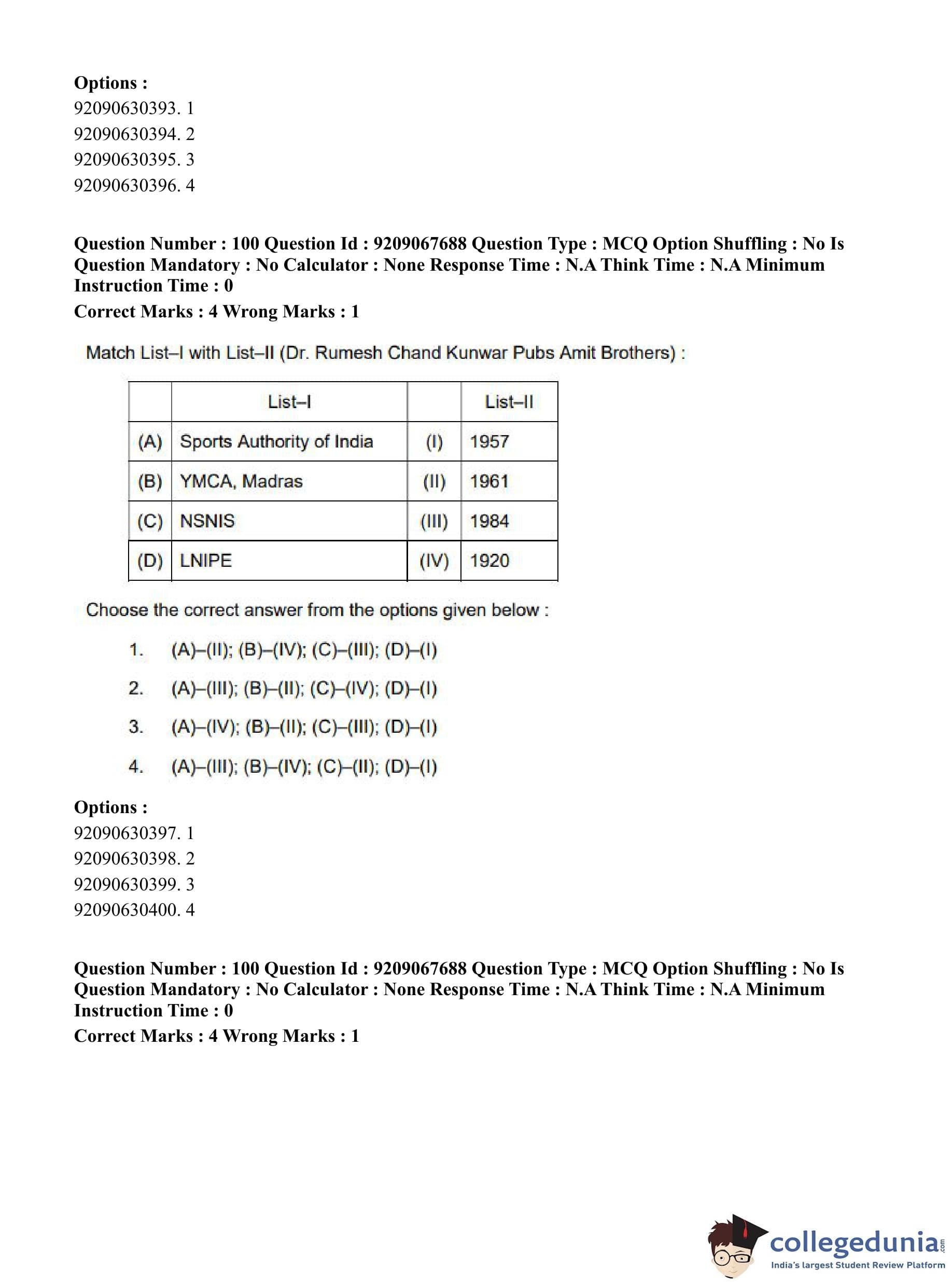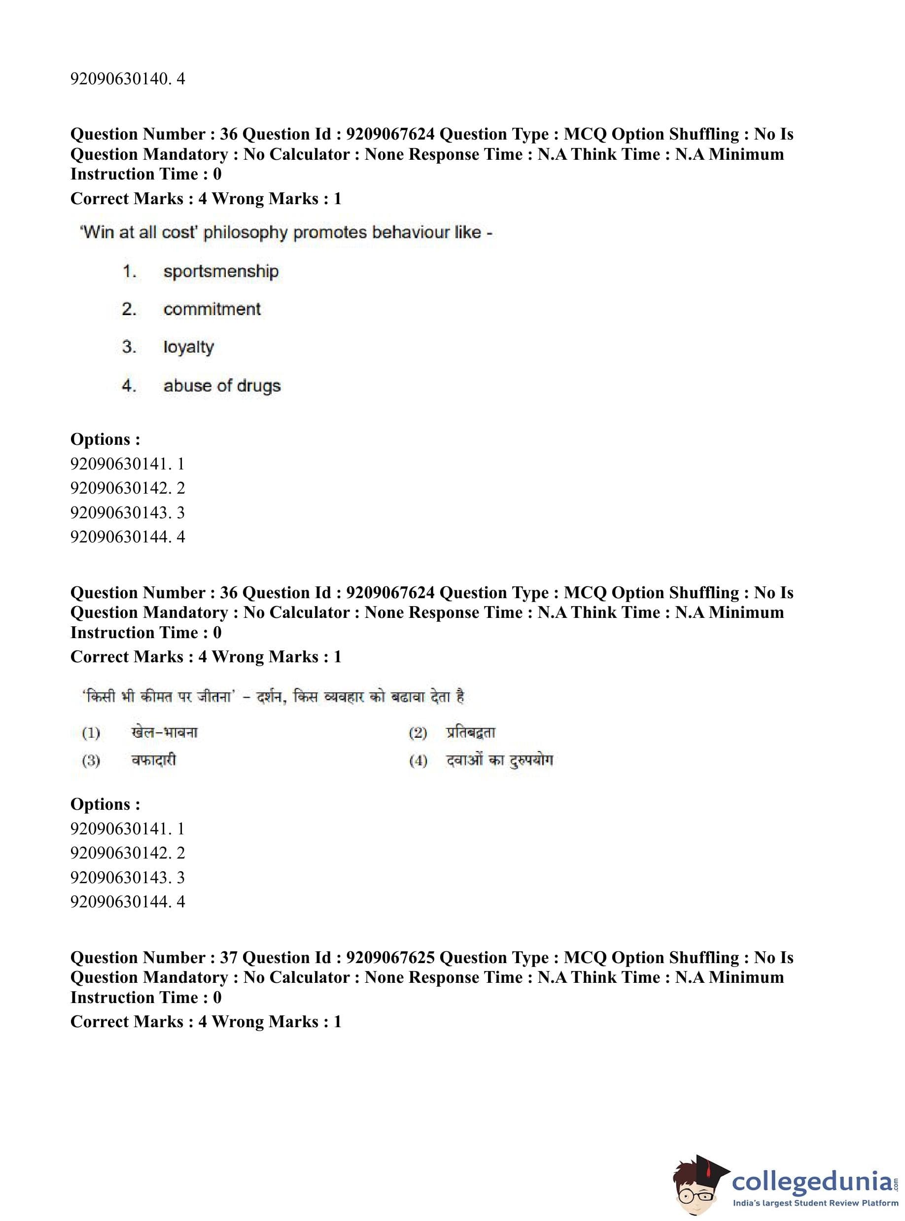 CUET PG 2023 Physical Education Question Paper in Hindi (June 8 - Shift 3)