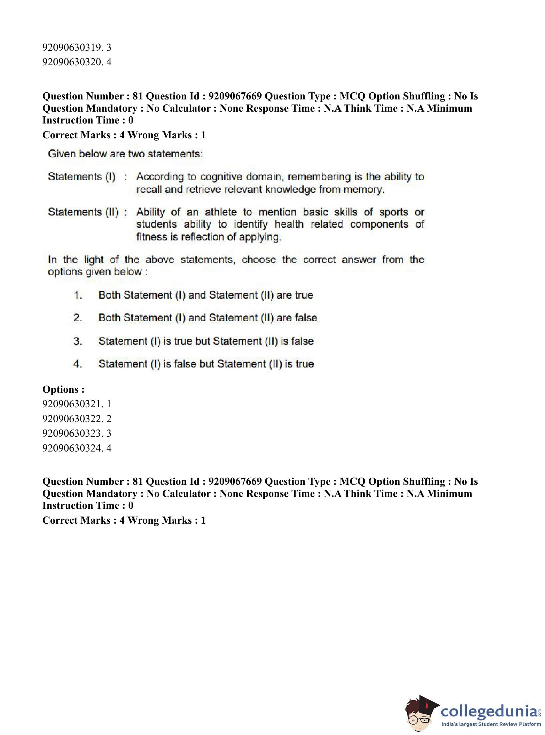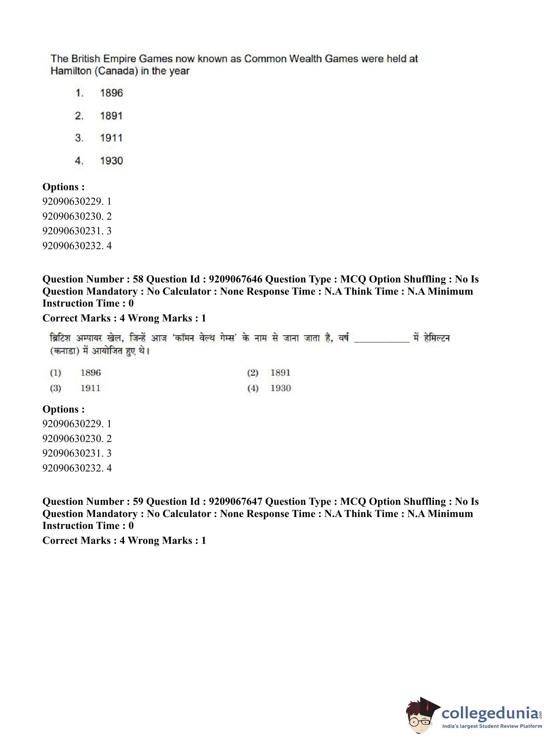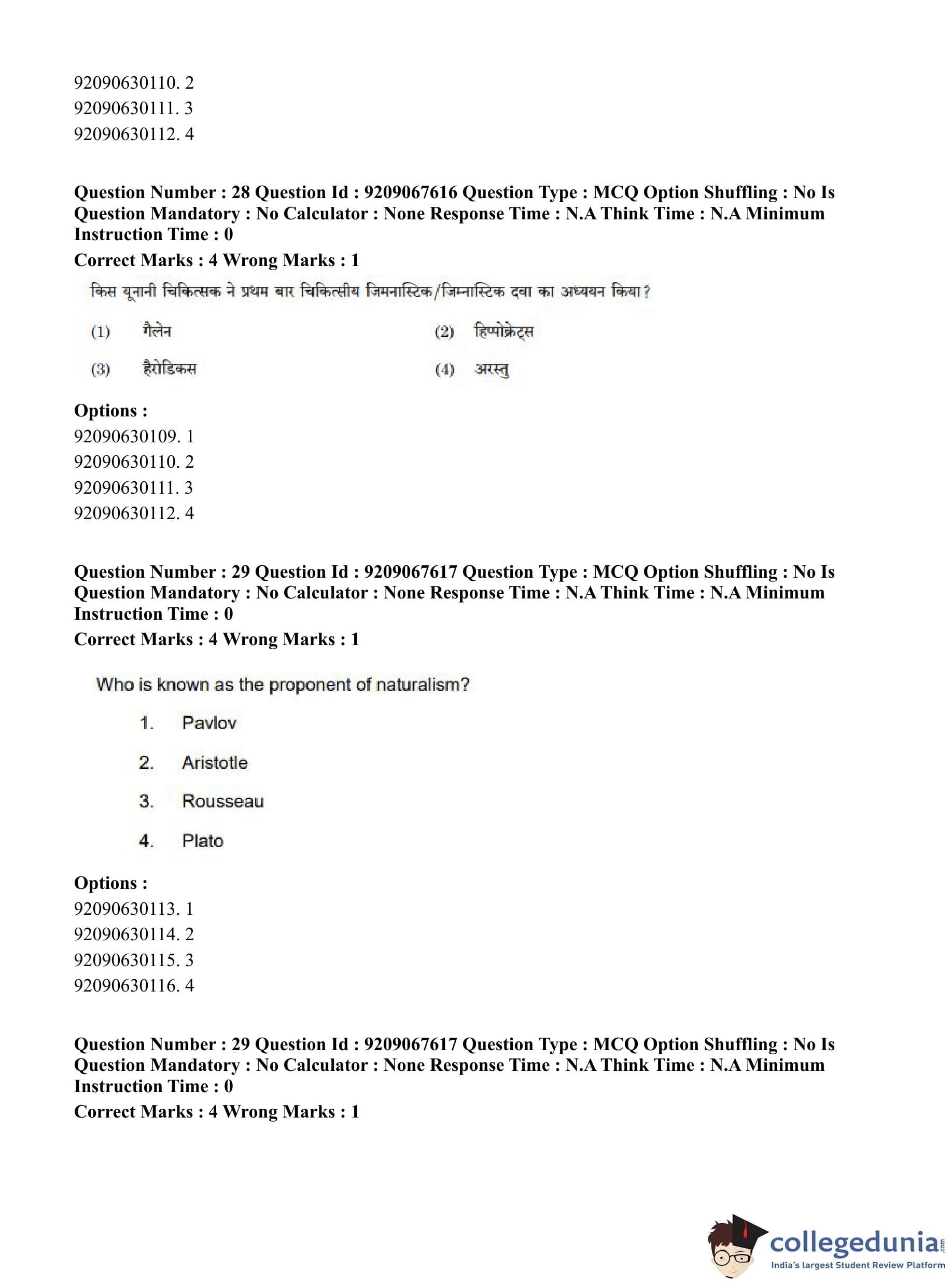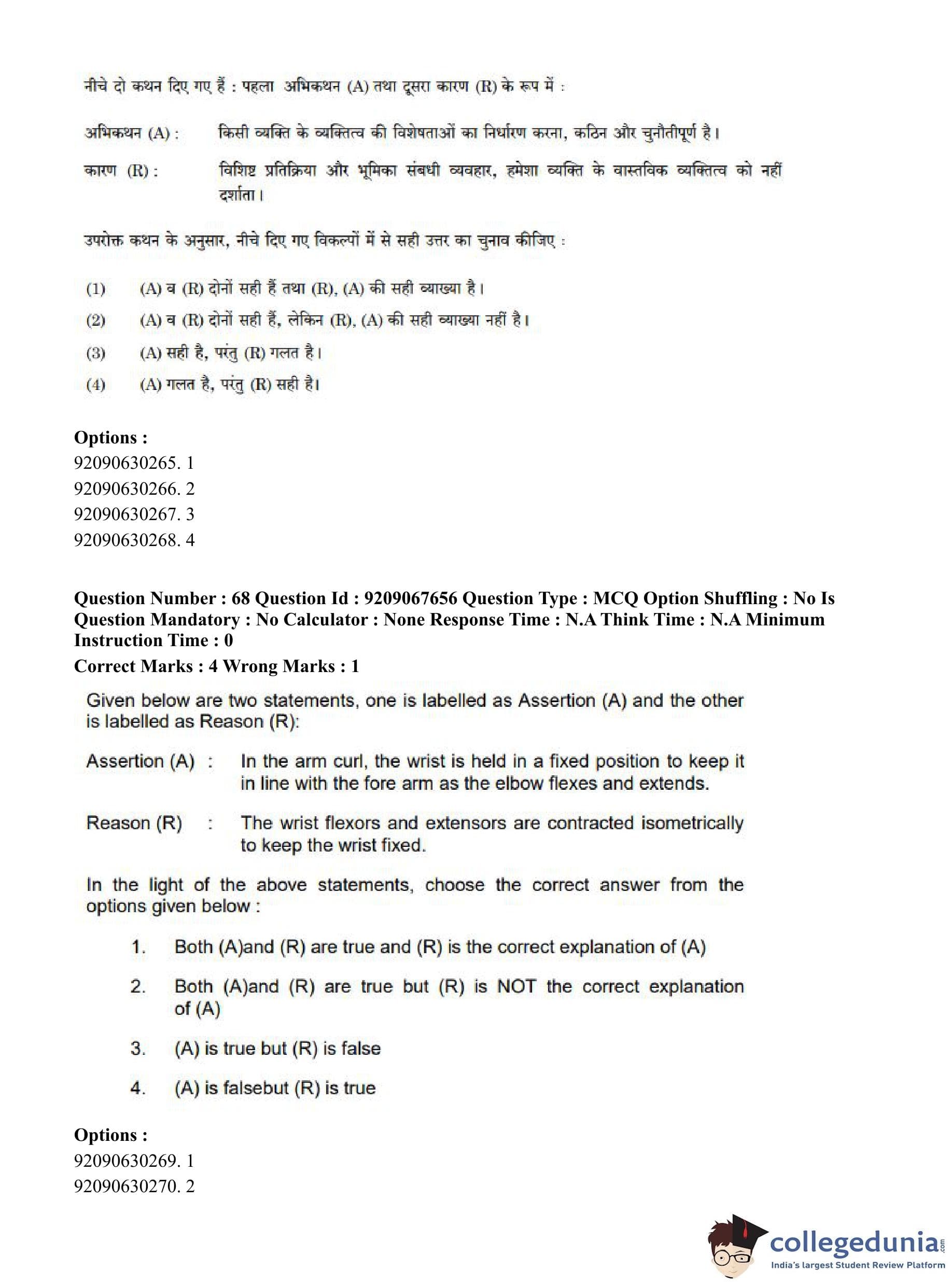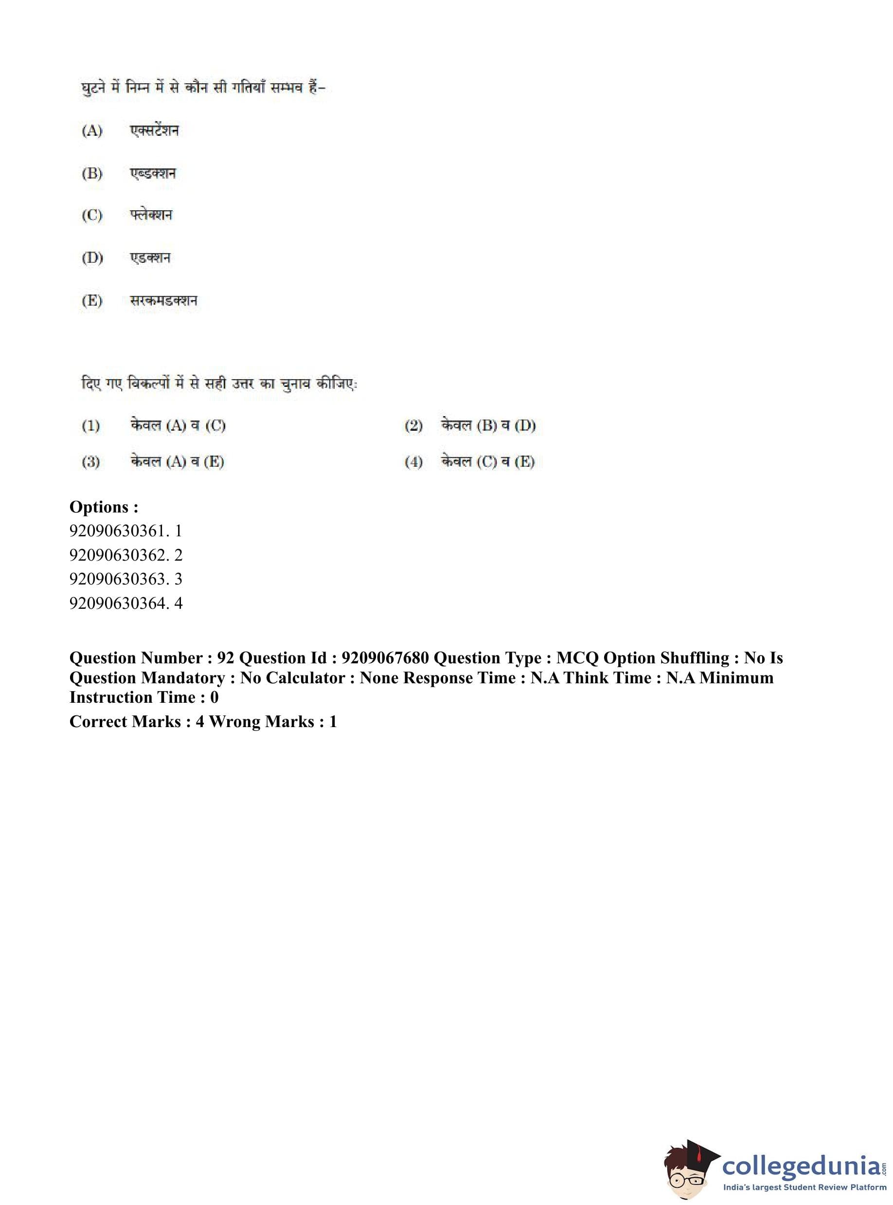 CUET PG 2023 Physical Education Question Paper in Hindi (June 8 - Shift 3)