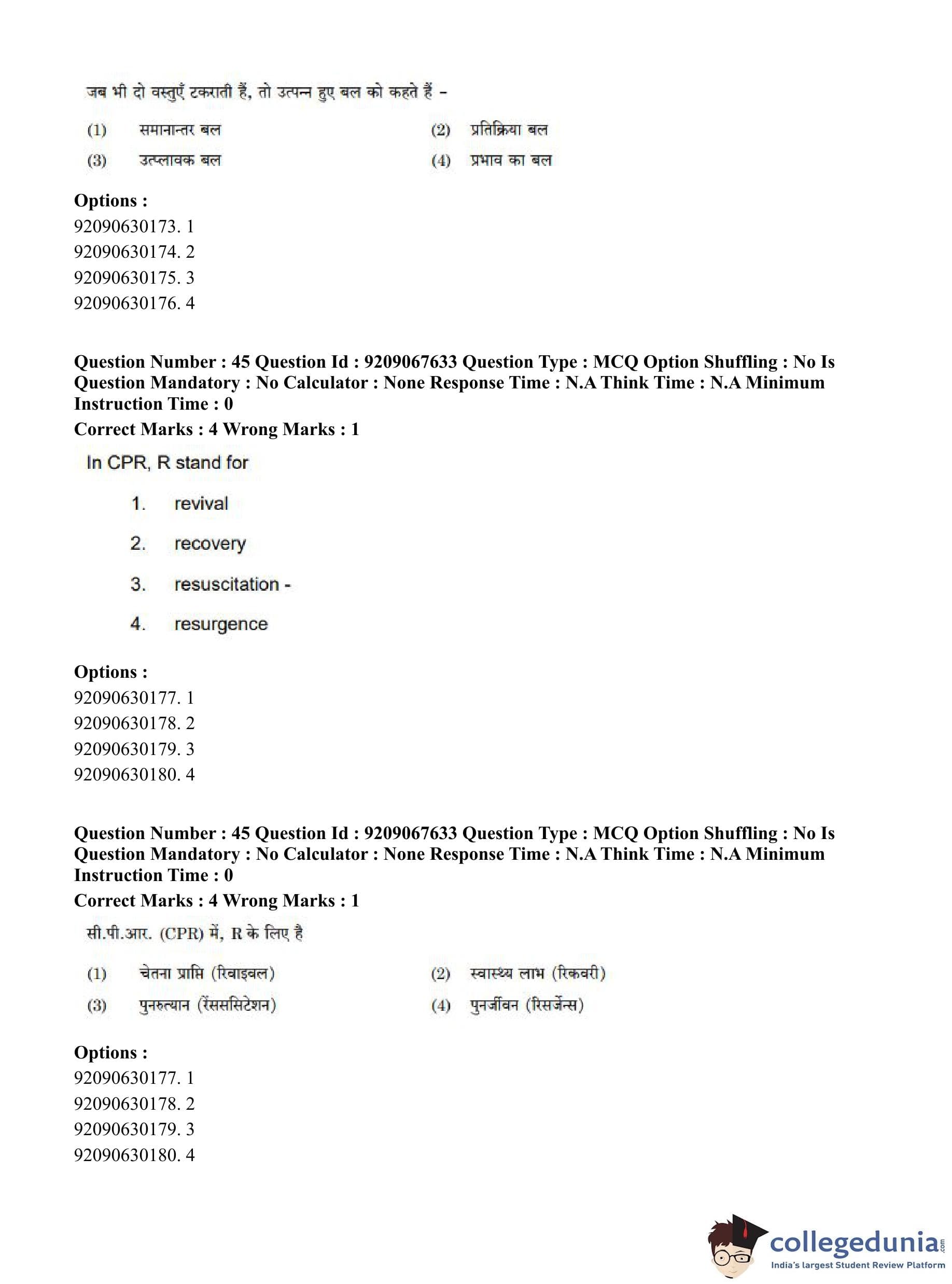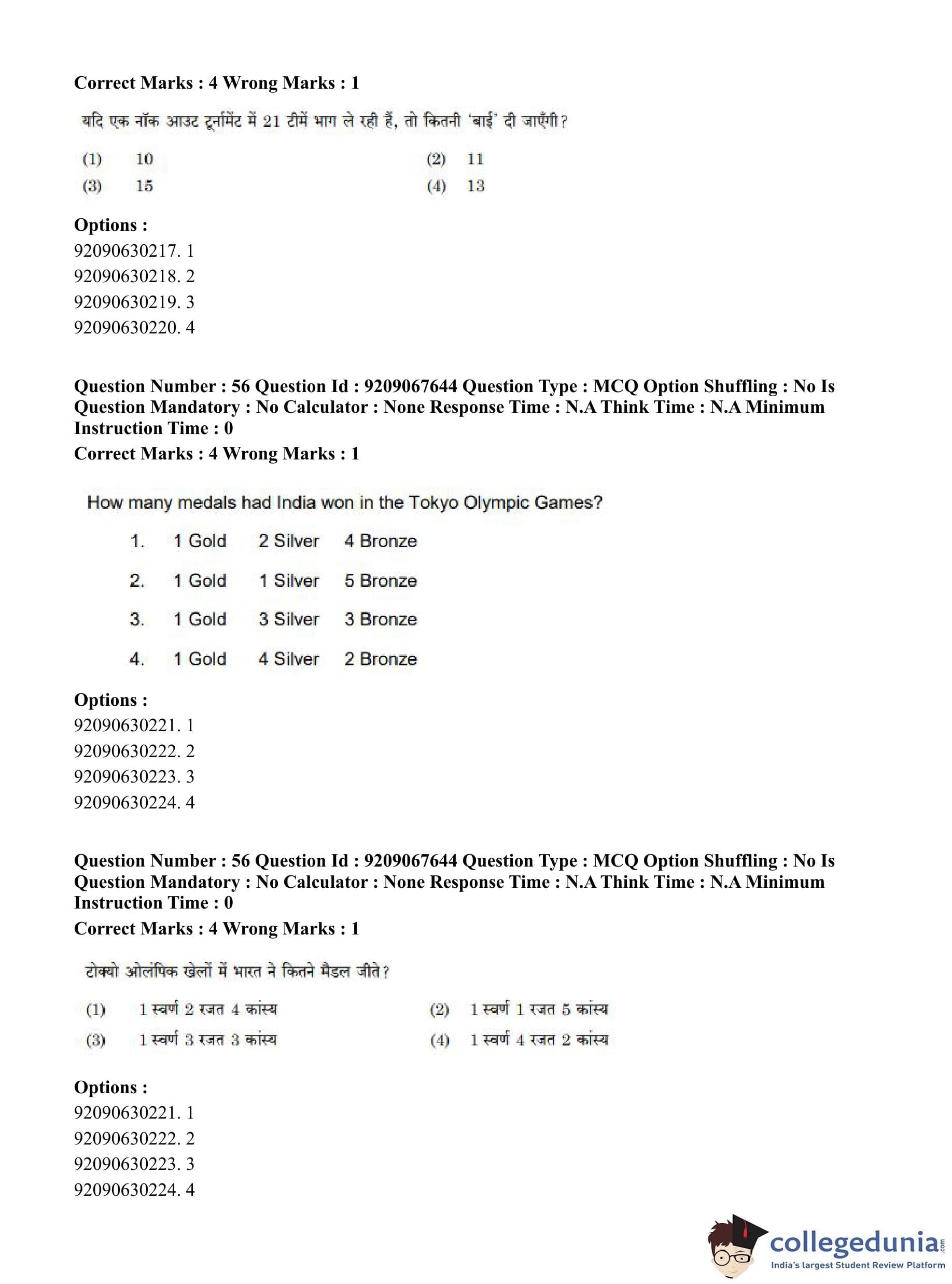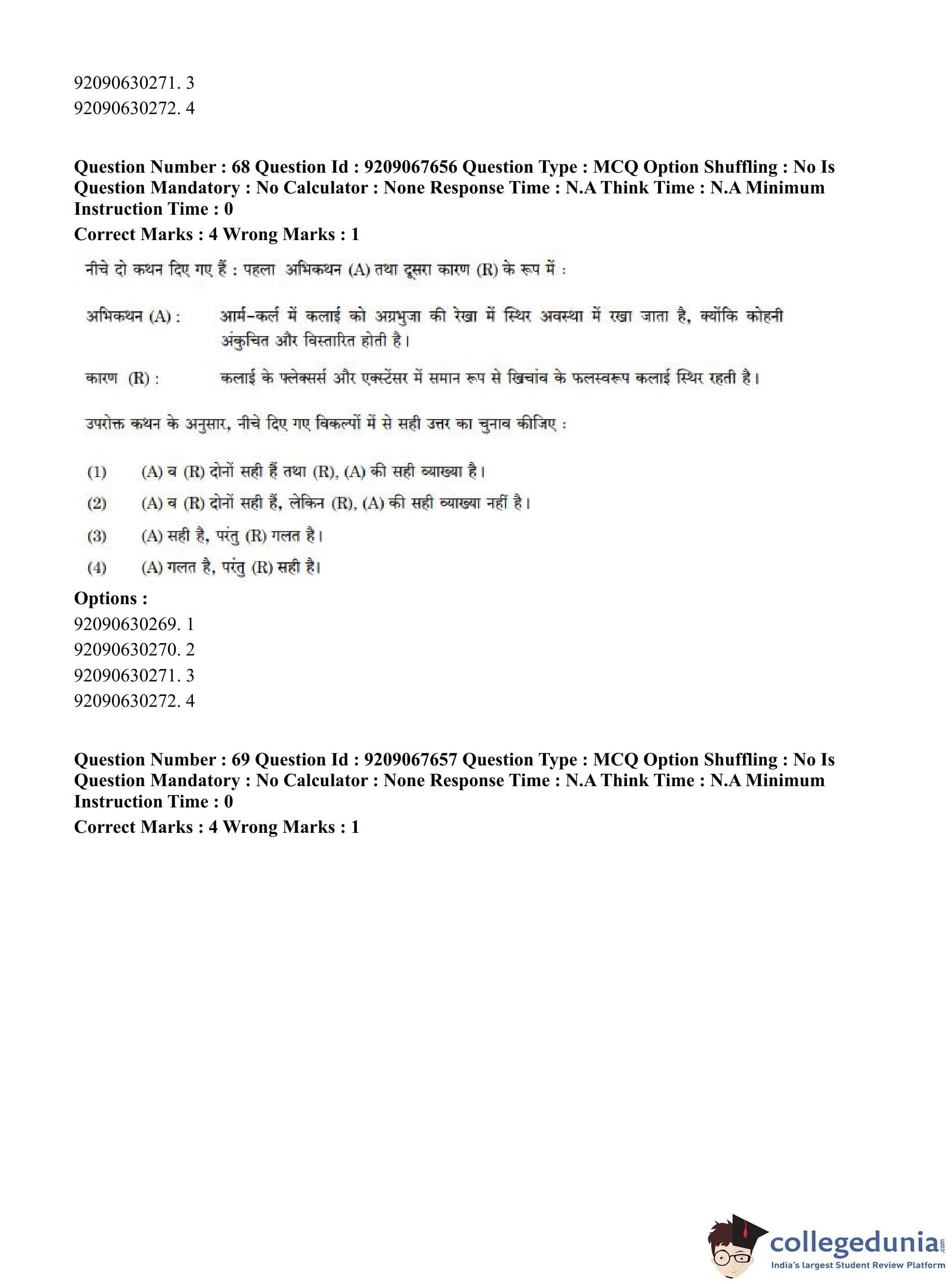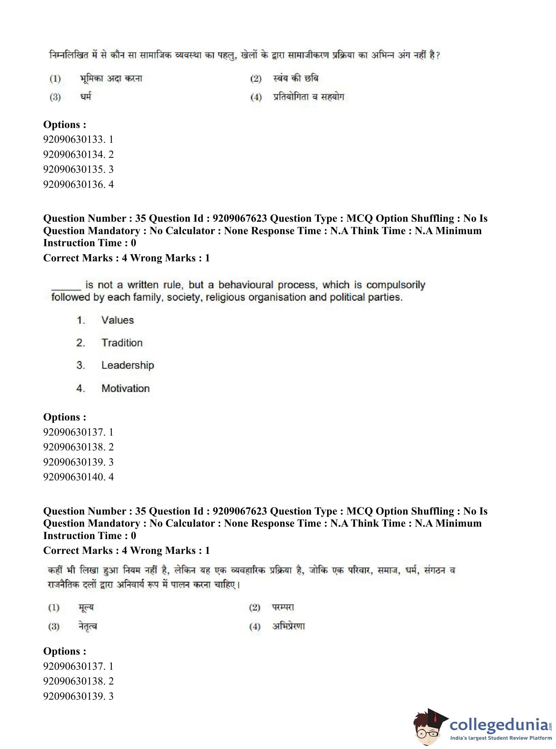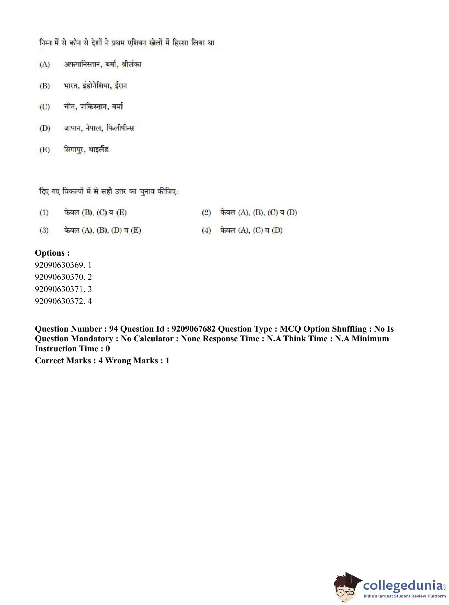 CUET PG 2023 Physical Education Question Paper in Hindi (June 8 - Shift 3)