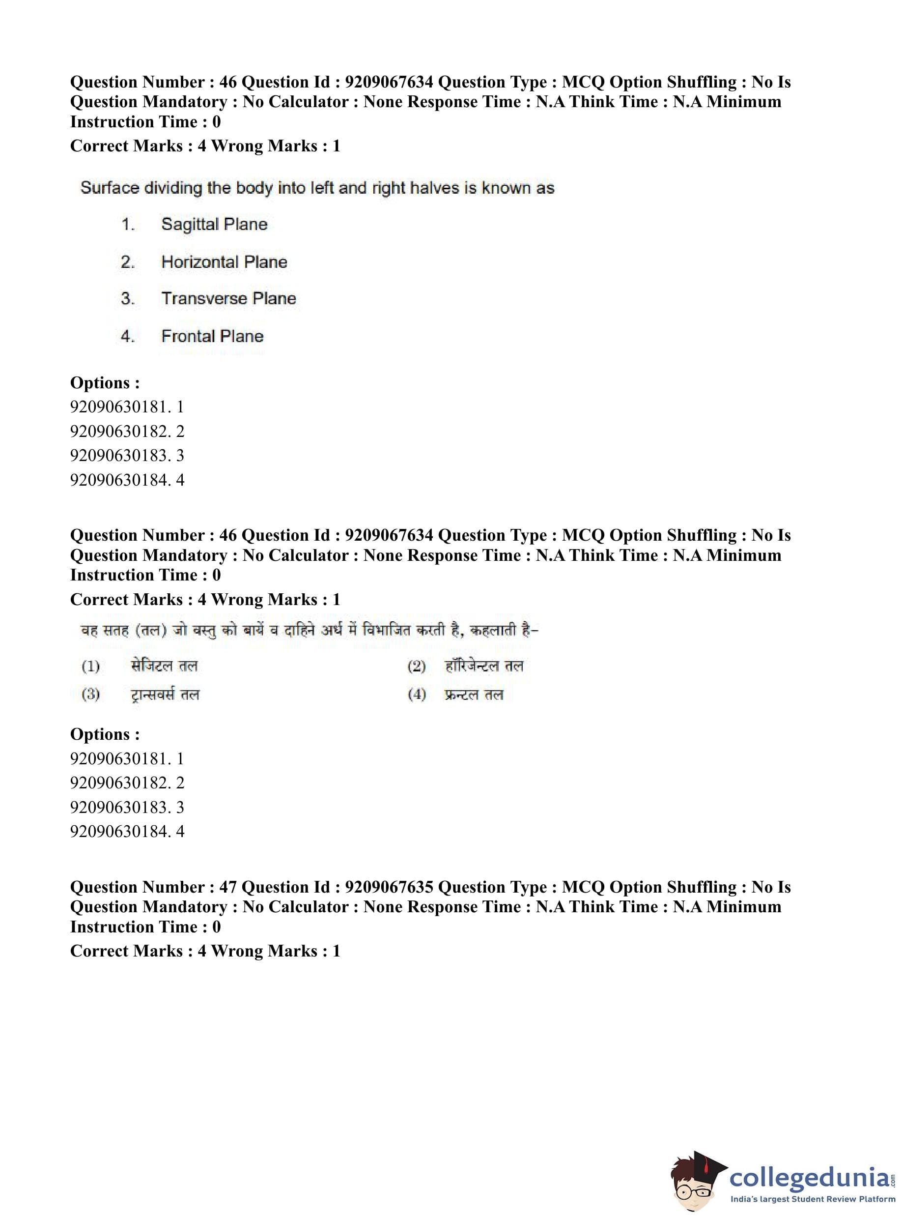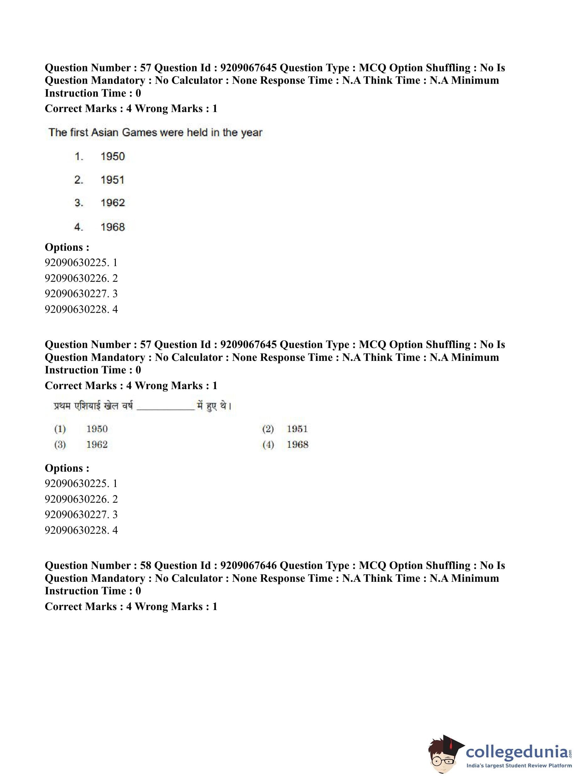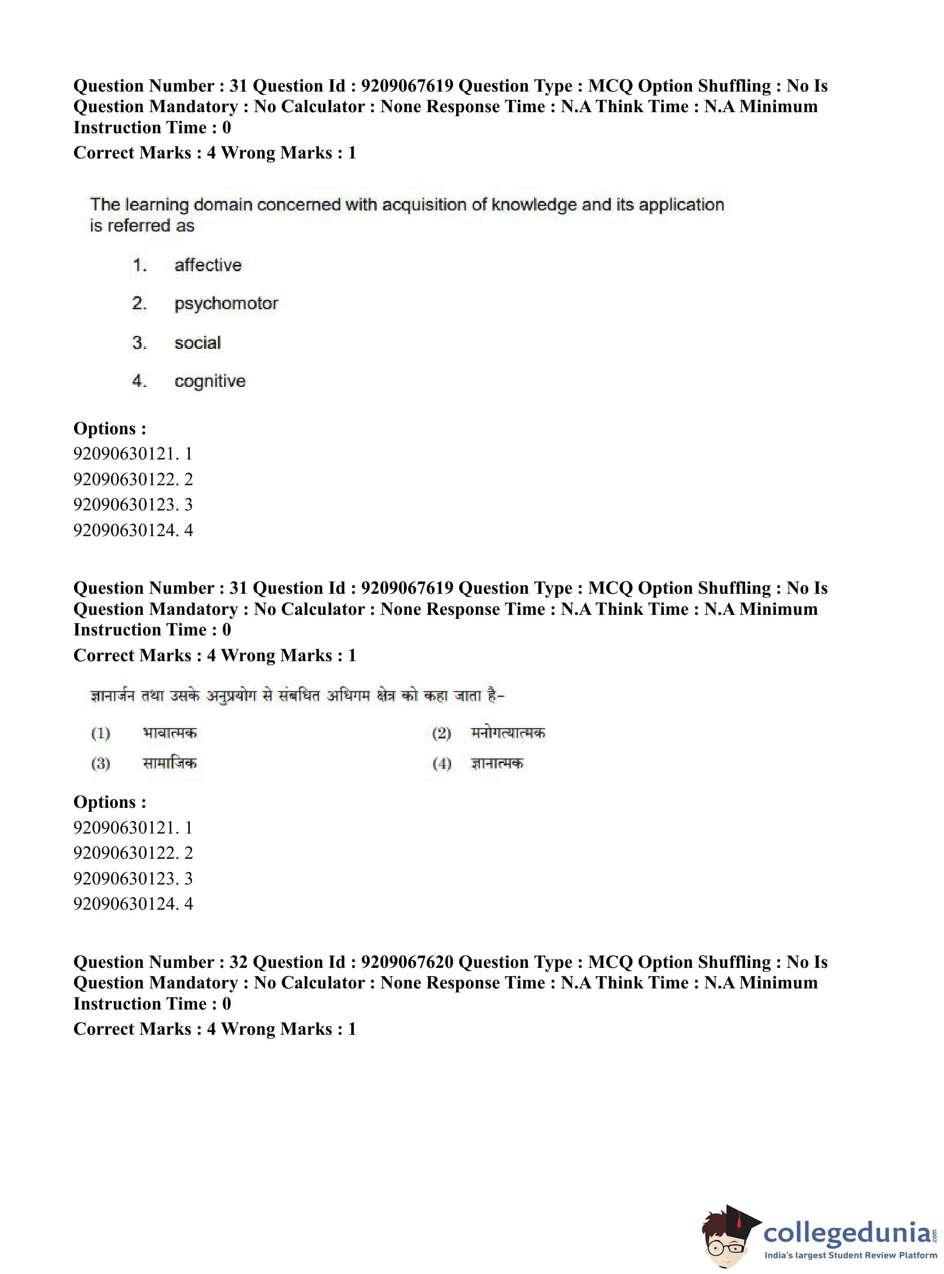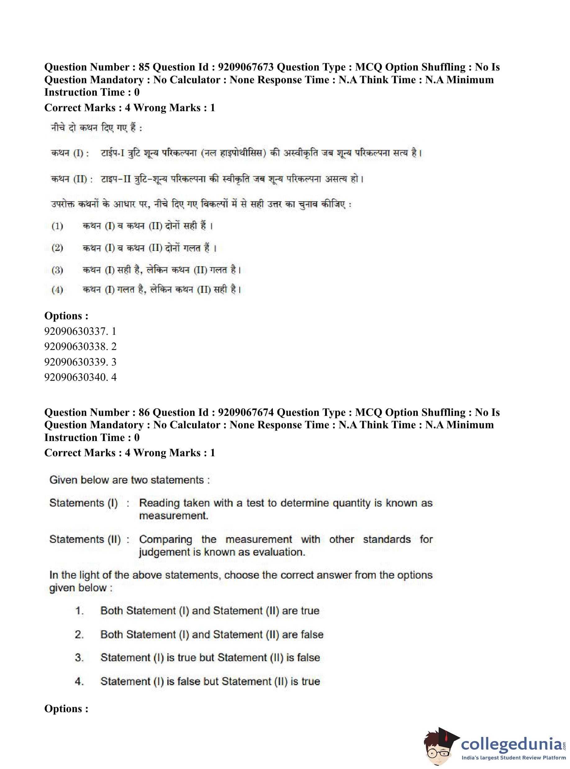 CUET PG 2023 Physical Education Question Paper in Hindi (June 8 - Shift 3)