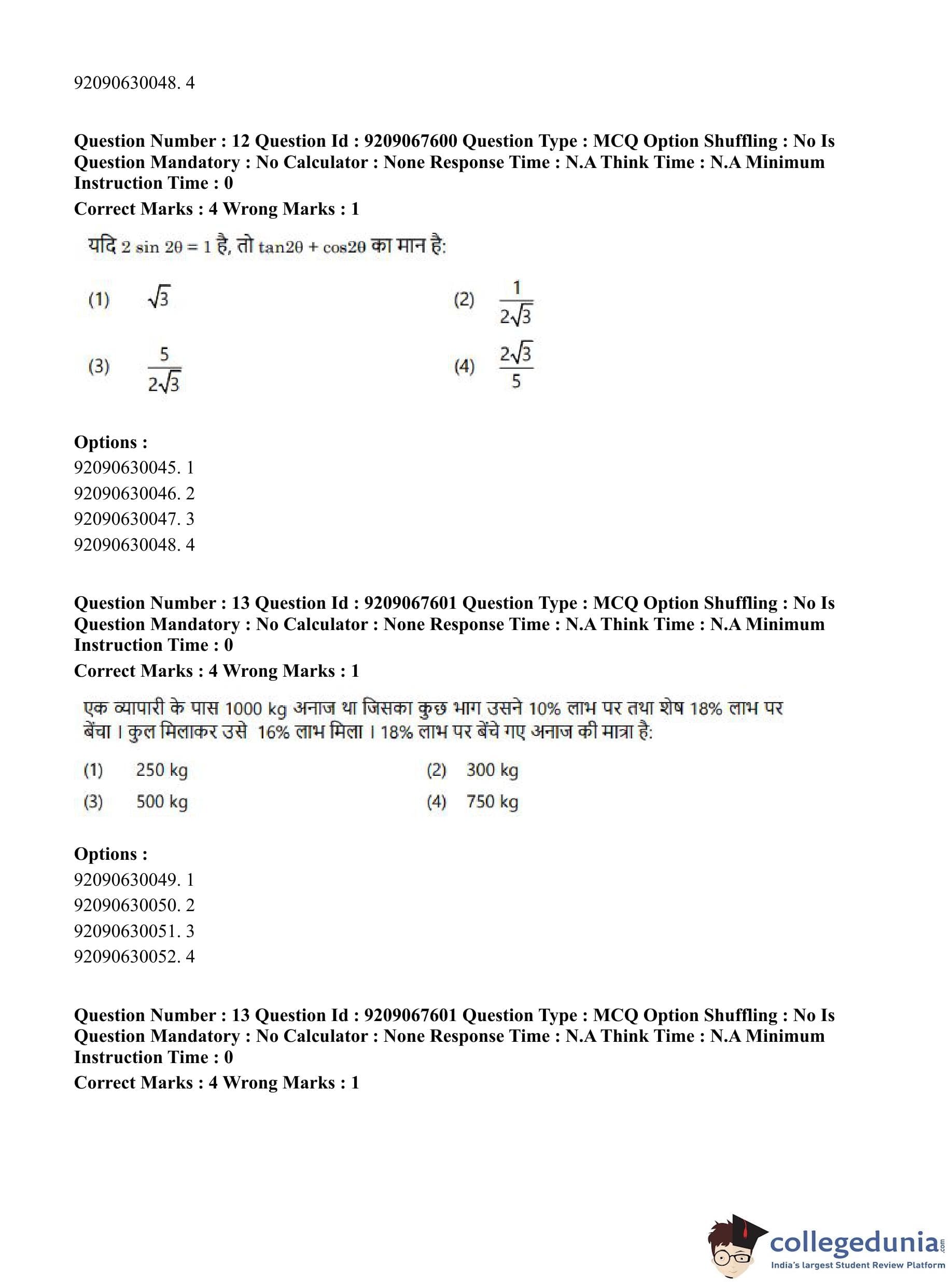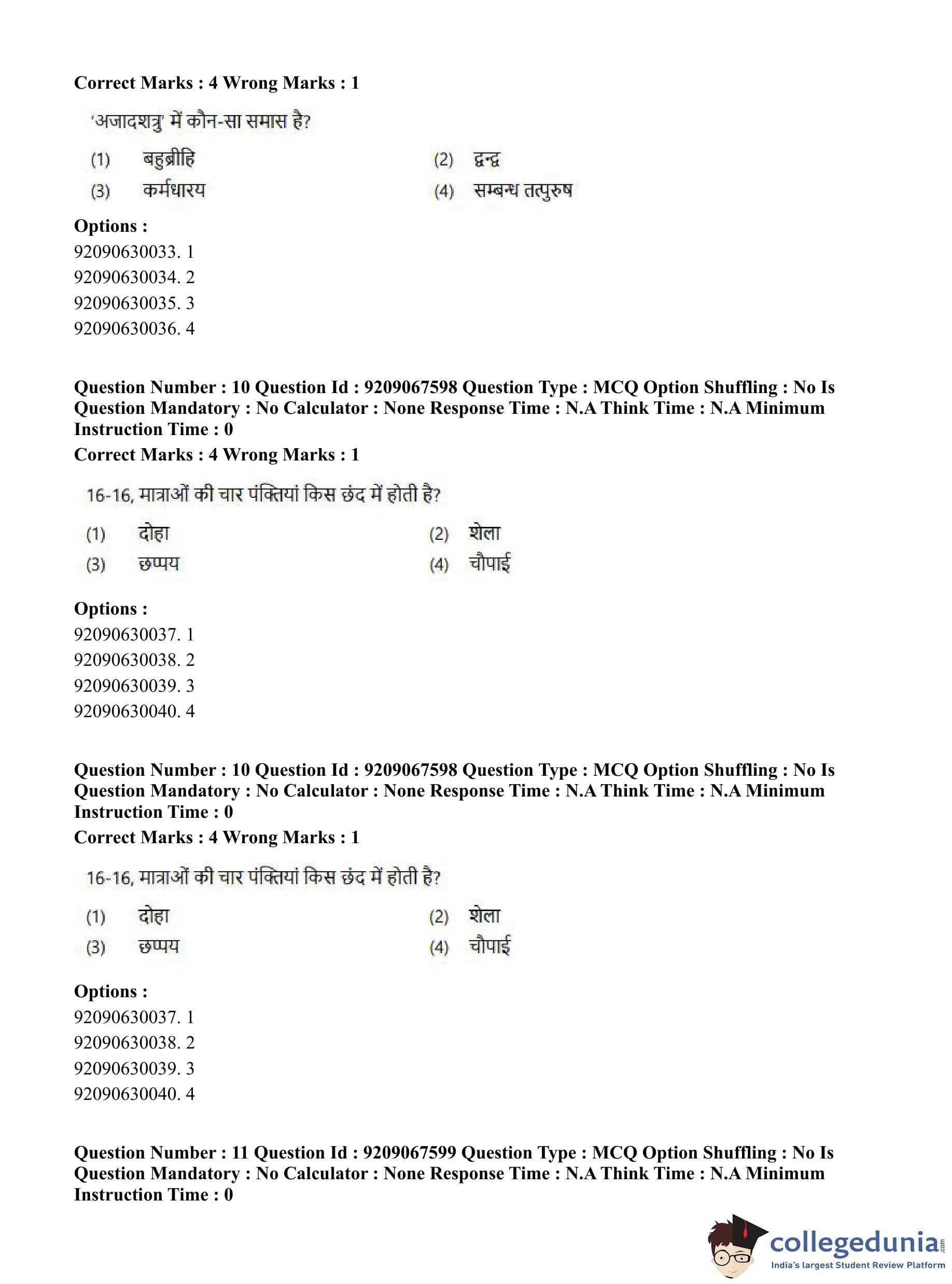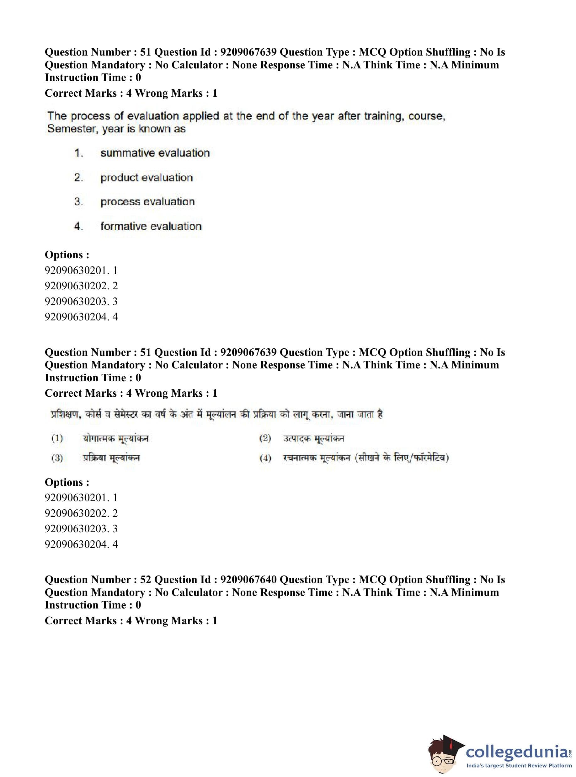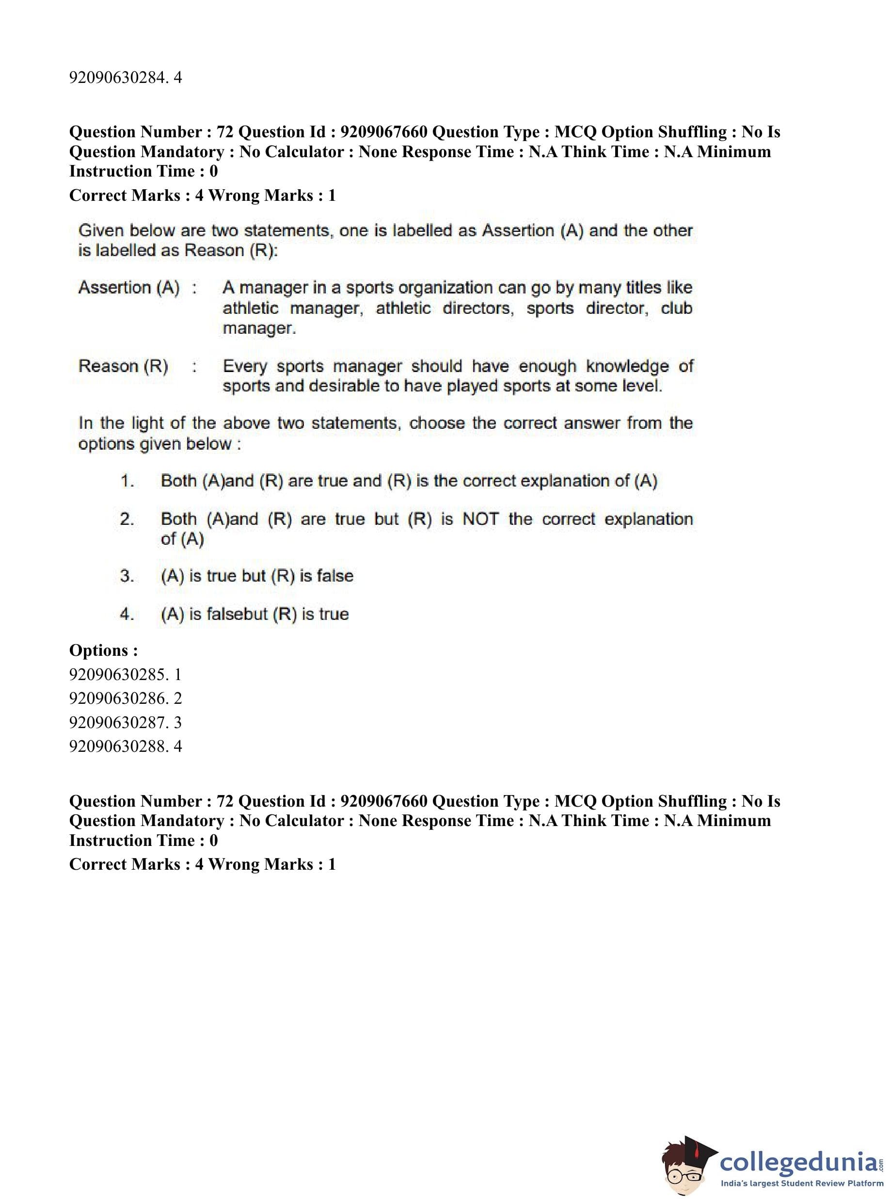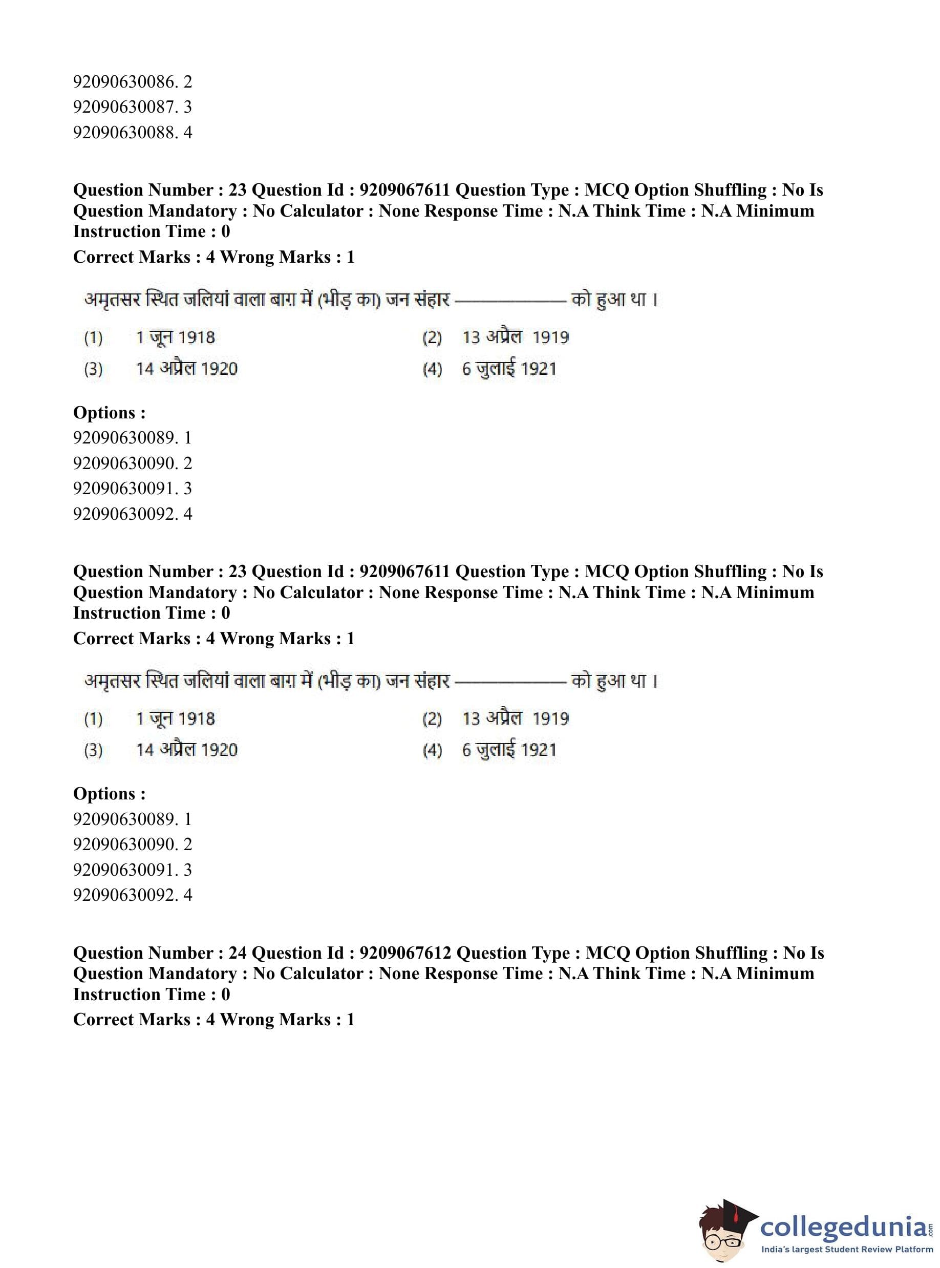 CUET PG 2023 Physical Education Question Paper in Hindi (June 8 - Shift 3)