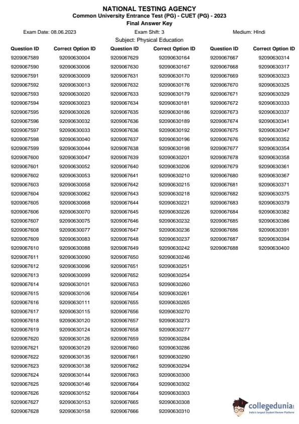 | CUET PG Physical Education Question Paper 2023 PDF | CUET PG Physical Education Answer Key 2023 PDF |