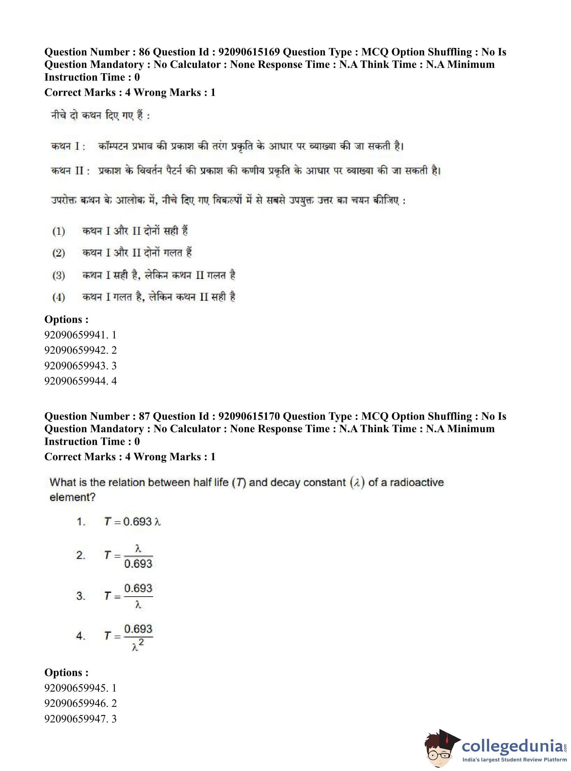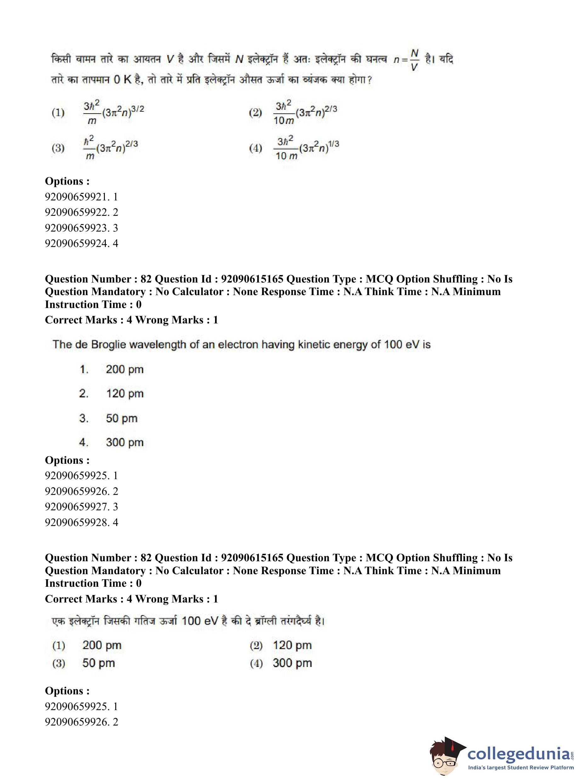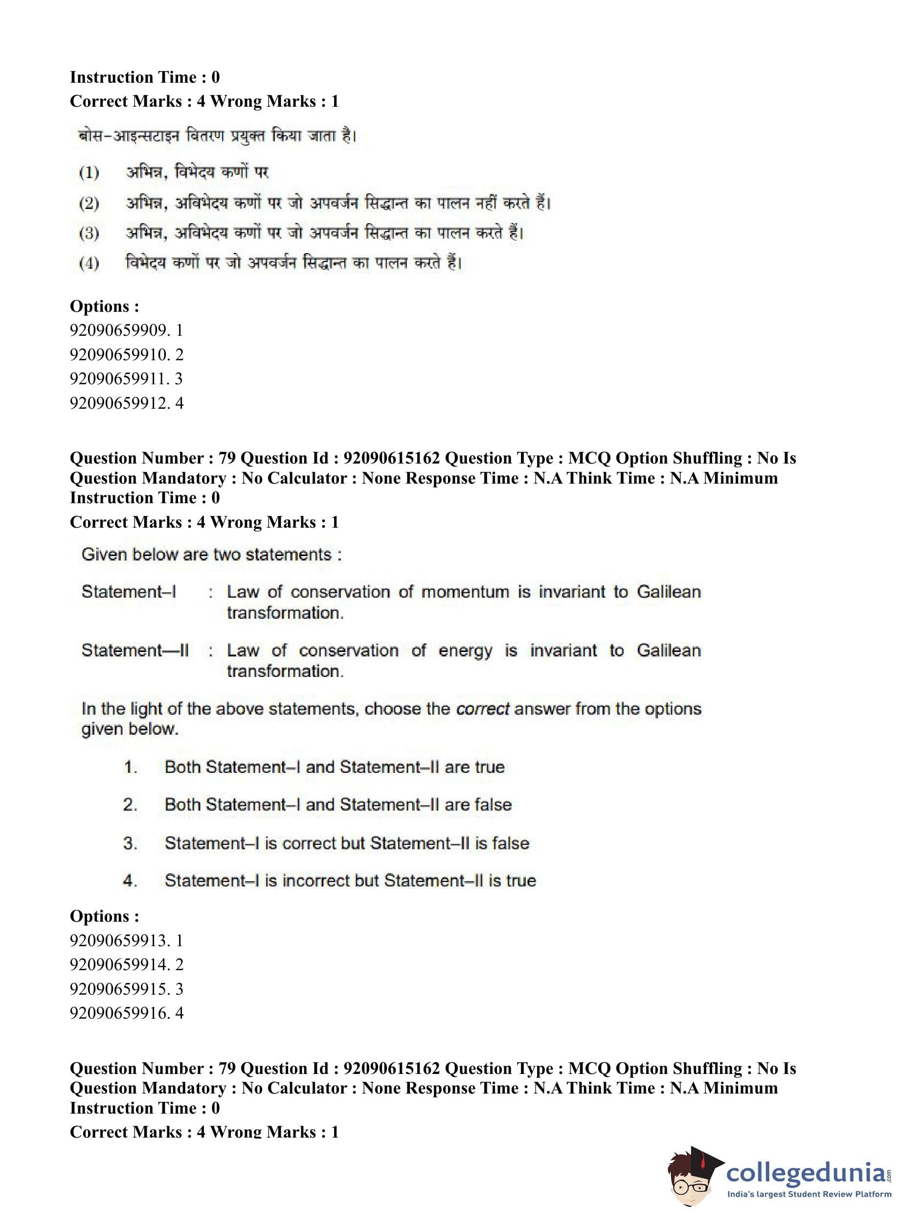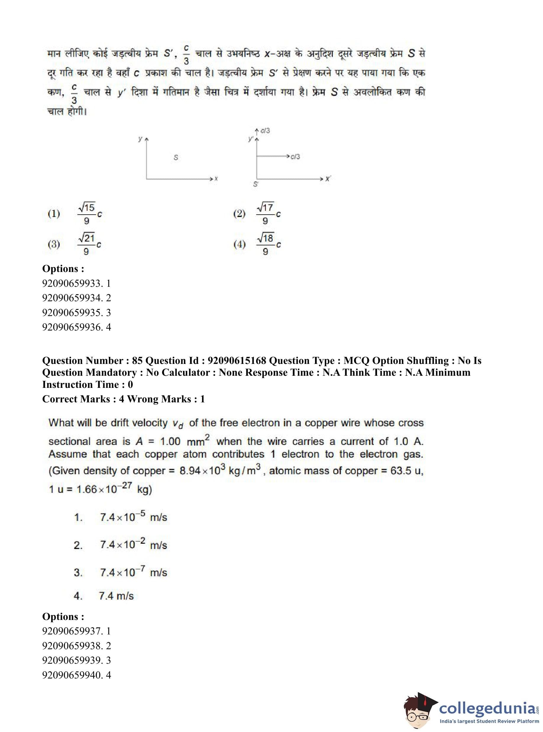 CUET PG 2023 Physics Question Paper in Hindi (June 12 - Shift 3)