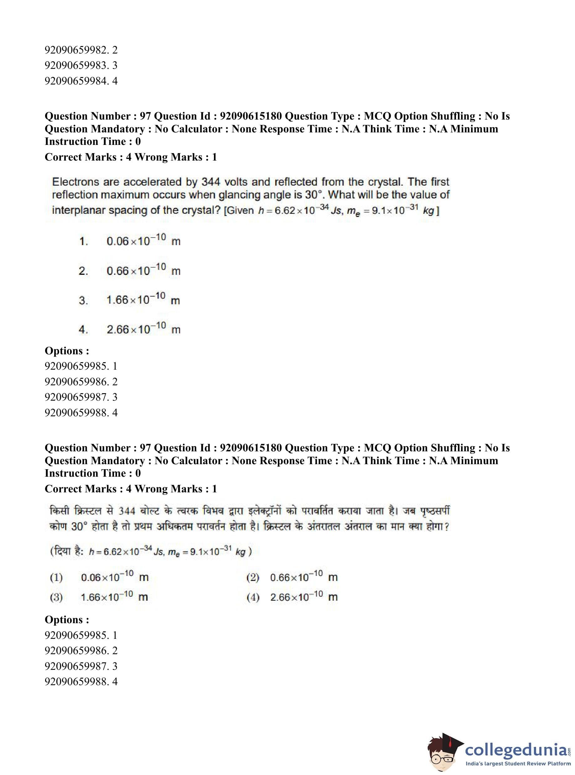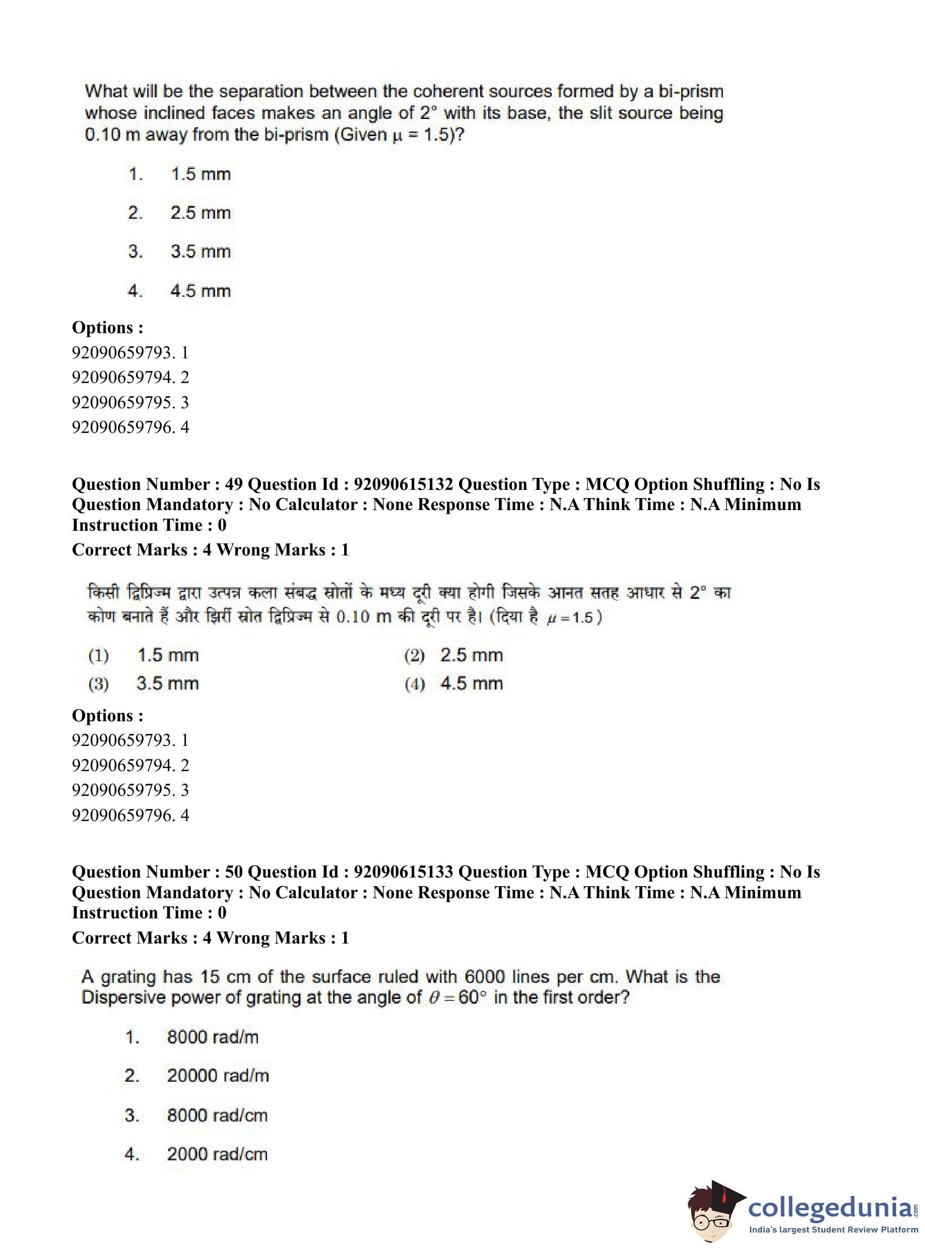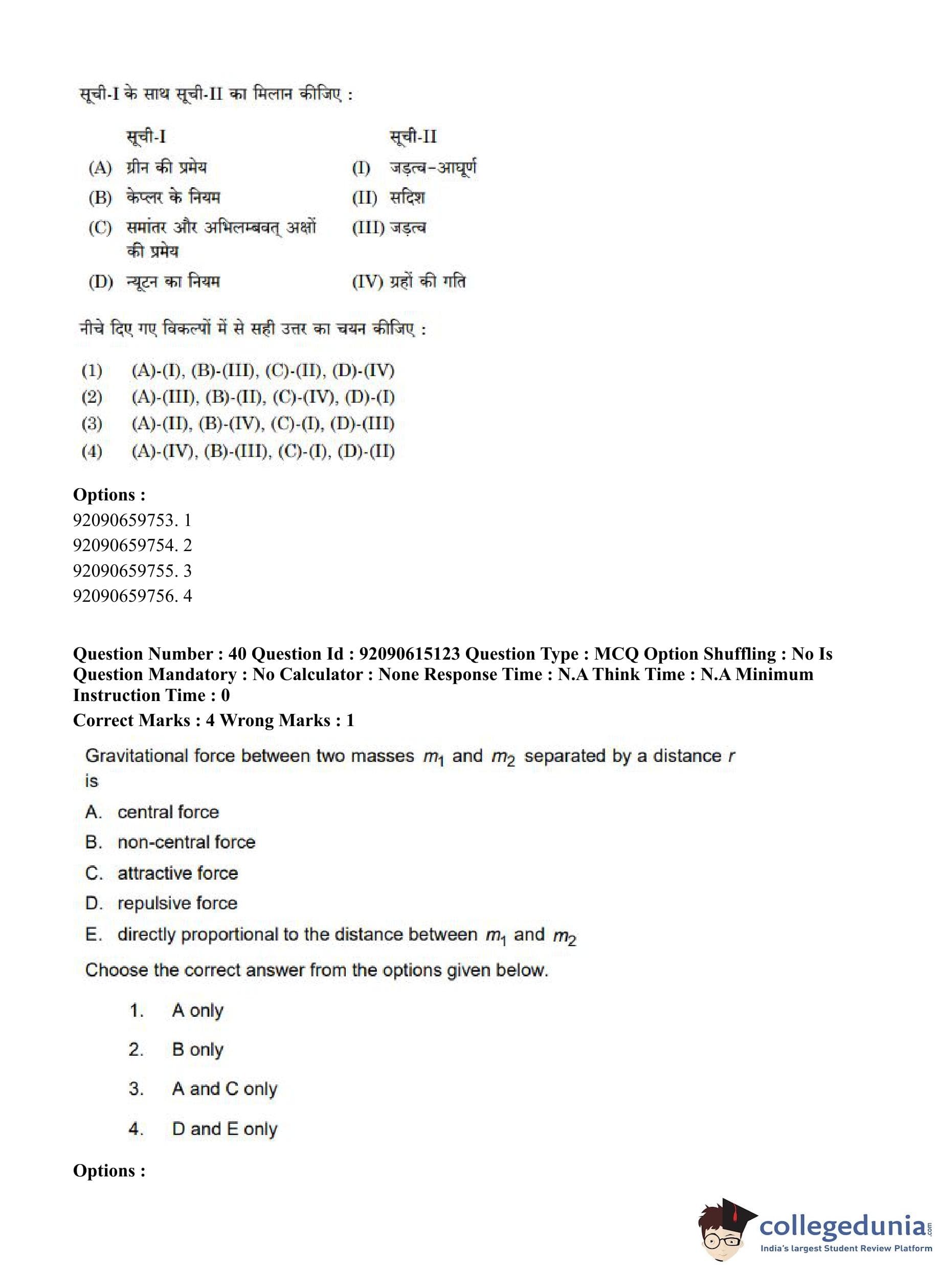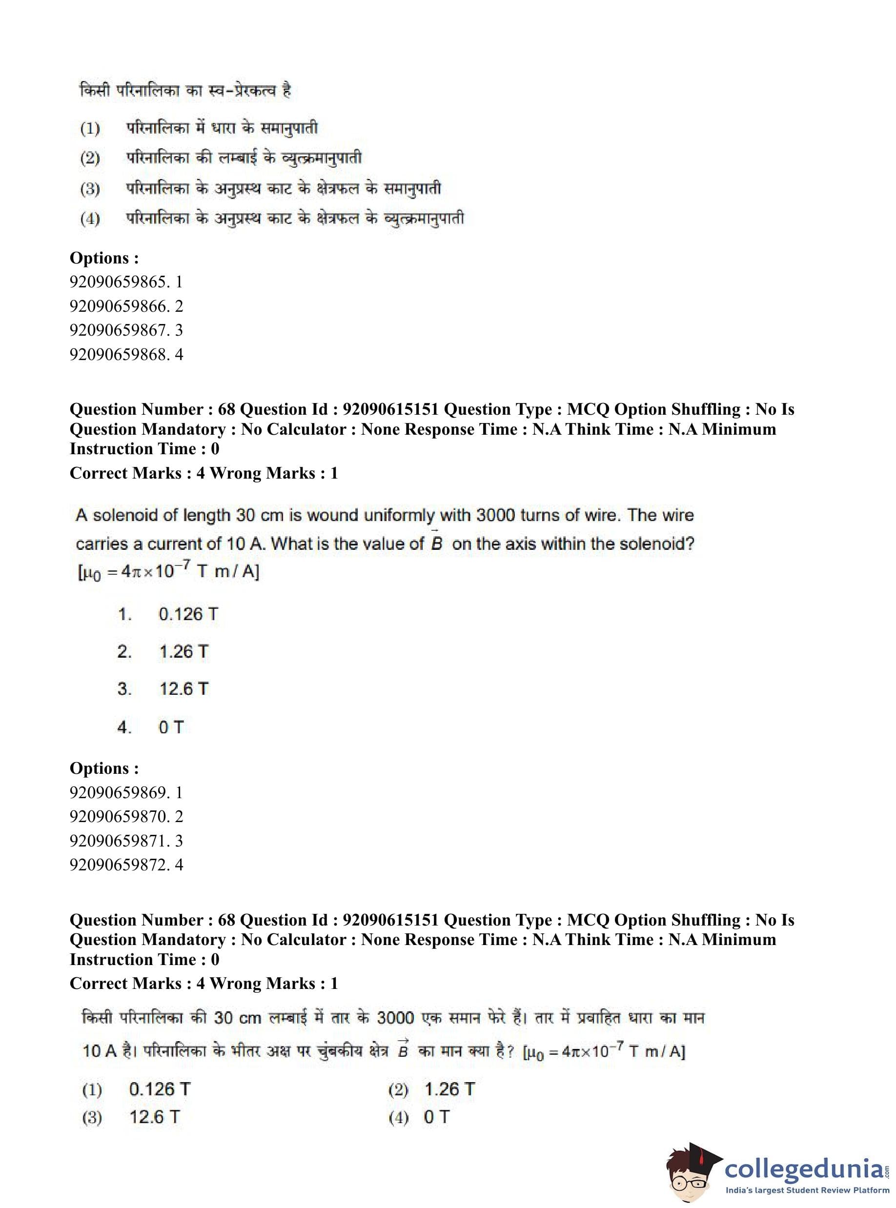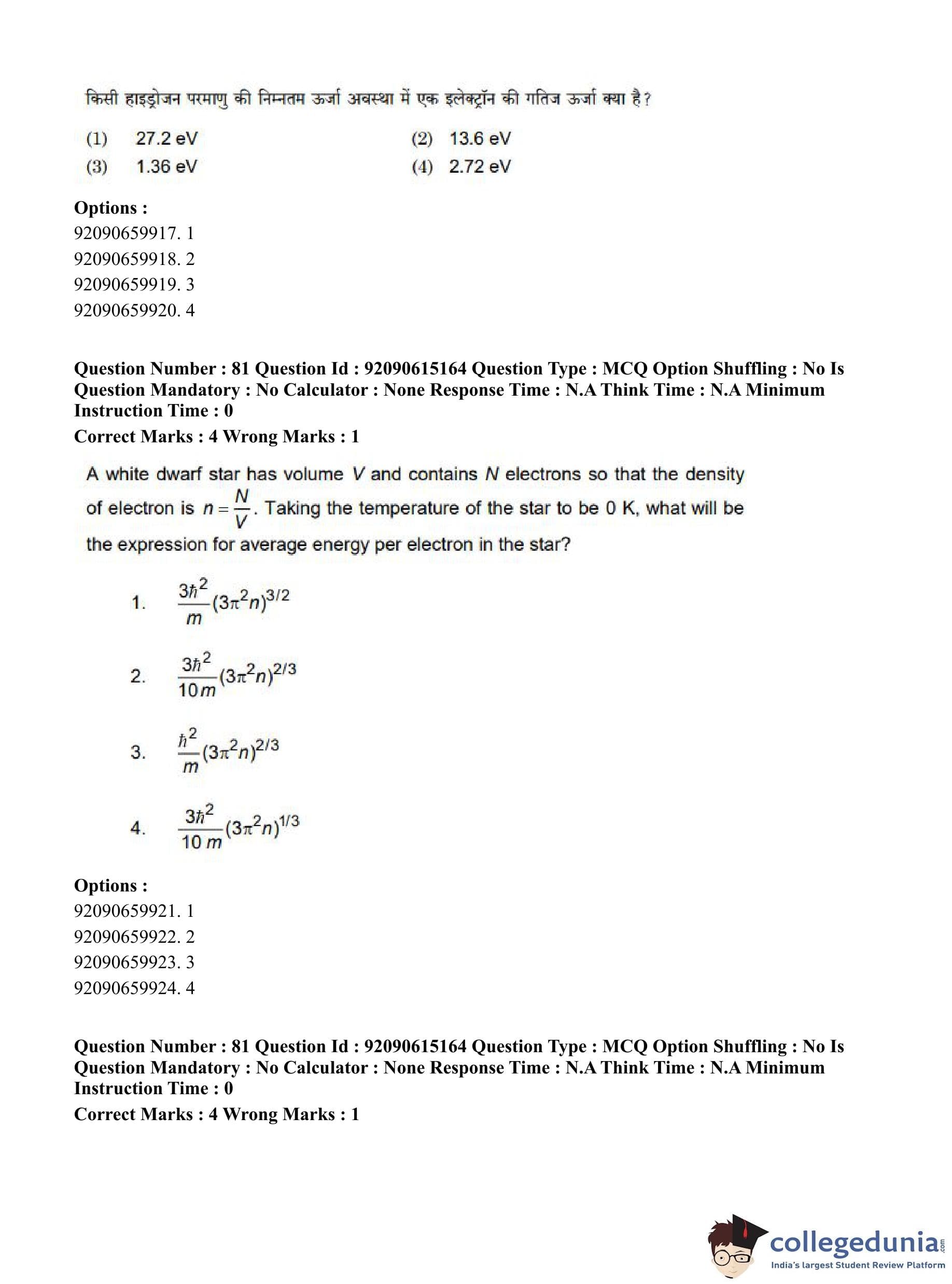 CUET PG 2023 Physics Question Paper in Hindi (June 12 - Shift 3)