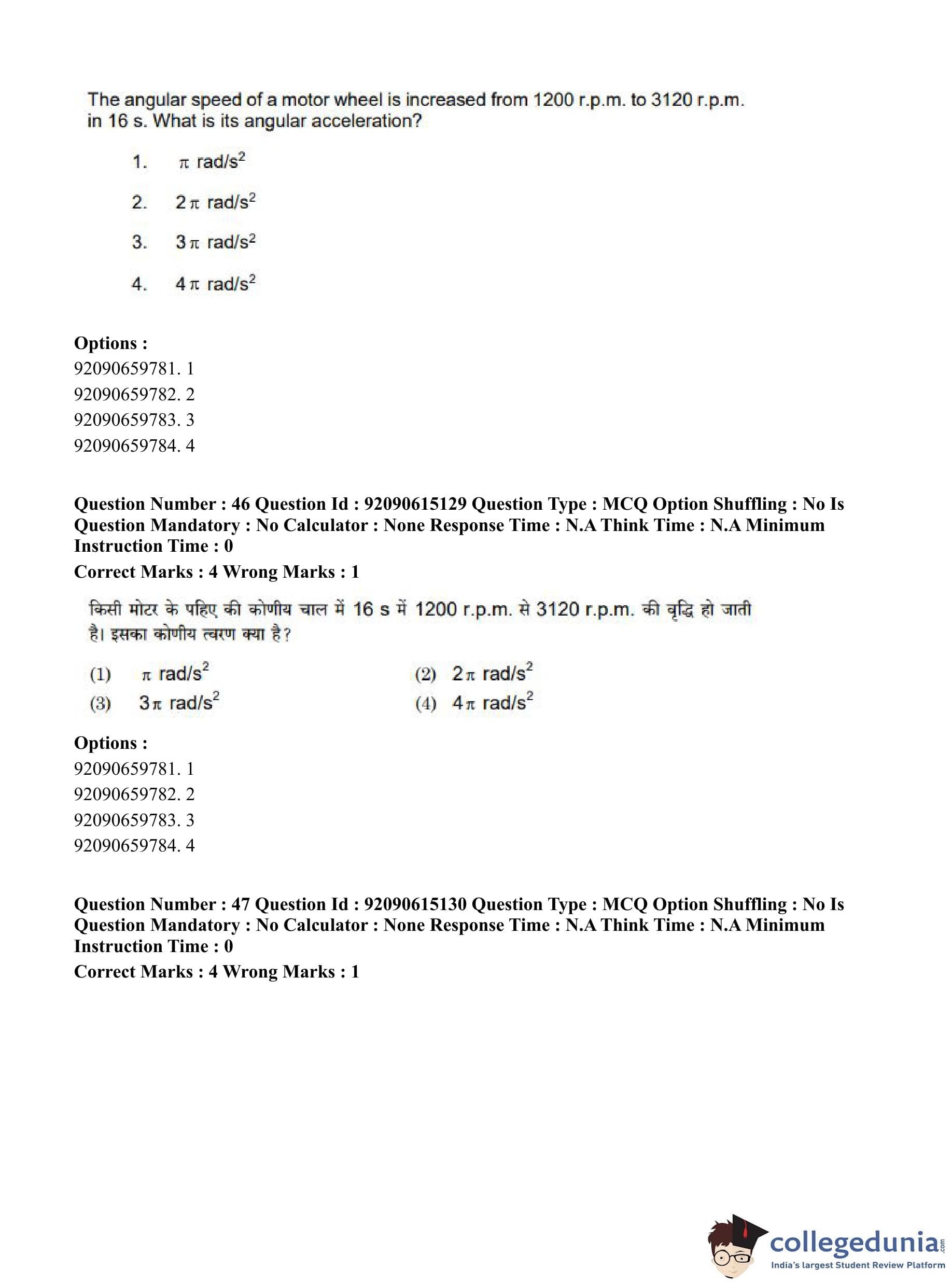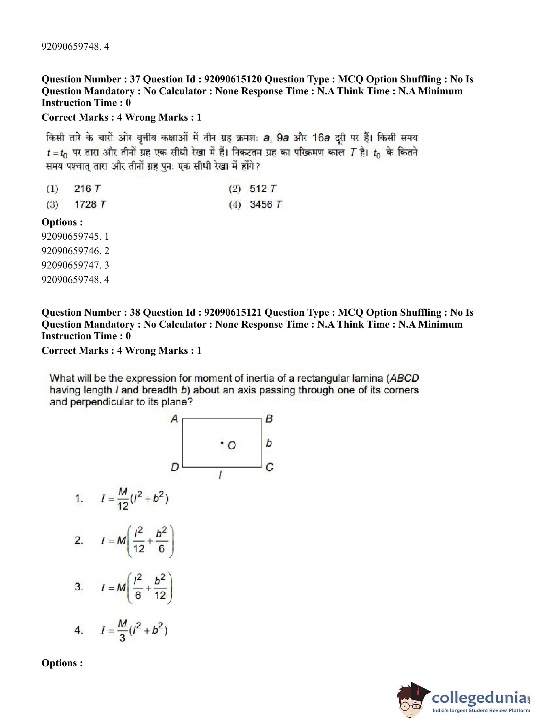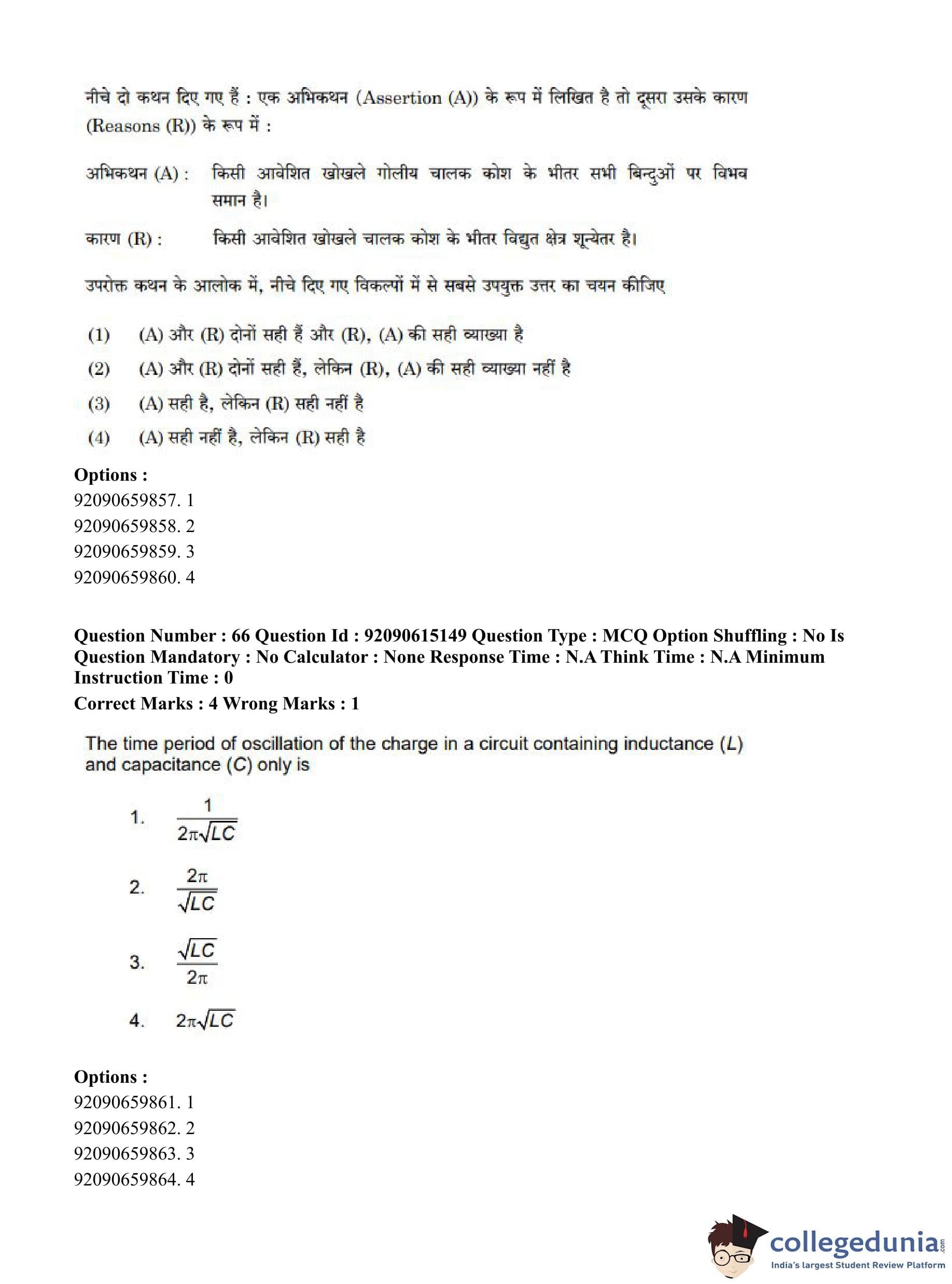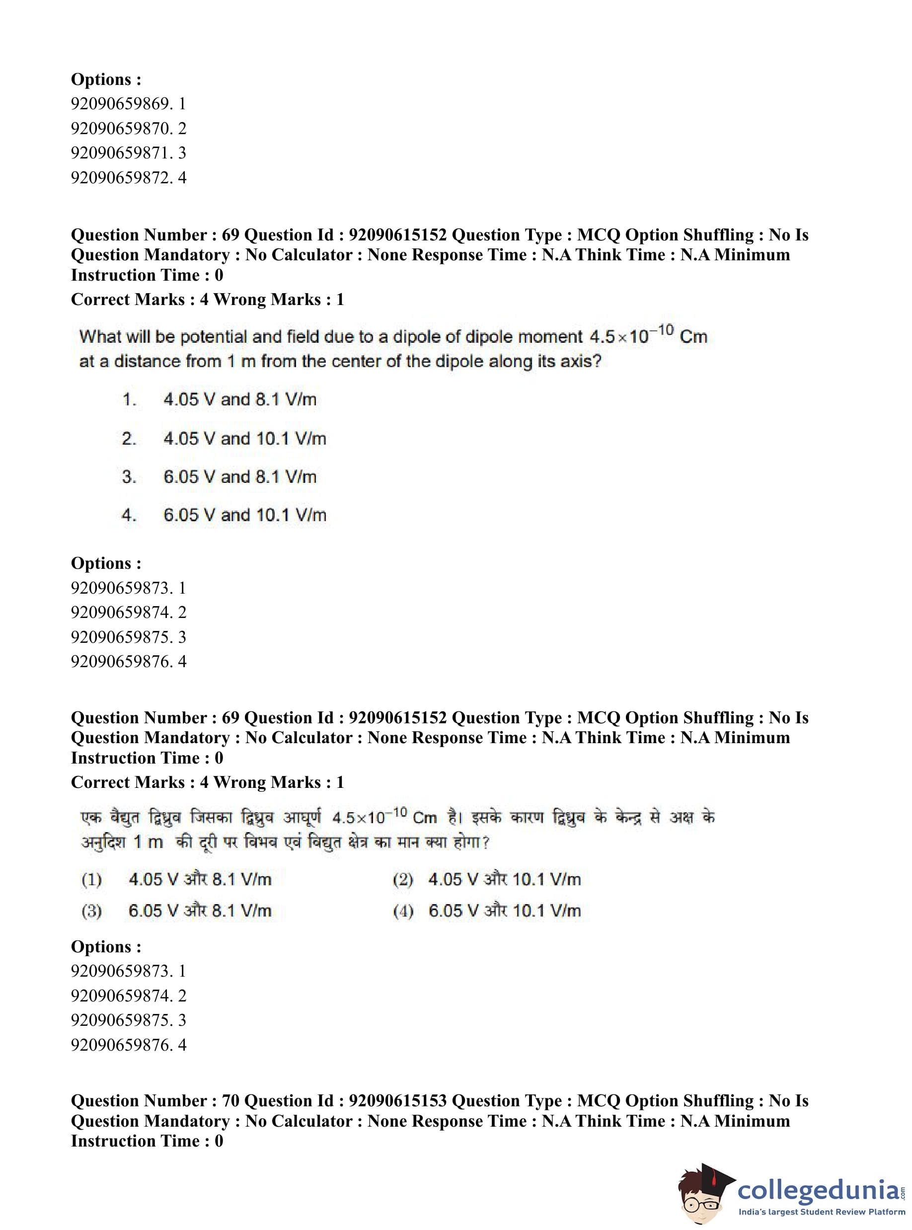 CUET PG 2023 Physics Question Paper in Hindi (June 12 - Shift 3)
