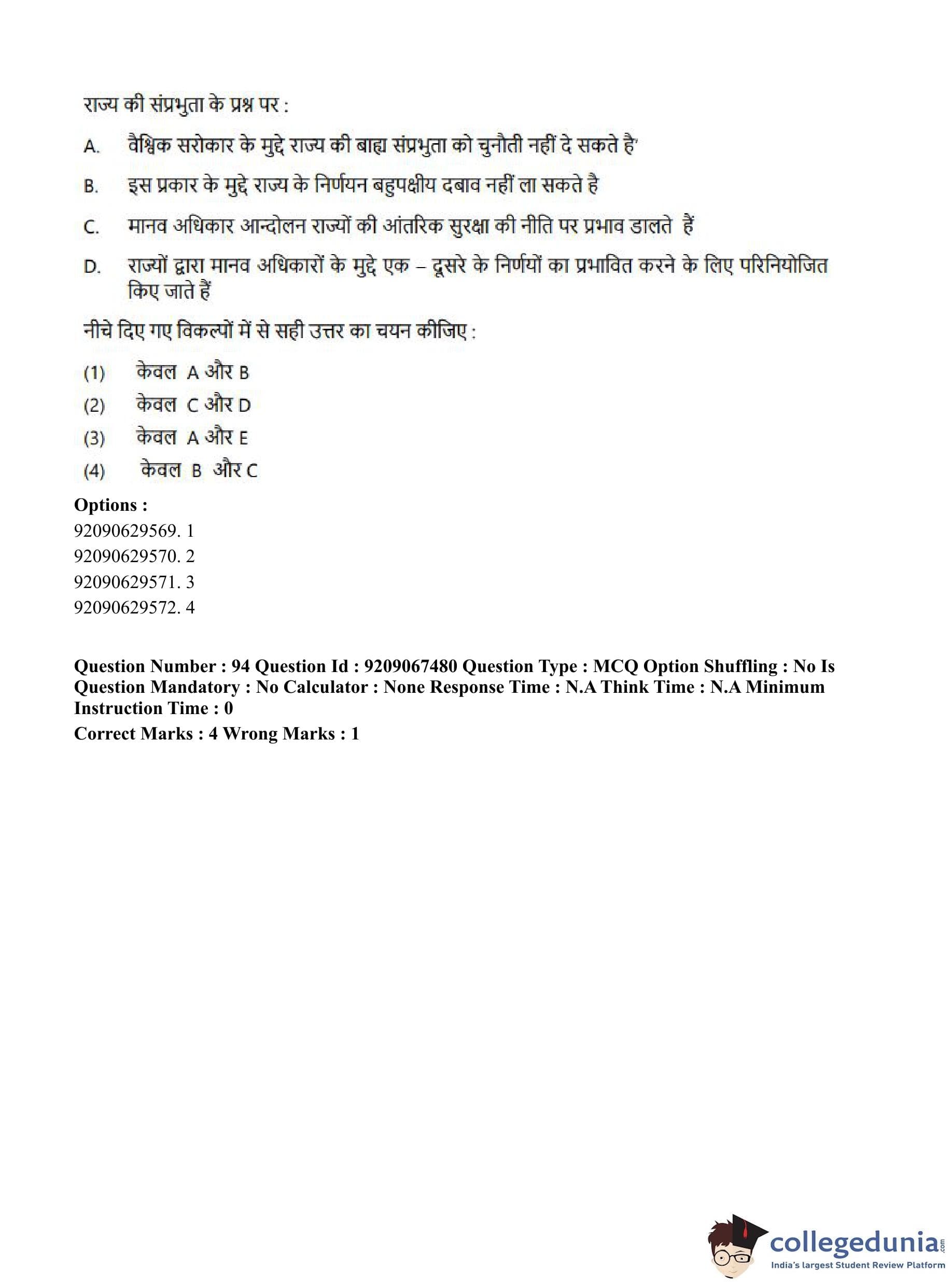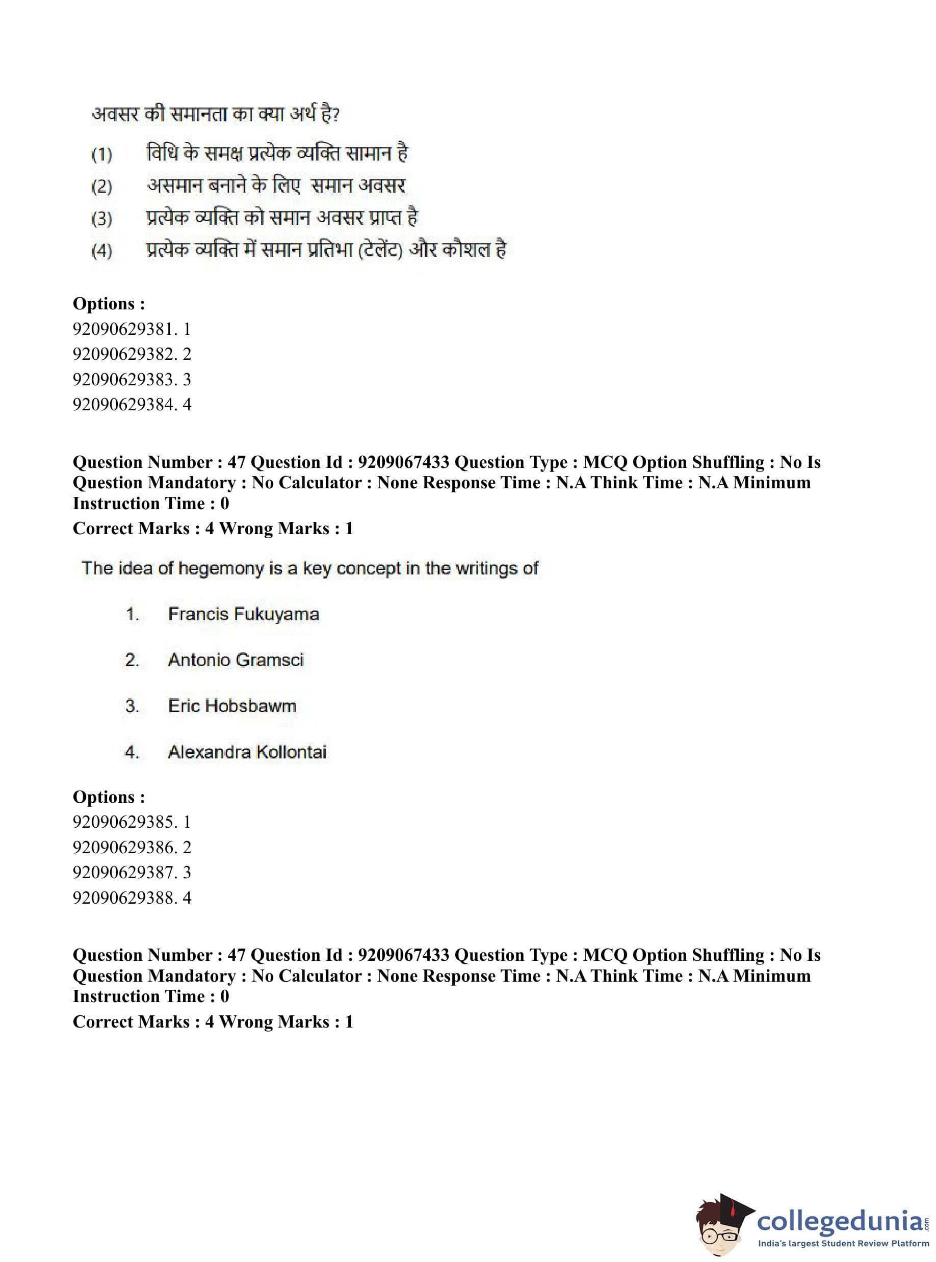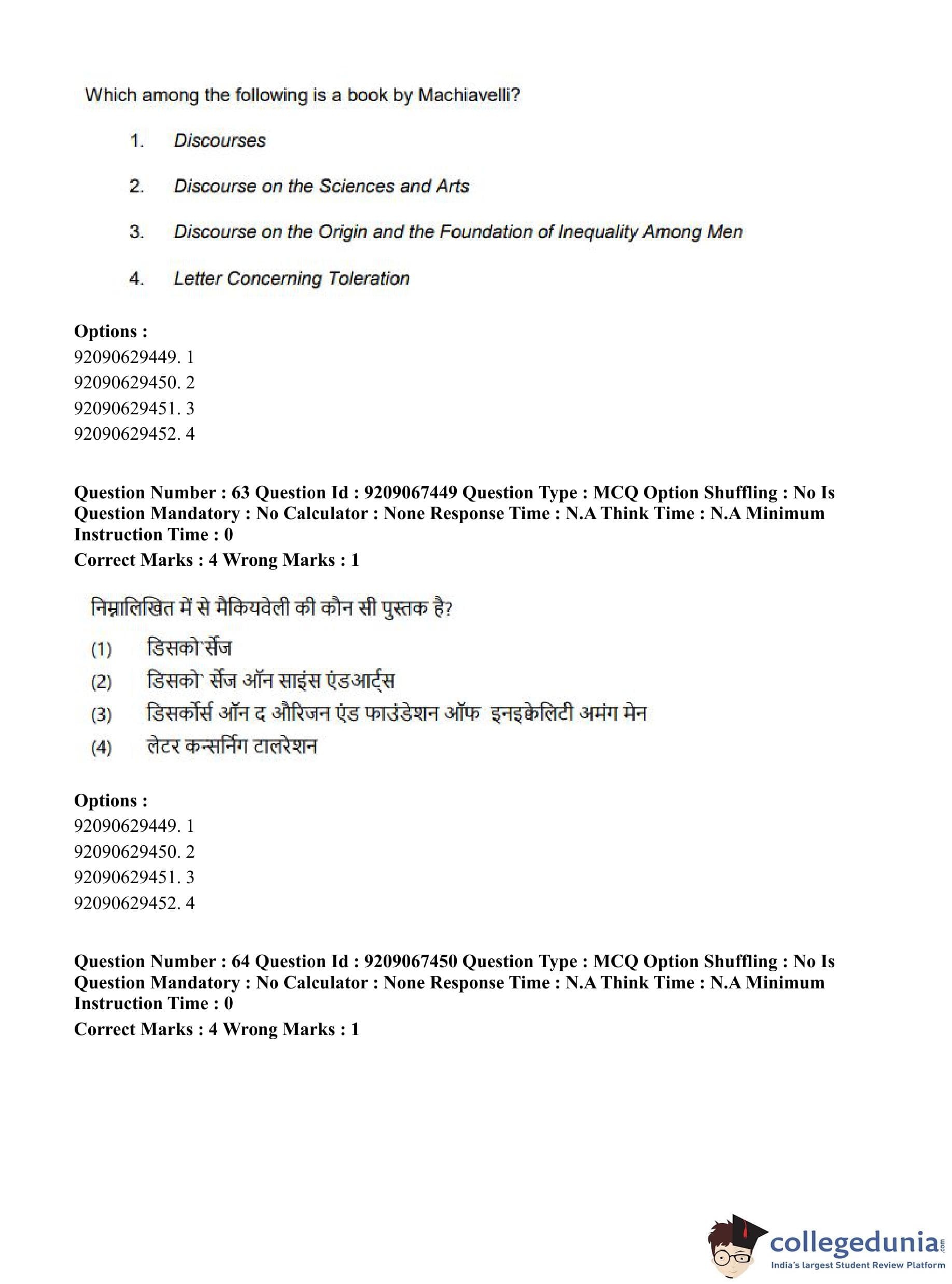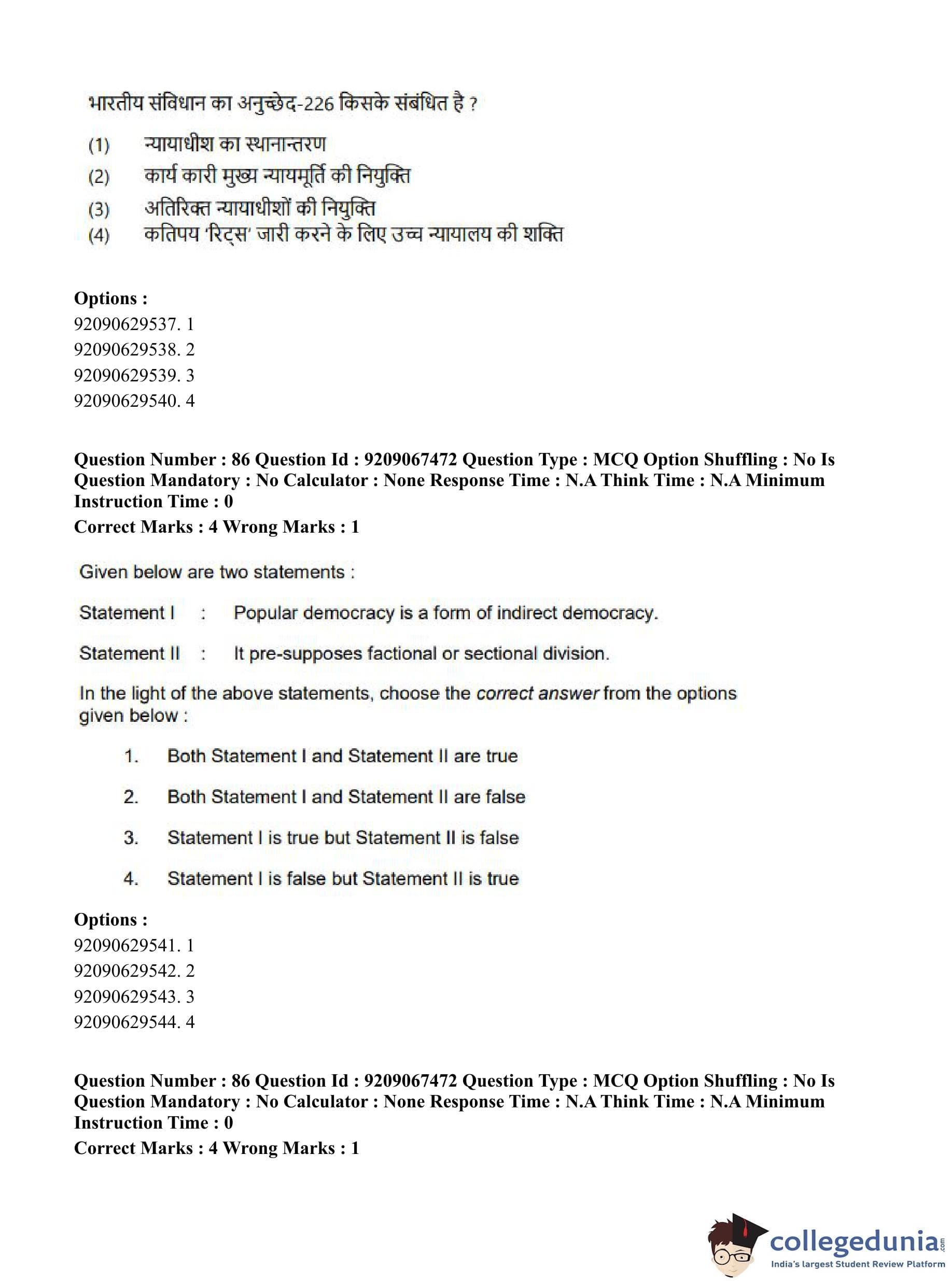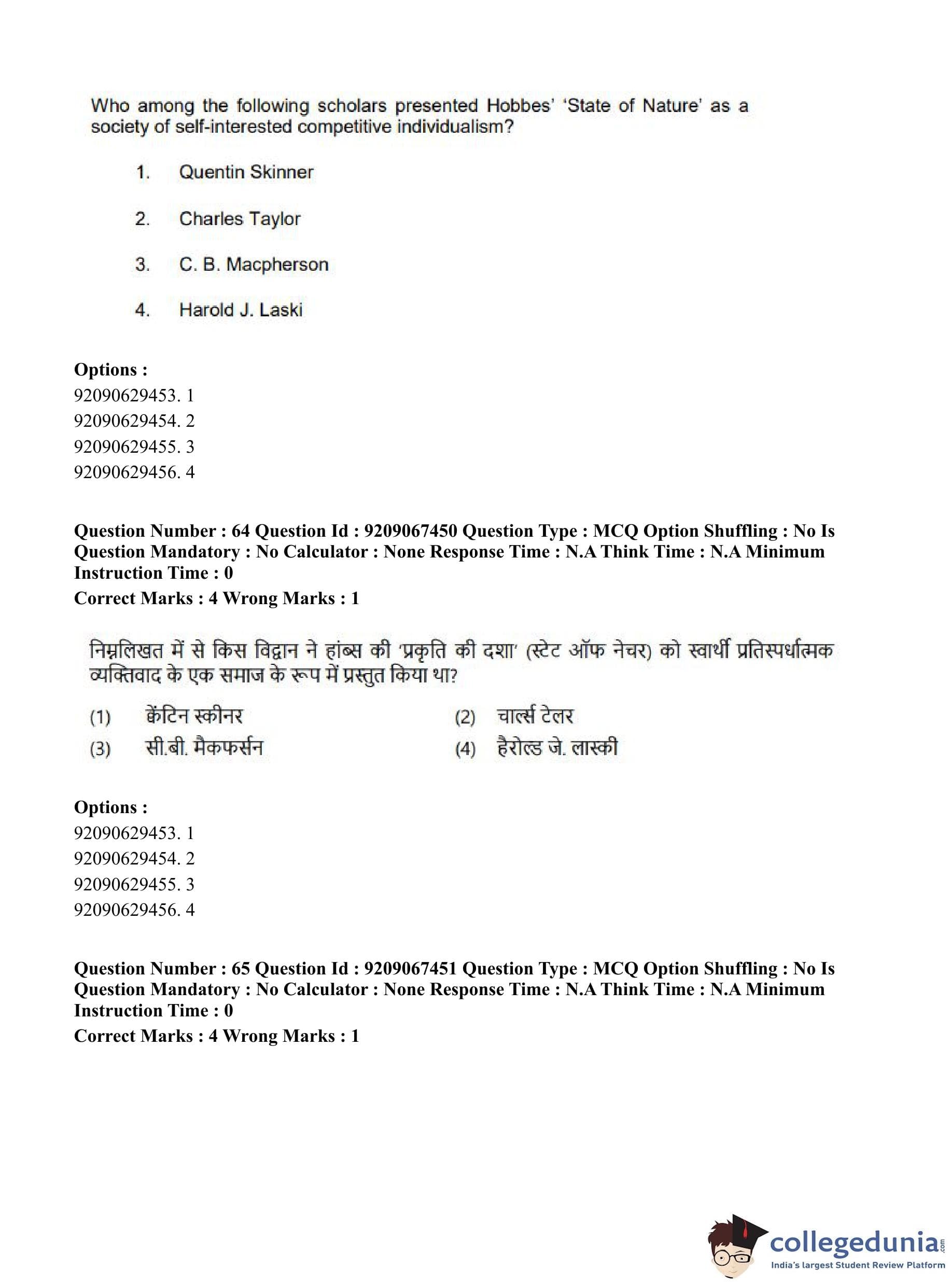 CUET PG 2023 Political Science Question Paper in Hindi (June 8 - Shift 1)